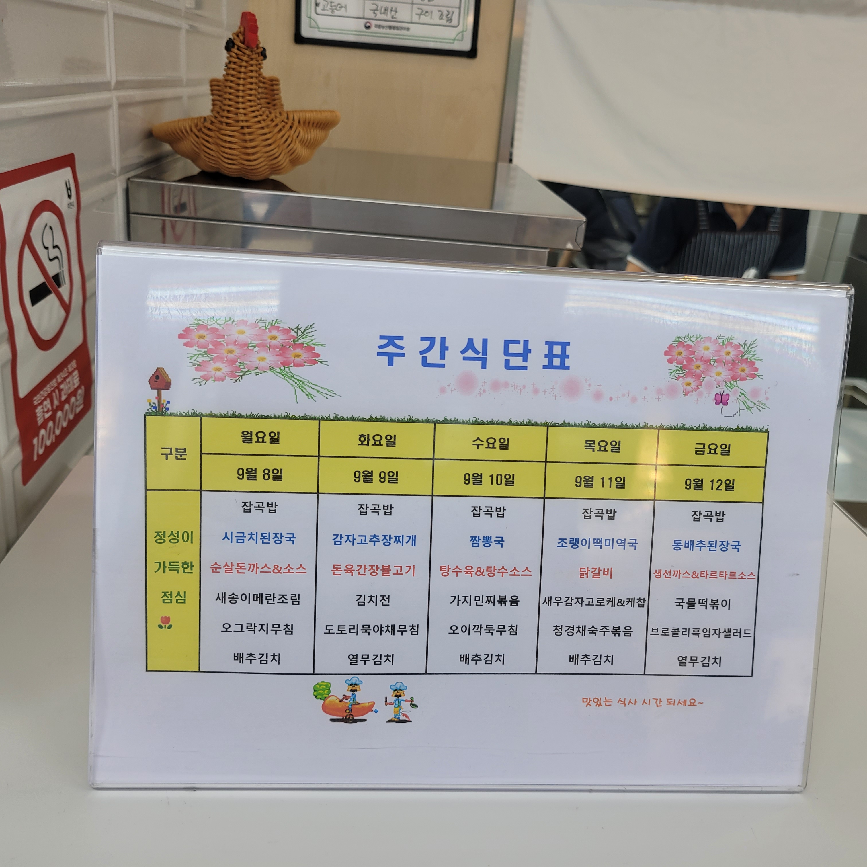 해서 이번주 식단표도 사진으로 담았는데 제가 좋아하는 반찬