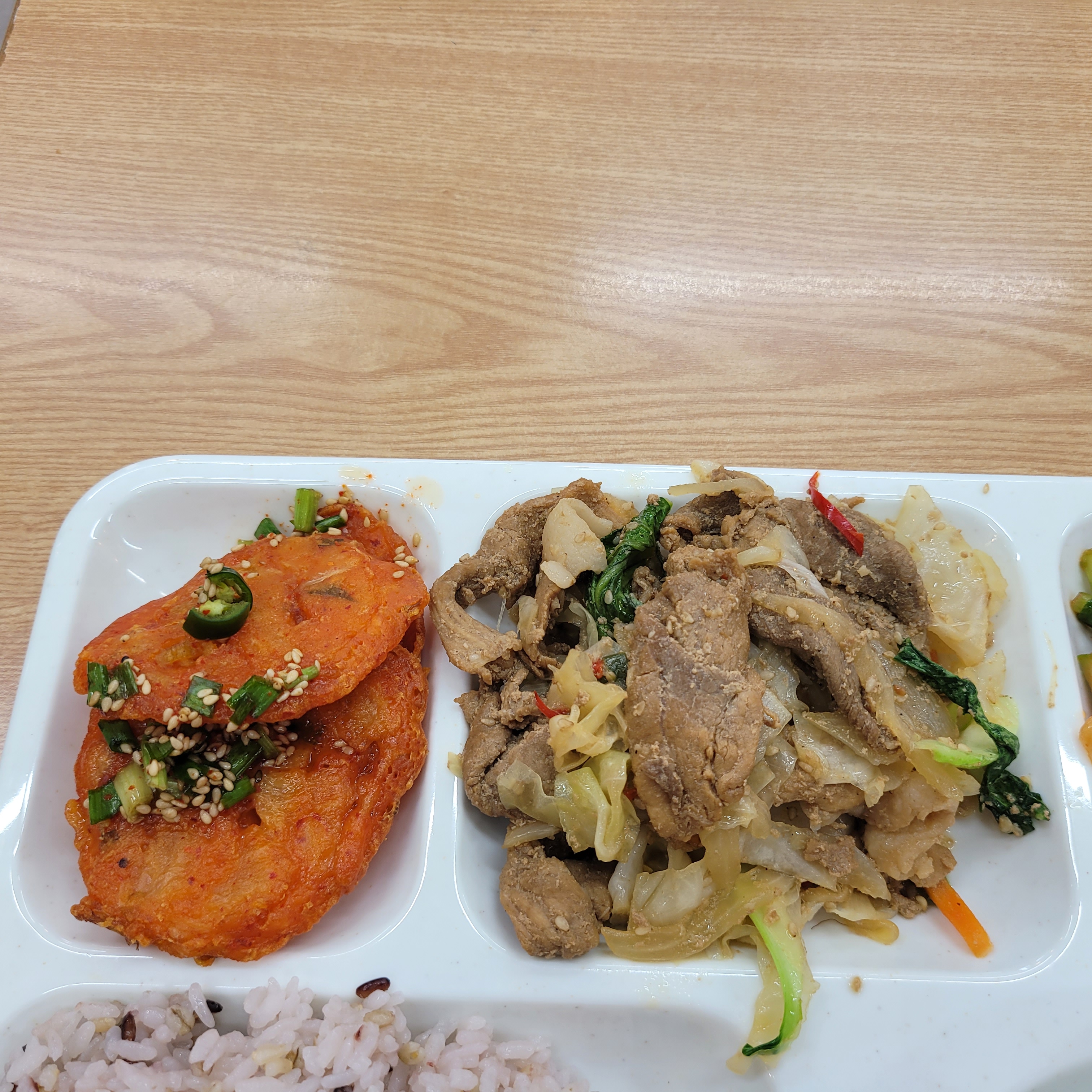 오늘 메뉴가 김치전에 돈육간장불고기에 감자고추장찌개였는데