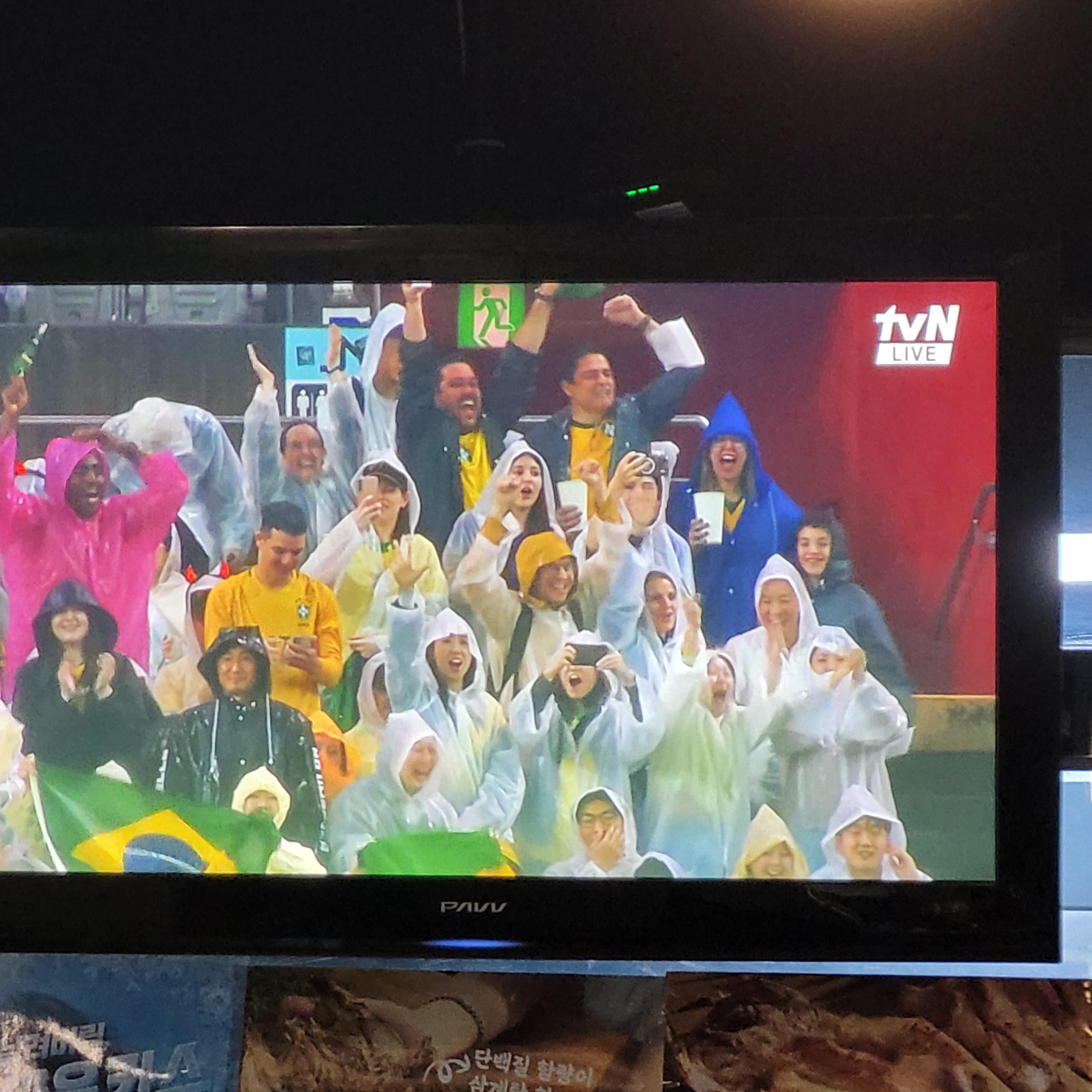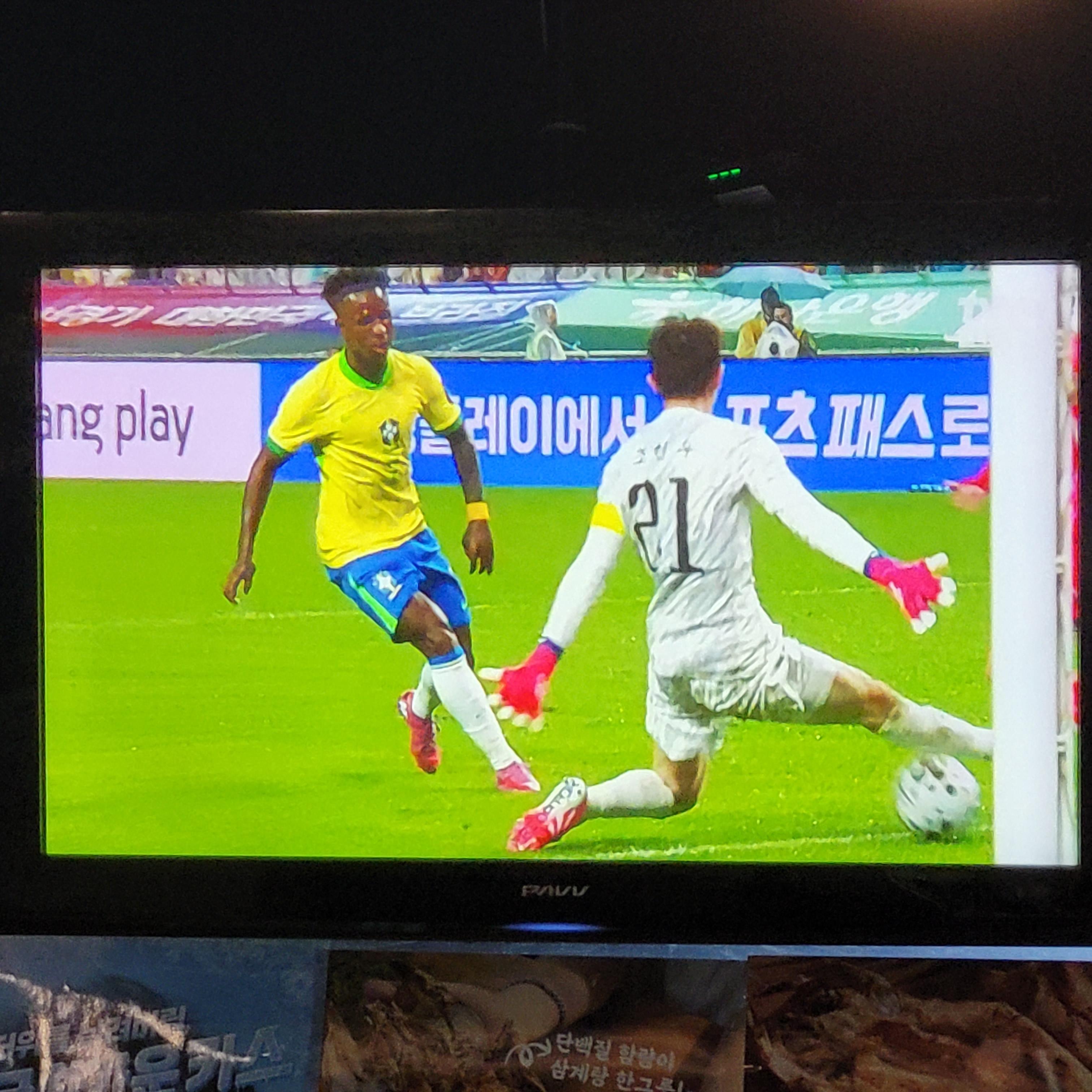 헌데 가게 안 TV를 보니까 마침 우리나라 축구 대표팀과 브라질