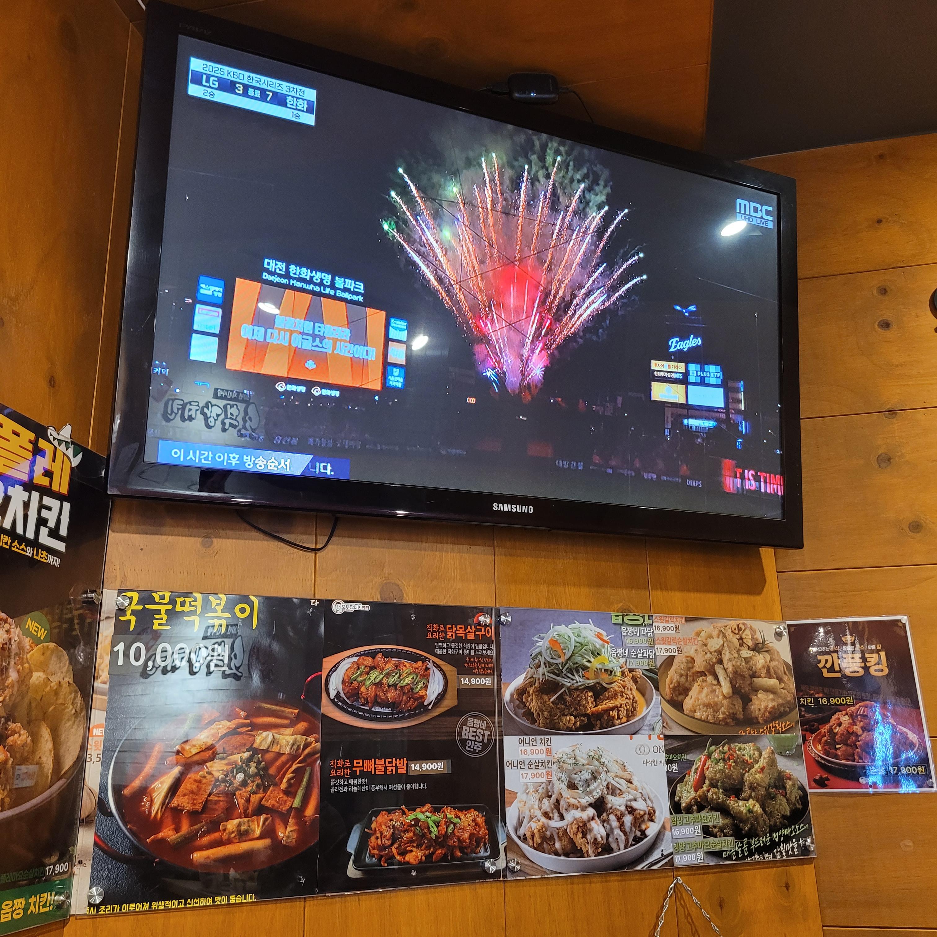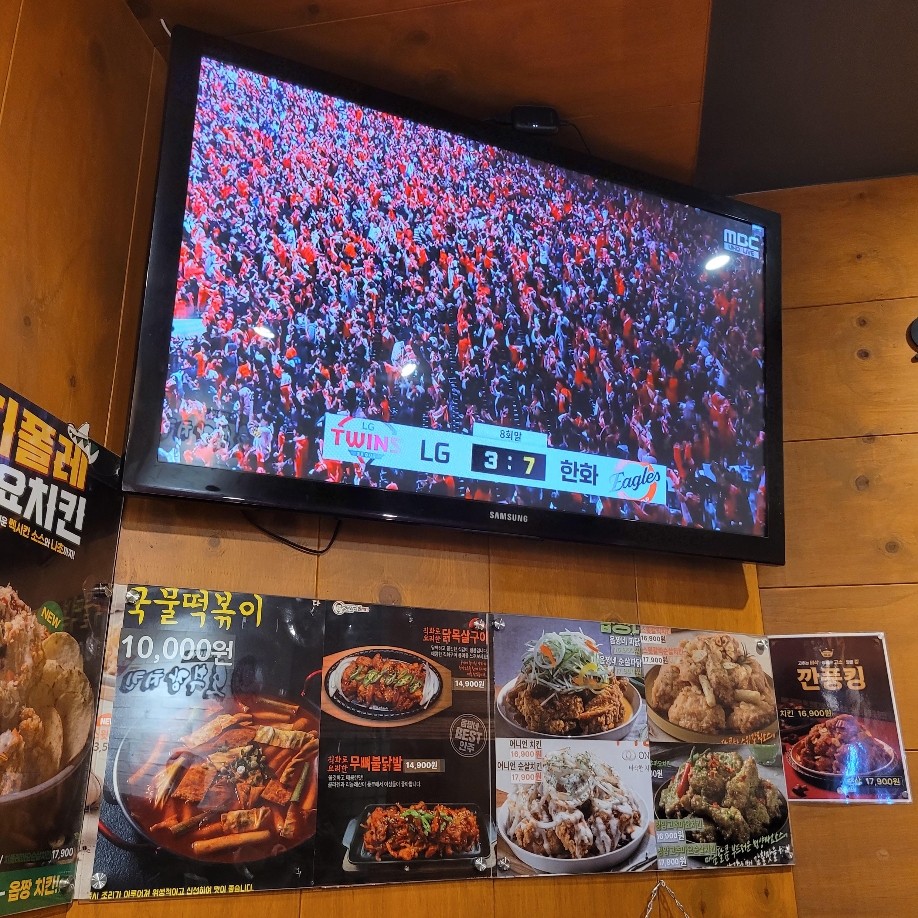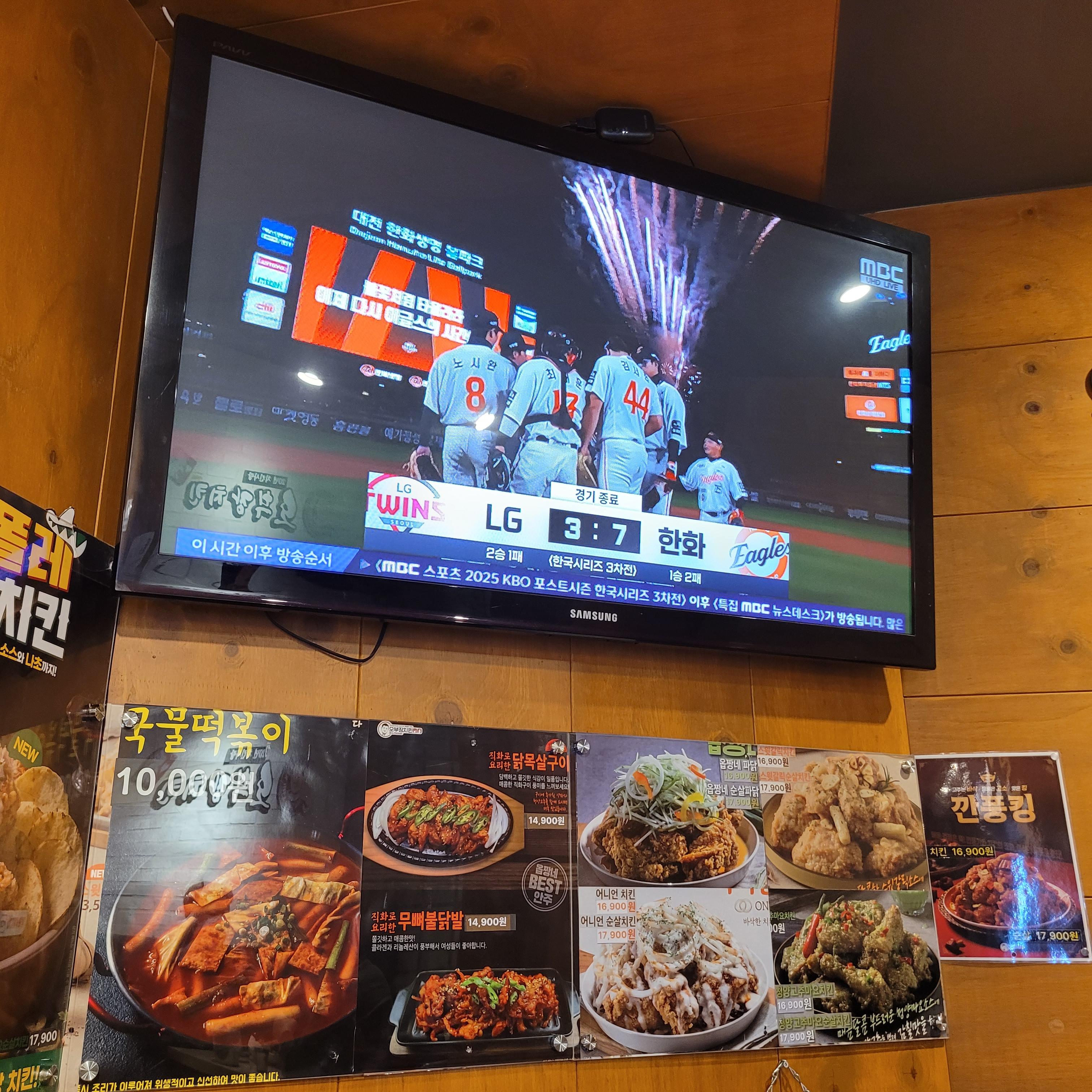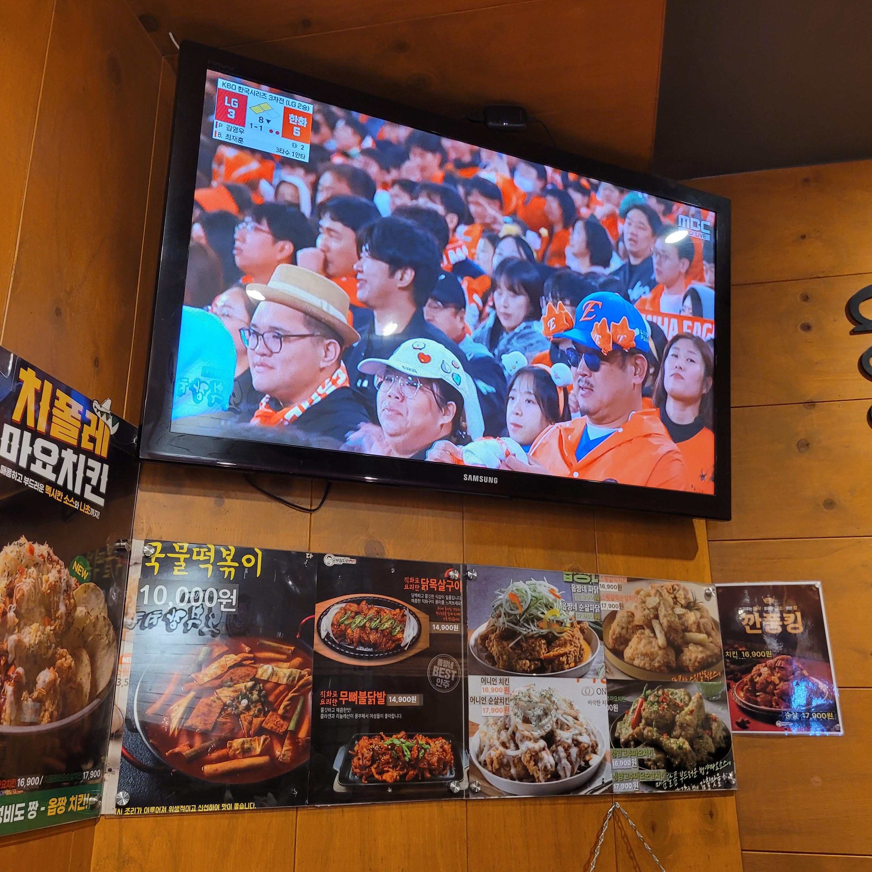 간만에 닭다리 4조각을 먹었습니다. 마침 TV에서는 한국시리즈 경기가 열리고 있었는데