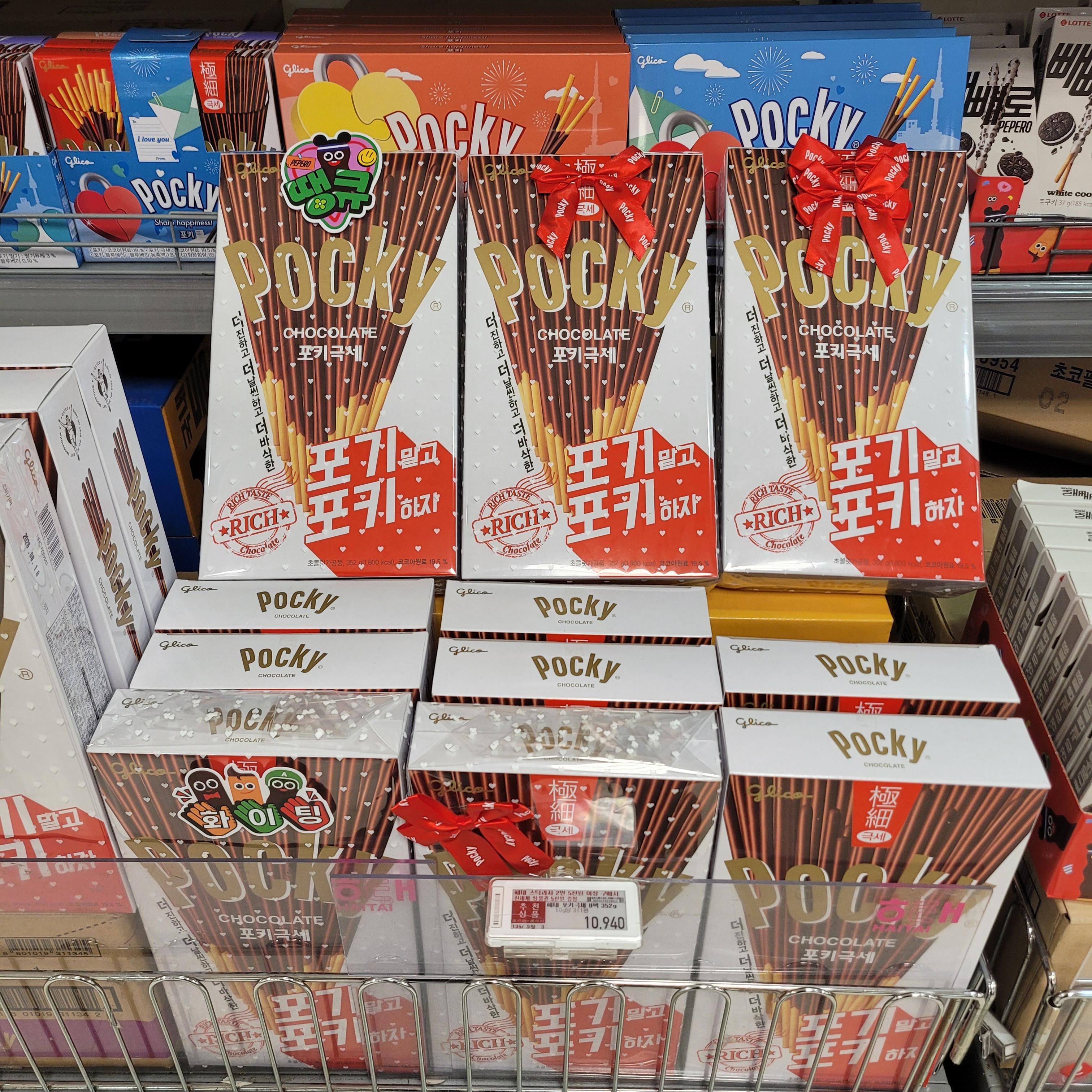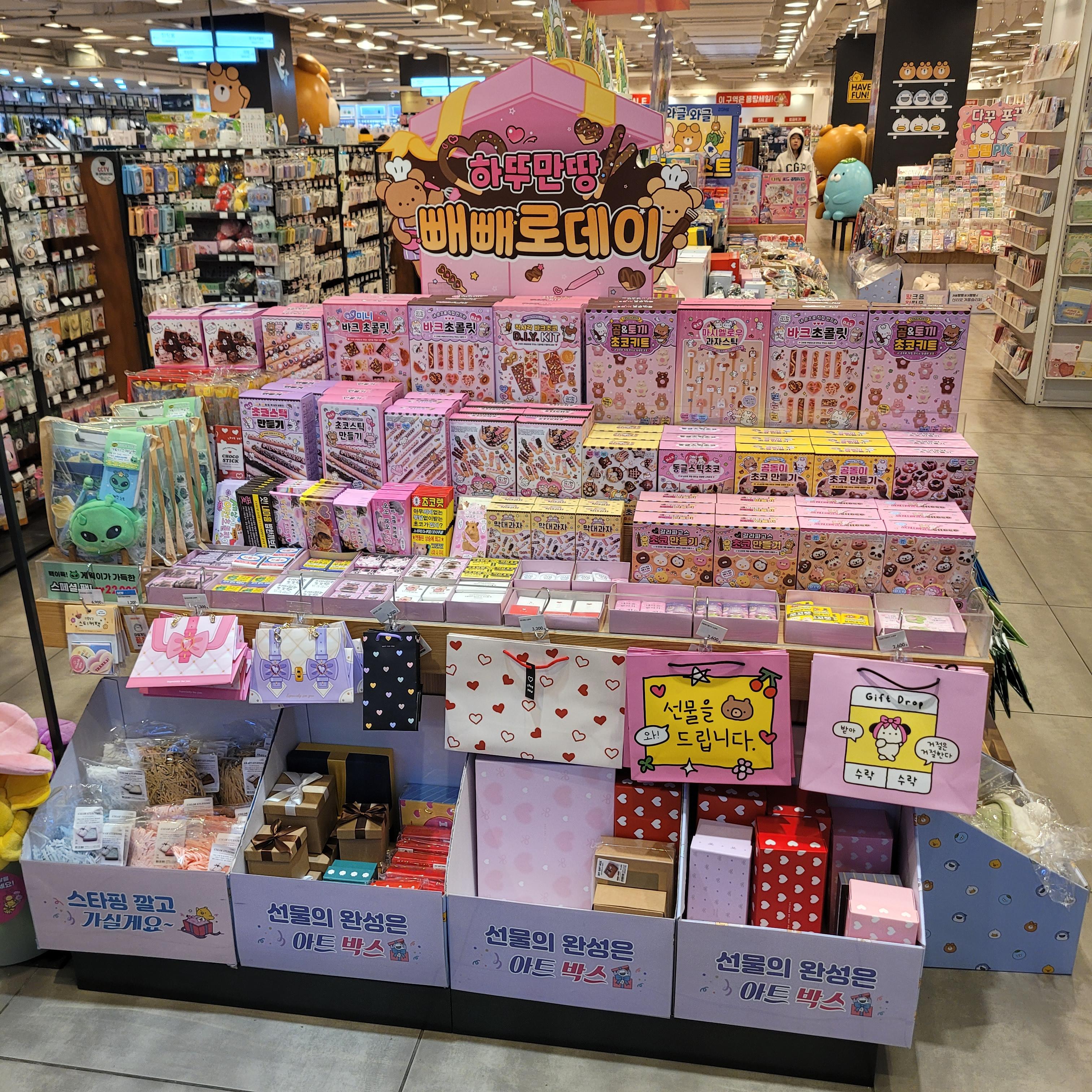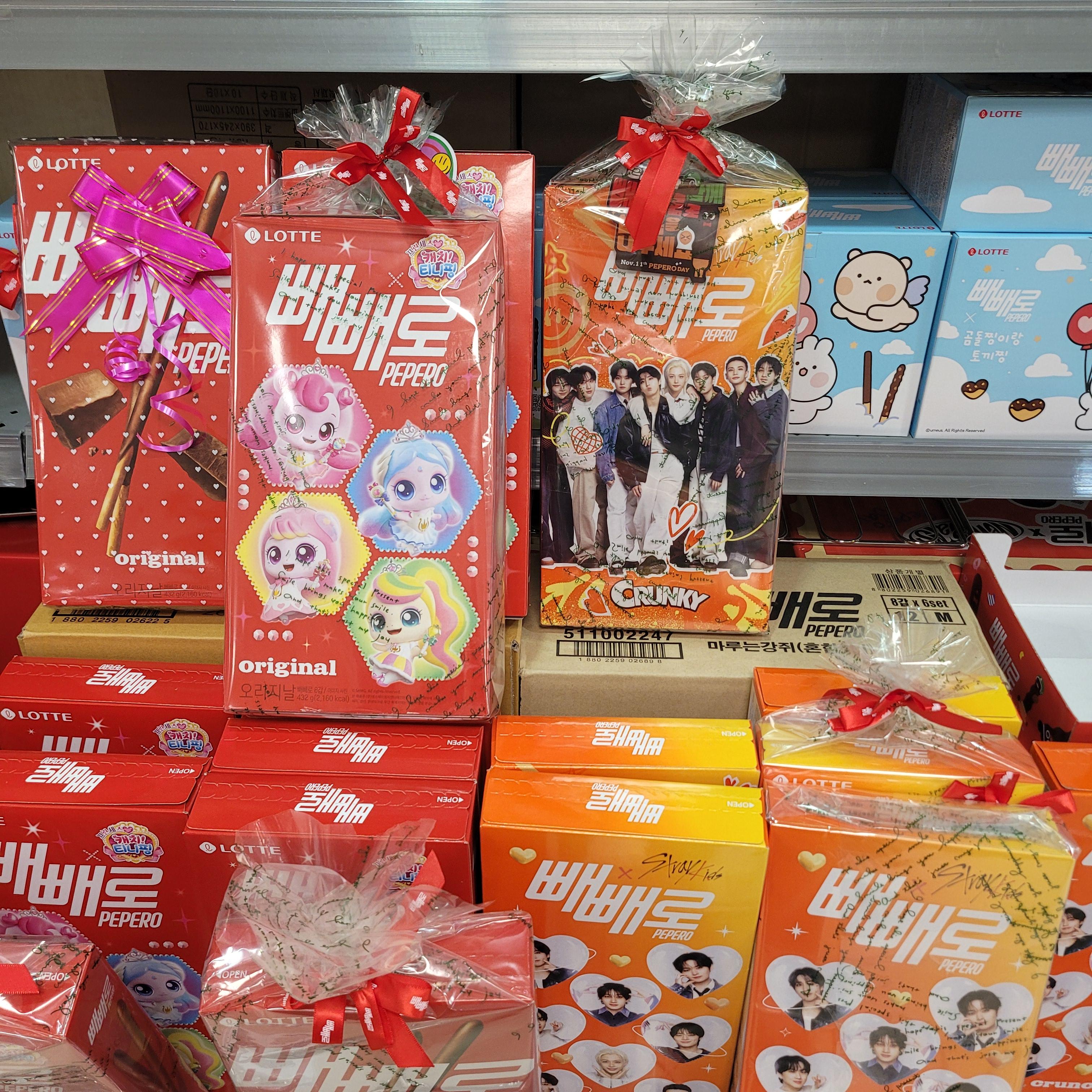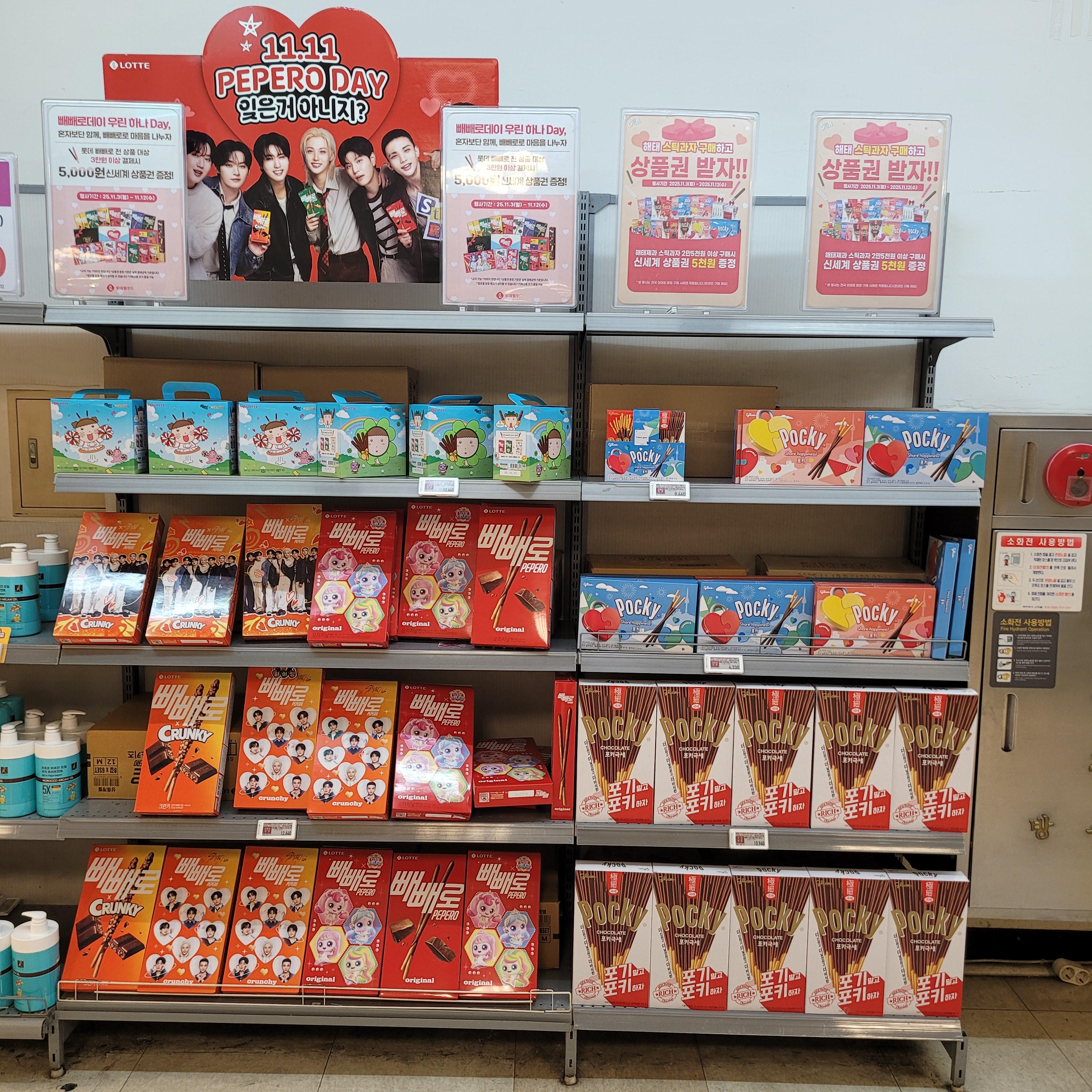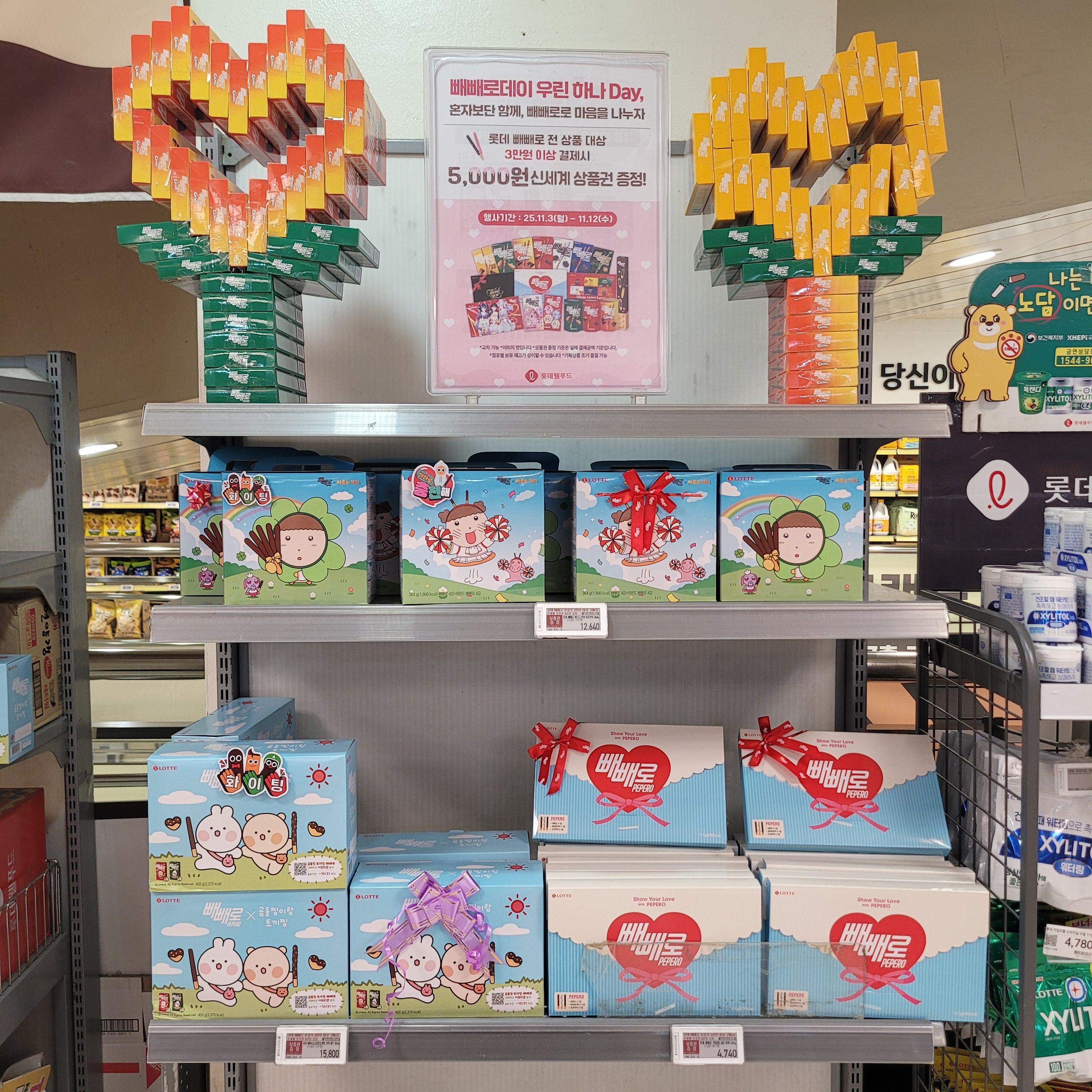 빼빼로 세트와 초콜릿 세트들이 많이 진열되었더라고요.