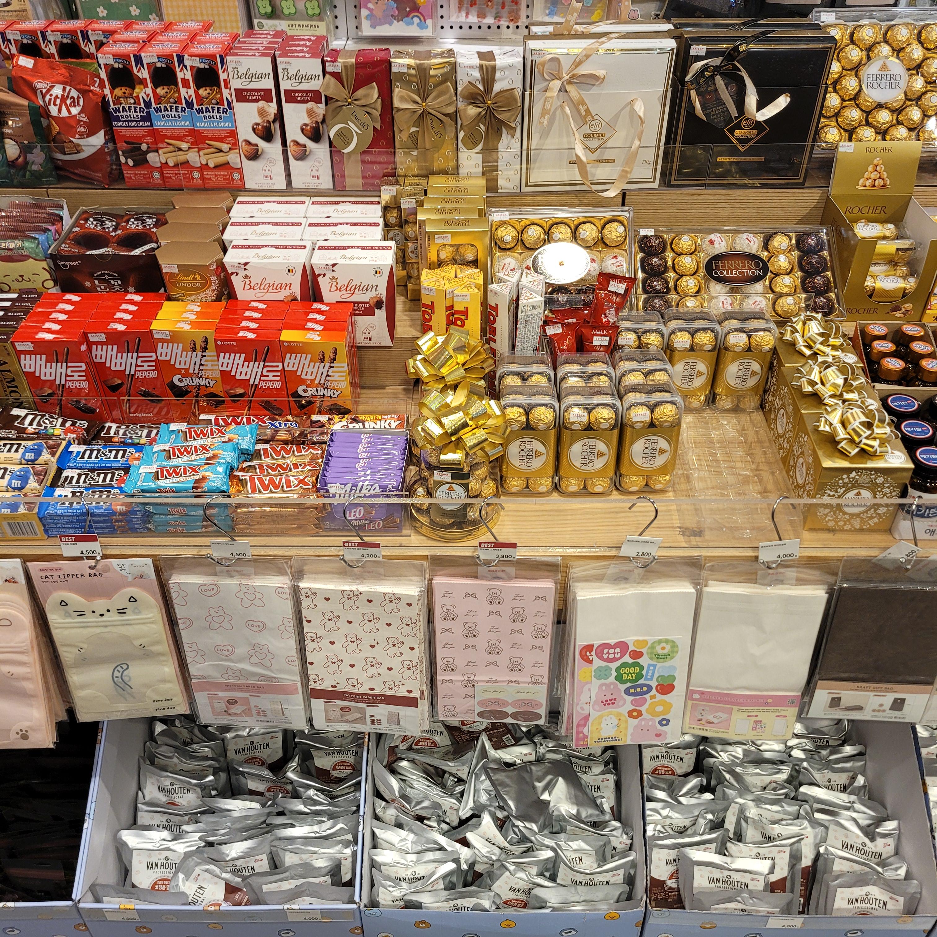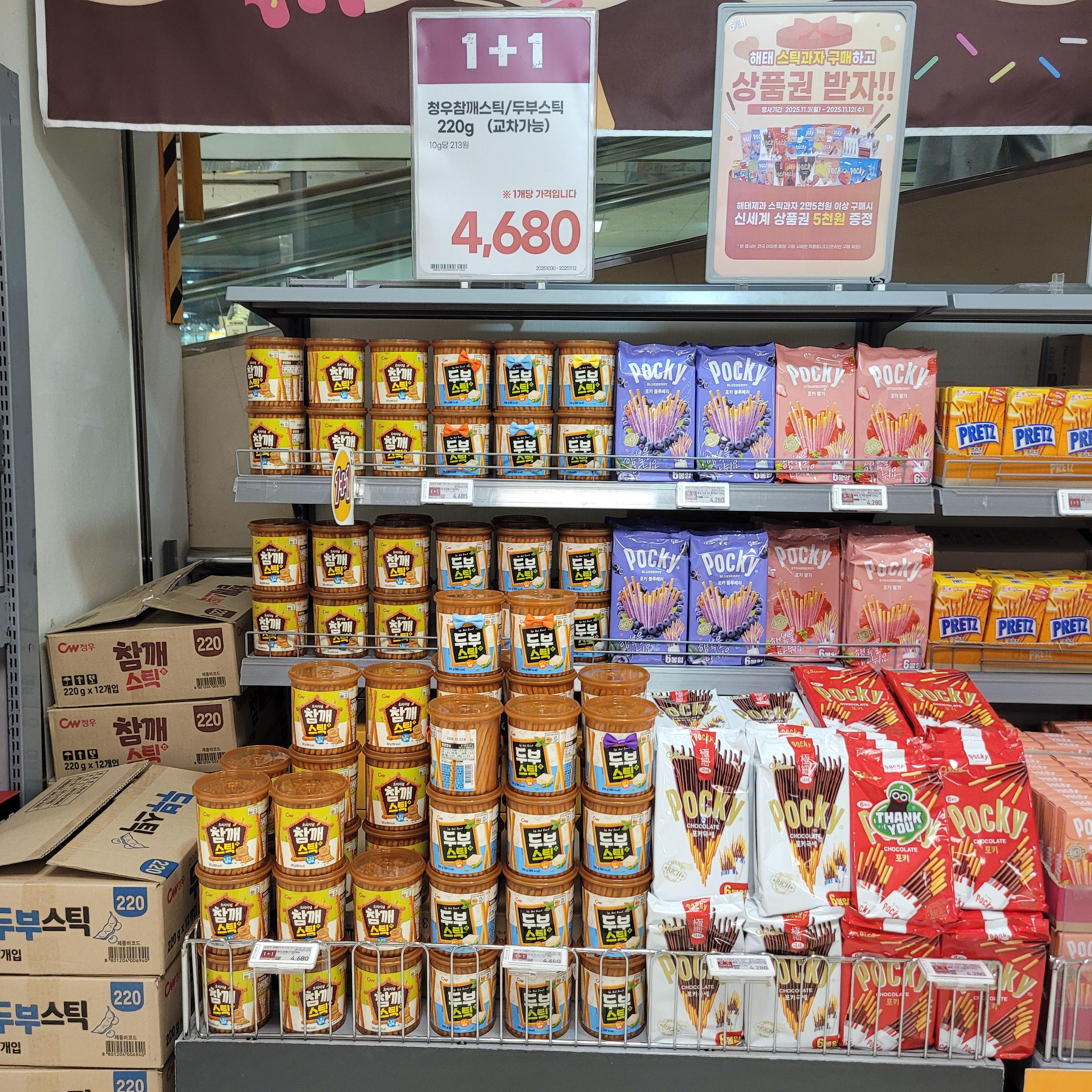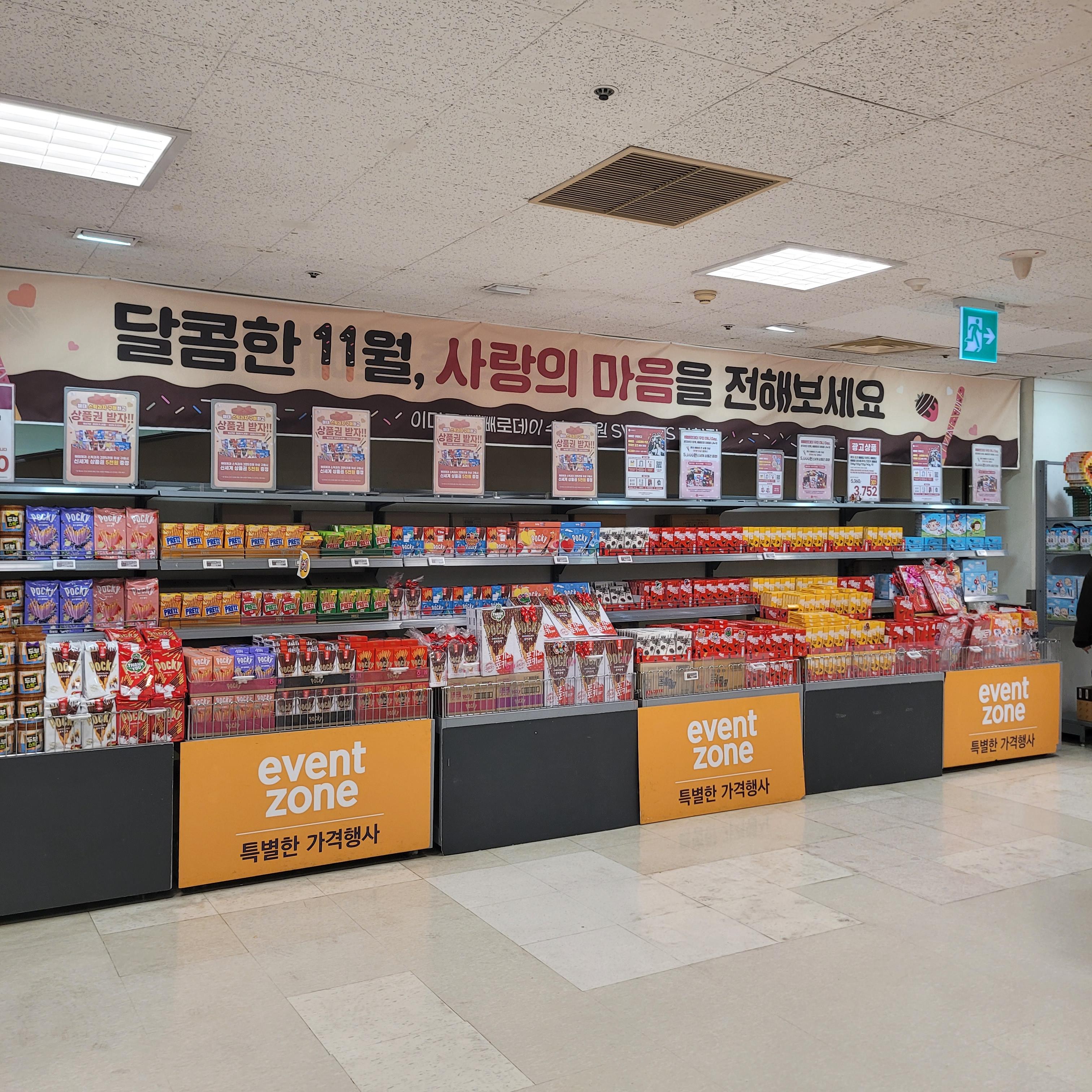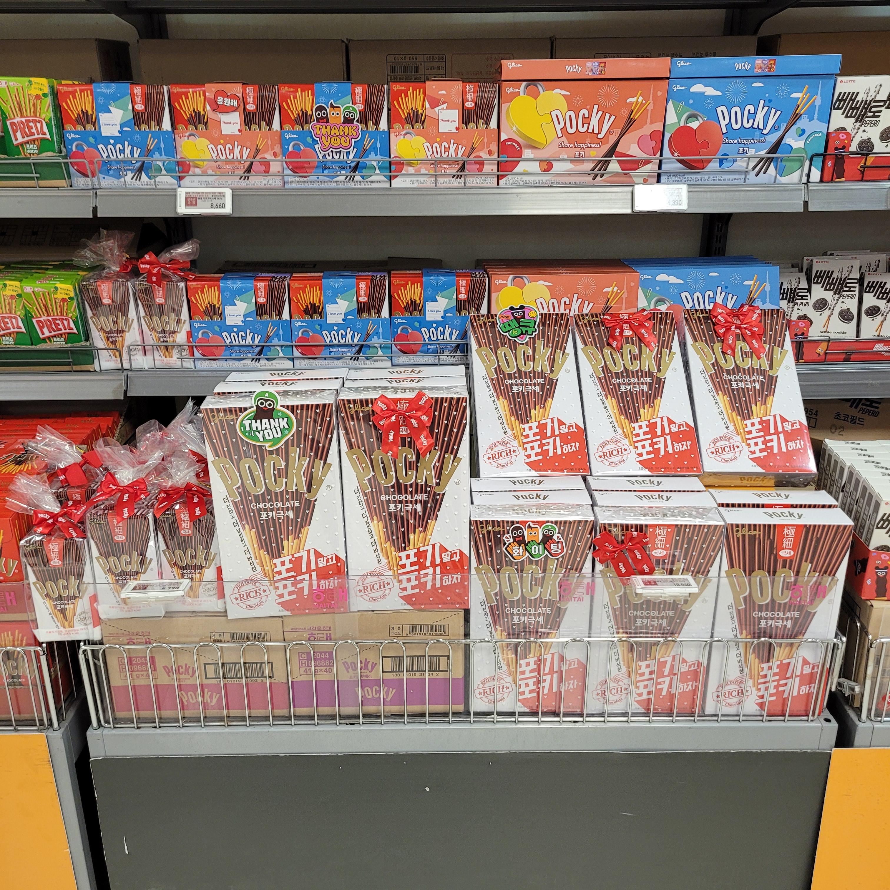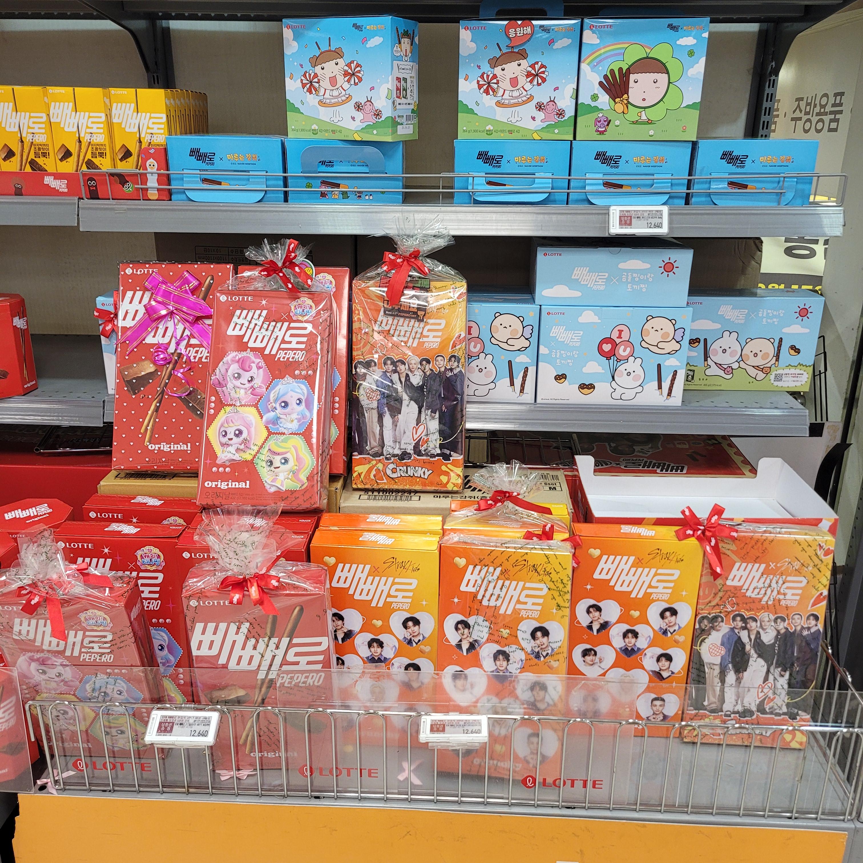 빼빼로 세트와 초콜릿 세트들이 많이 진열되었더라고요.