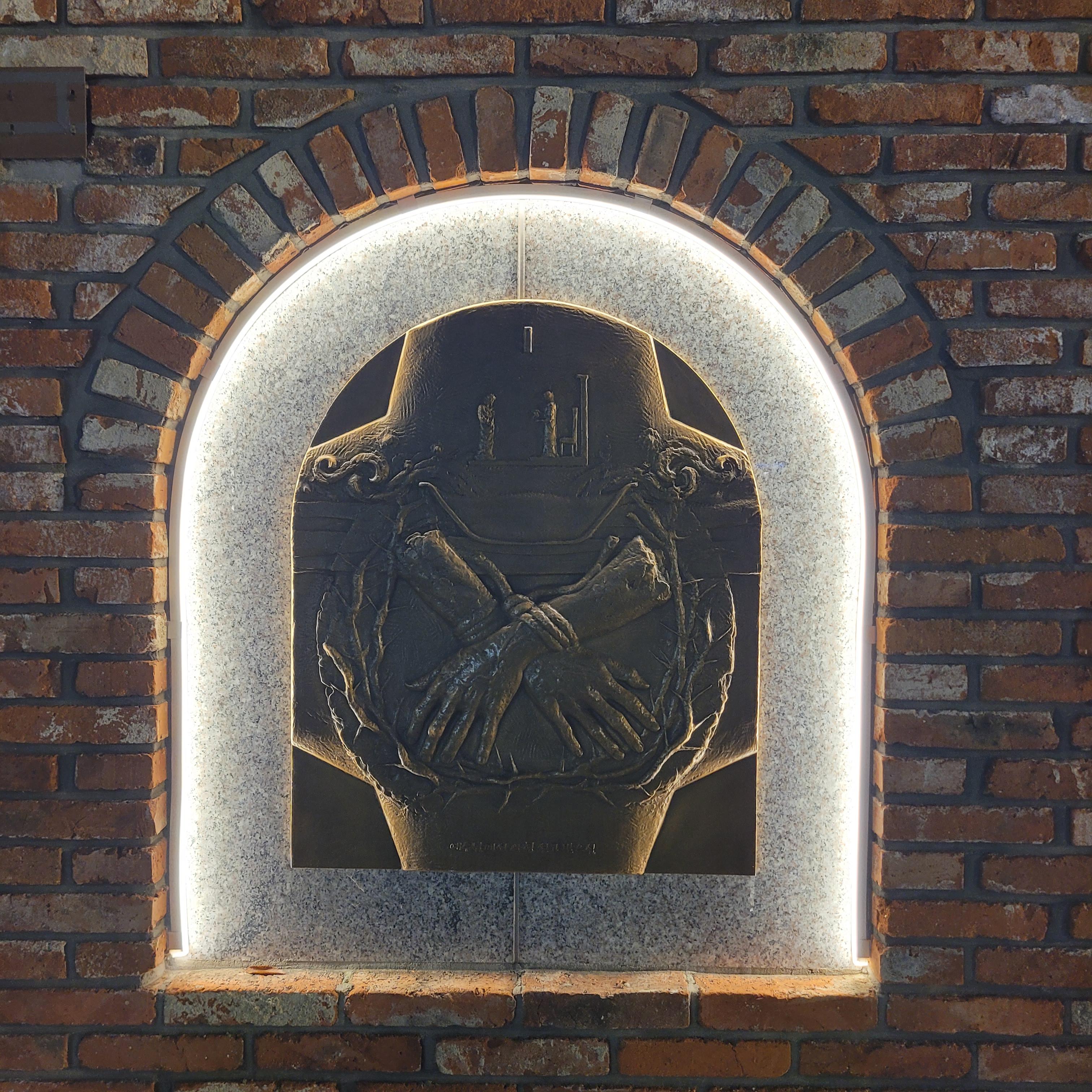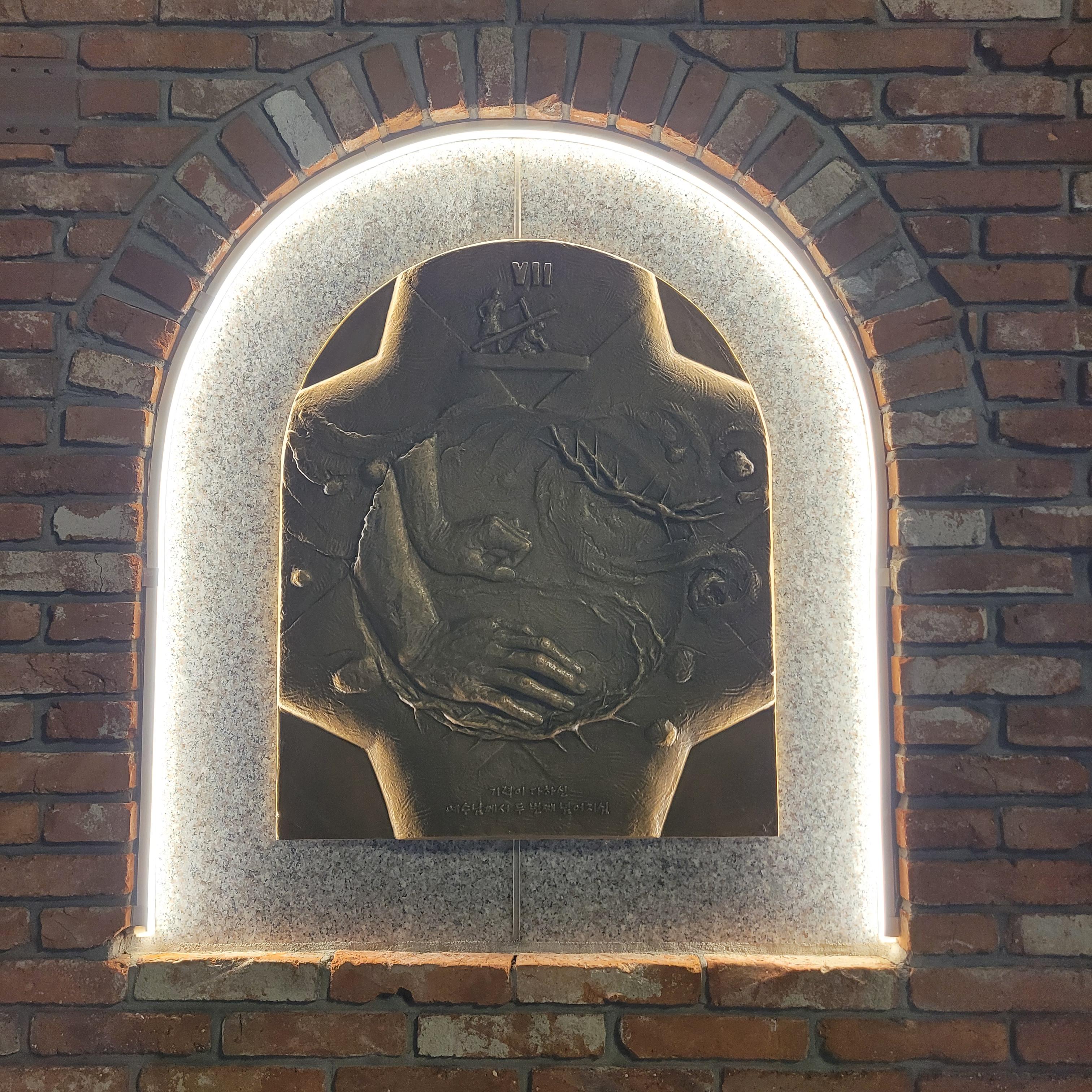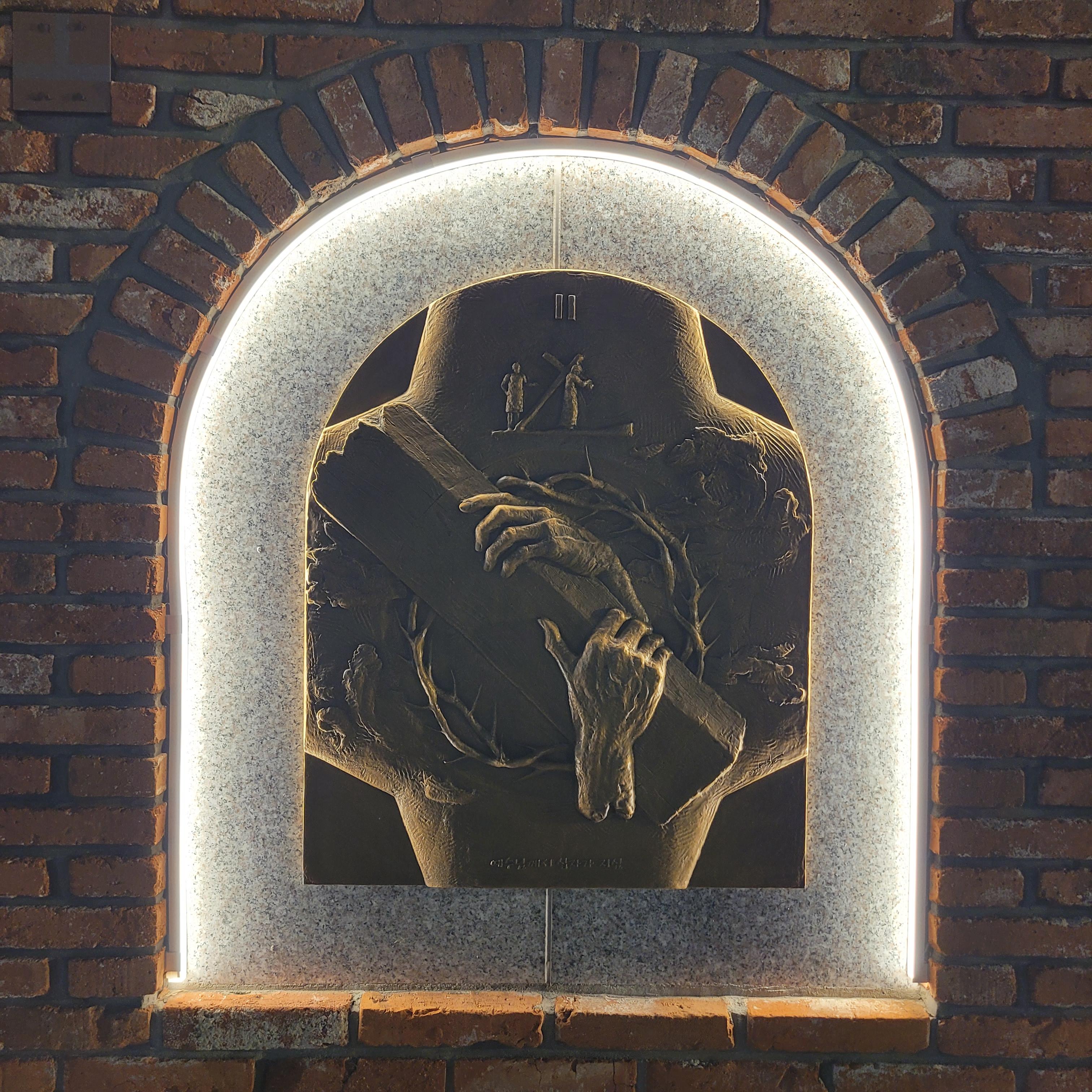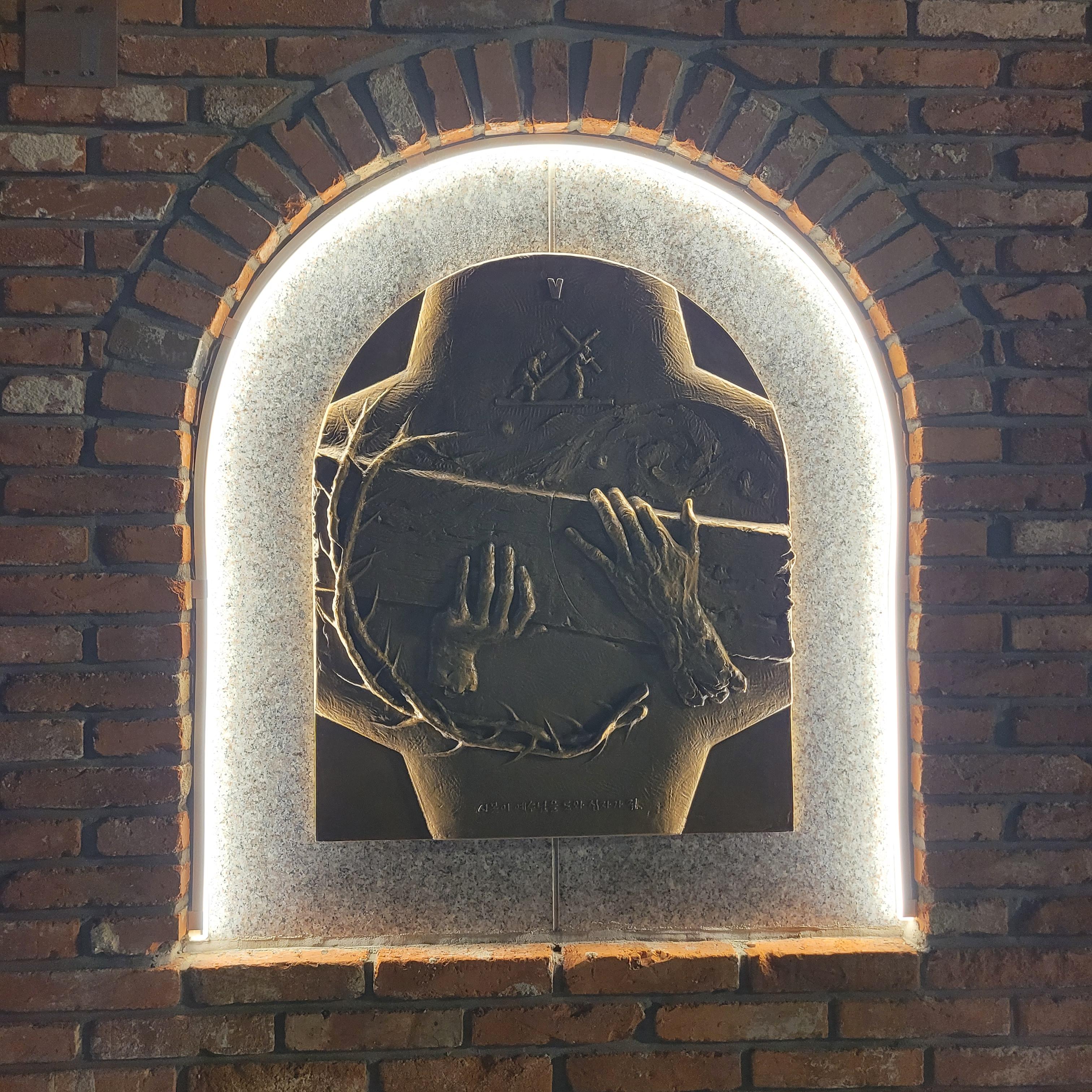 트리 뒤로 계단을 올라가보니 답동성당의 야경이 드러났는데