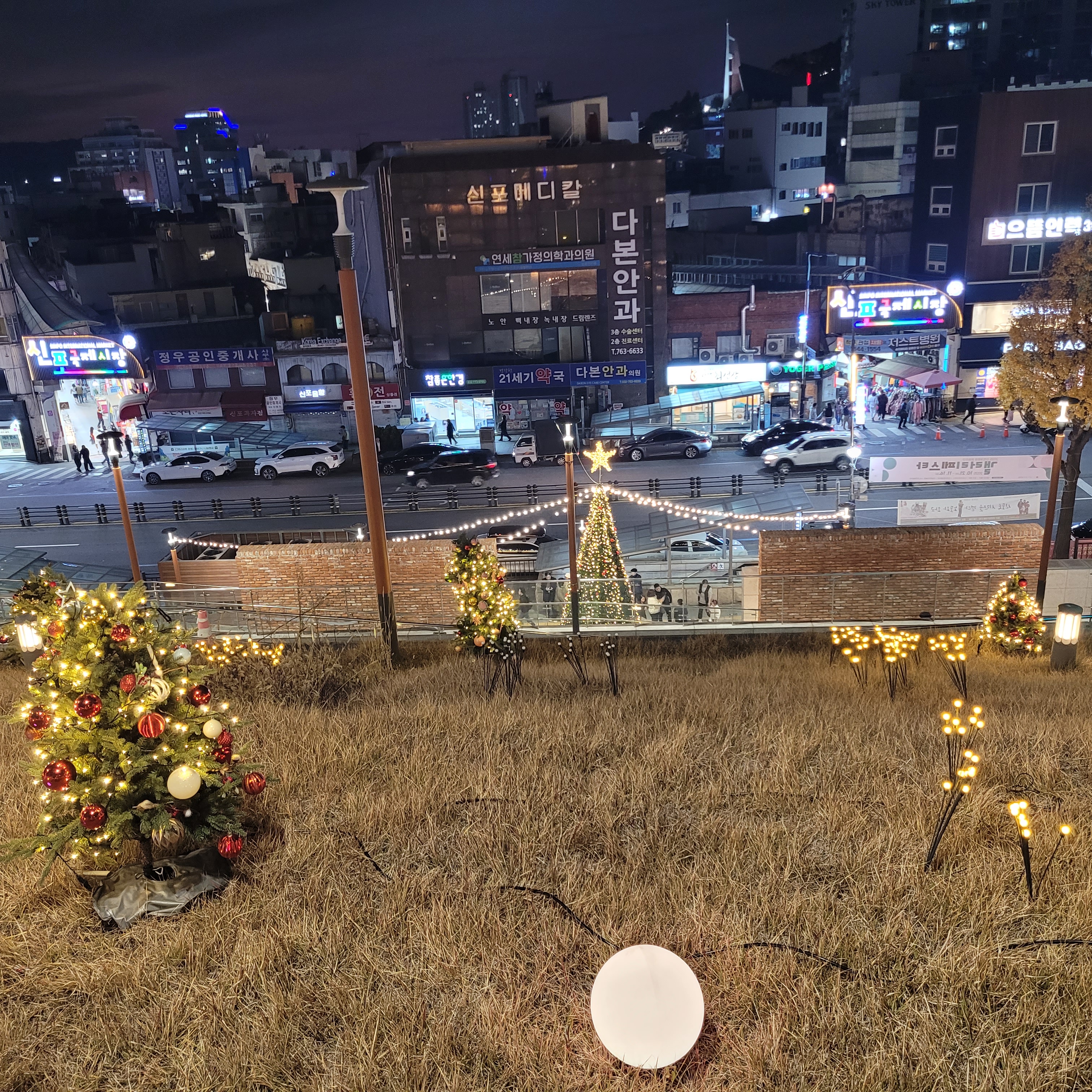 이곳에도 이미 크리스마스 트리가 화려하게 점화되었고 주변에서