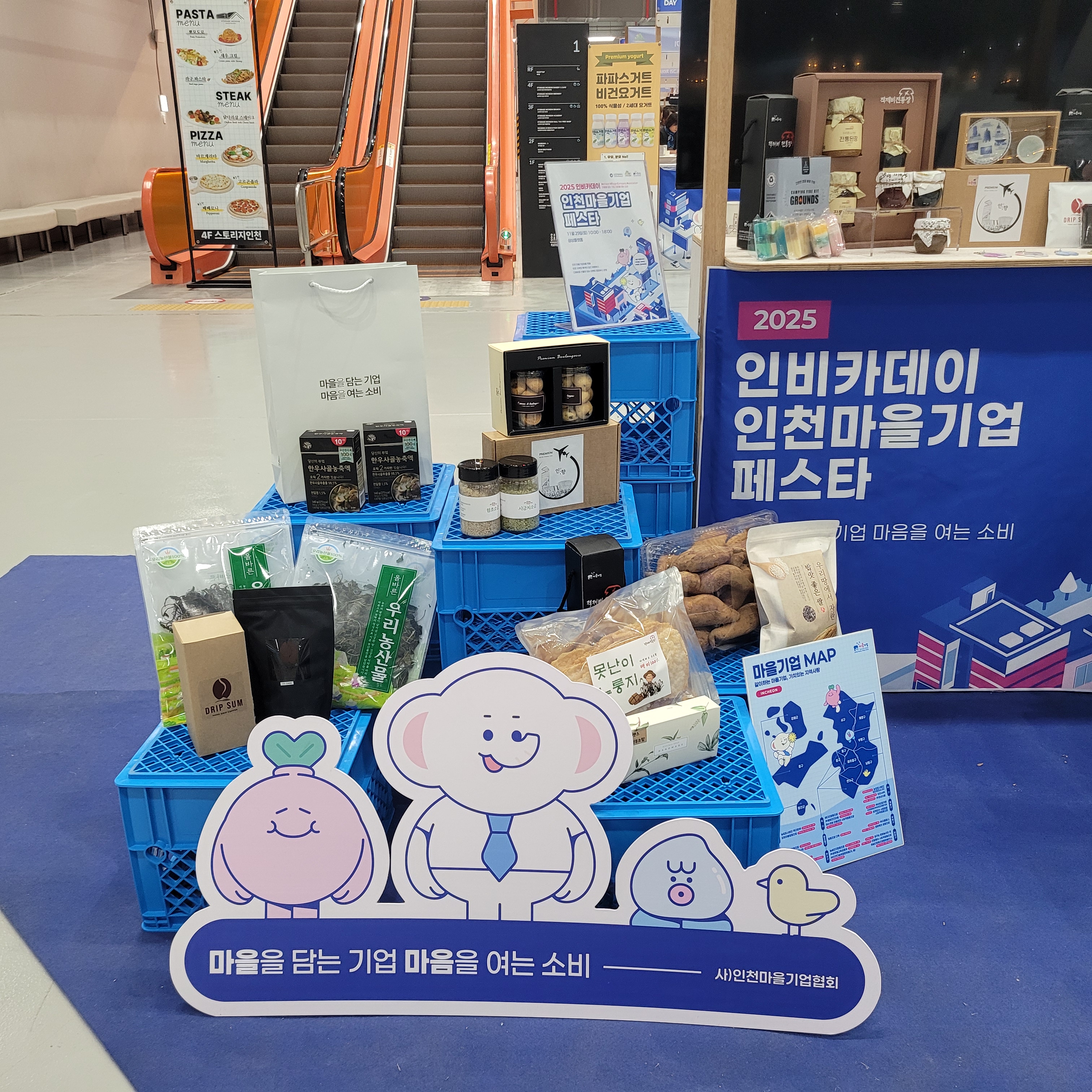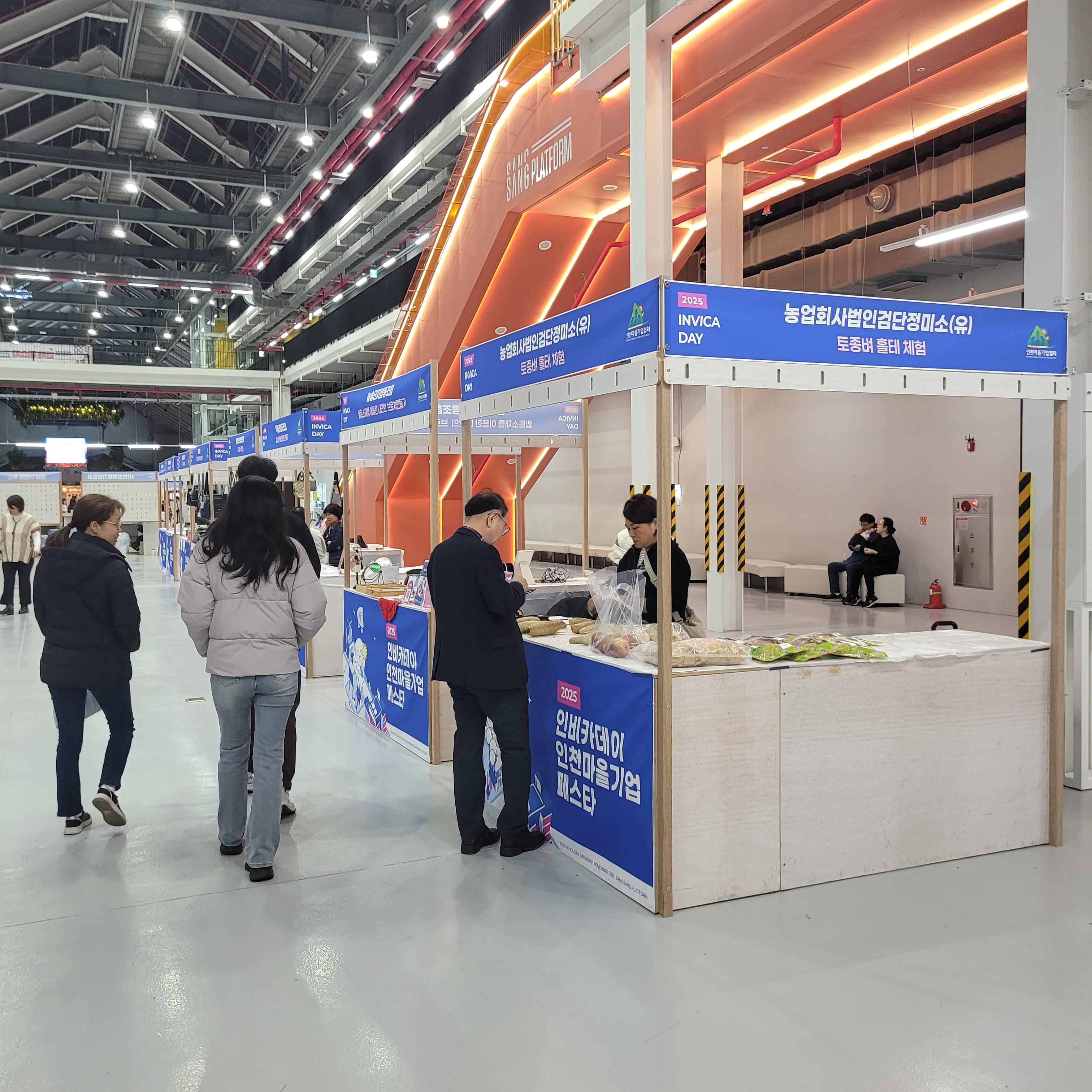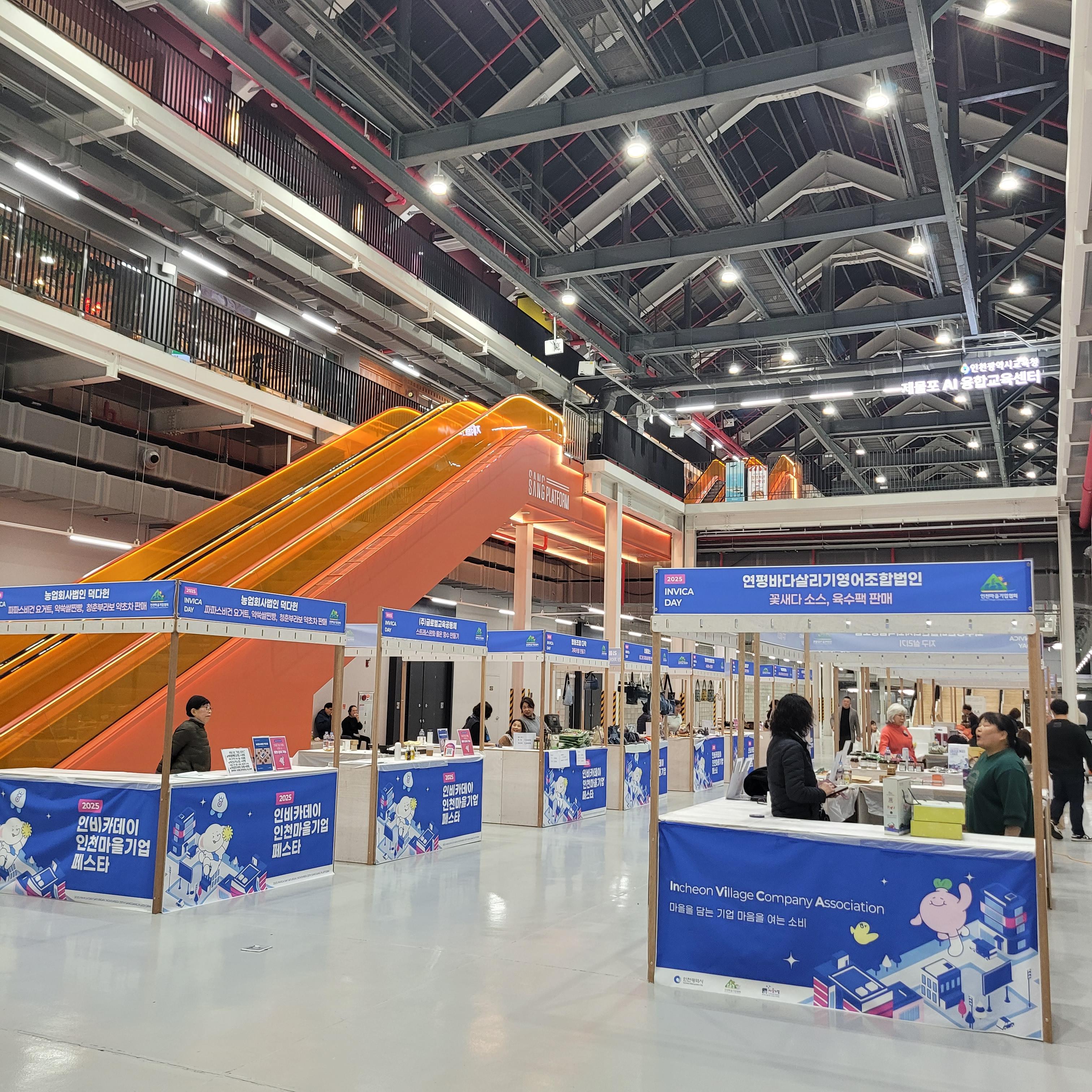웨이브홀 끝에서는 2025 인비카데이 인천마을기업 페스타도 같이 열리고 있어서