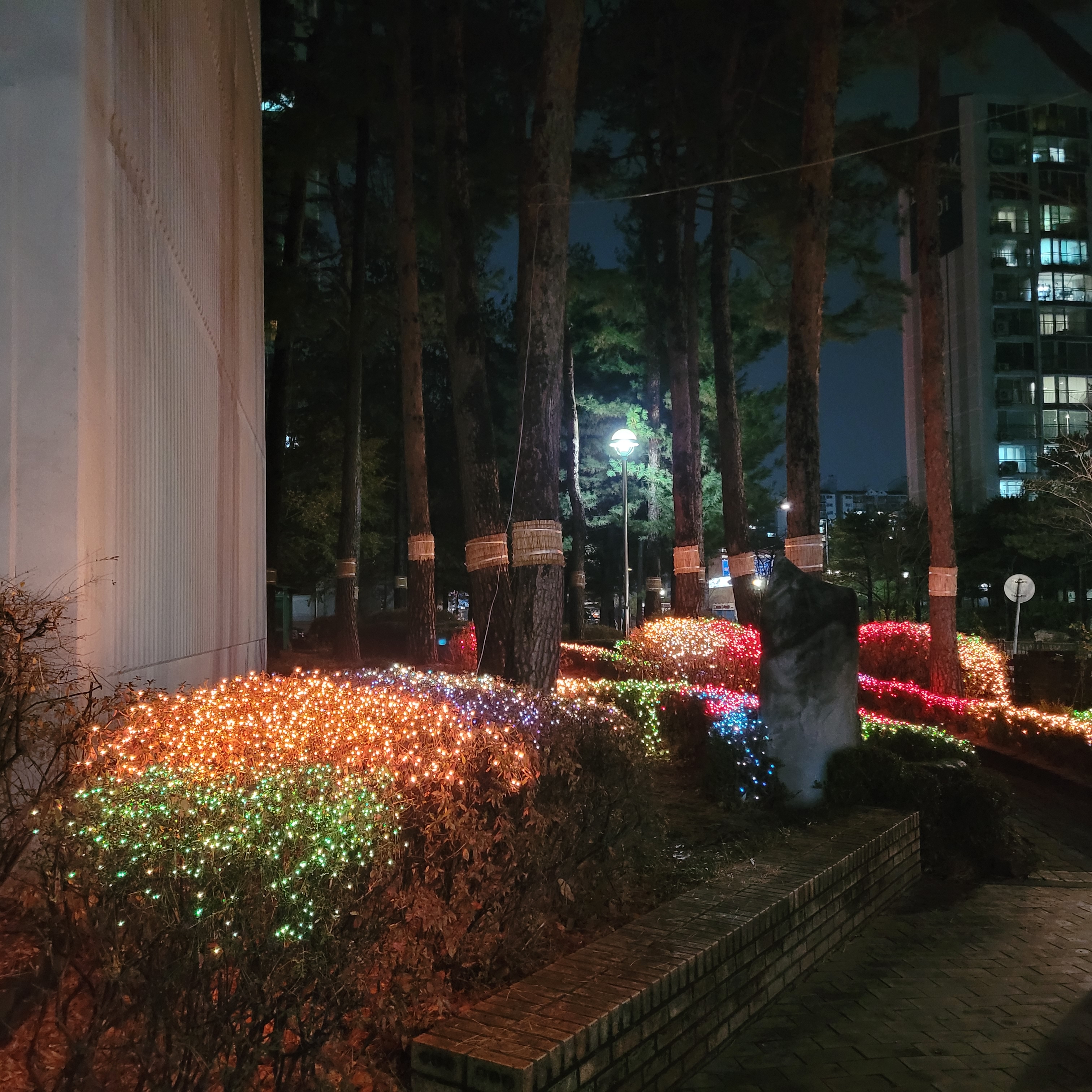 본가 도착하니까 본가 아파트 앞에도 불빛들이 멋지게 들어서 있었고요.