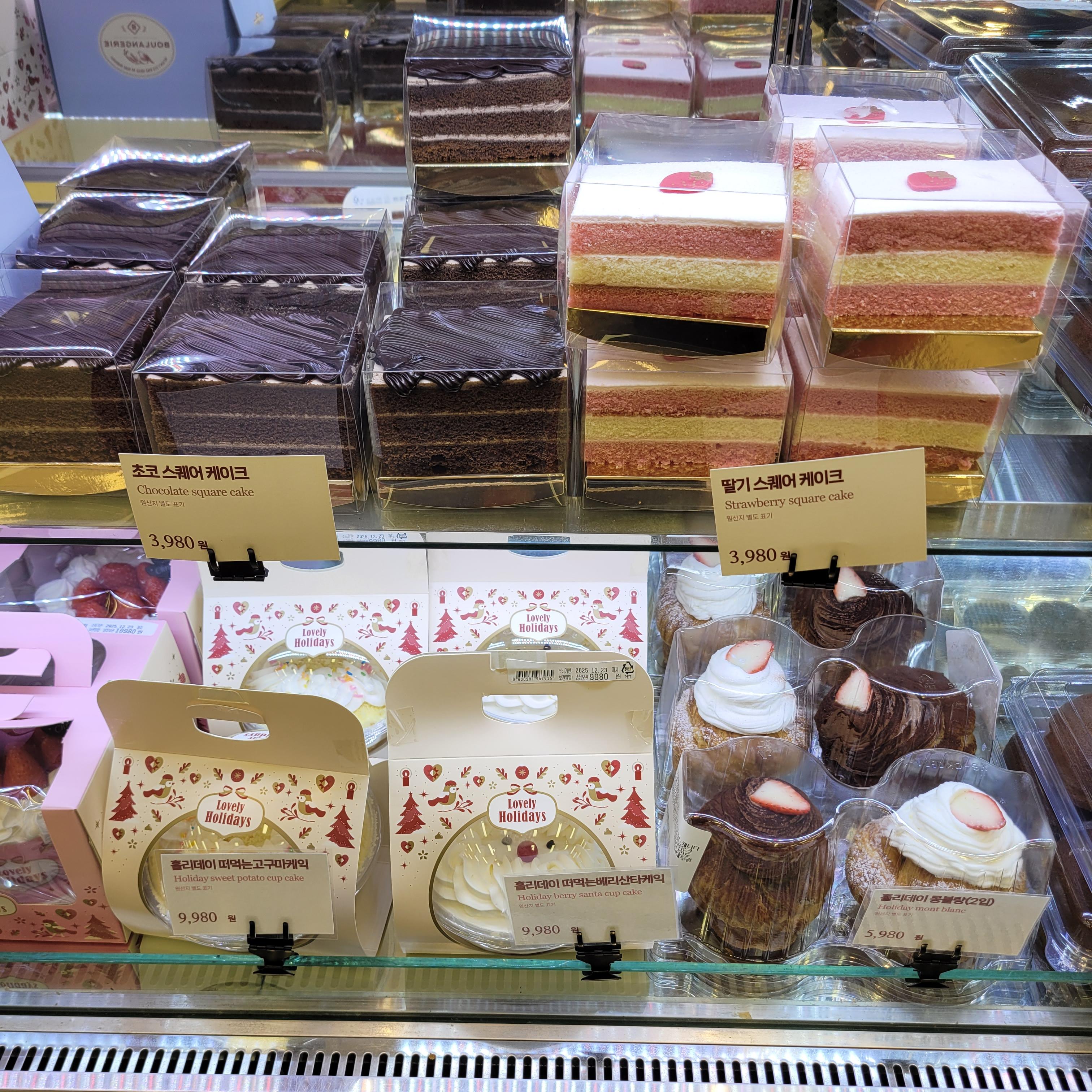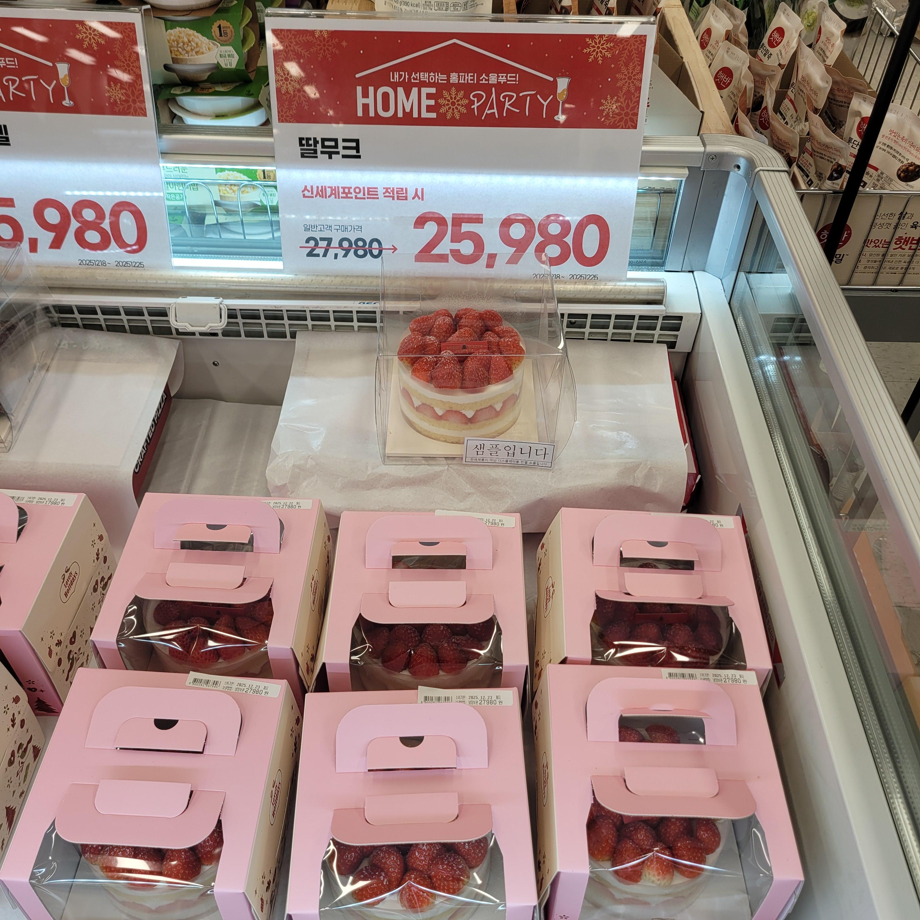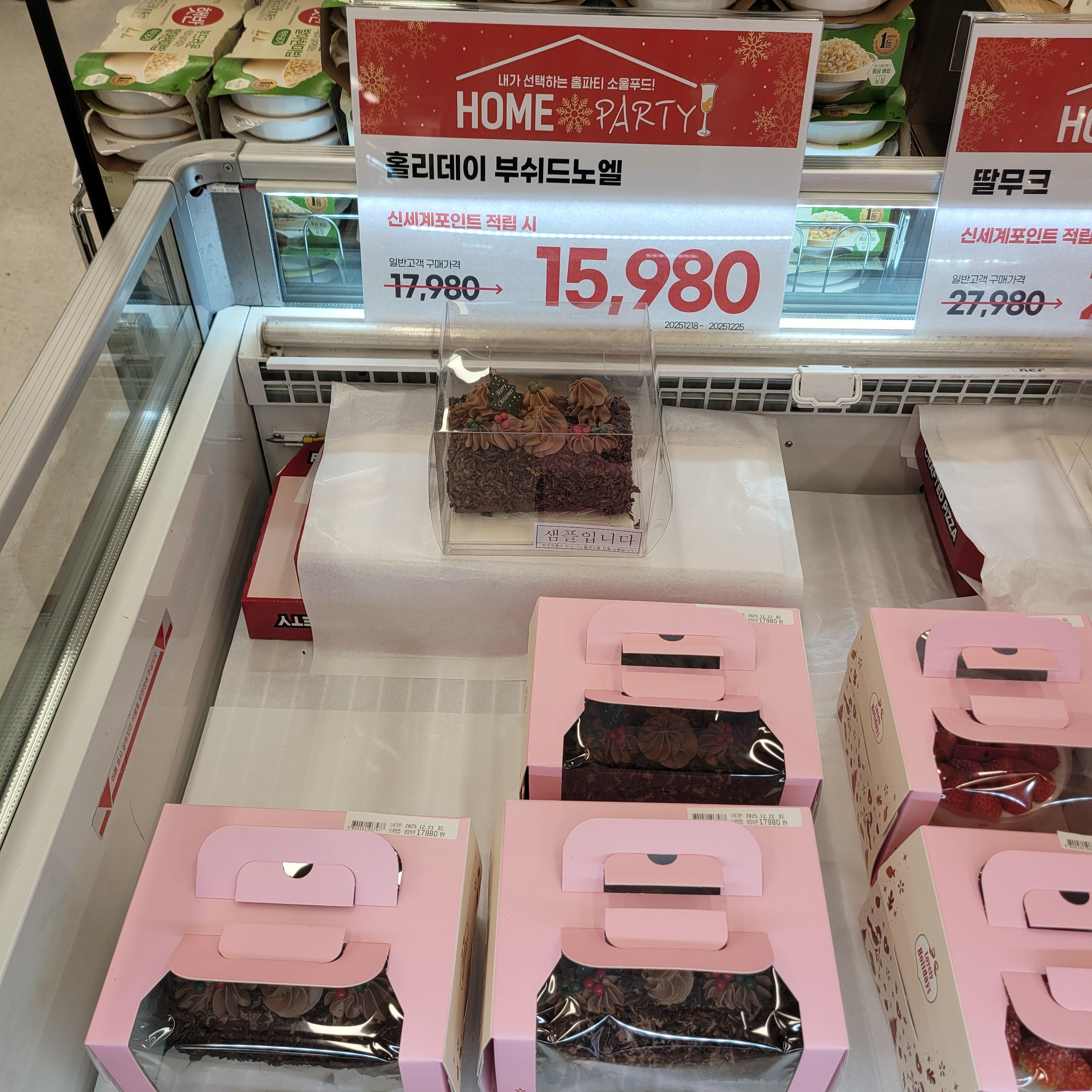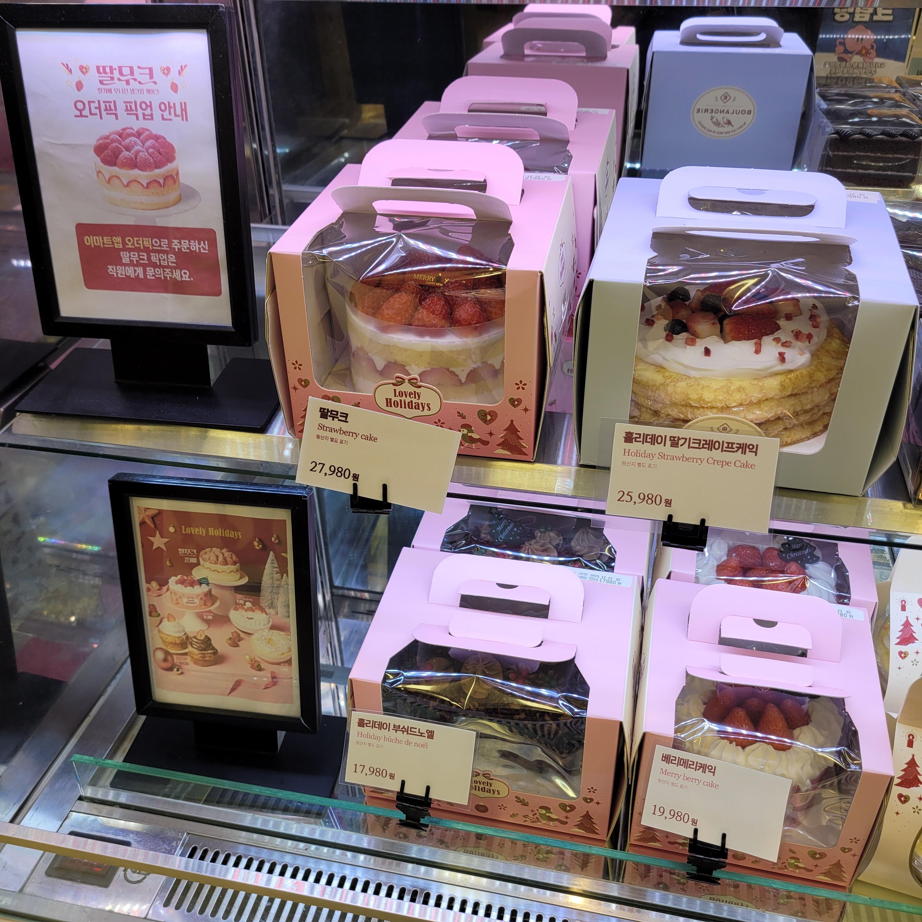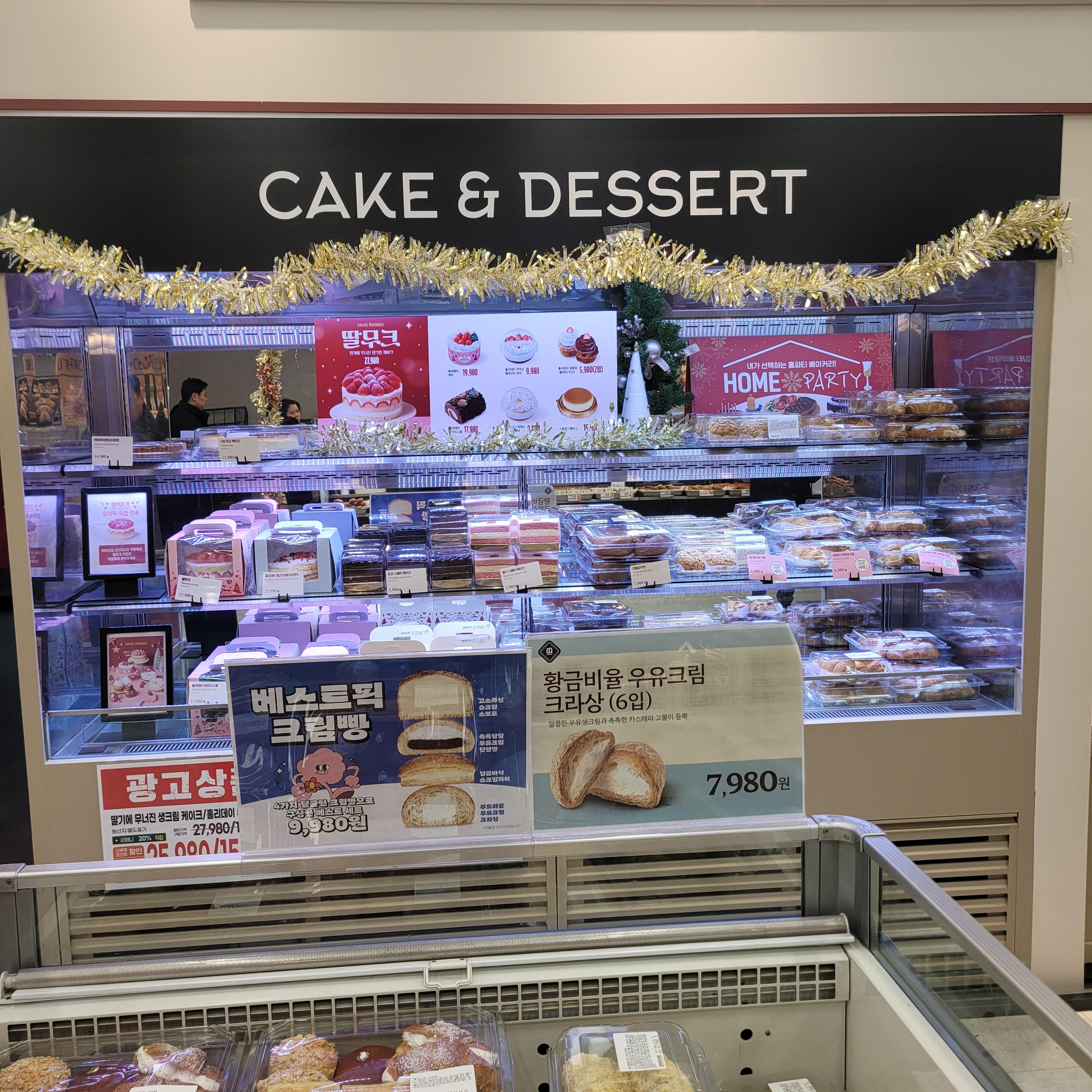크리스마스 관련 장식들과 크리스마스 케이크 선물 상품들이 많이 전시가