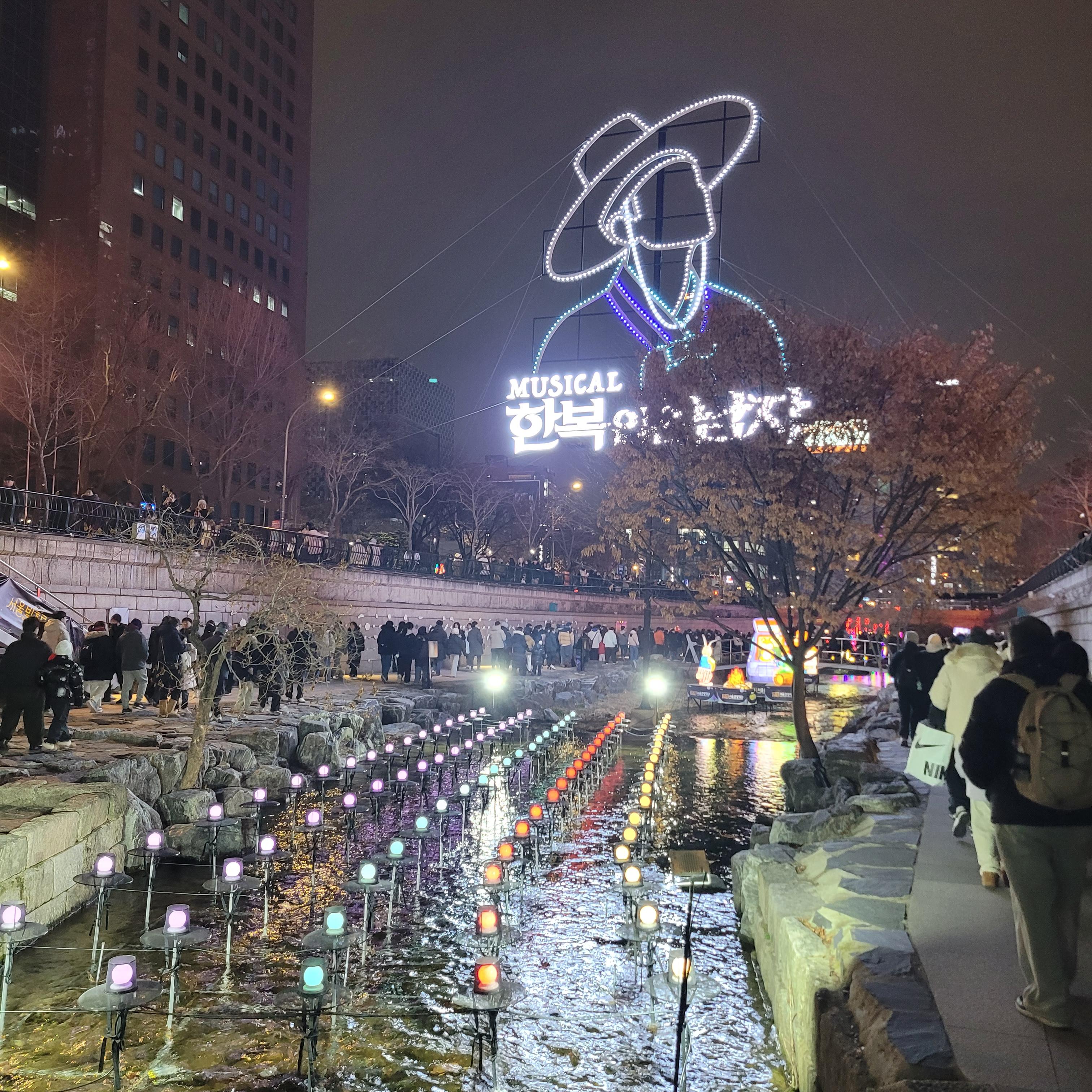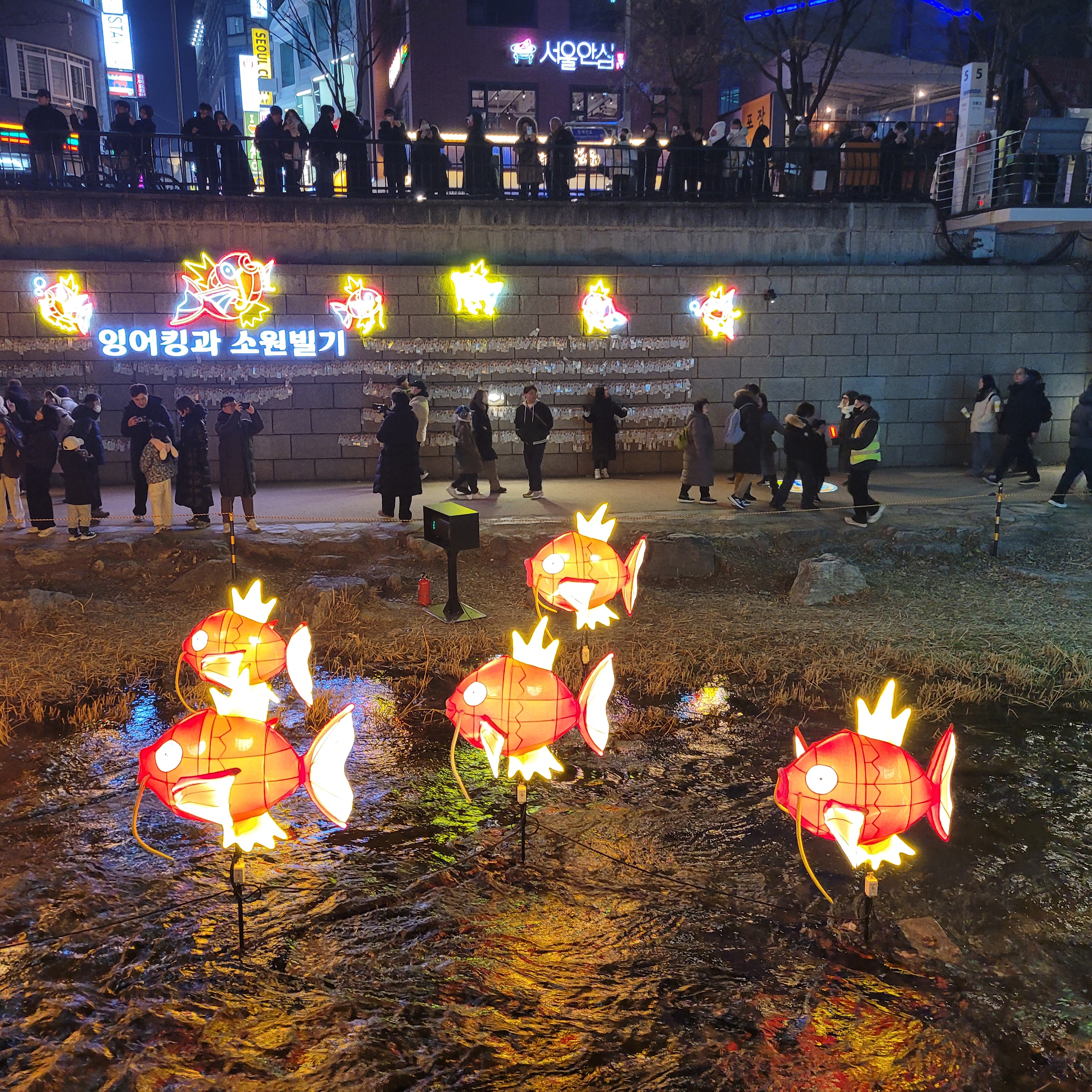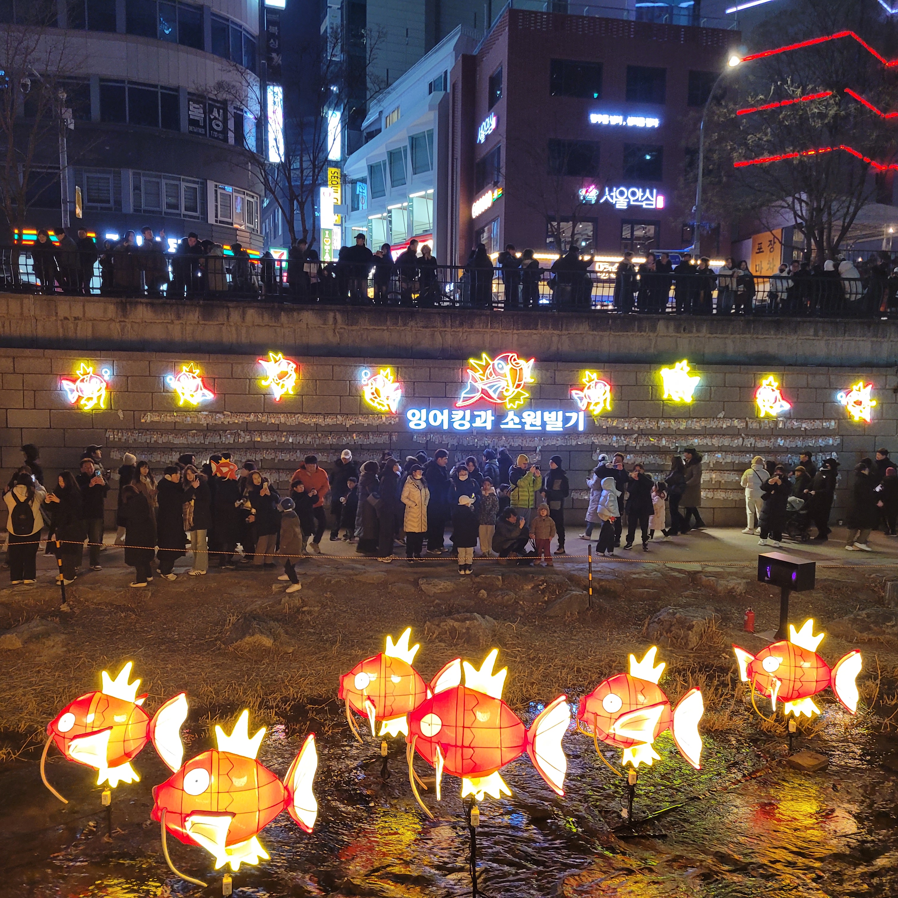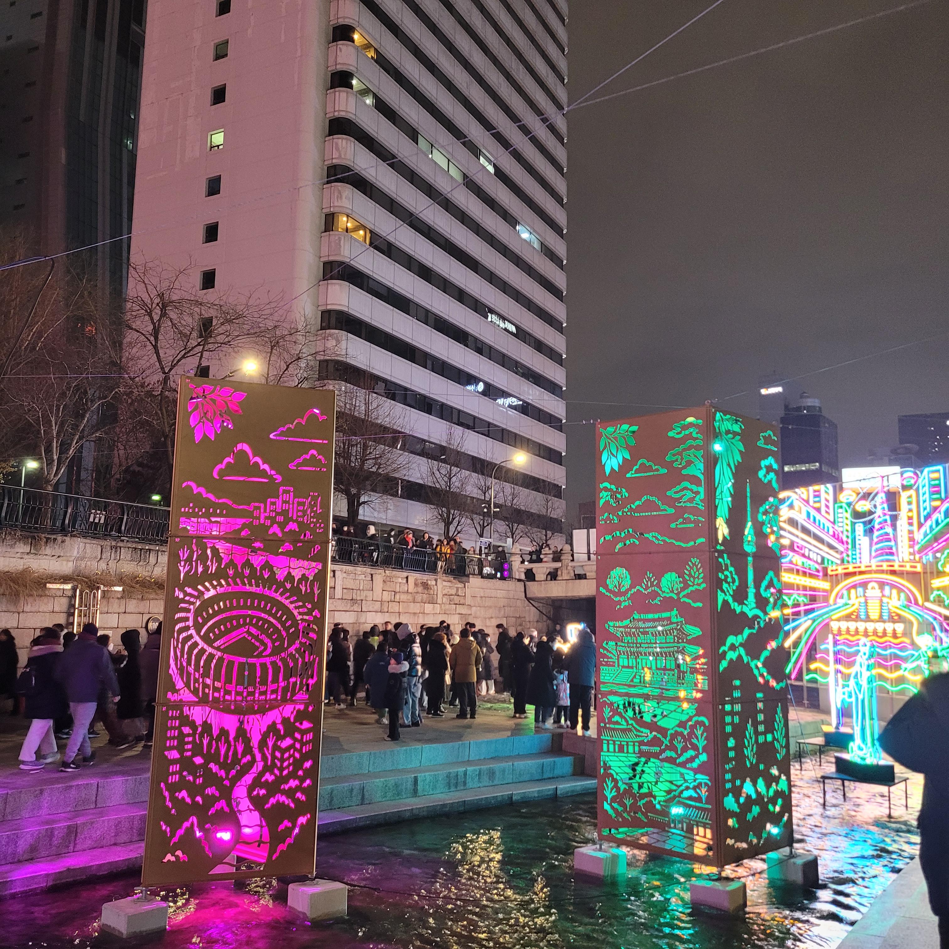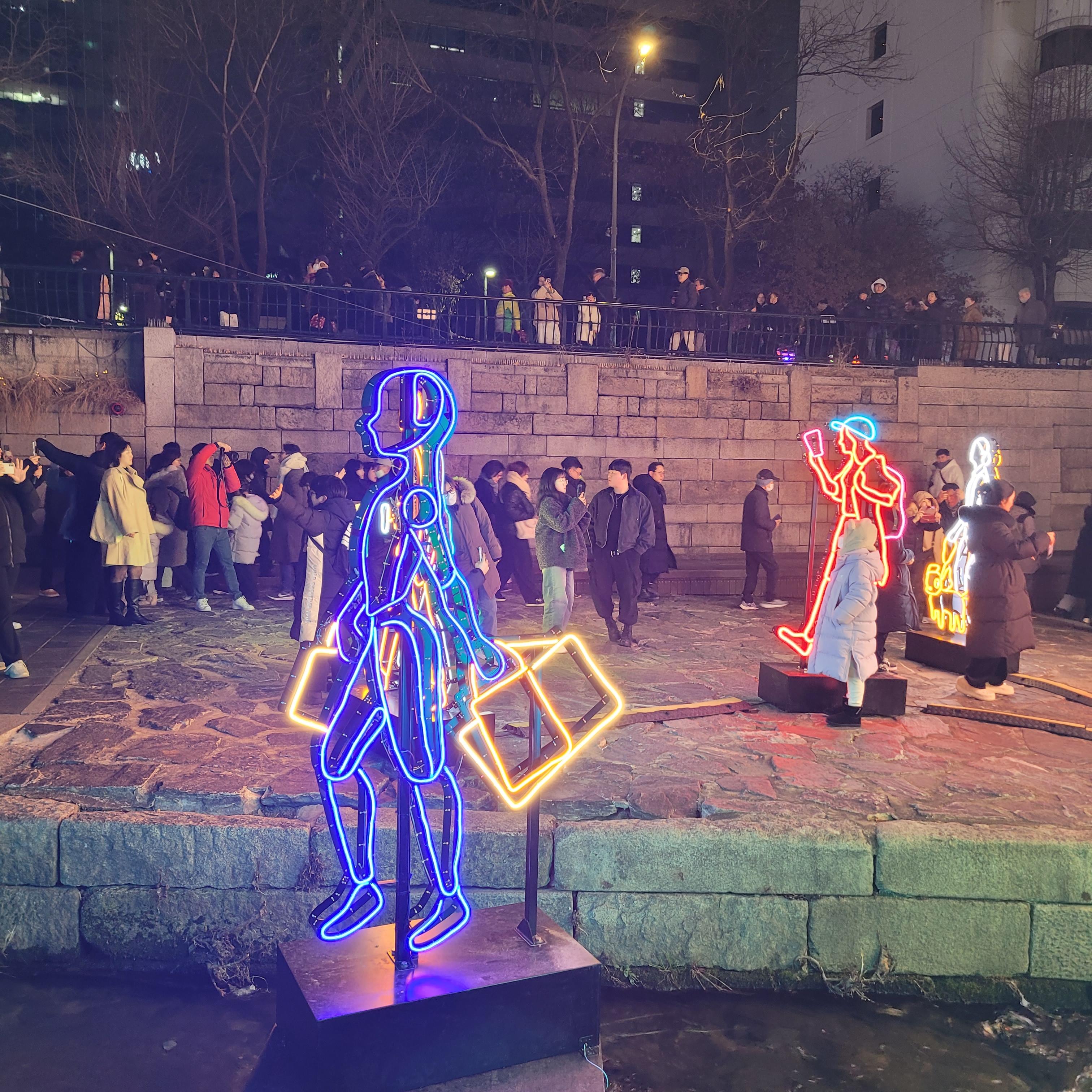 그리고 청계천 일대에도 갖가지 불빛 조형들이 전시되어 있었고 잉어킹빵을 파는 상점도