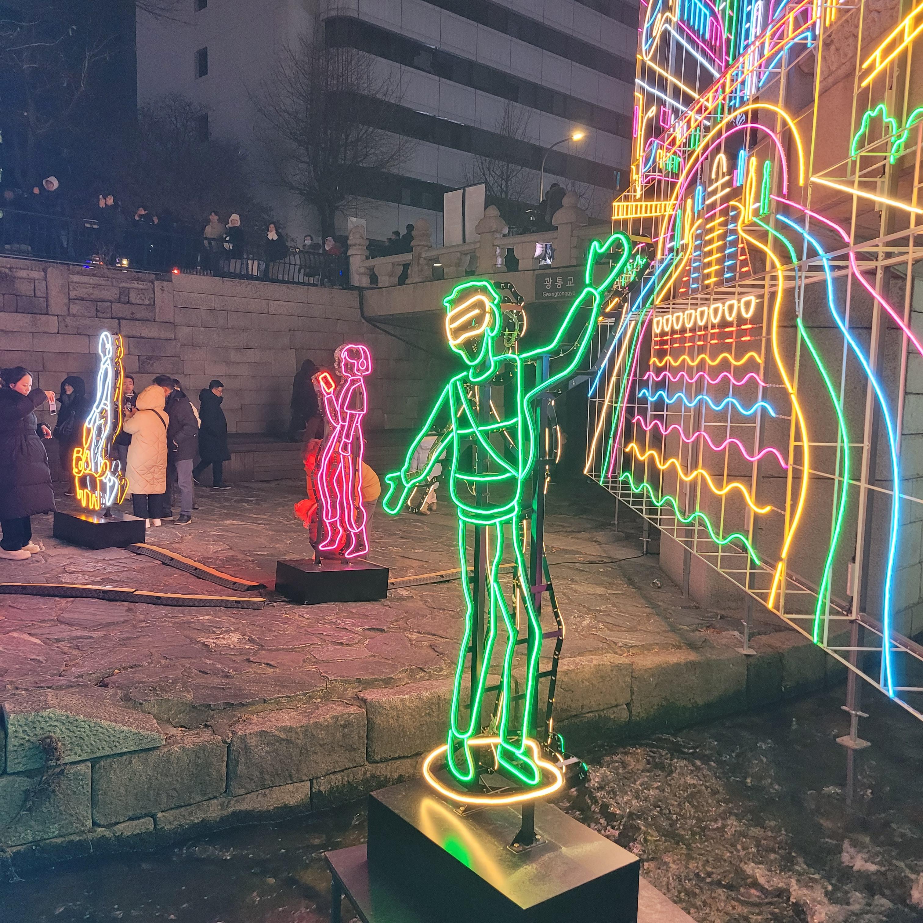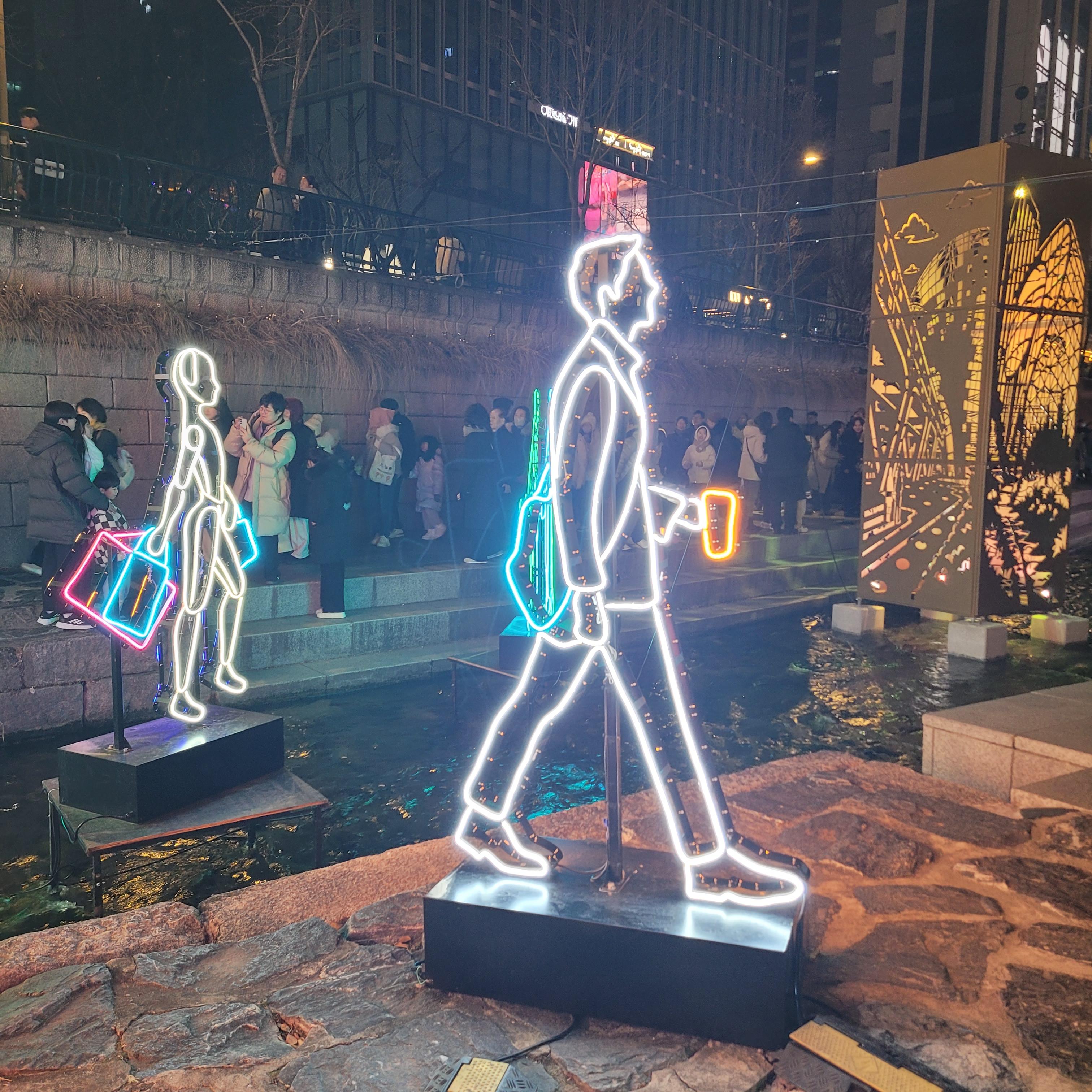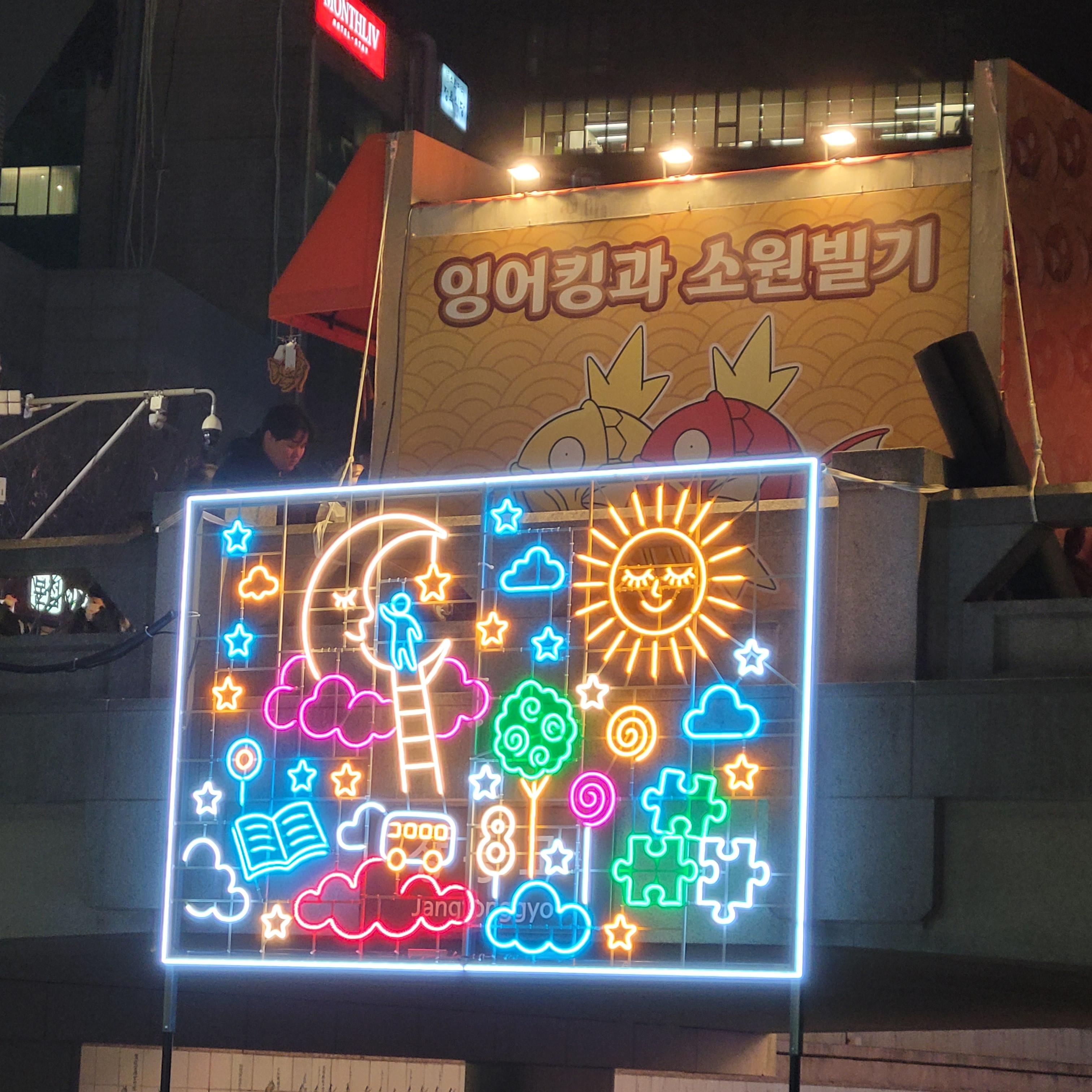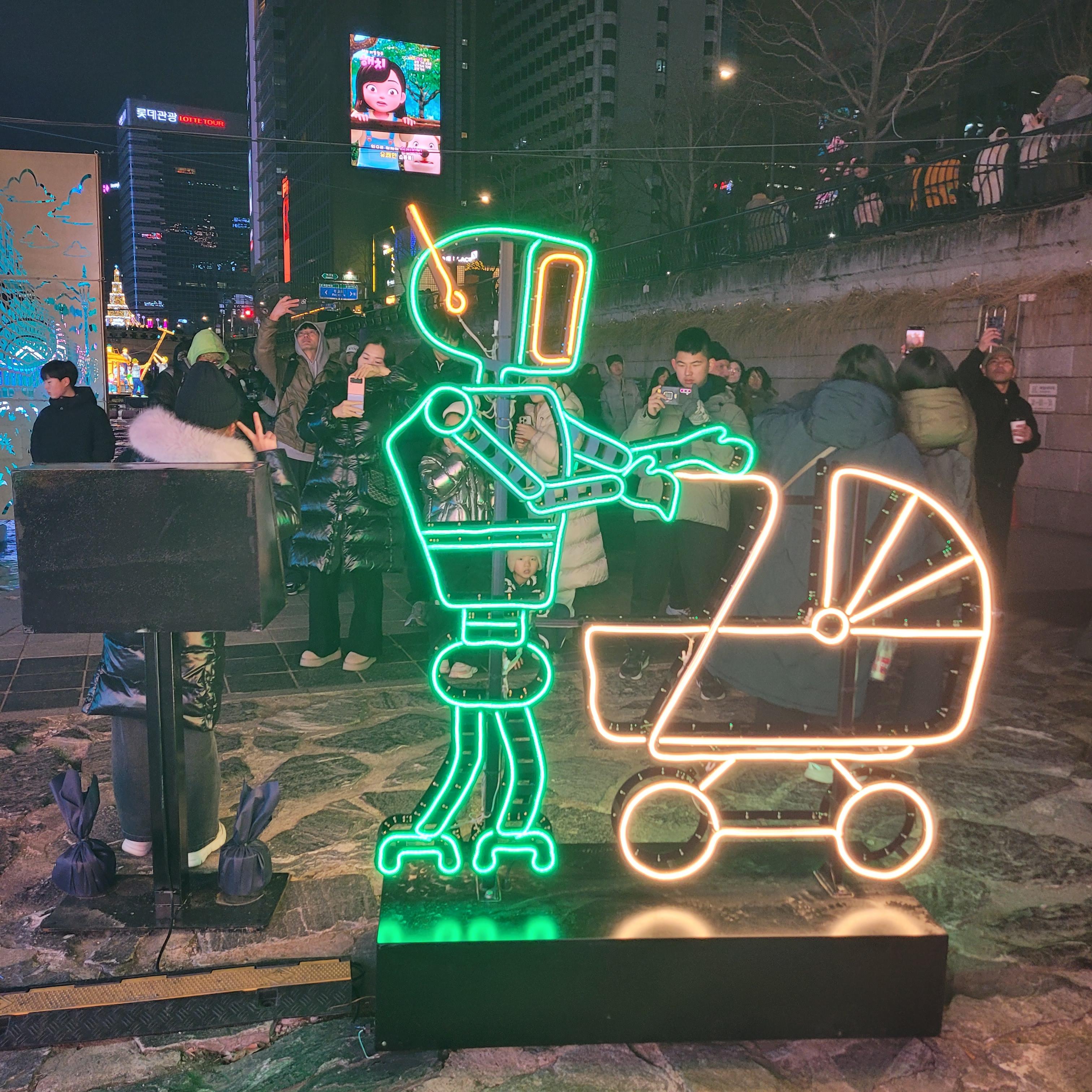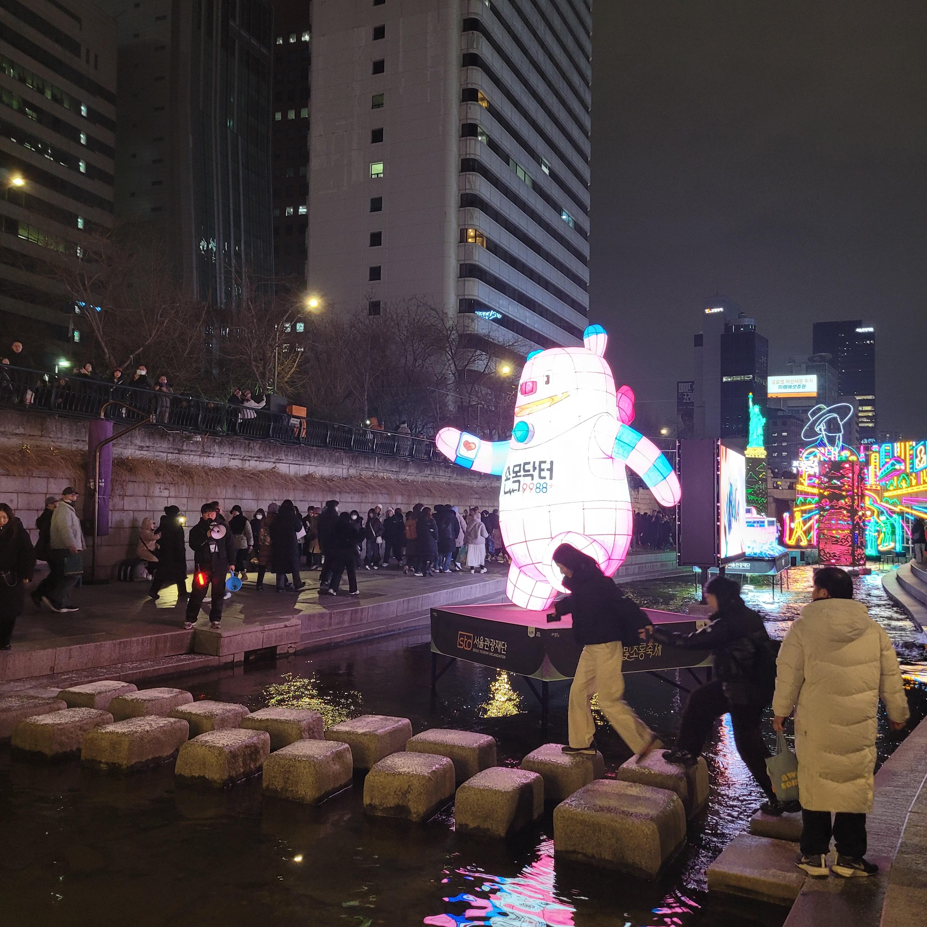 그리고 청계천 일대에도 갖가지 불빛 조형들이 전시되어 있었고 잉어킹빵을 파는 상점도