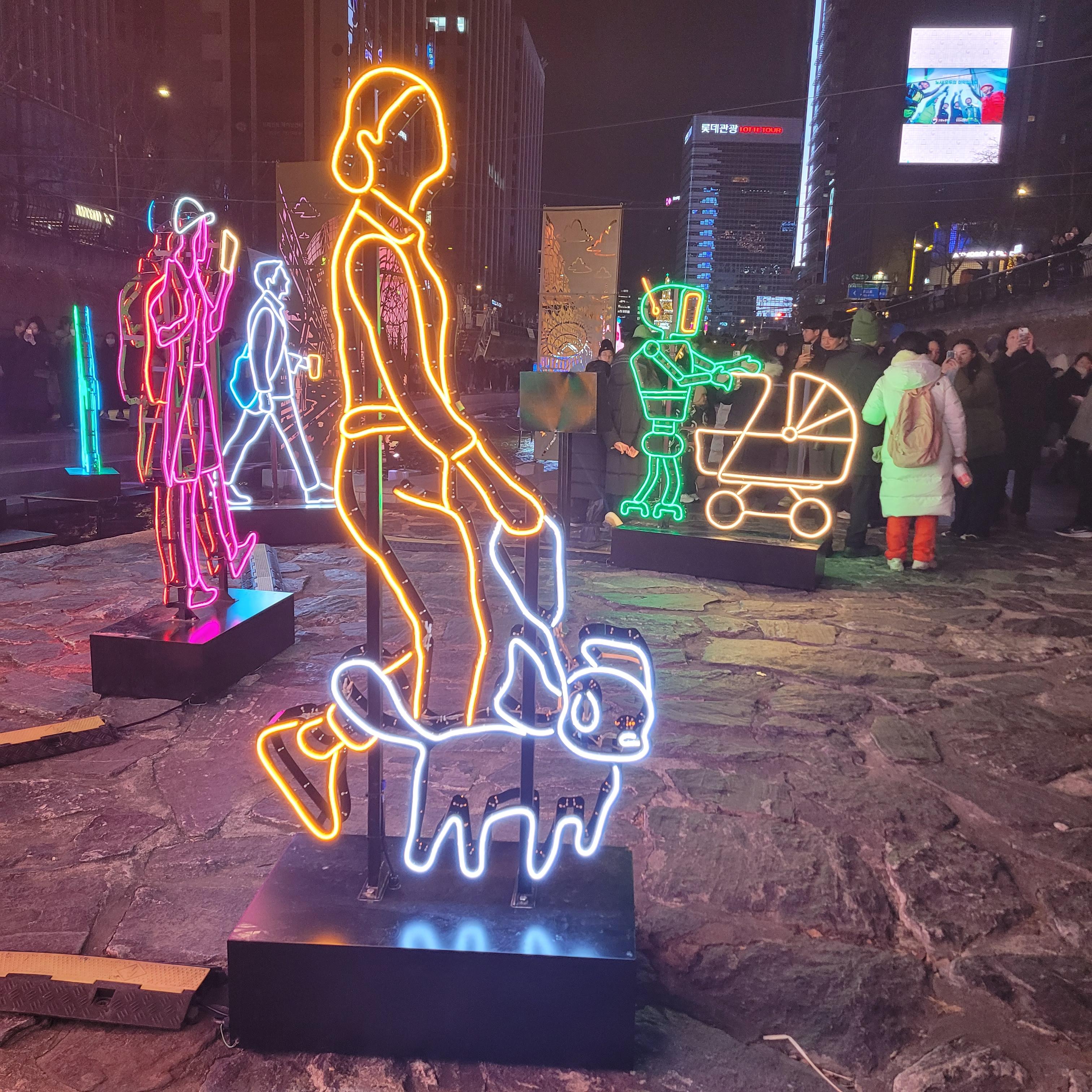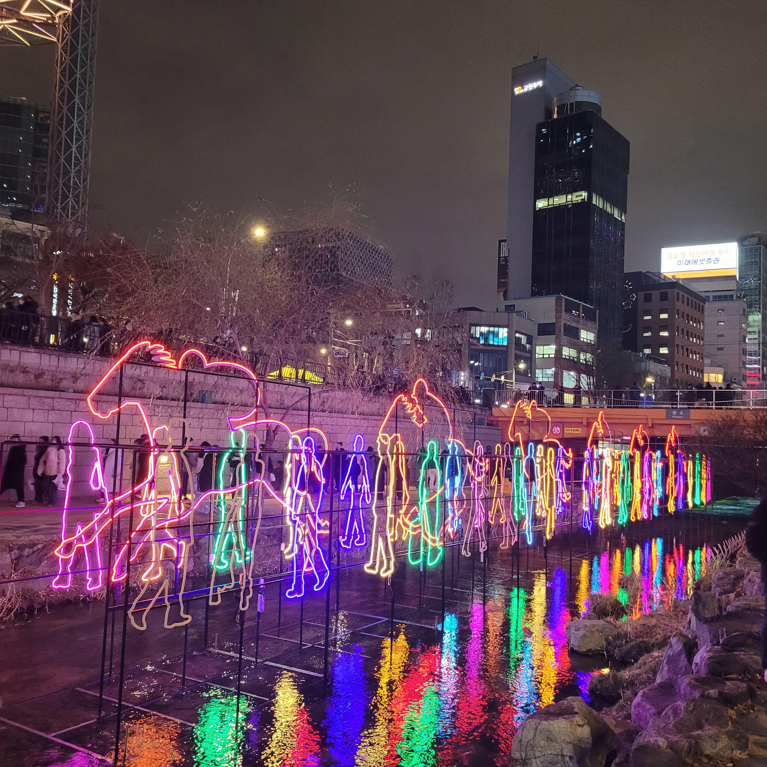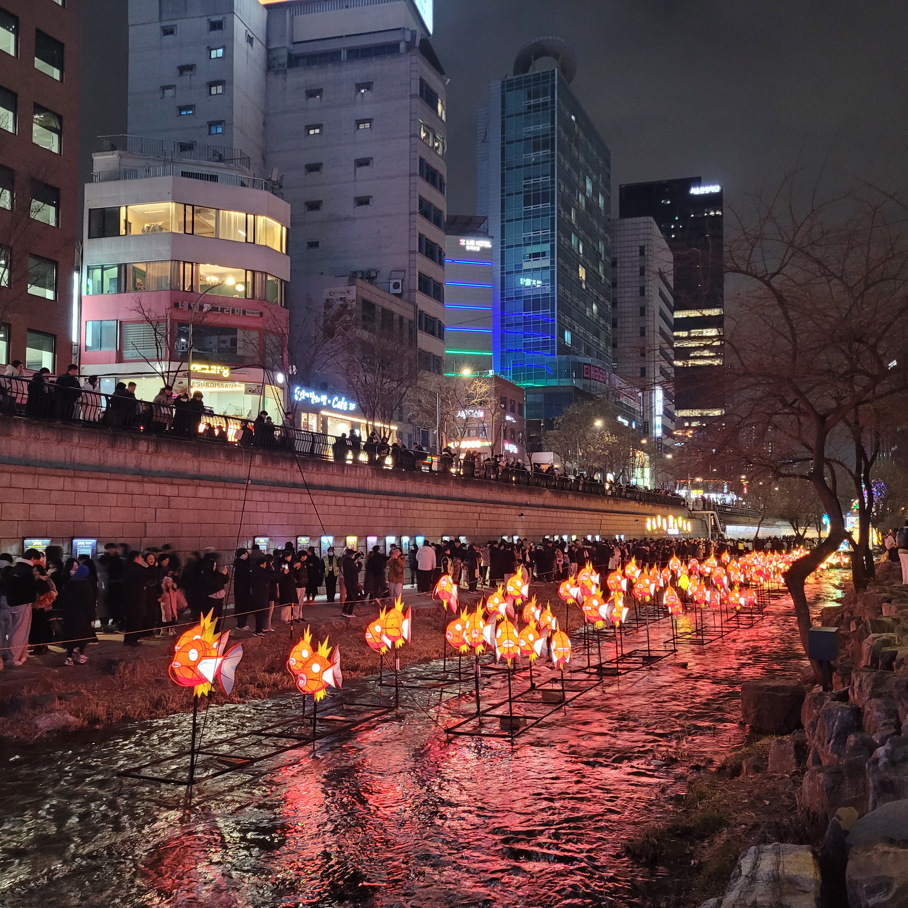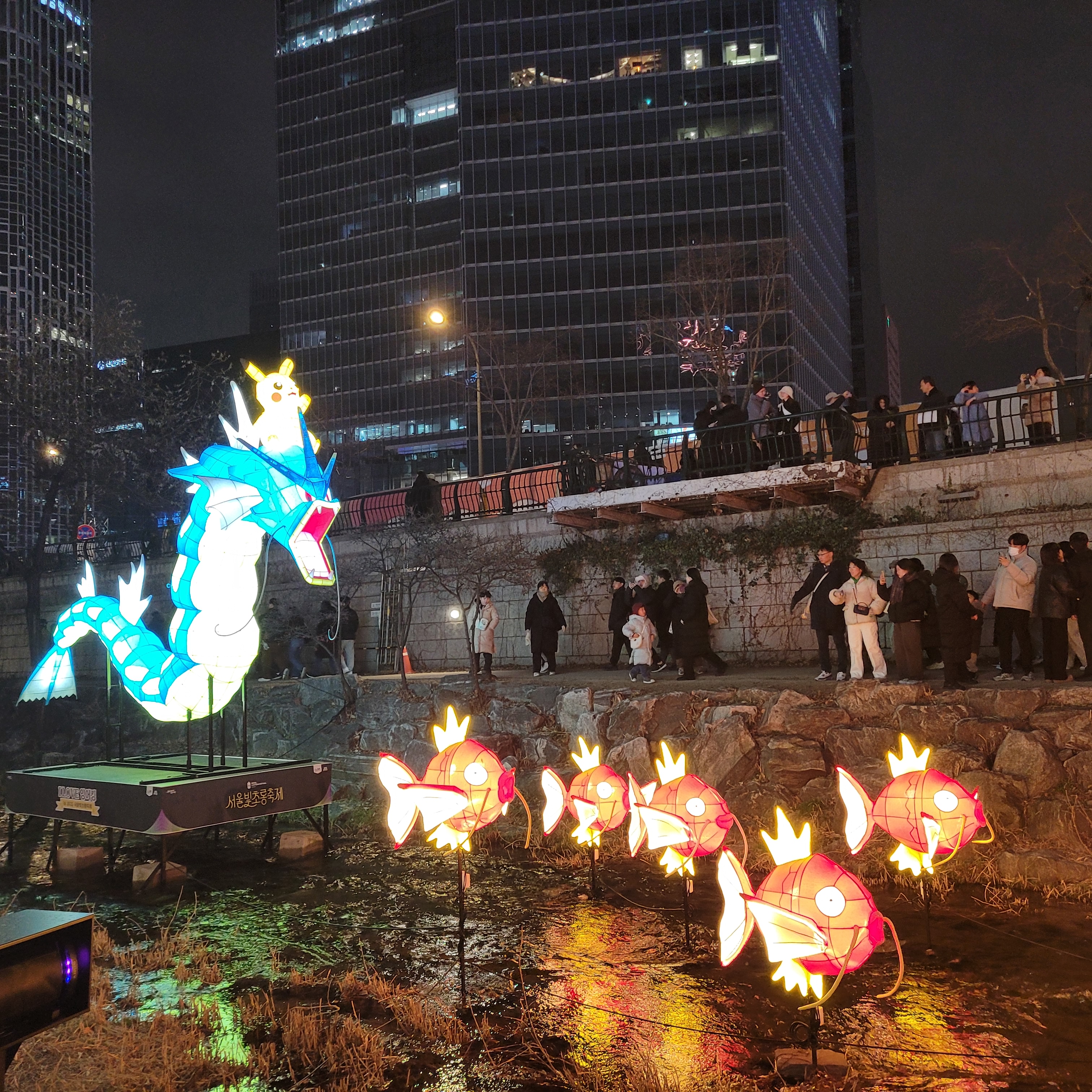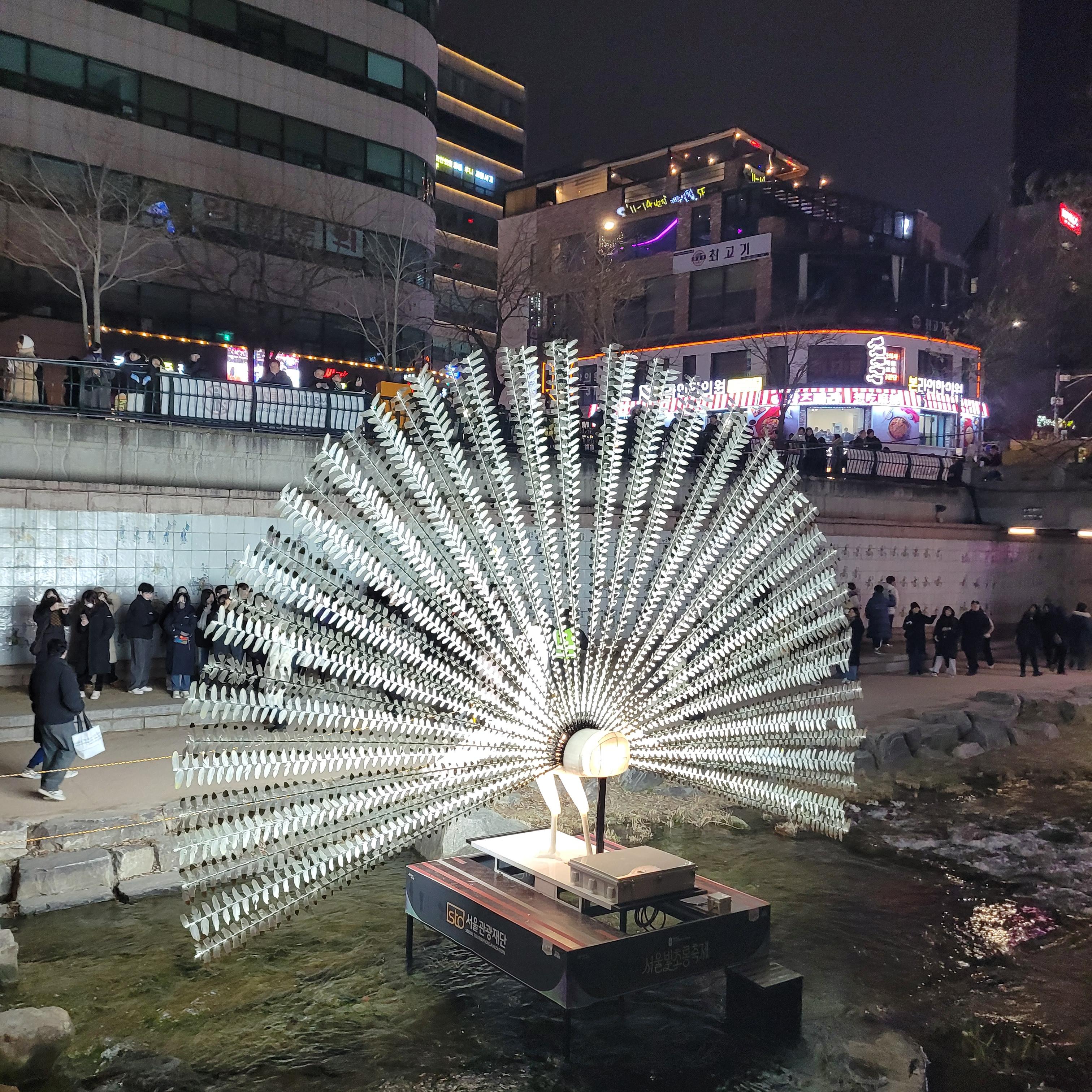 그리고 청계천 일대에도 갖가지 불빛 조형들이 전시되어 있었고 잉어킹빵을 파는 상점도