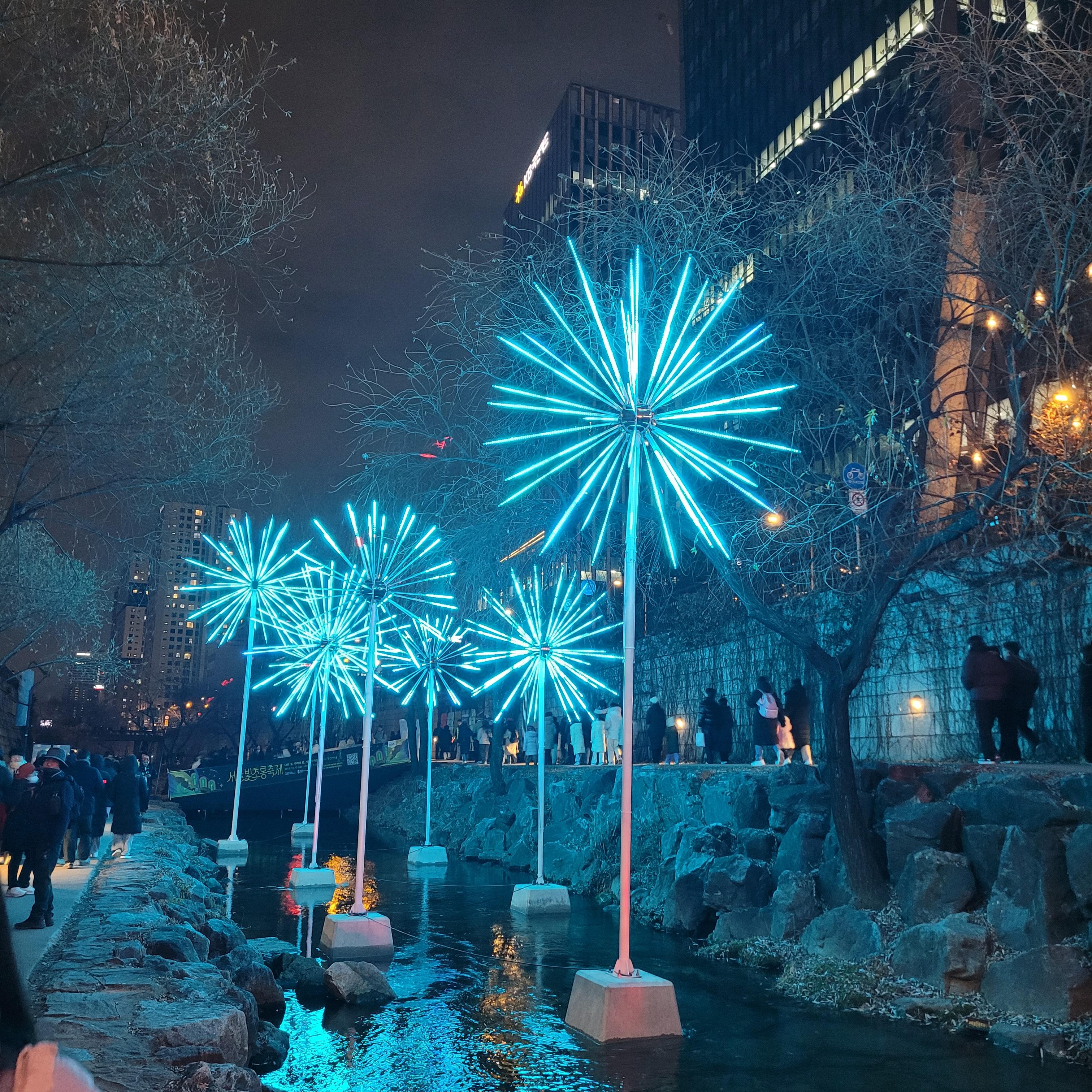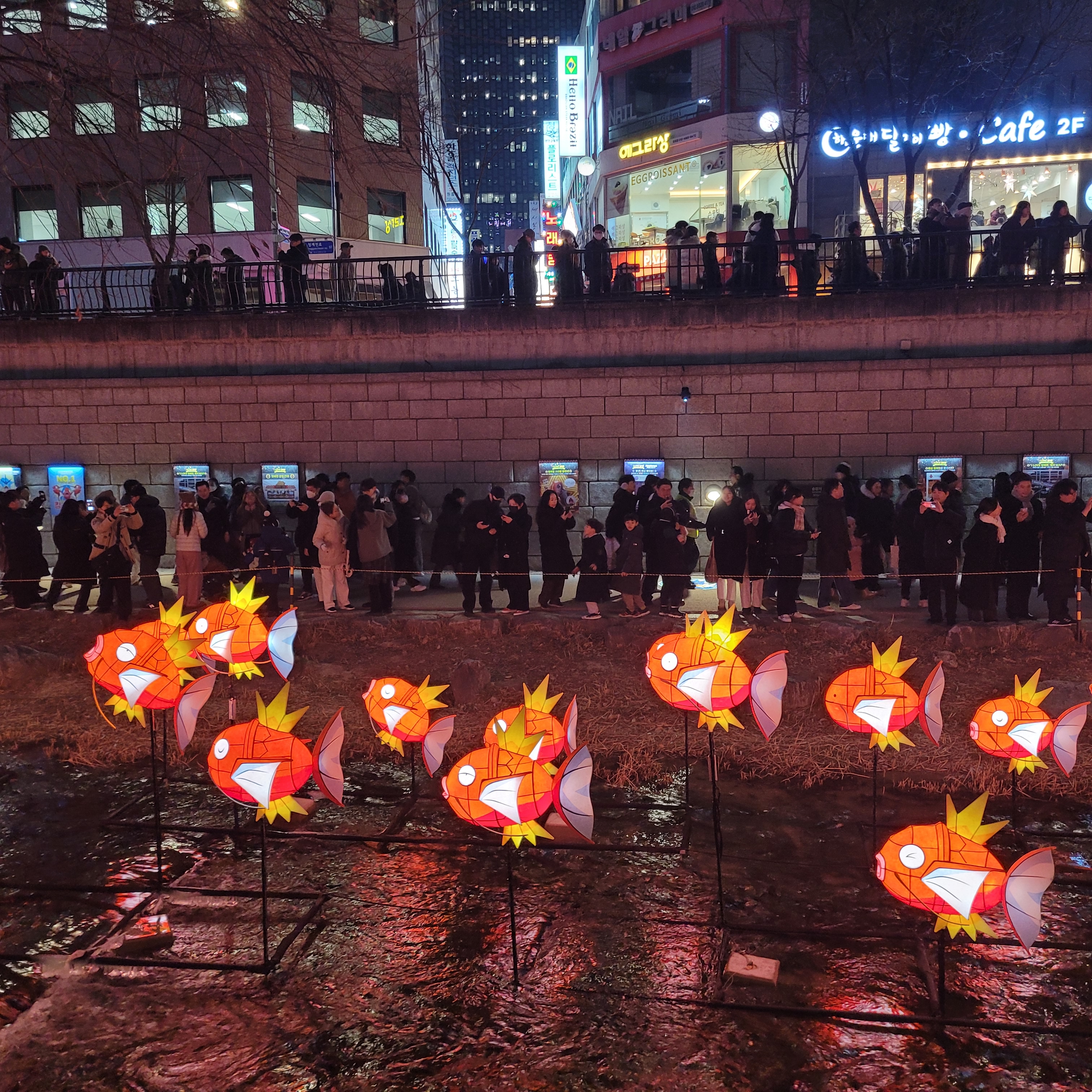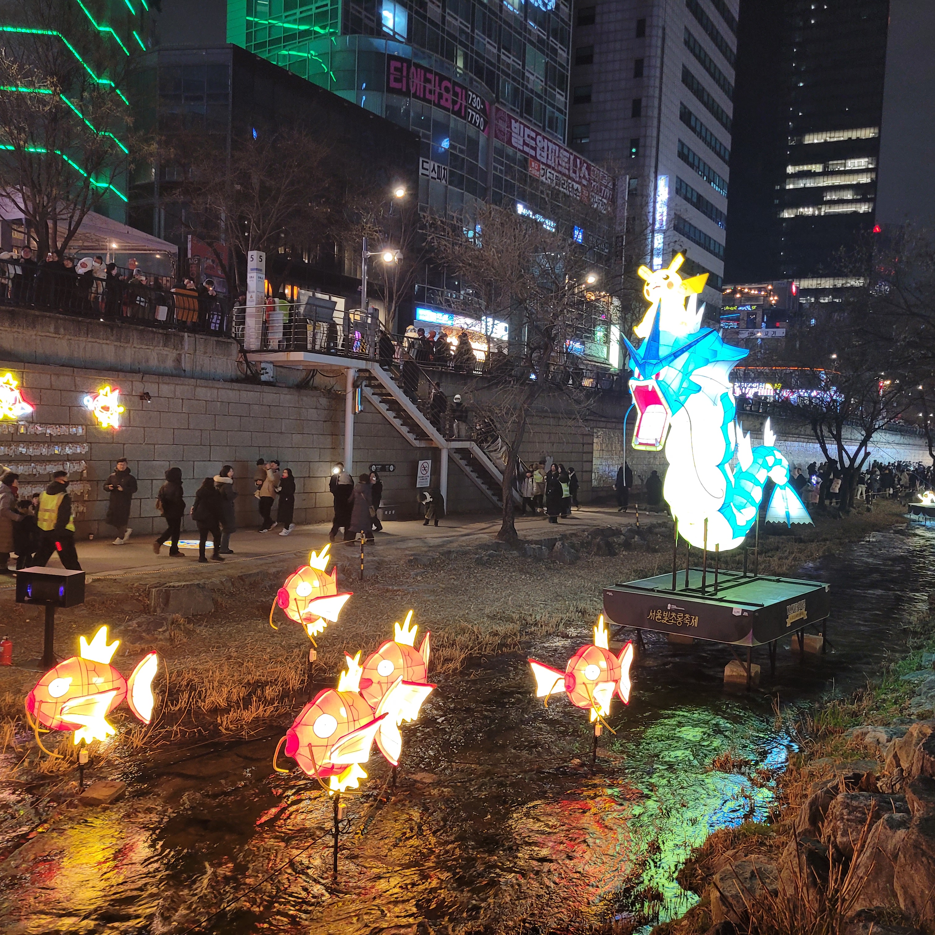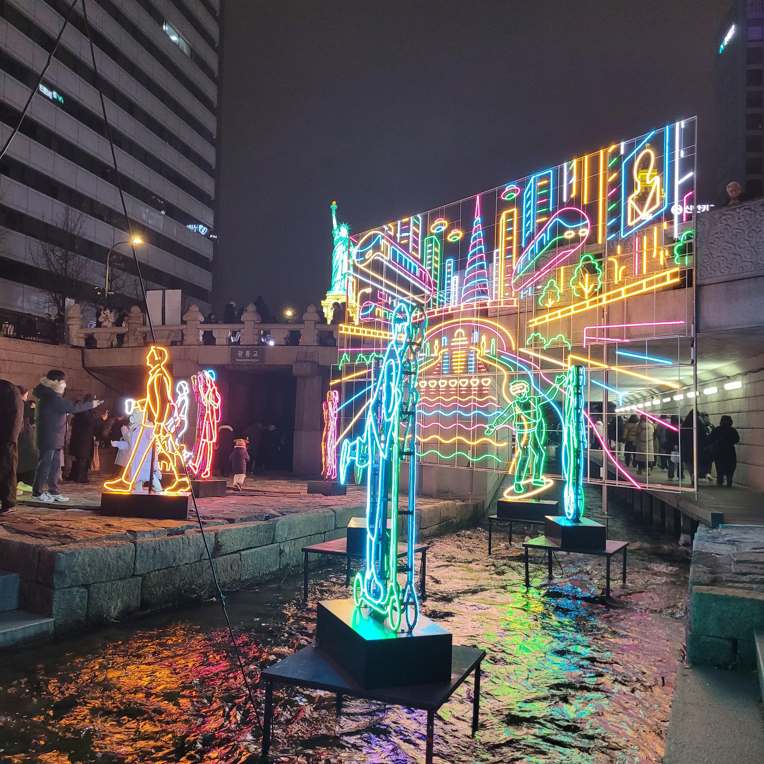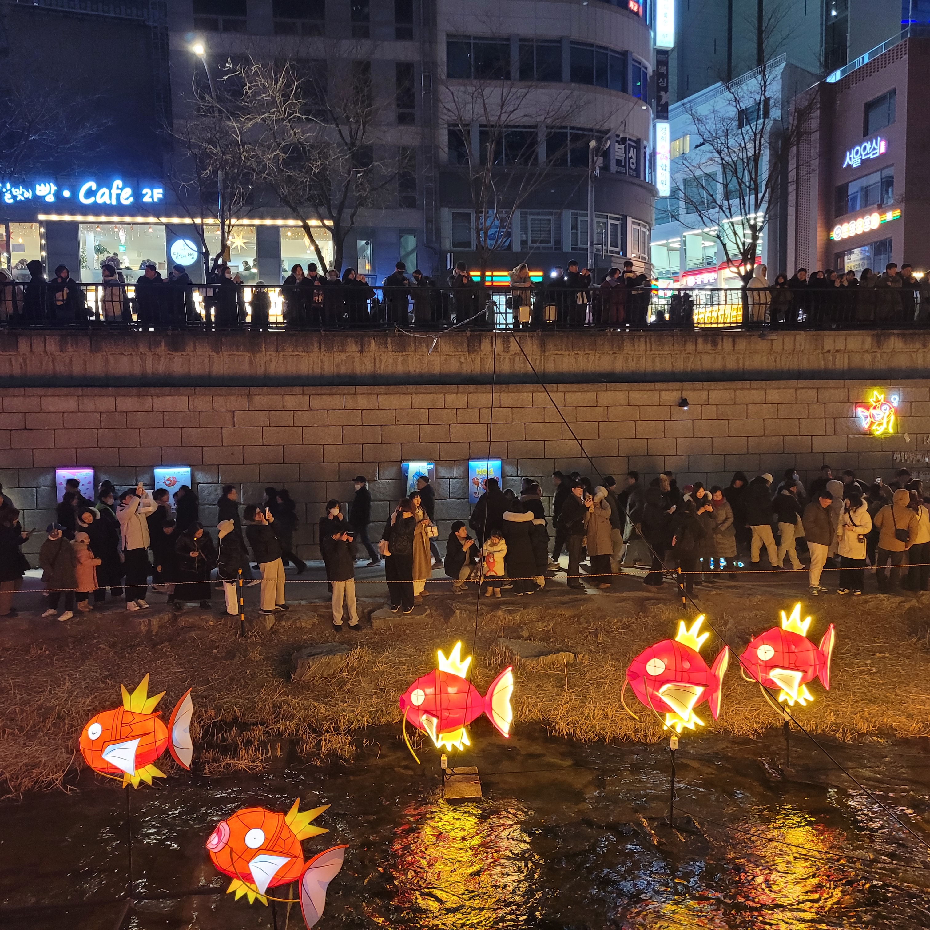 그리고 청계천 일대에도 갖가지 불빛 조형들이 전시되어 있었고 잉어킹빵을 파는 상점도