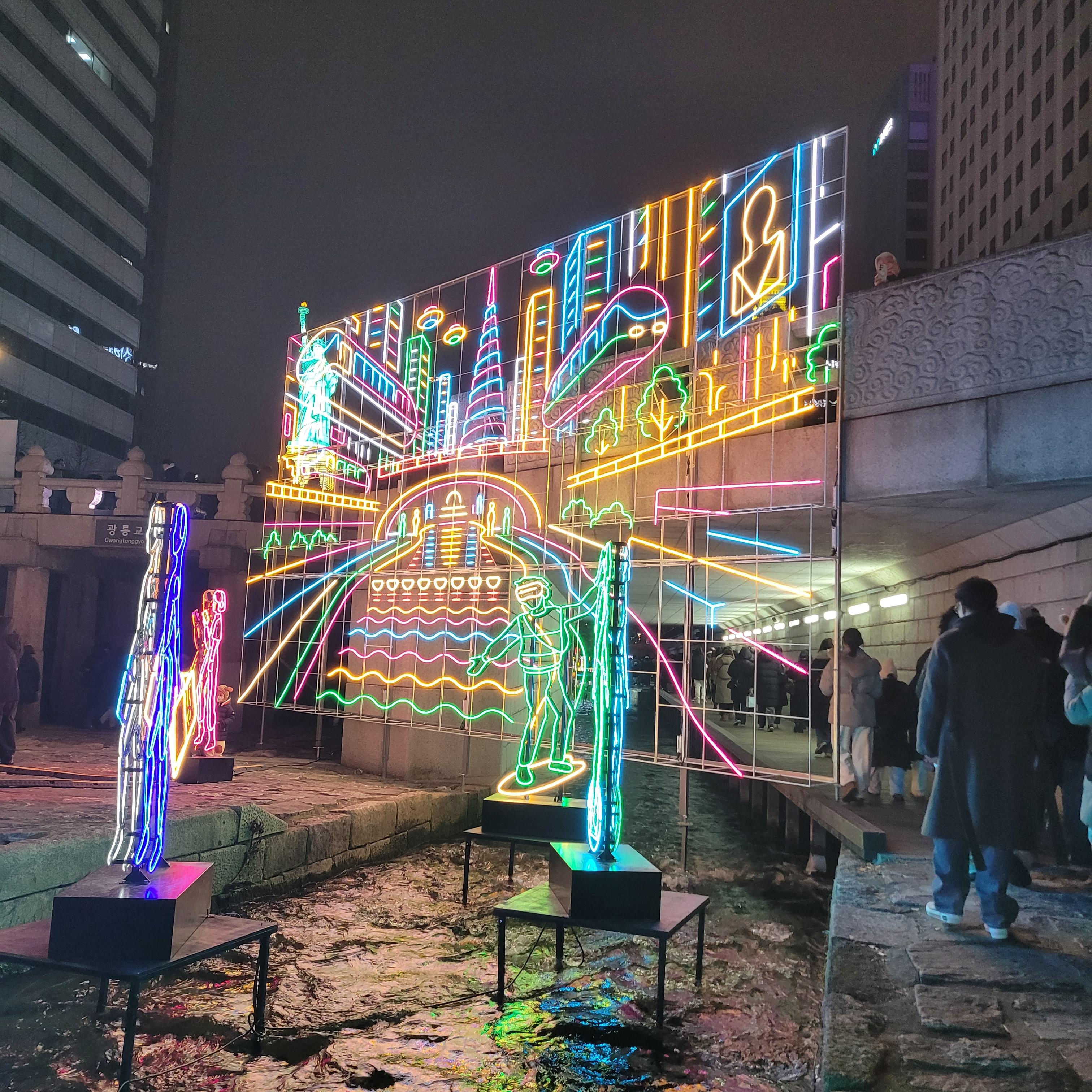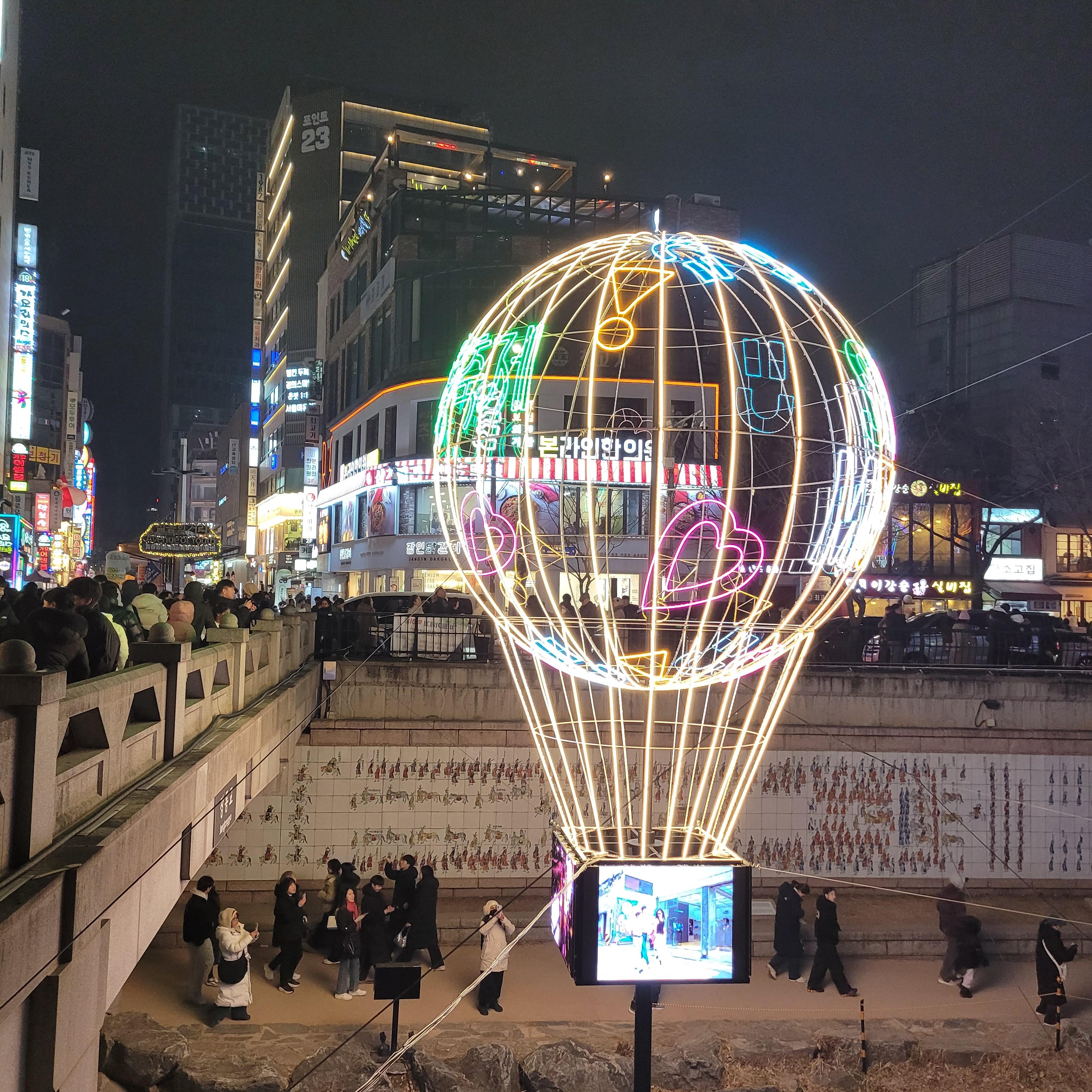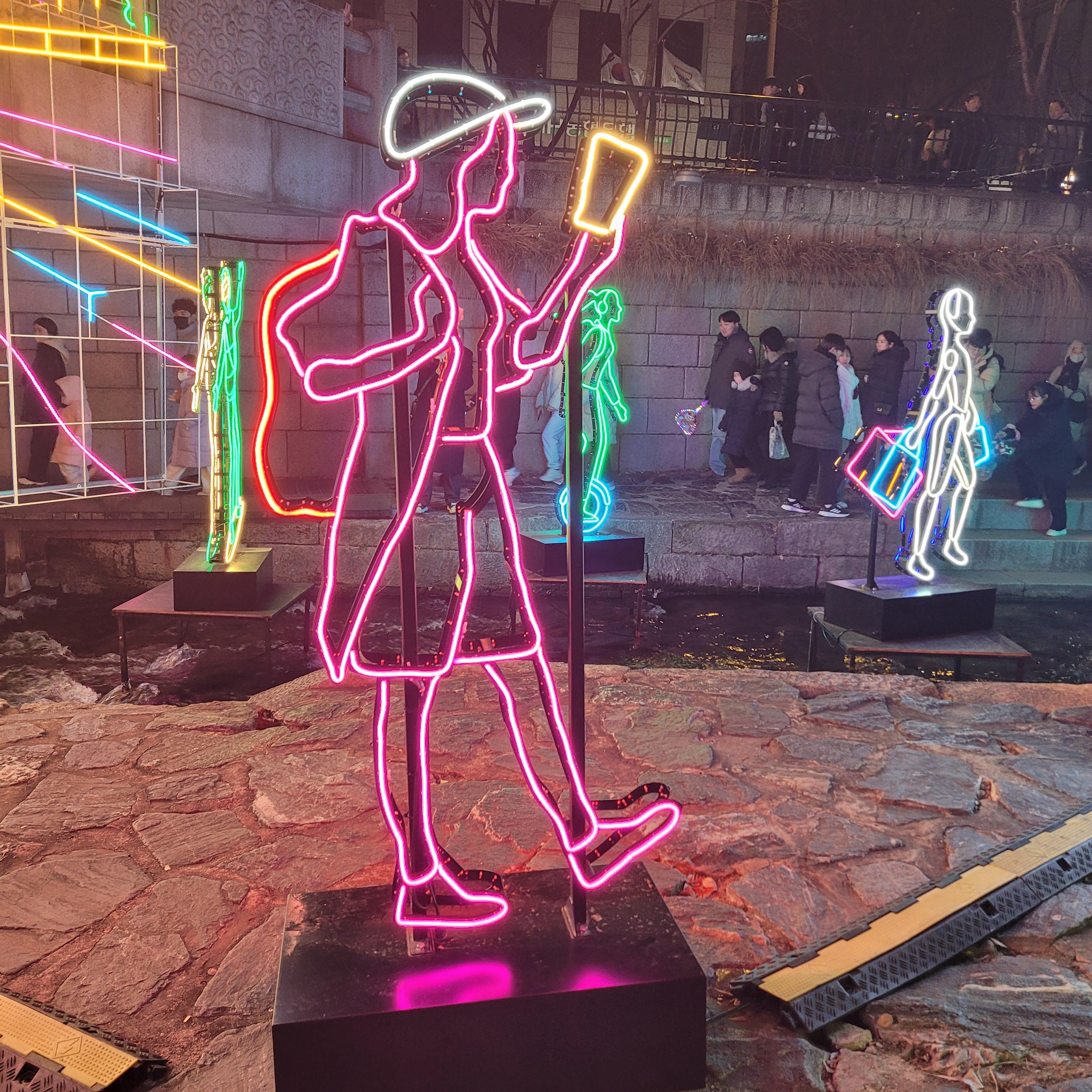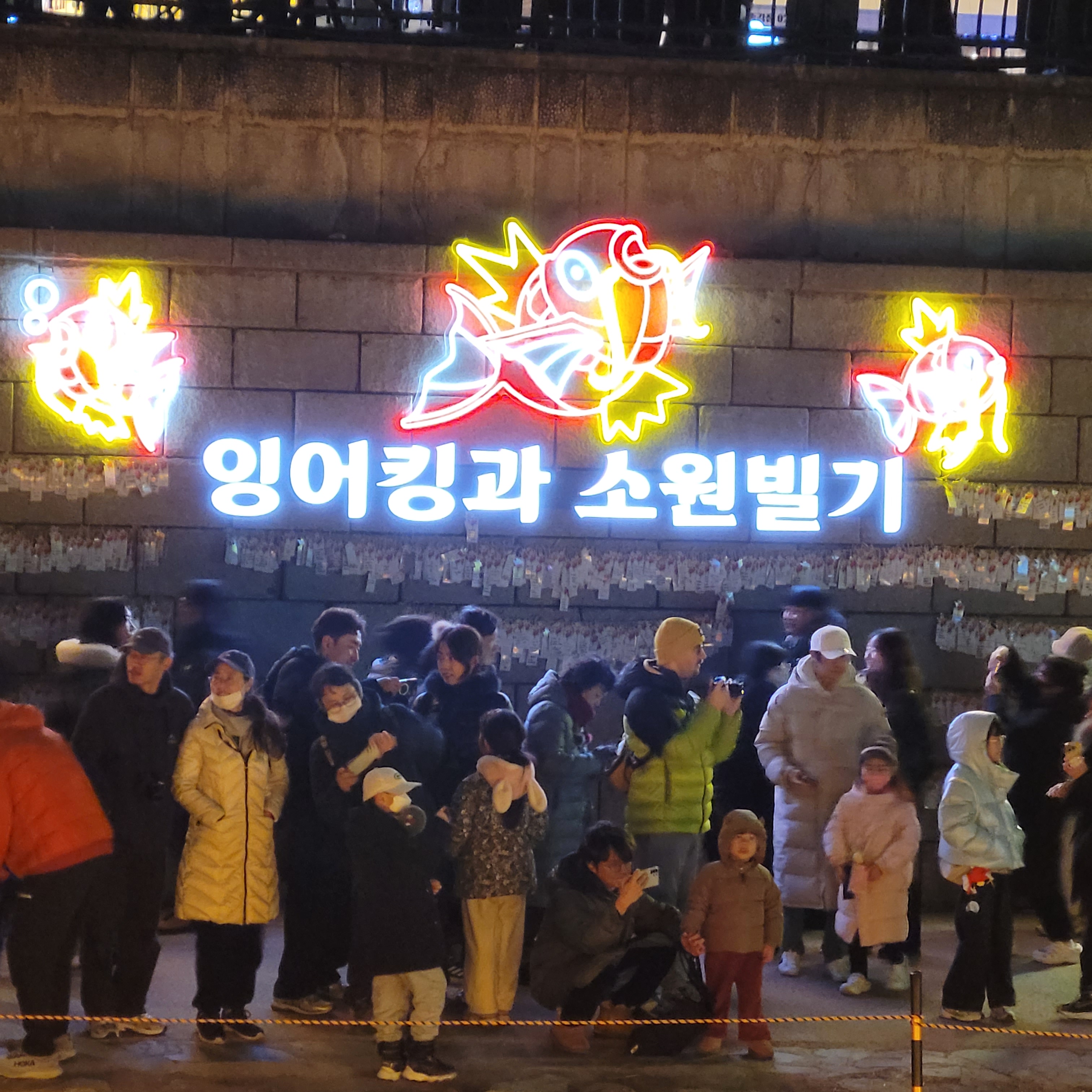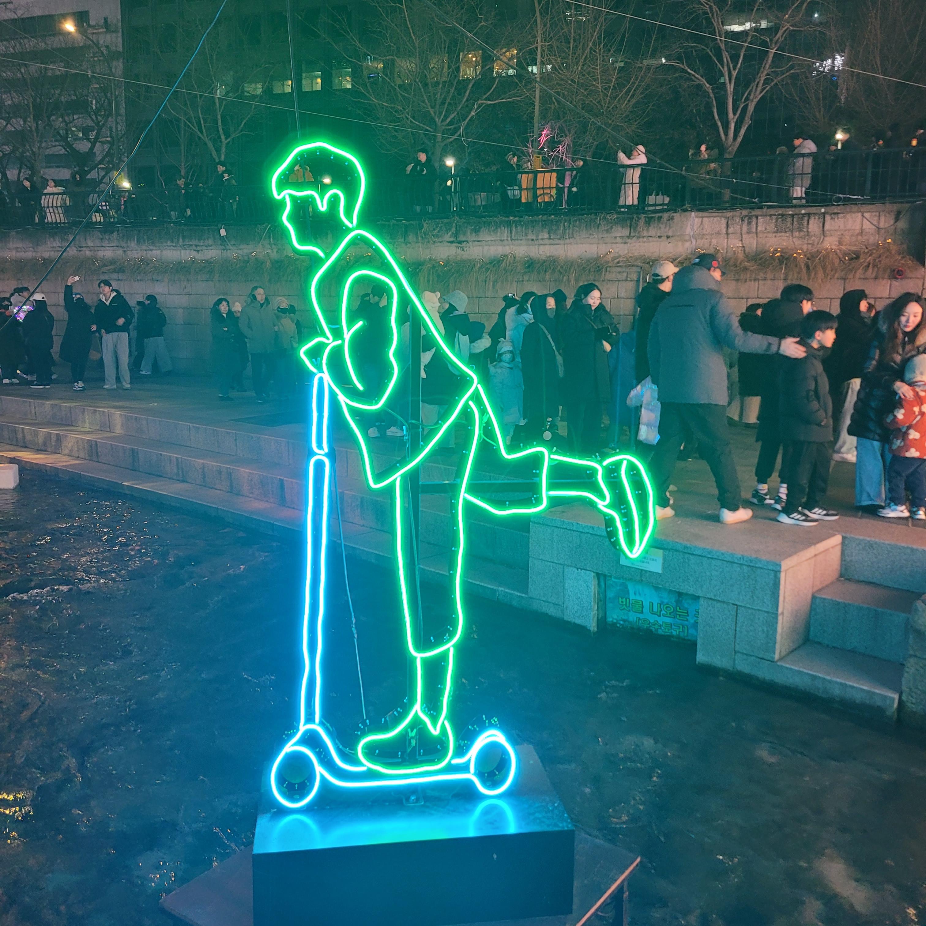 그리고 청계천 일대에도 갖가지 불빛 조형들이 전시되어 있었고 잉어킹빵을 파는 상점도