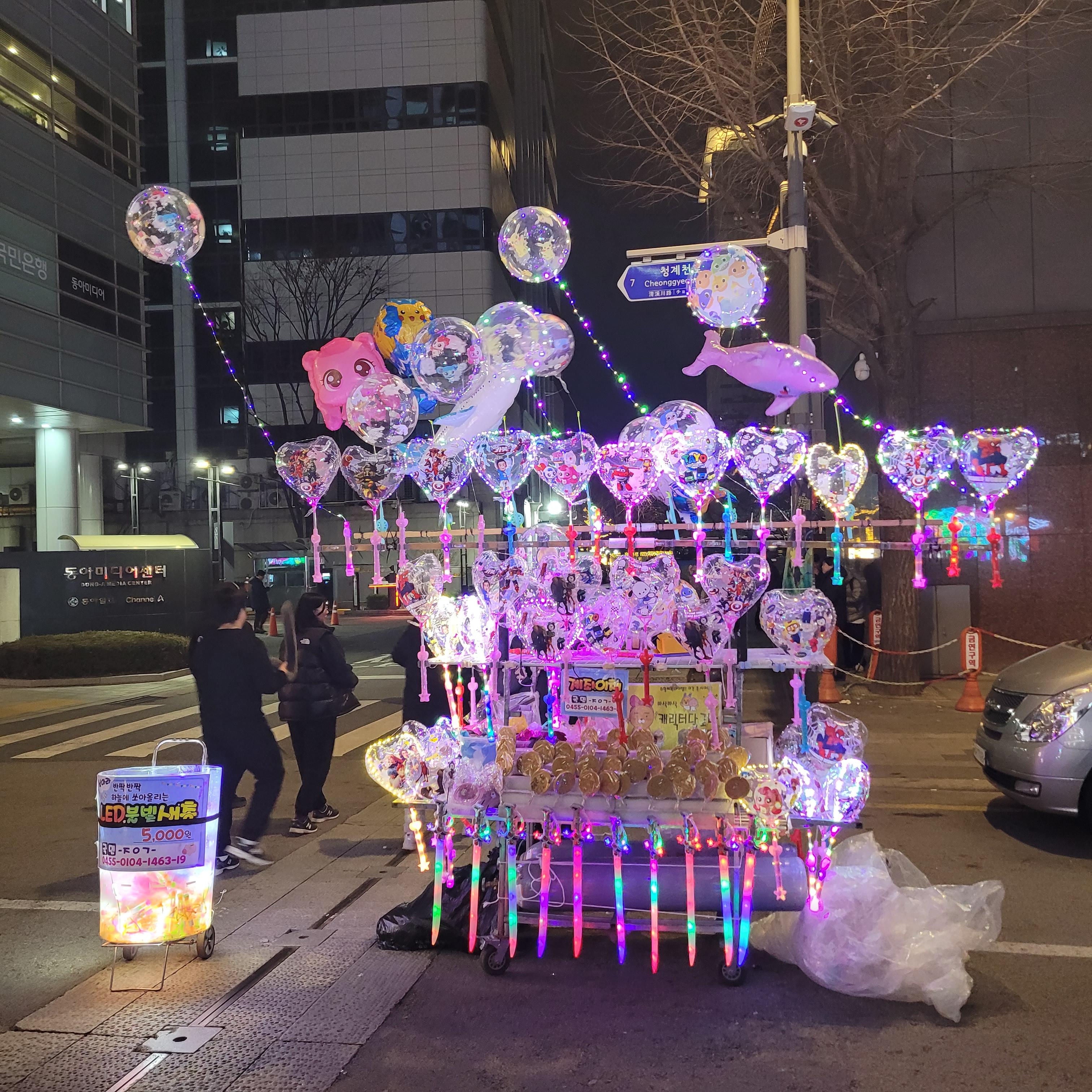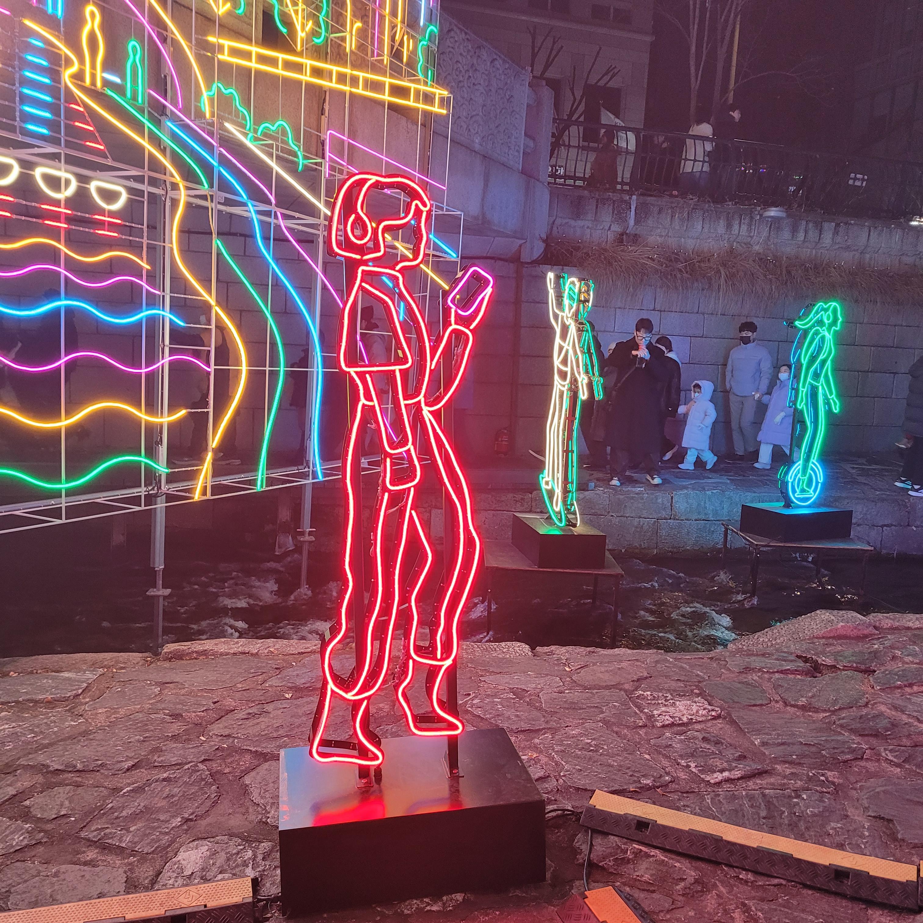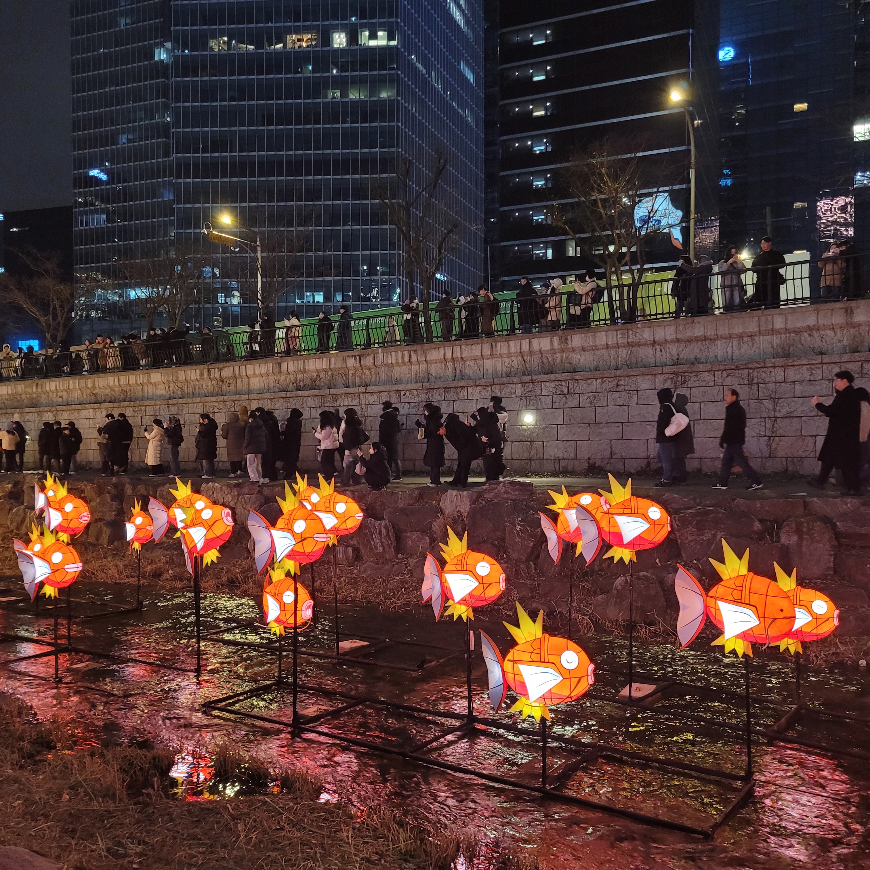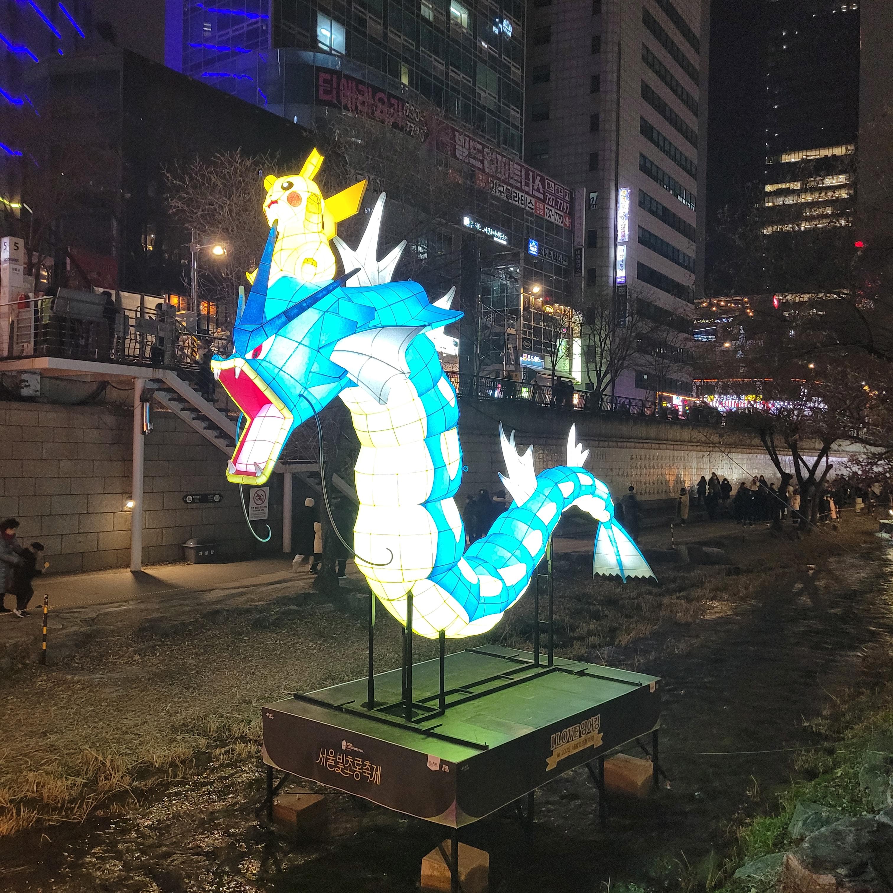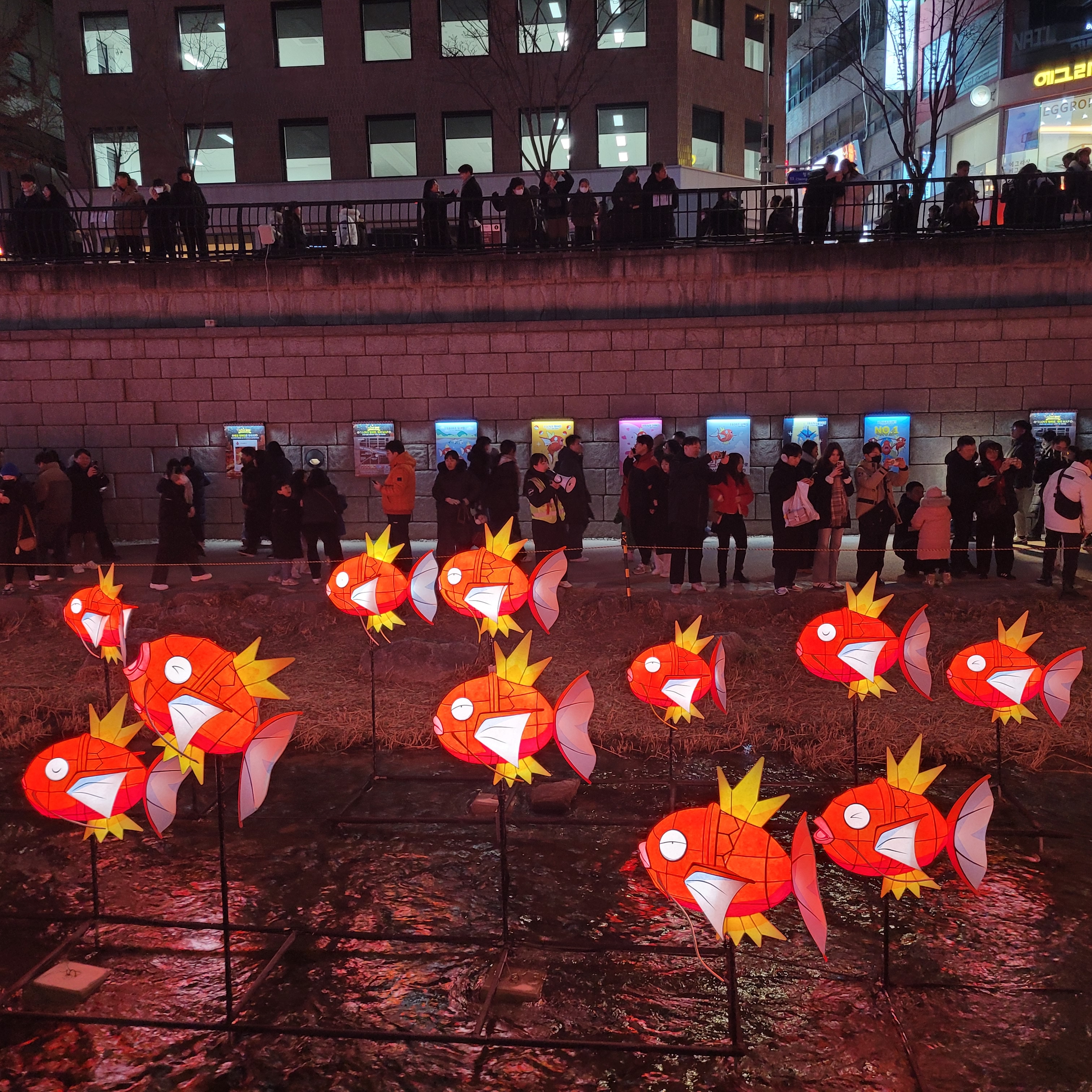 그리고 청계천 일대에도 갖가지 불빛 조형들이 전시되어 있었고 잉어킹빵을 파는 상점도