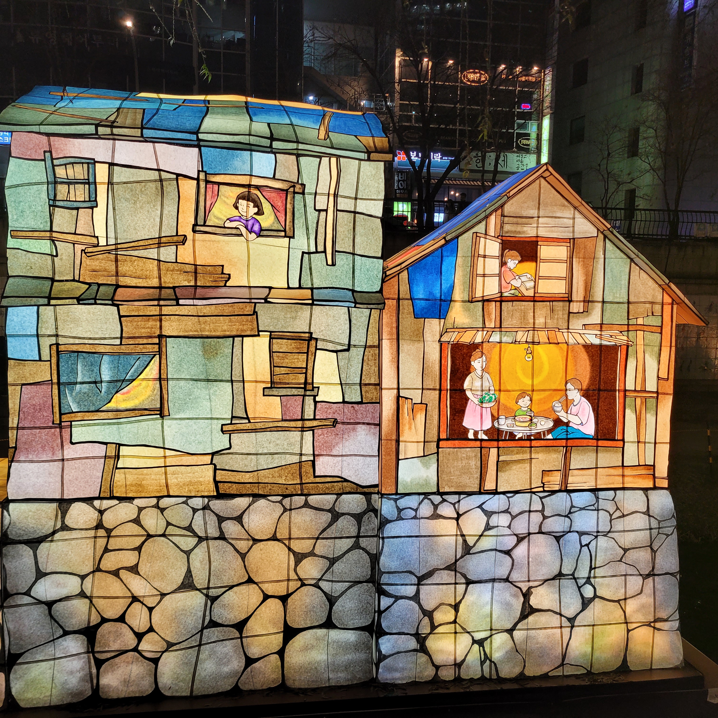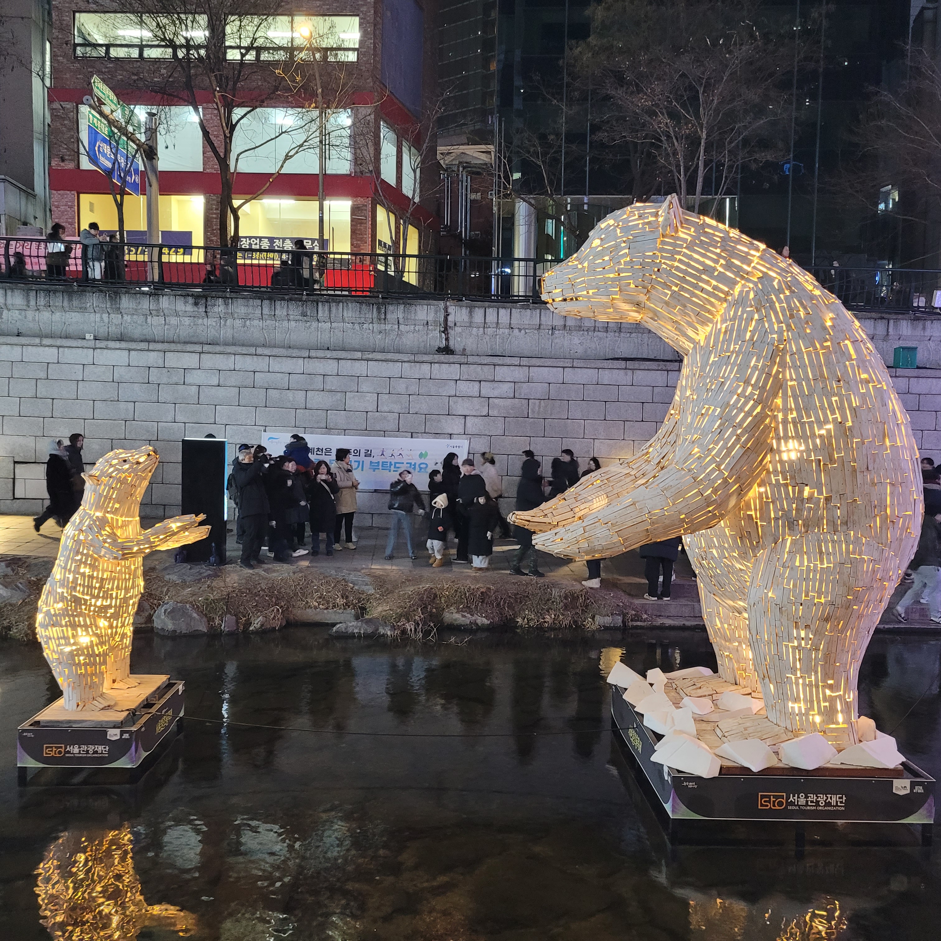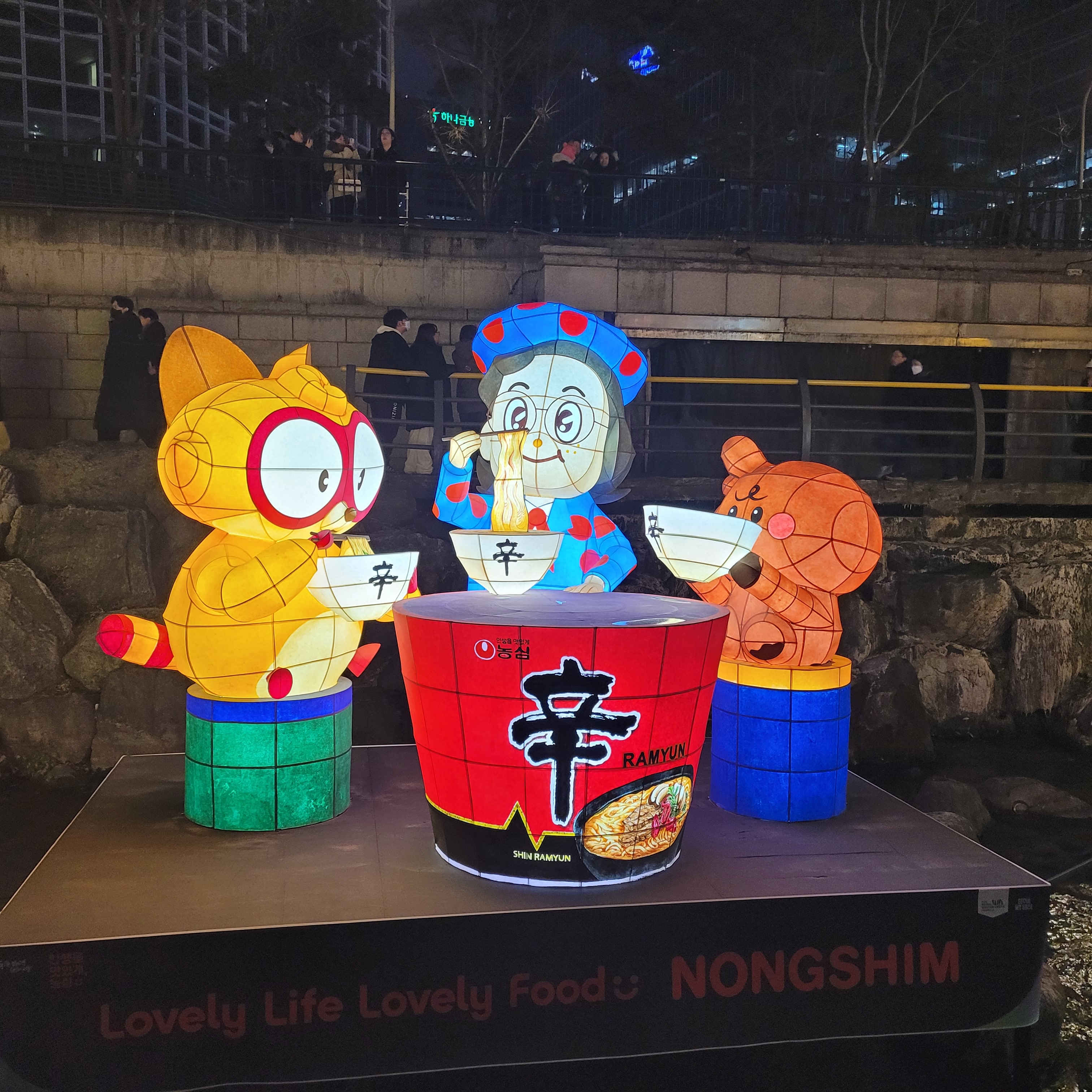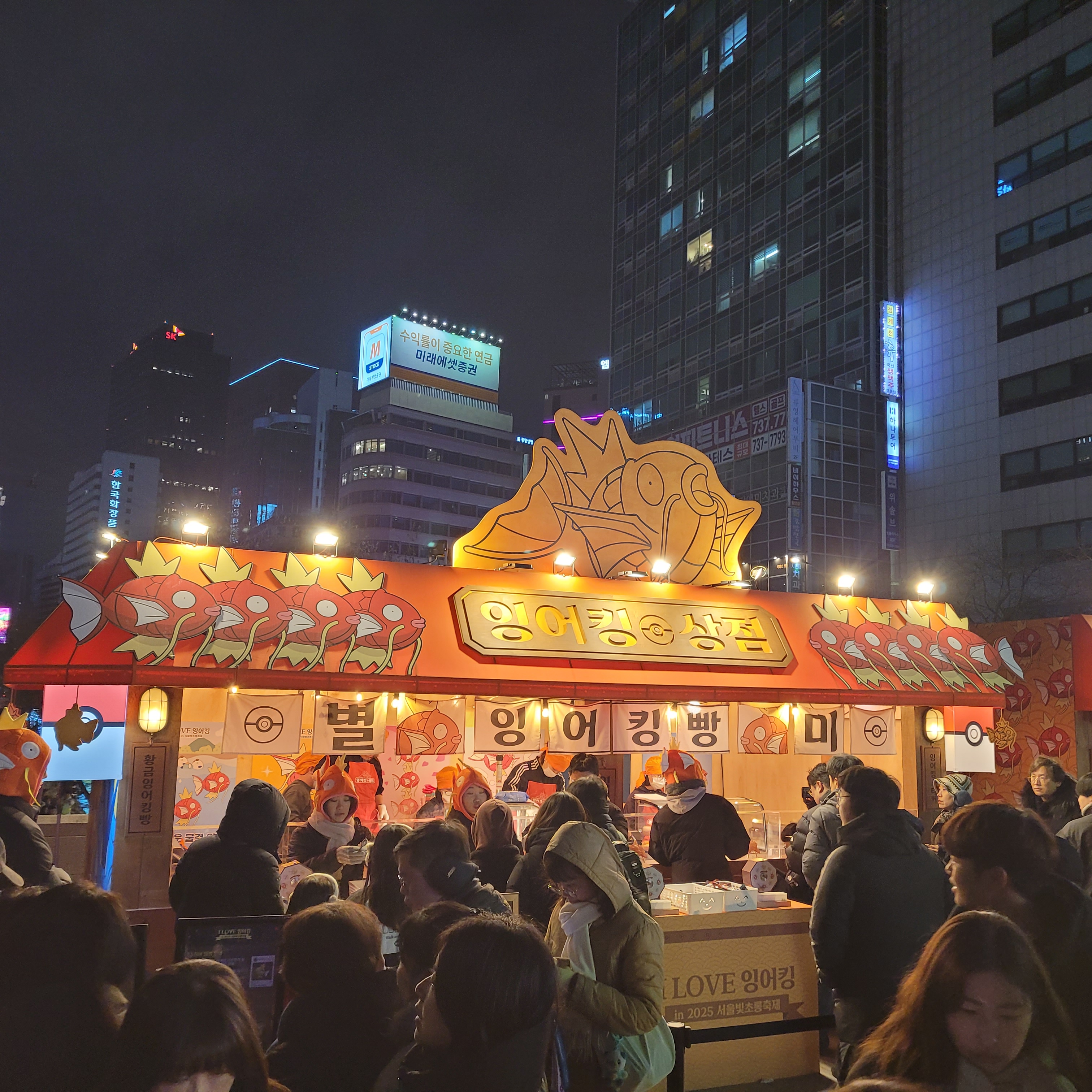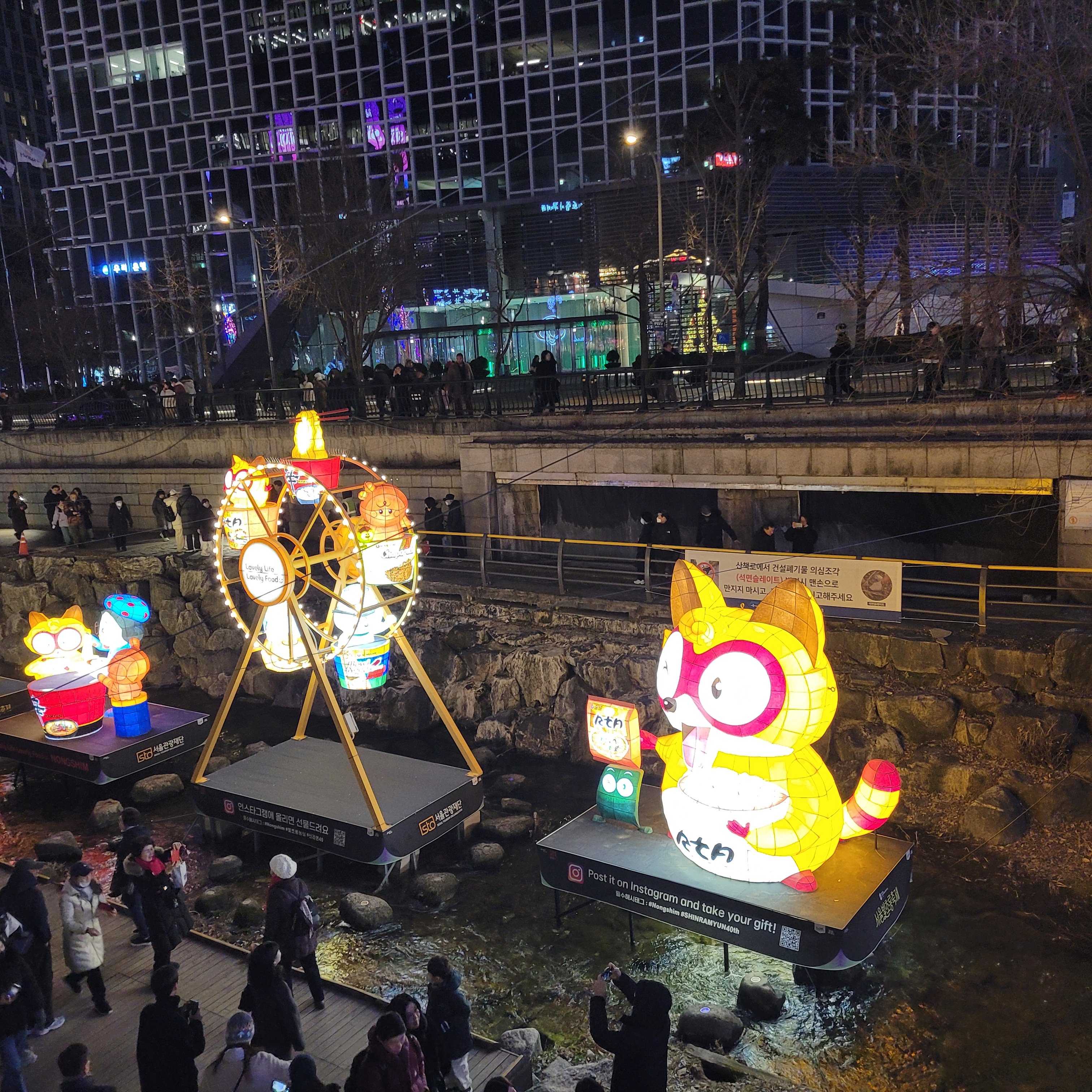 그리고 청계천 일대에도 갖가지 불빛 조형들이 전시되어 있었고 잉어킹빵을 파는 상점도
