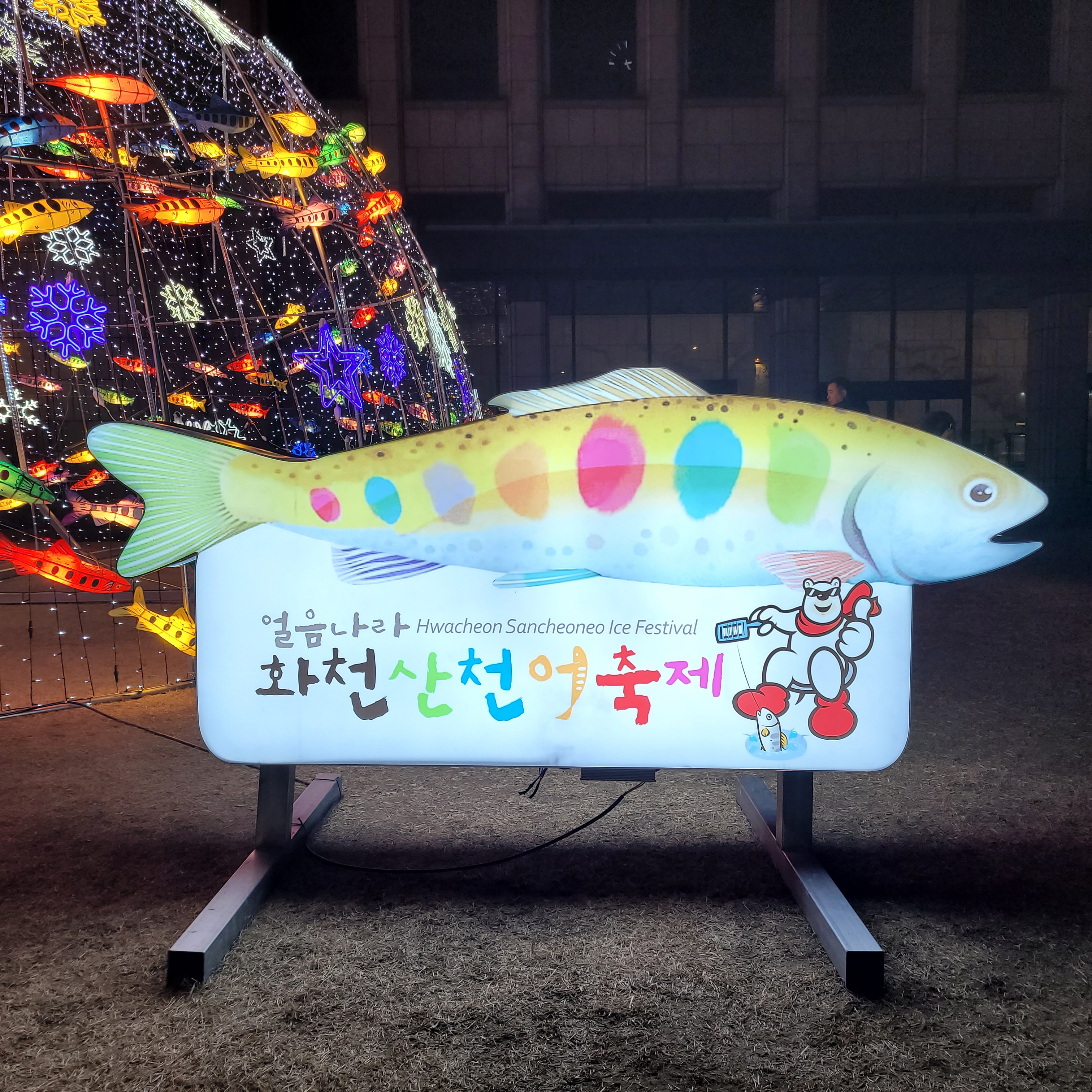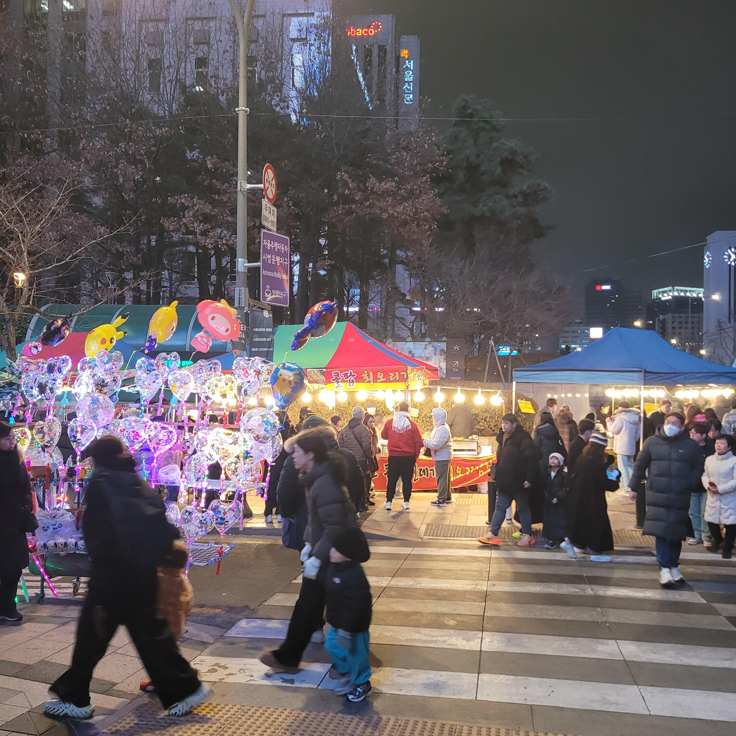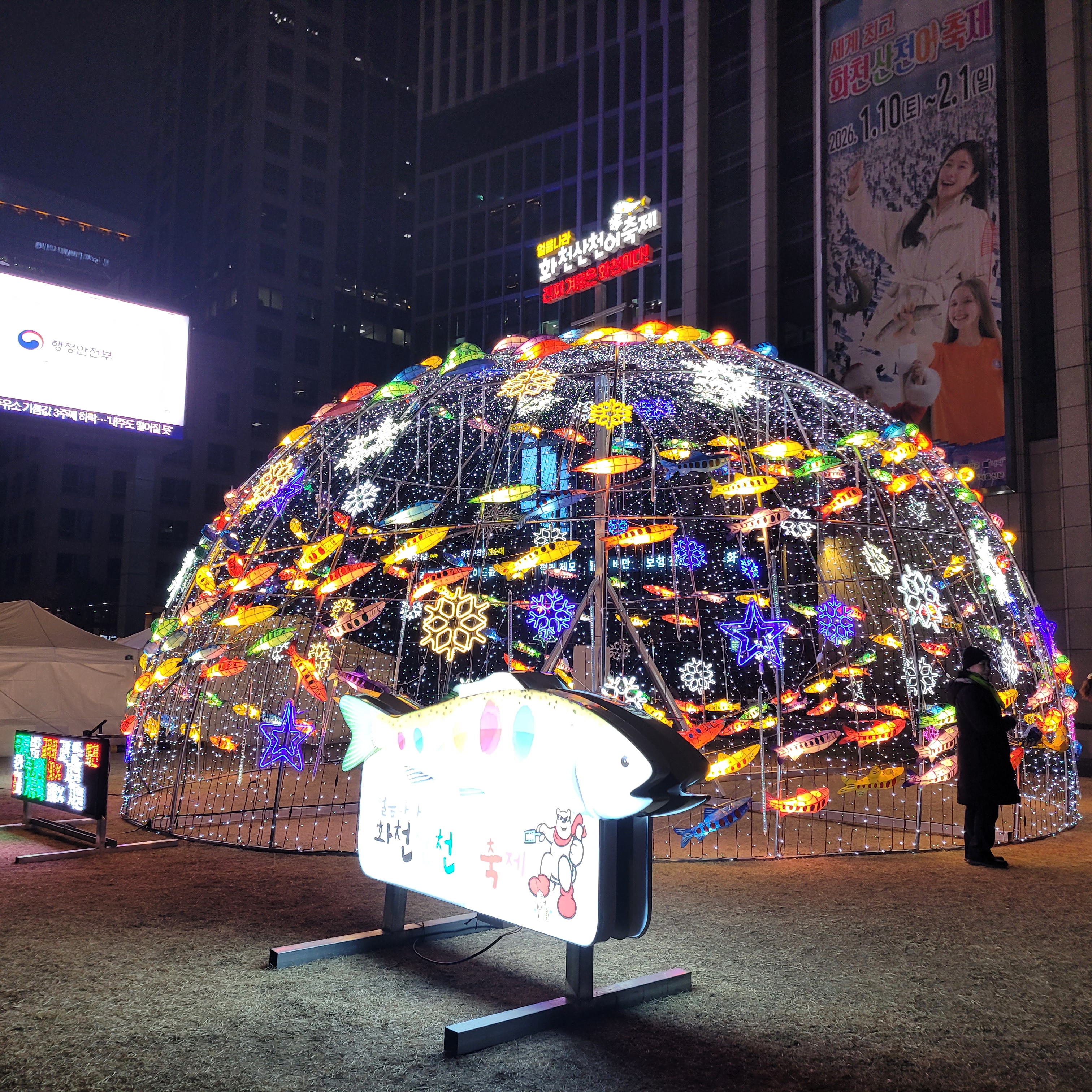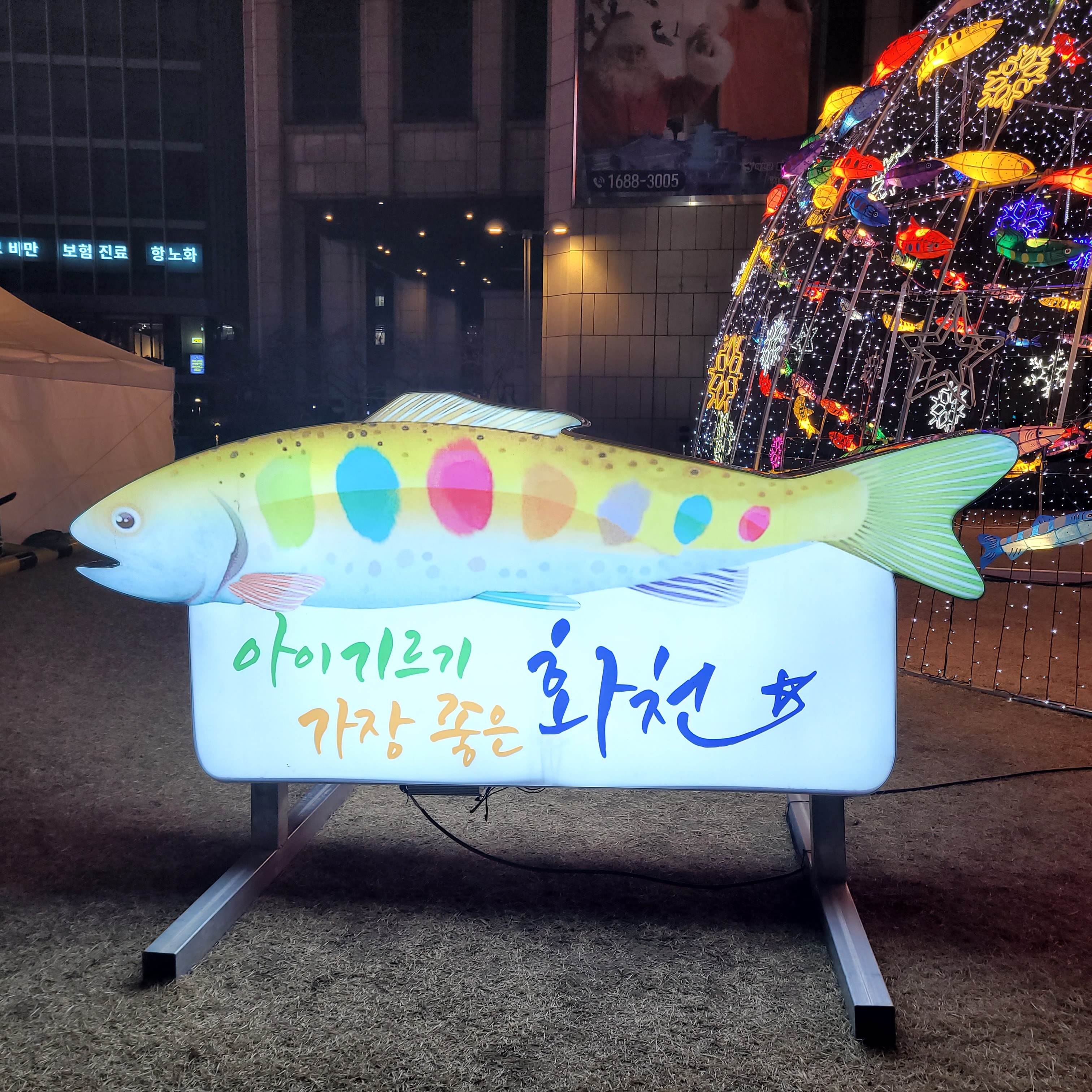 서울광장 스케이트장 구경을 모두 마치고 나서 청계광장 가는 길에 화천산천어축제를