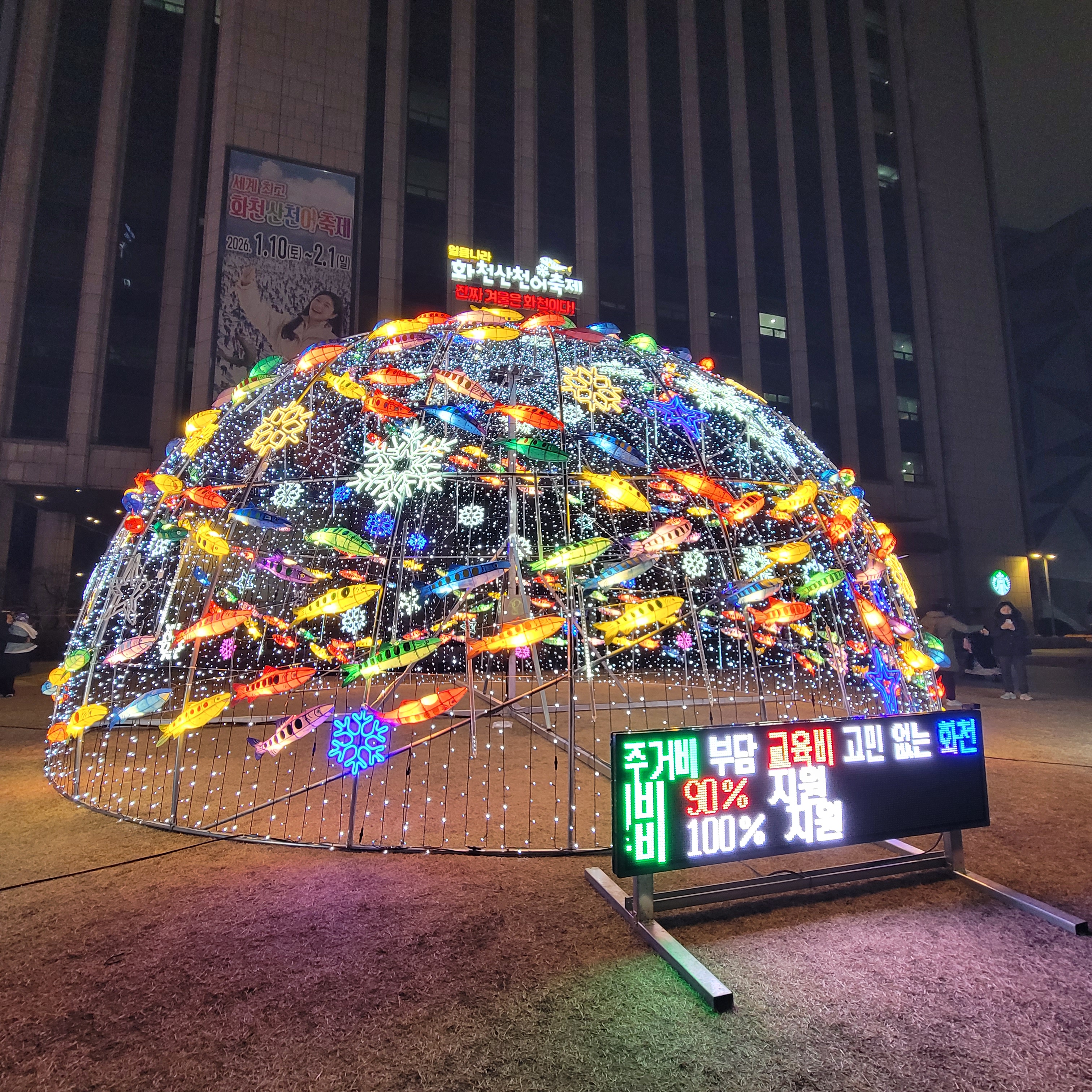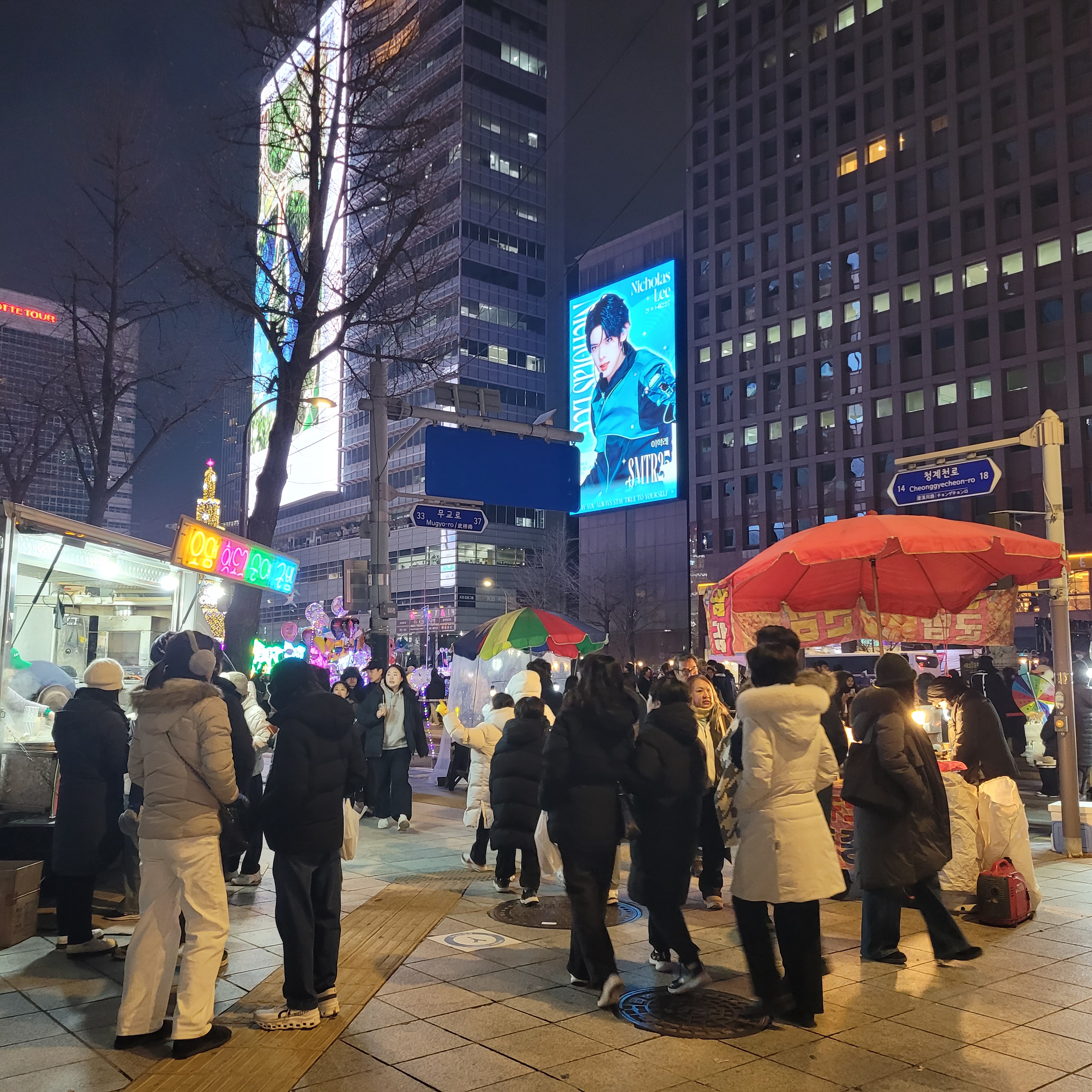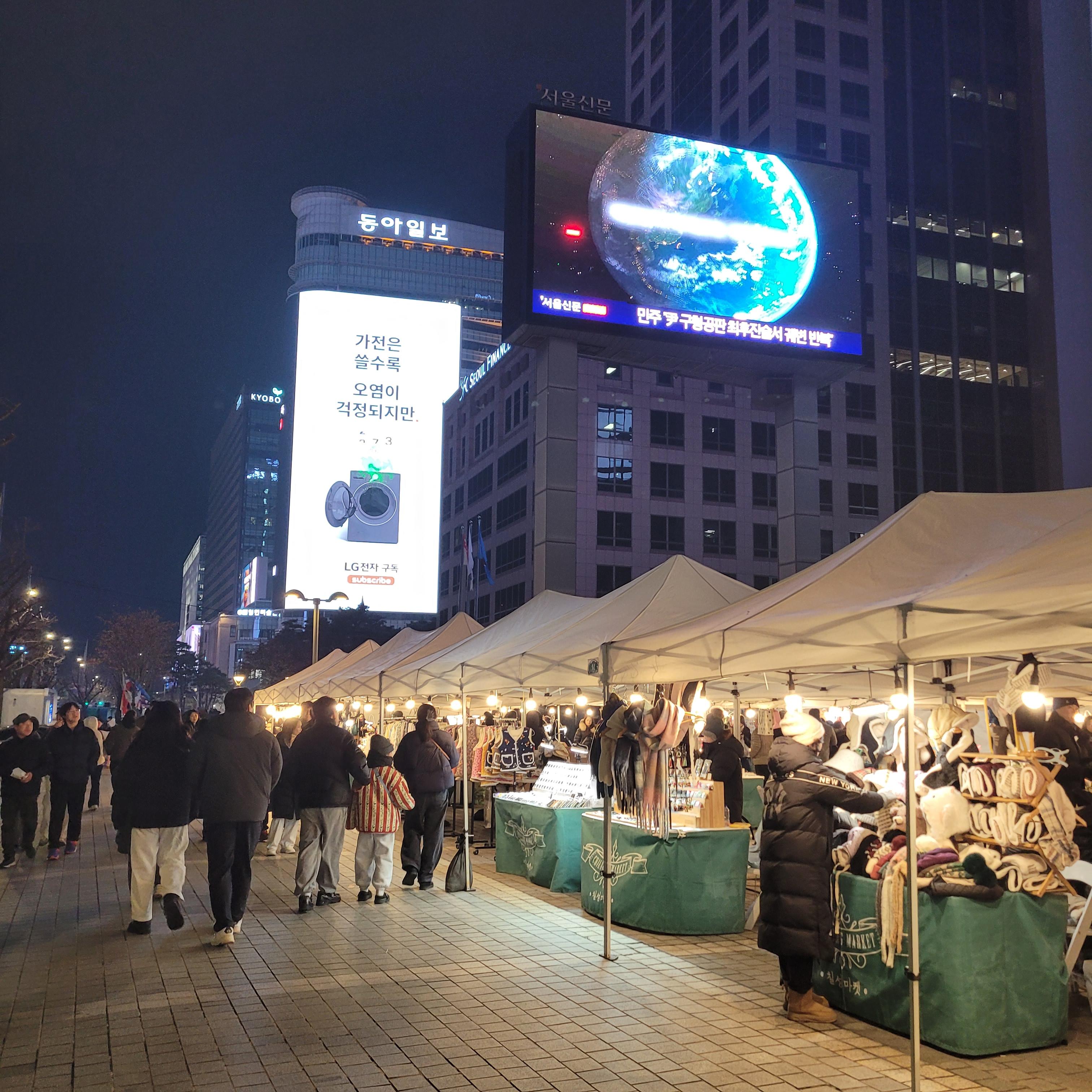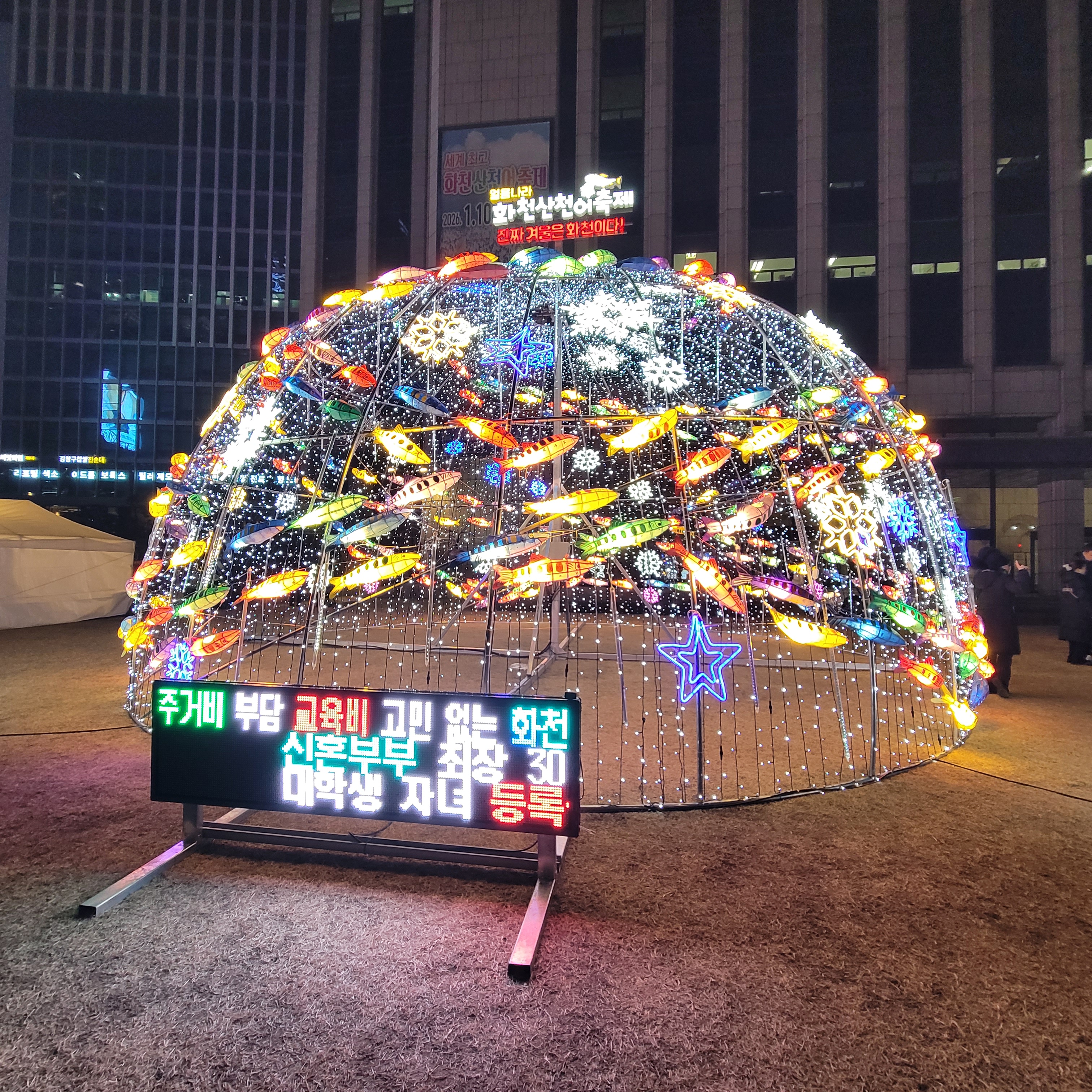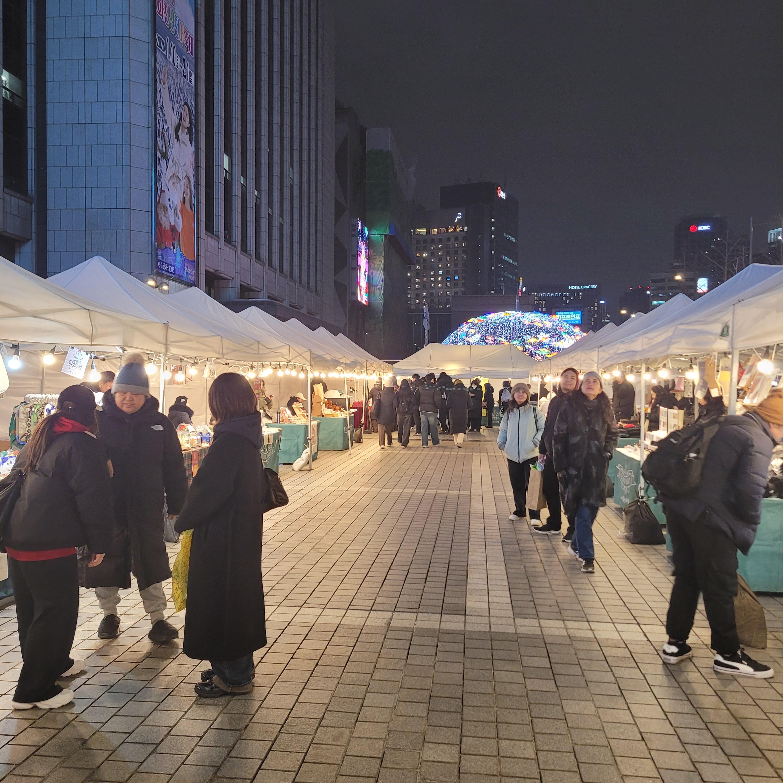 서울광장 스케이트장 구경을 모두 마치고 나서 청계광장 가는 길에 화천산천어축제를