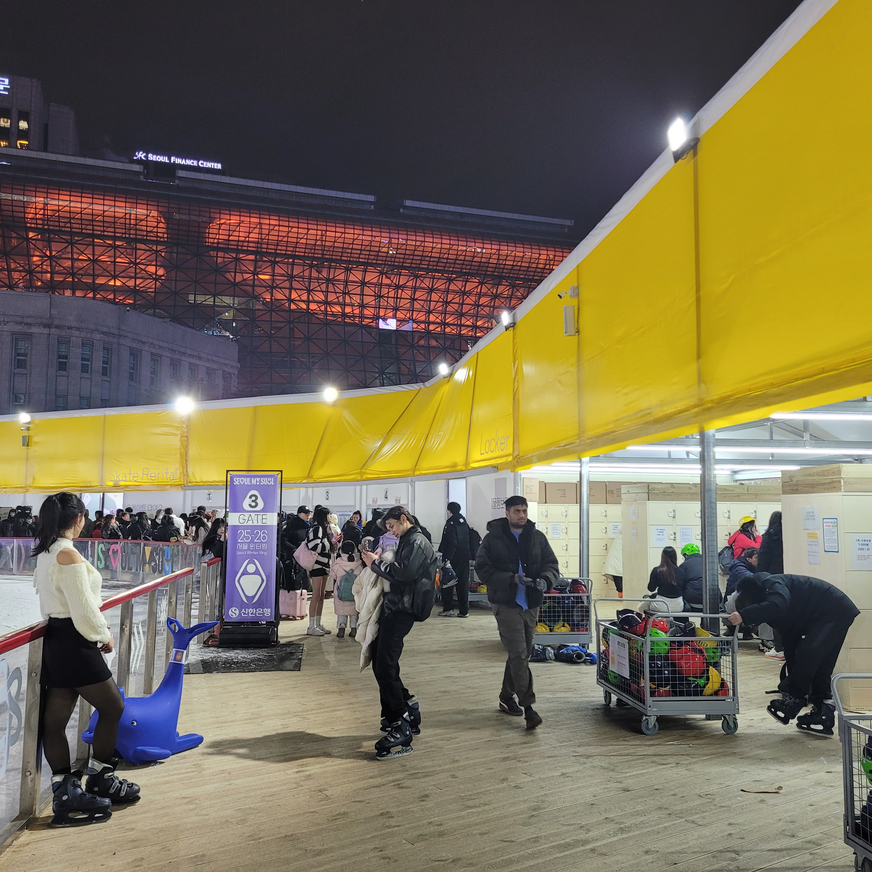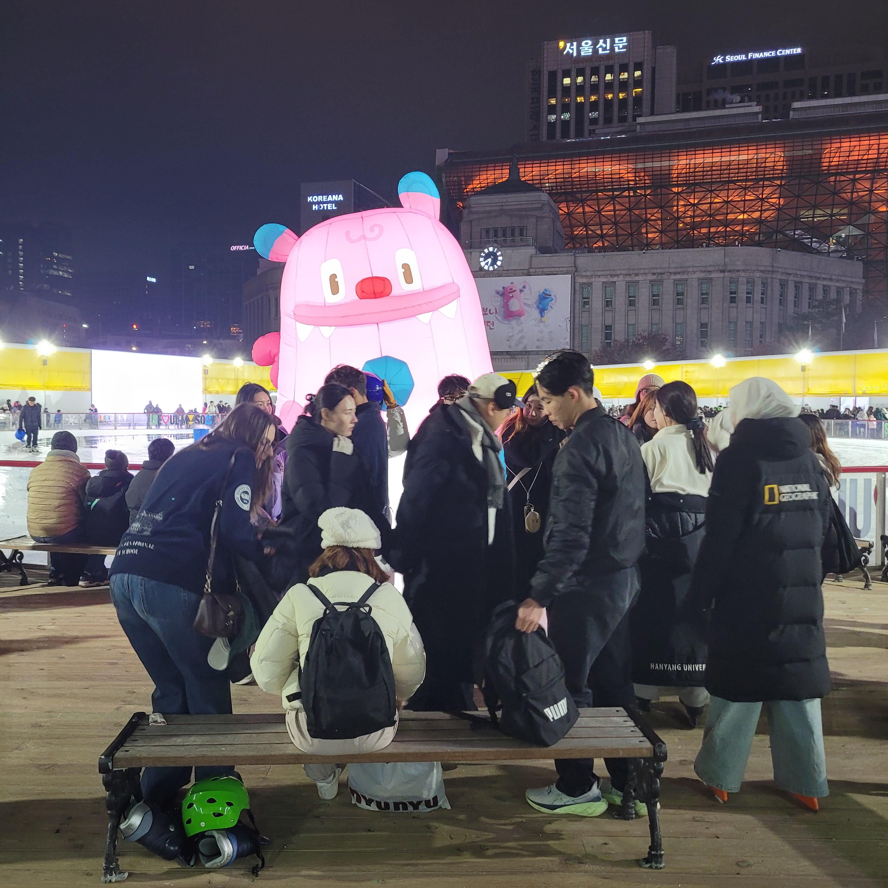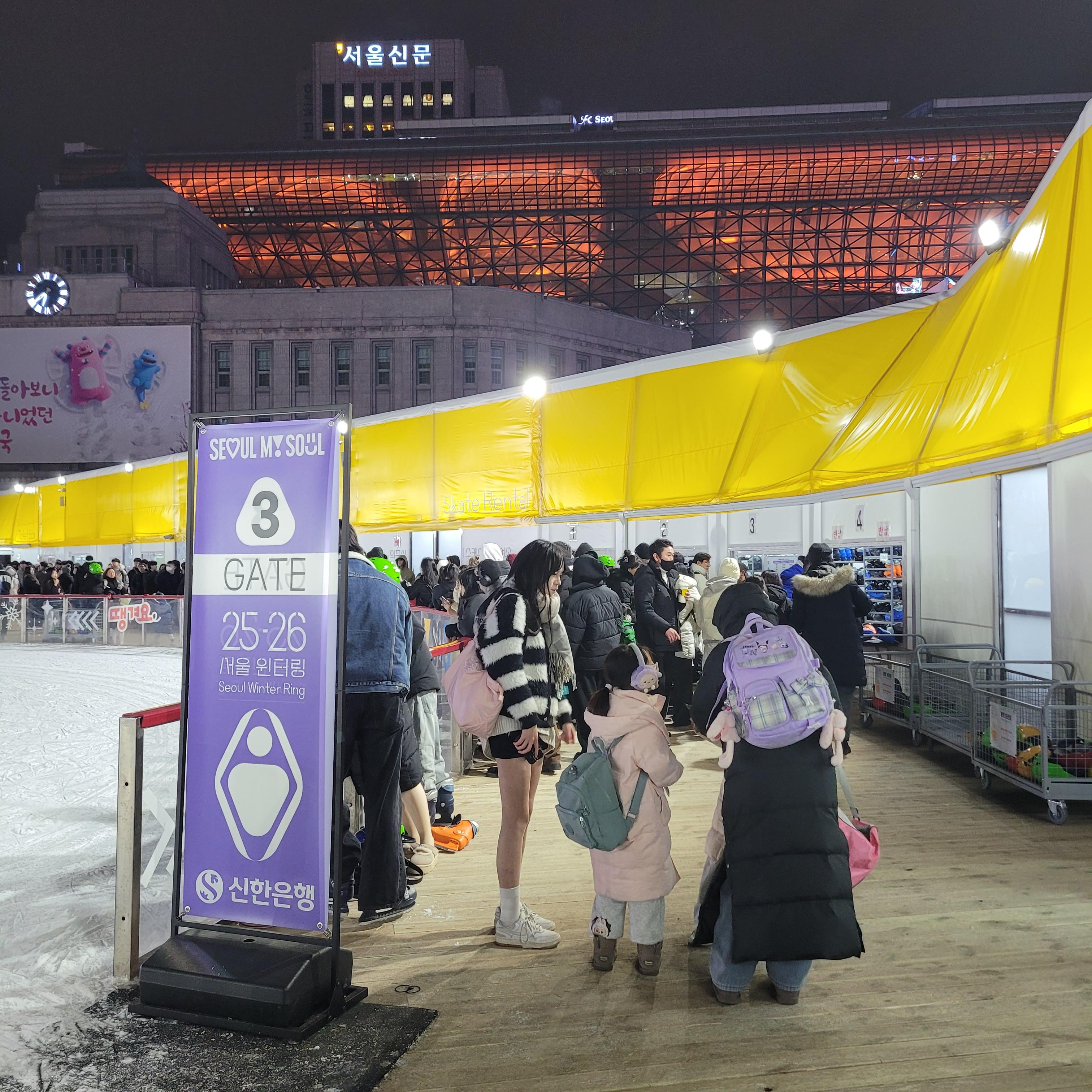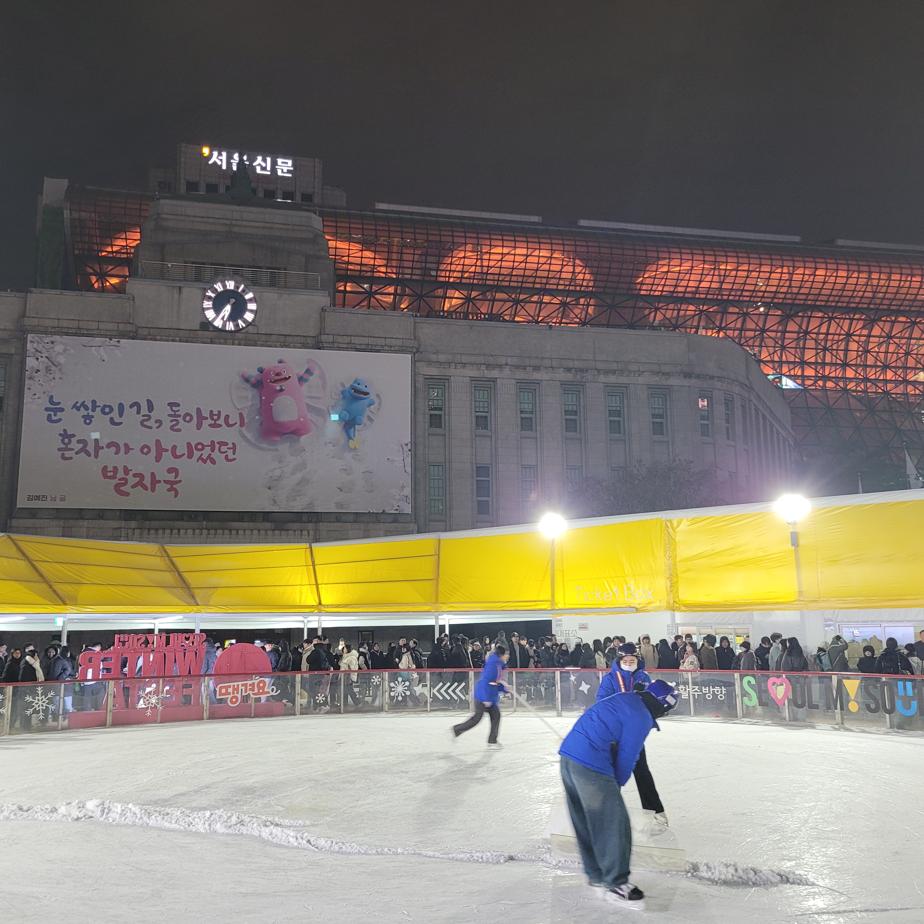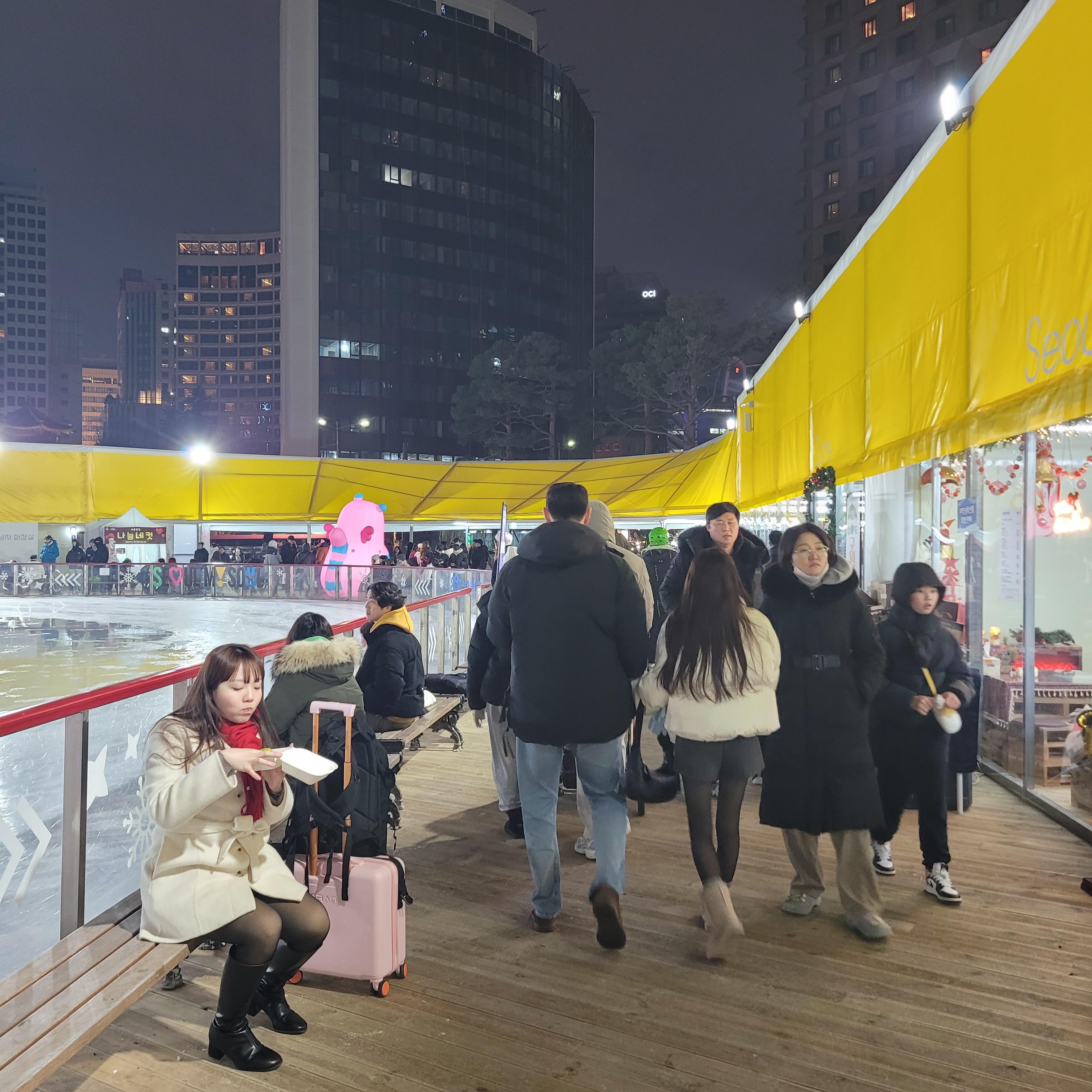 그리고 나서 서울광장 일대에 설치된 스케이트장도 둘러봤는데 빙판길 점검중이라서