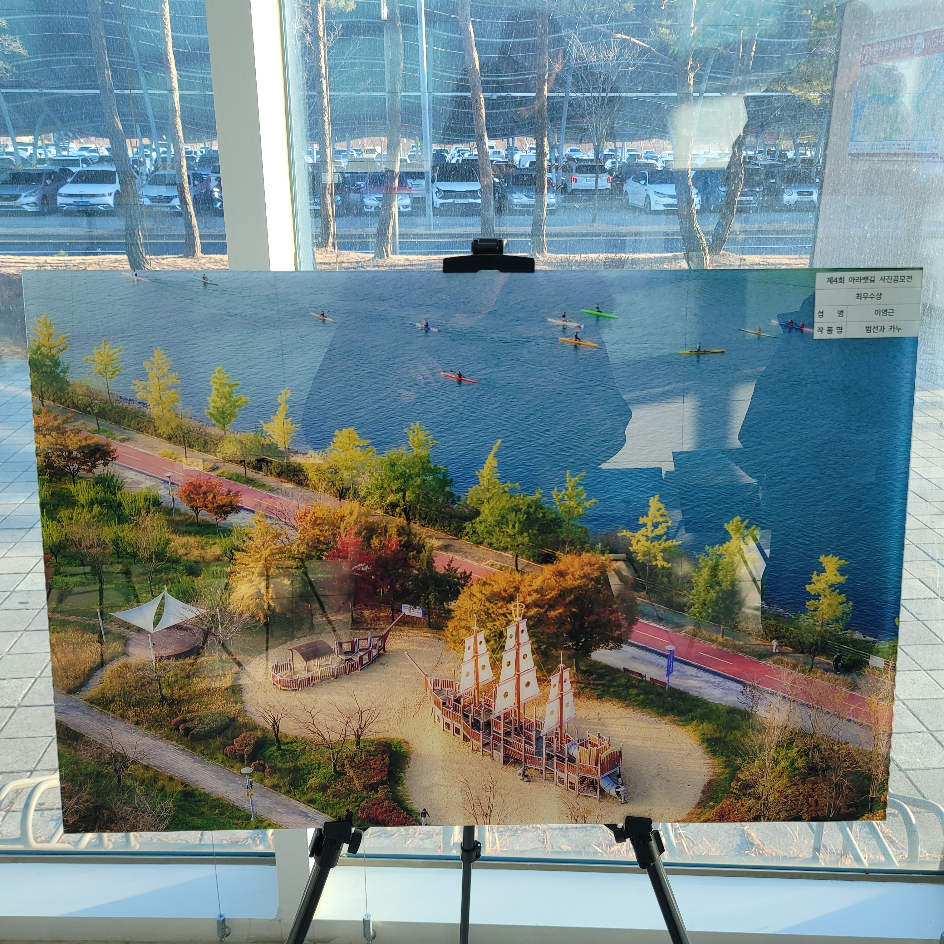 아라타워 풍경과 제4회 아라뱃길 사진공모전 수상작 전시회 풍경도