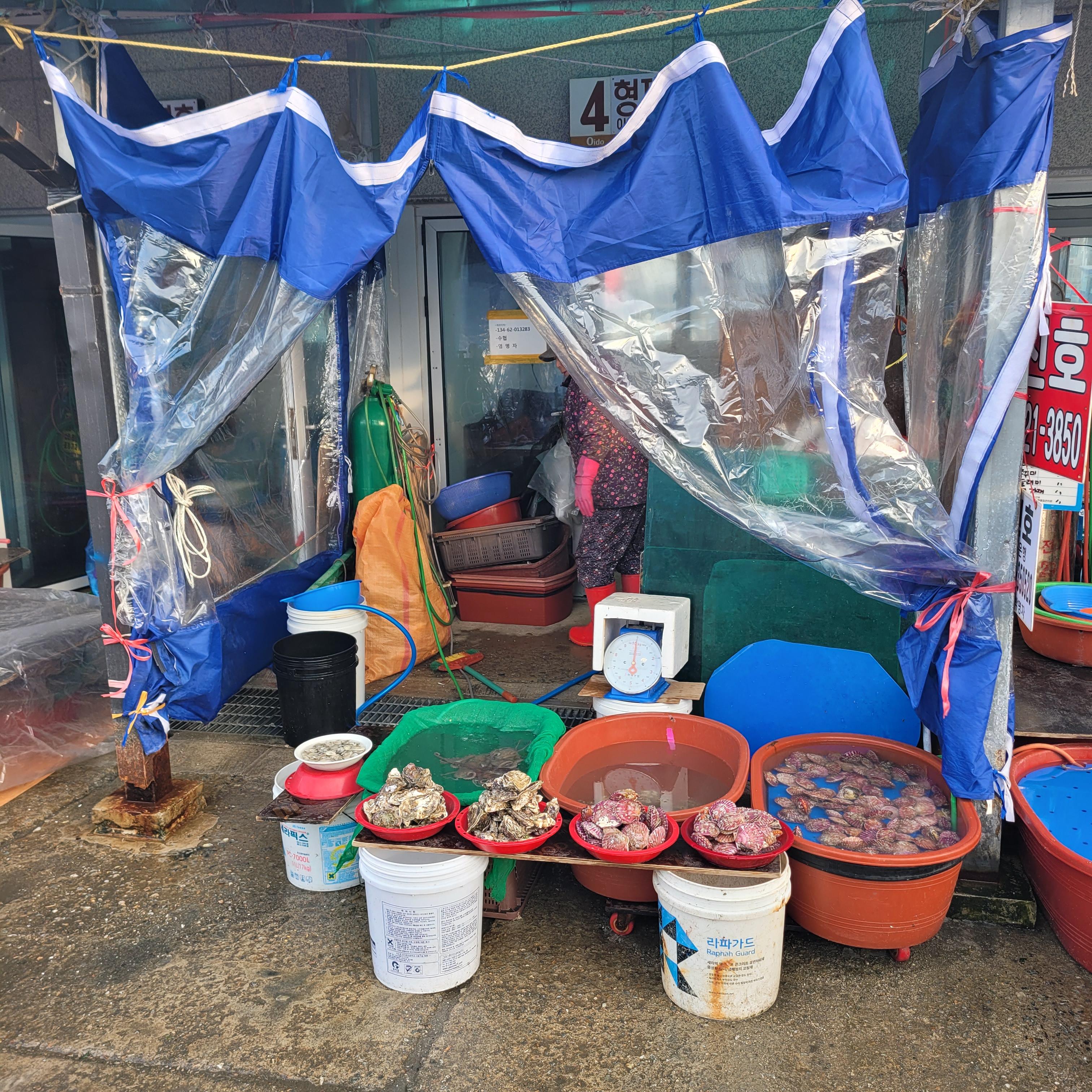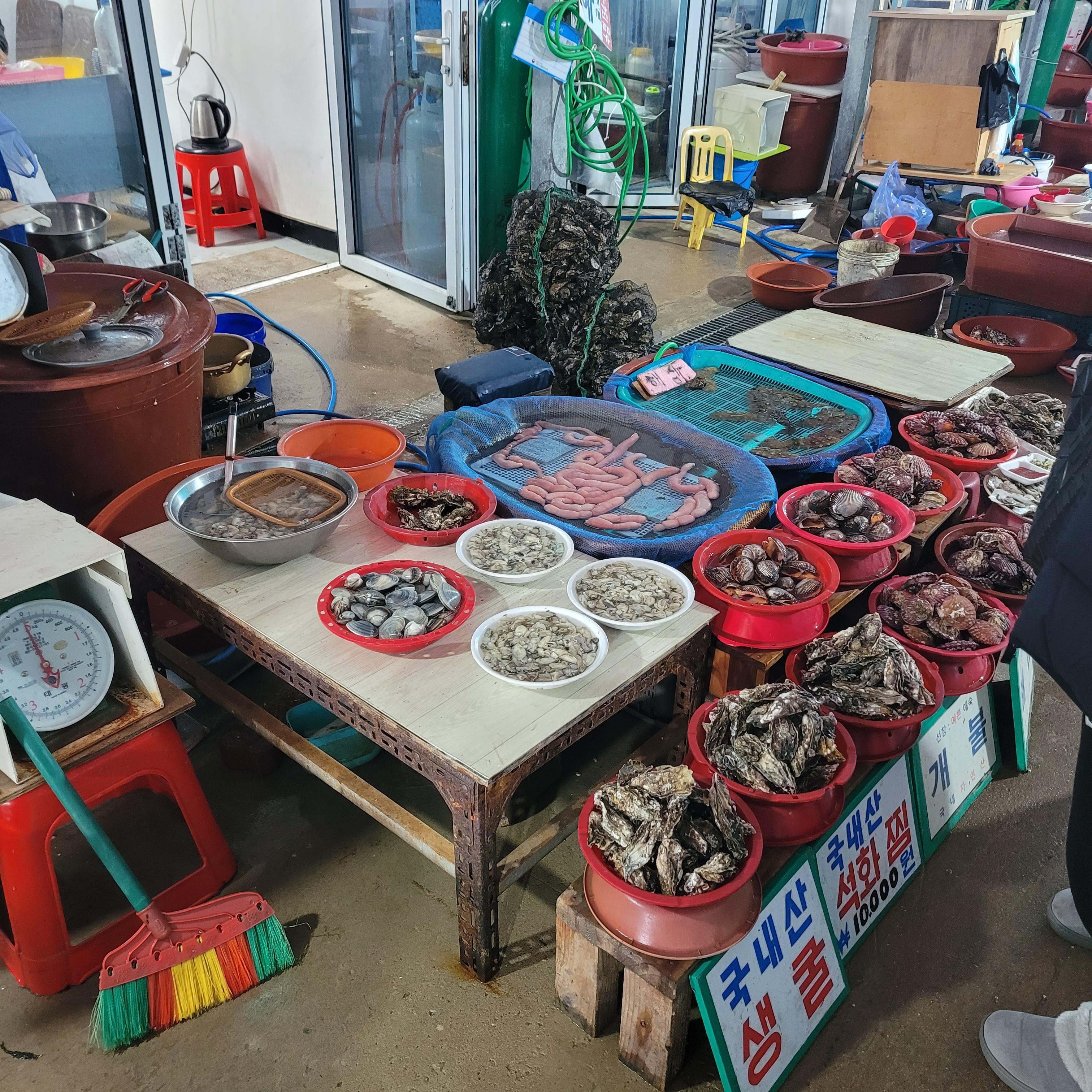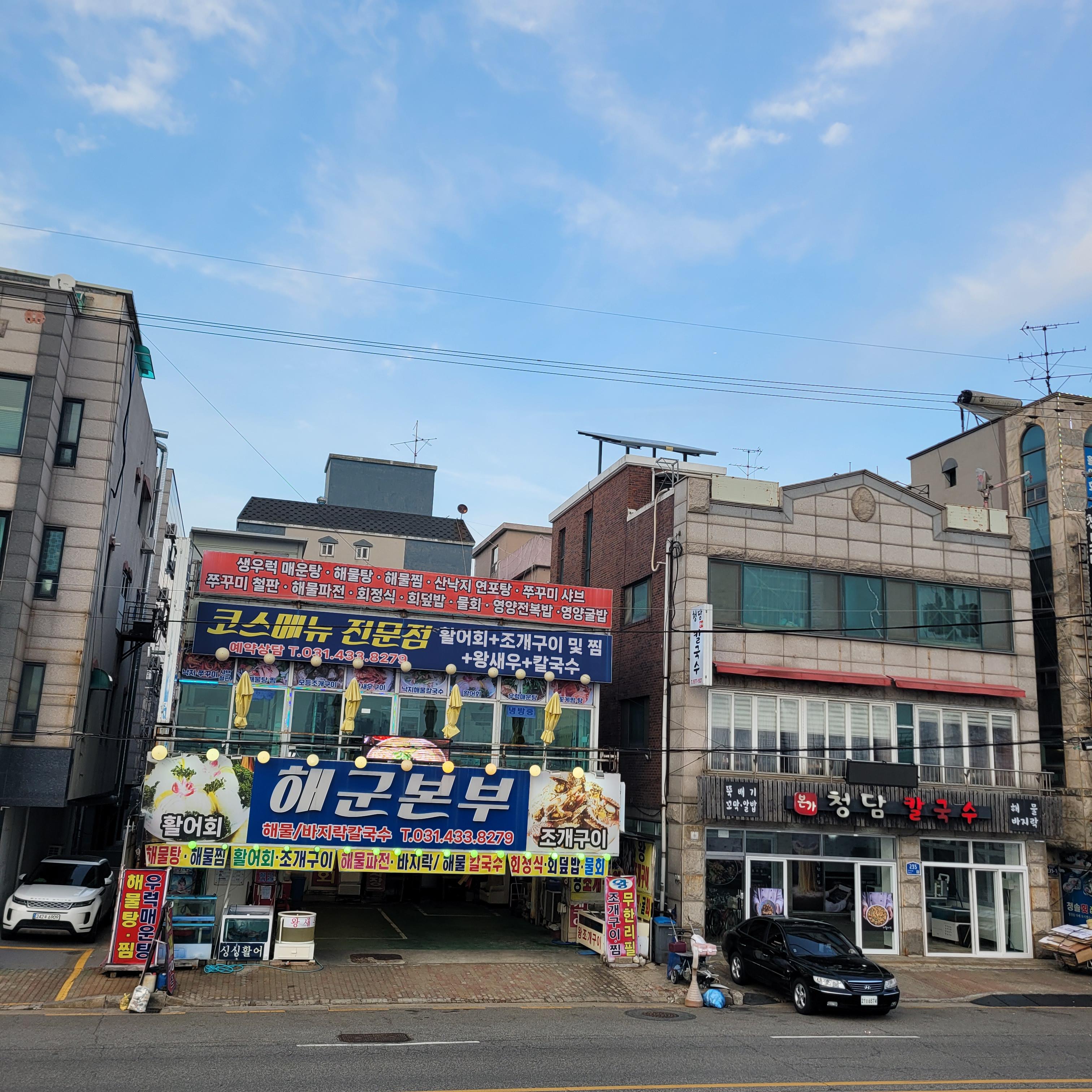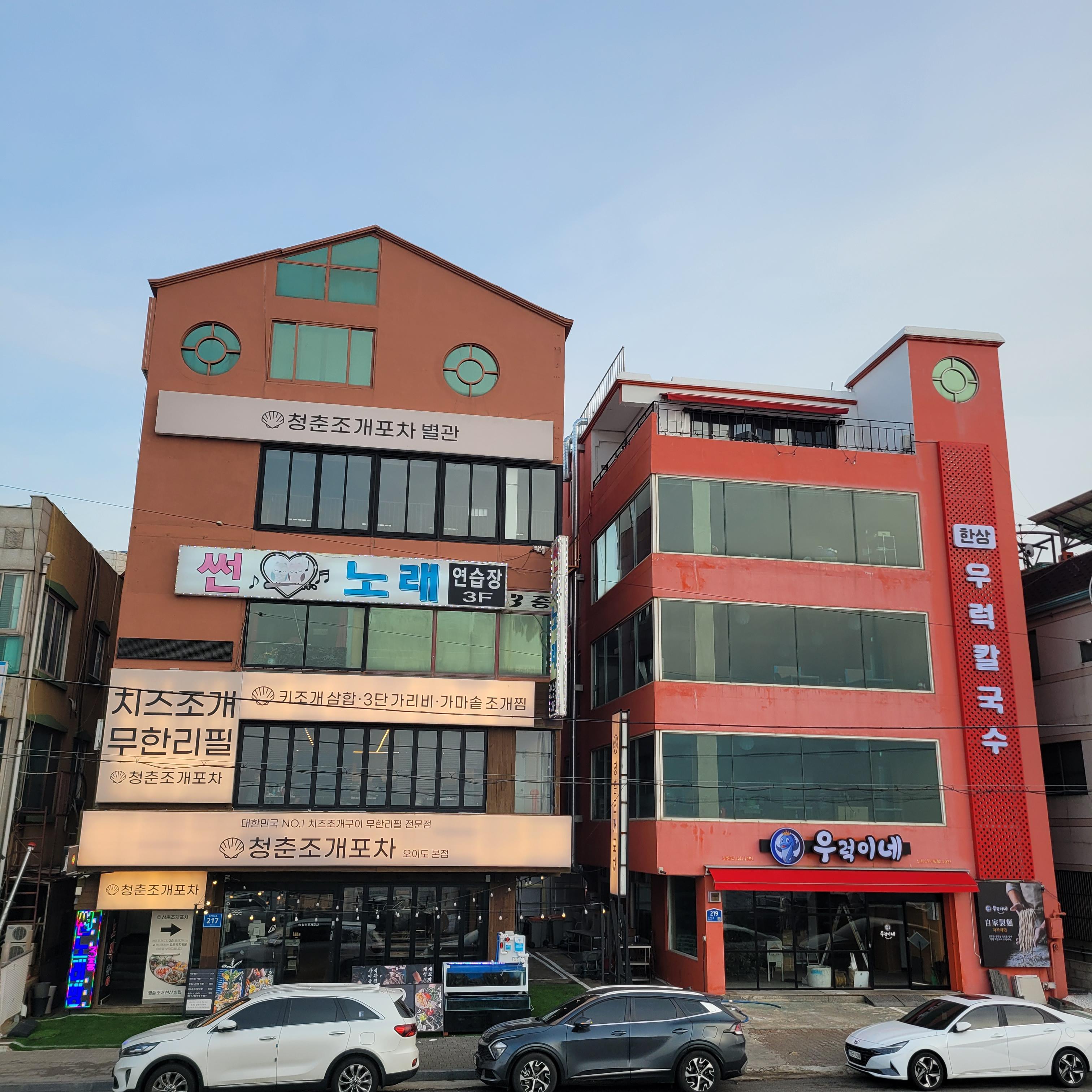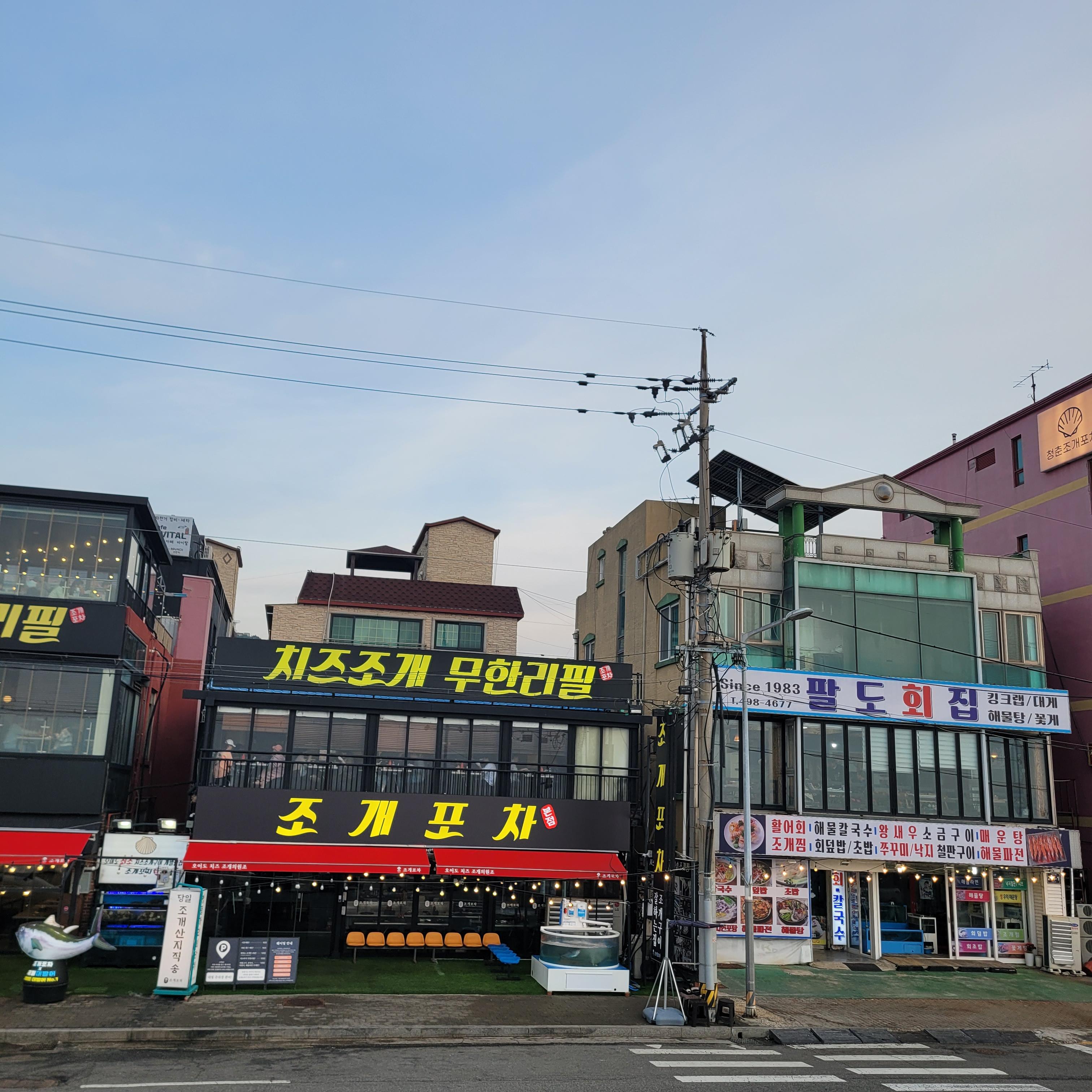 저녁에는 오이도 갈때마다 항상 들렀던 우정횟집에서 바지락칼국수와 새우튀김