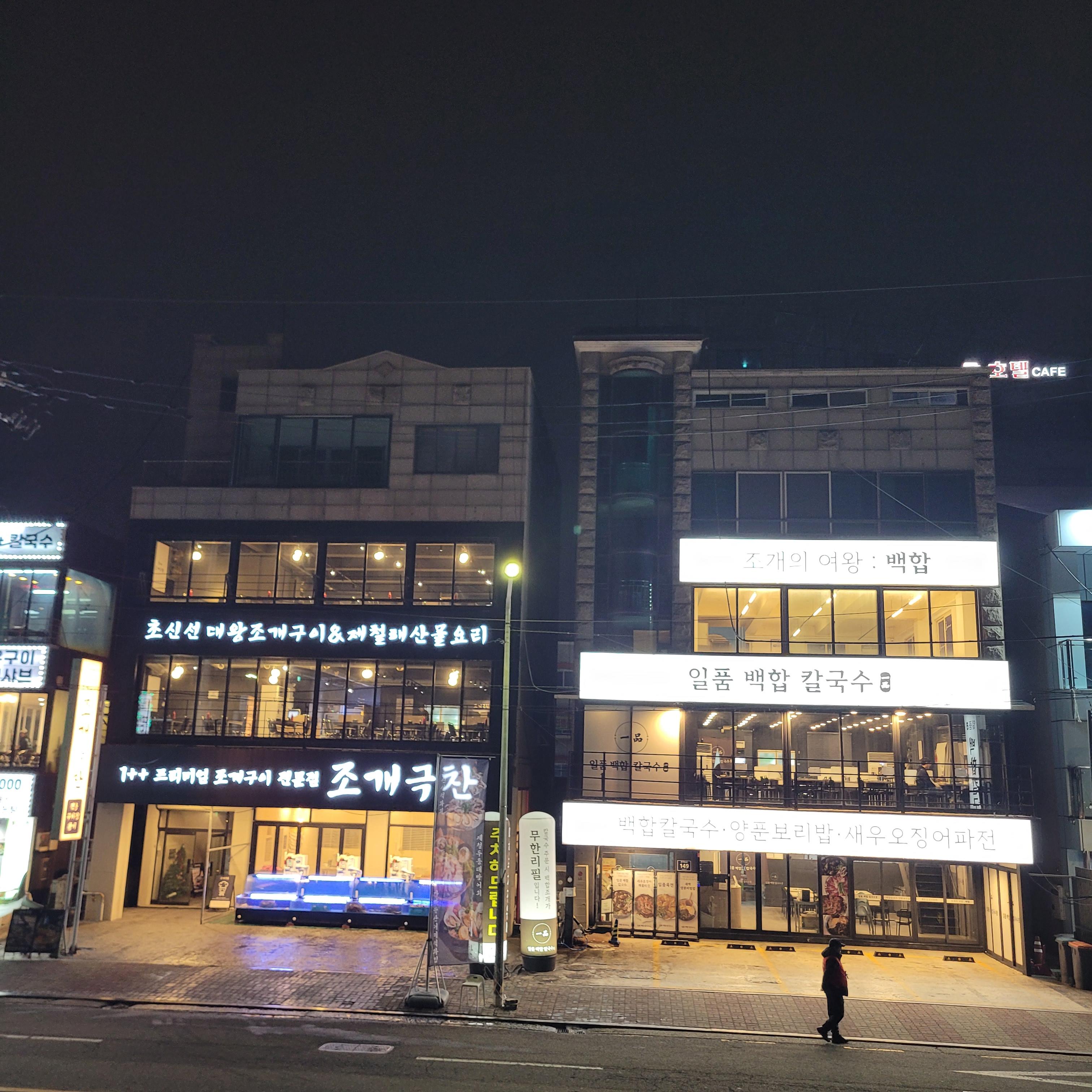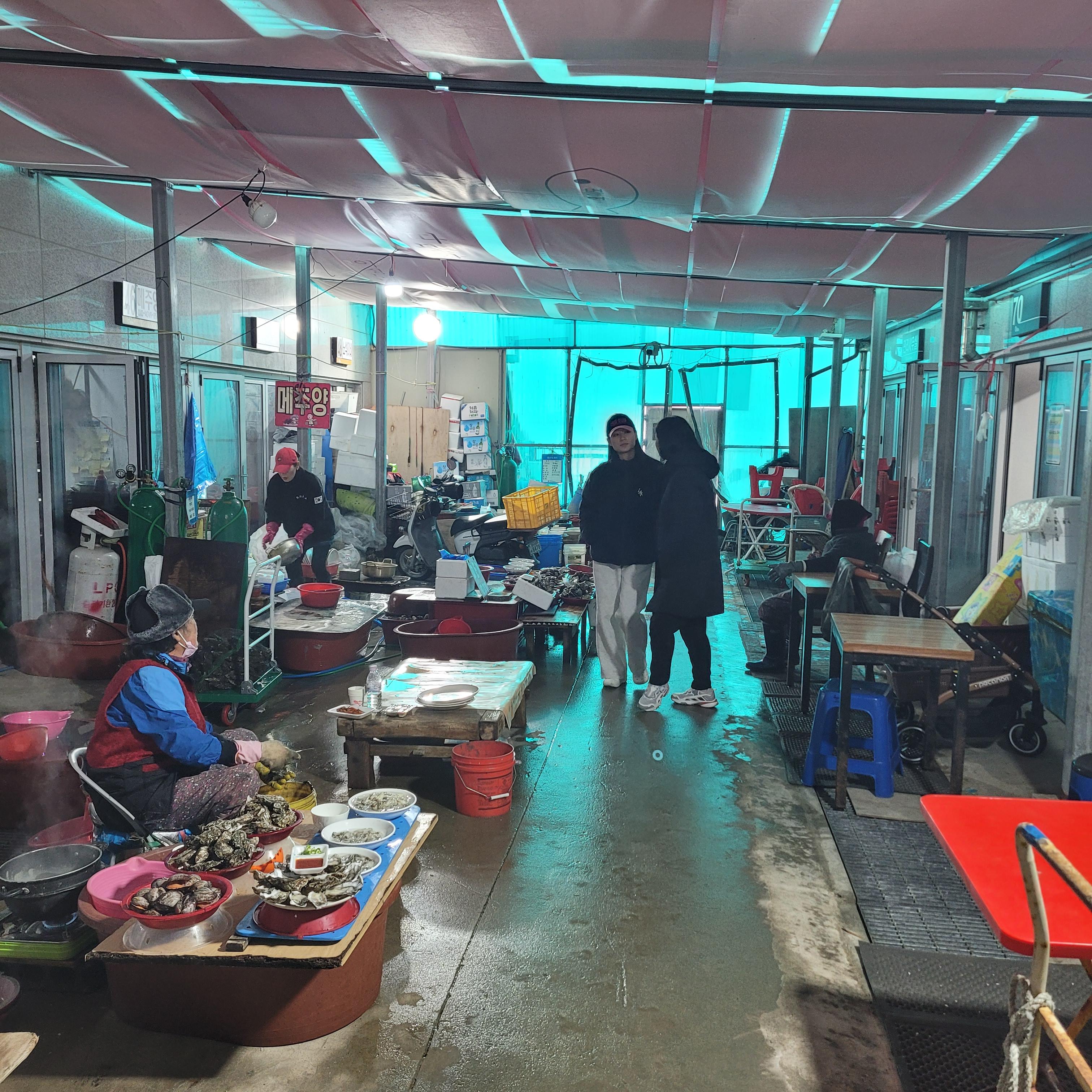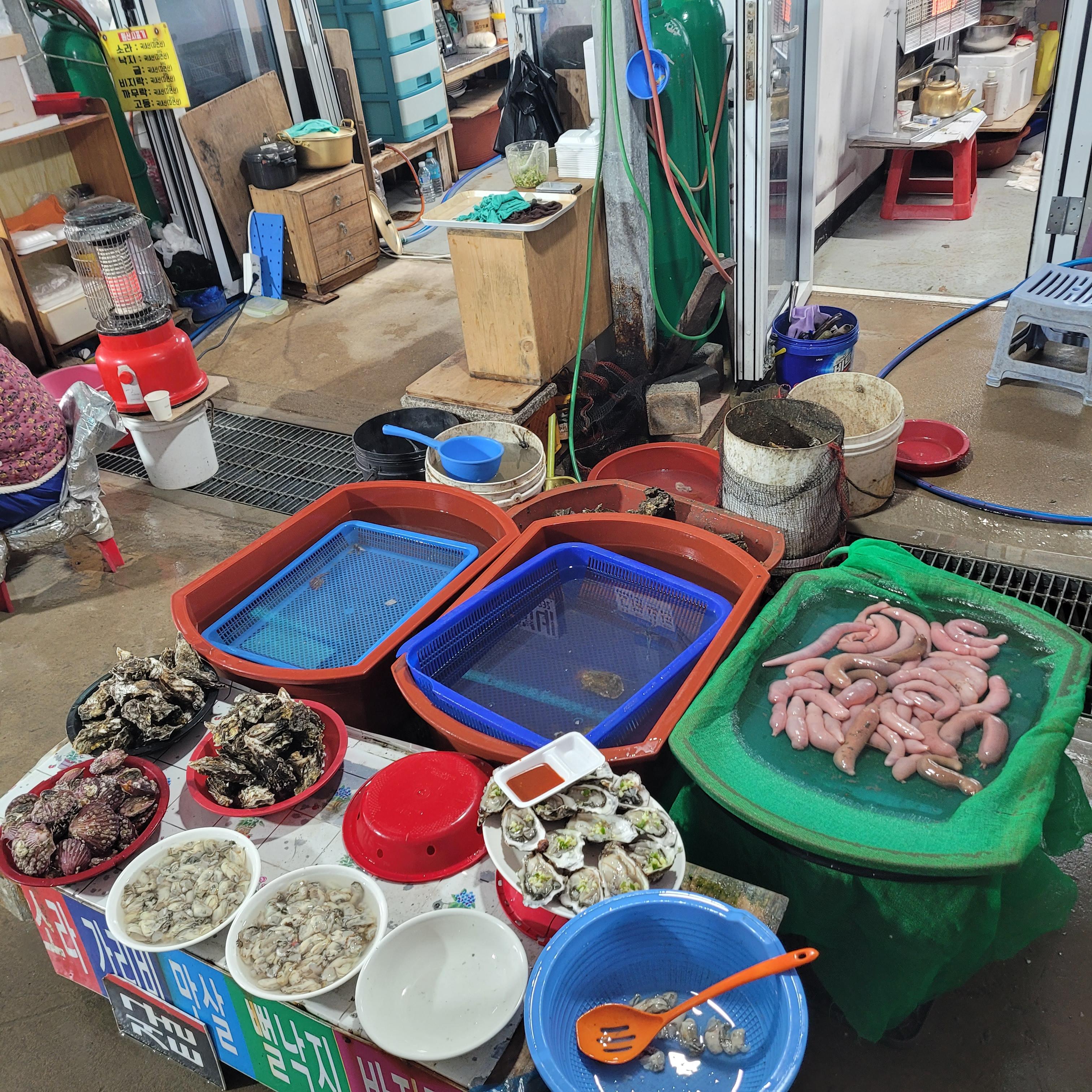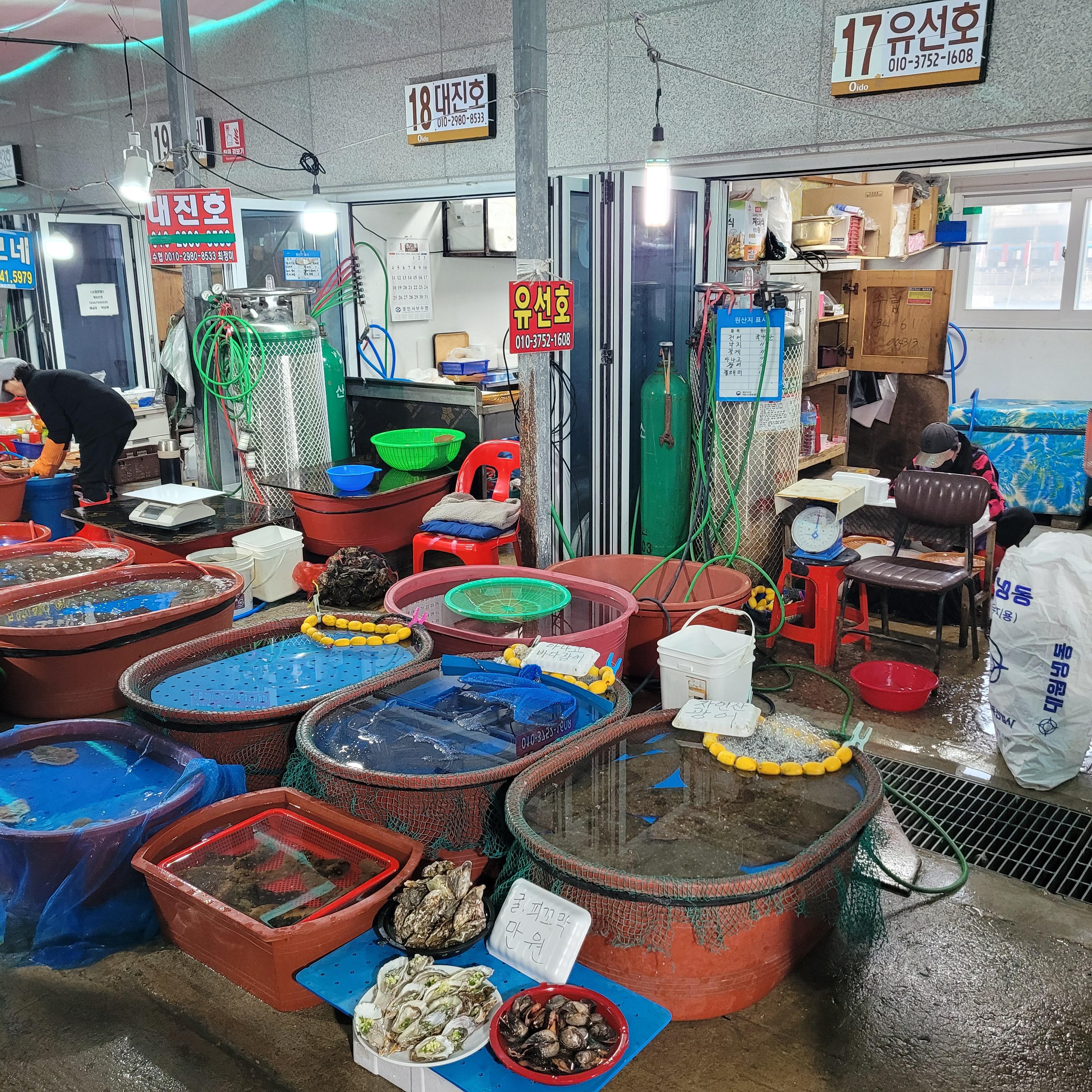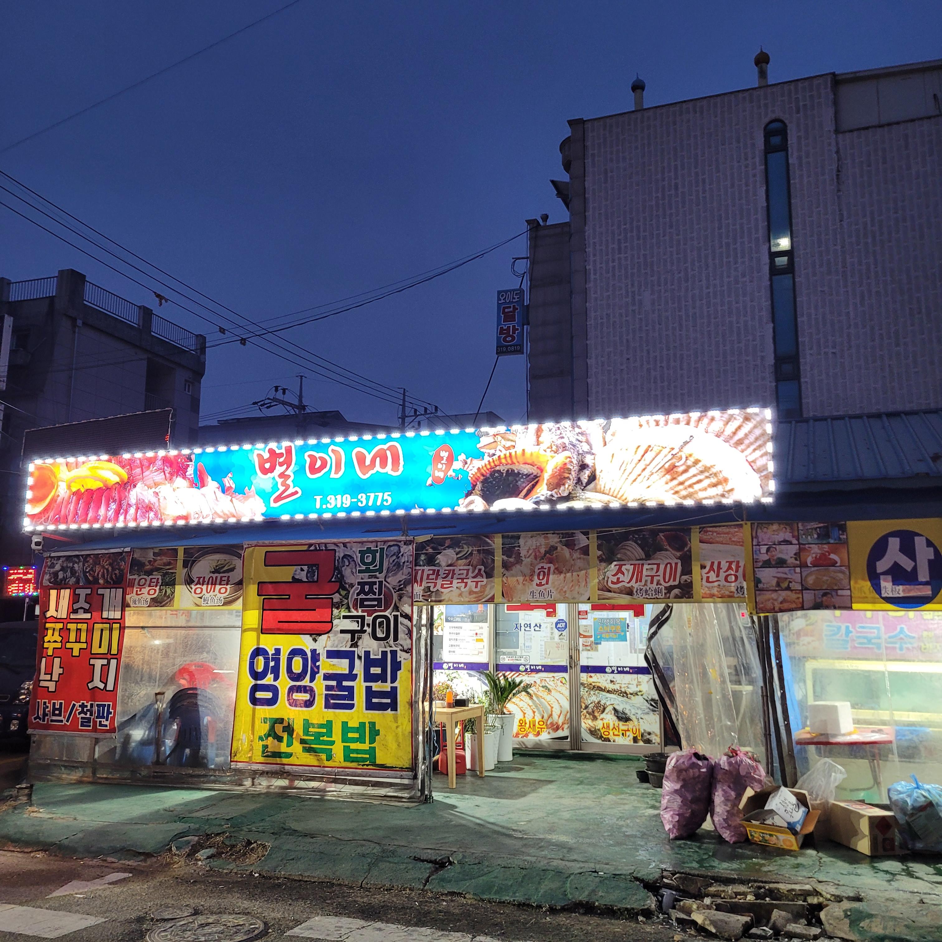 저녁에는 오이도 갈때마다 항상 들렀던 우정횟집에서 바지락칼국수와 새우튀김