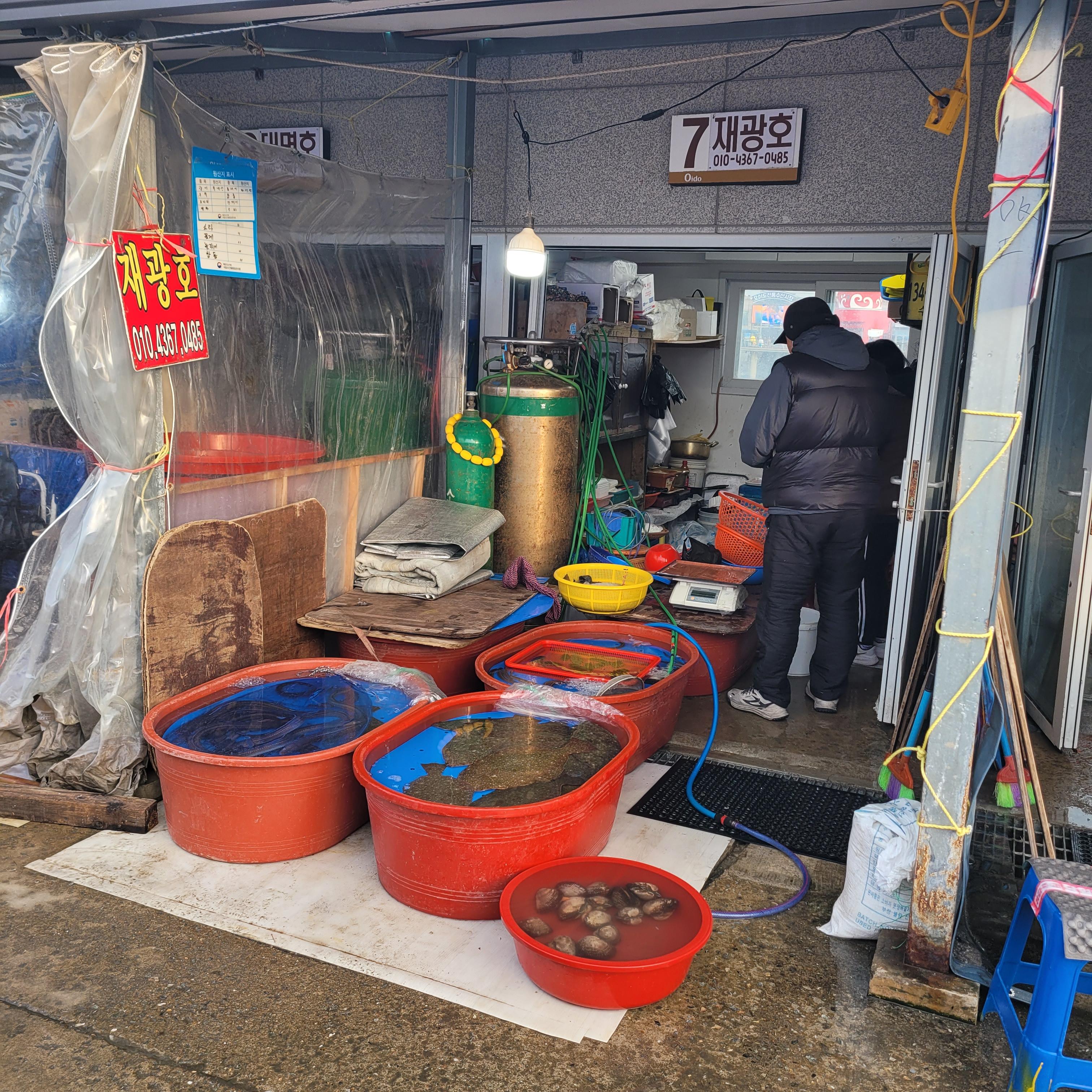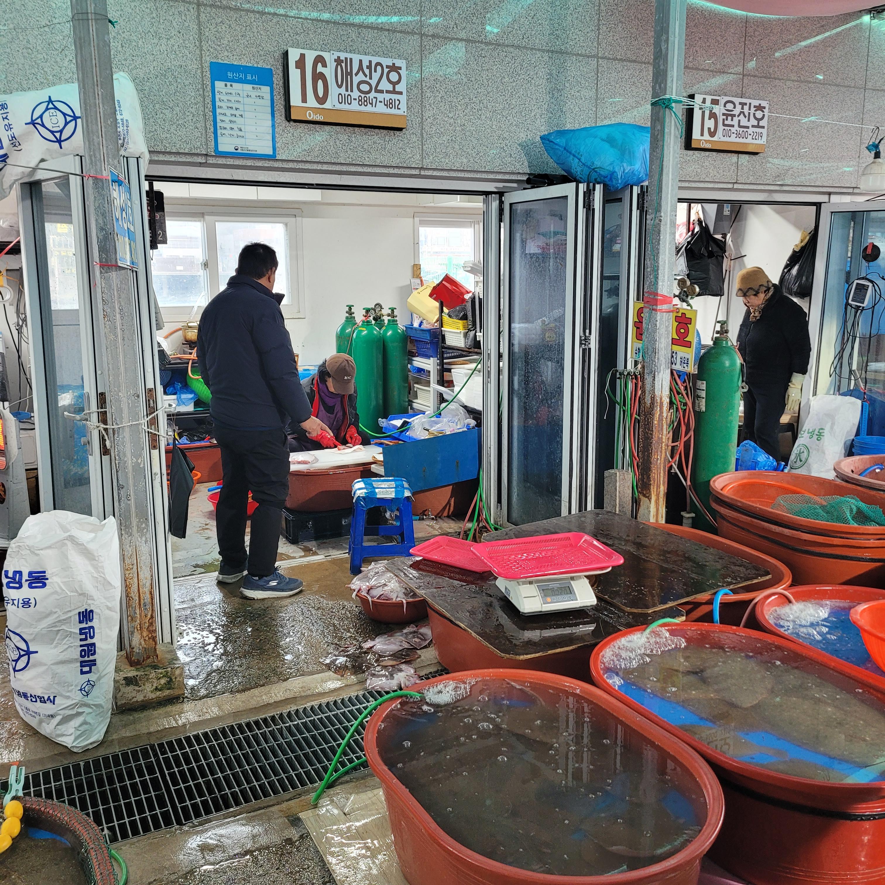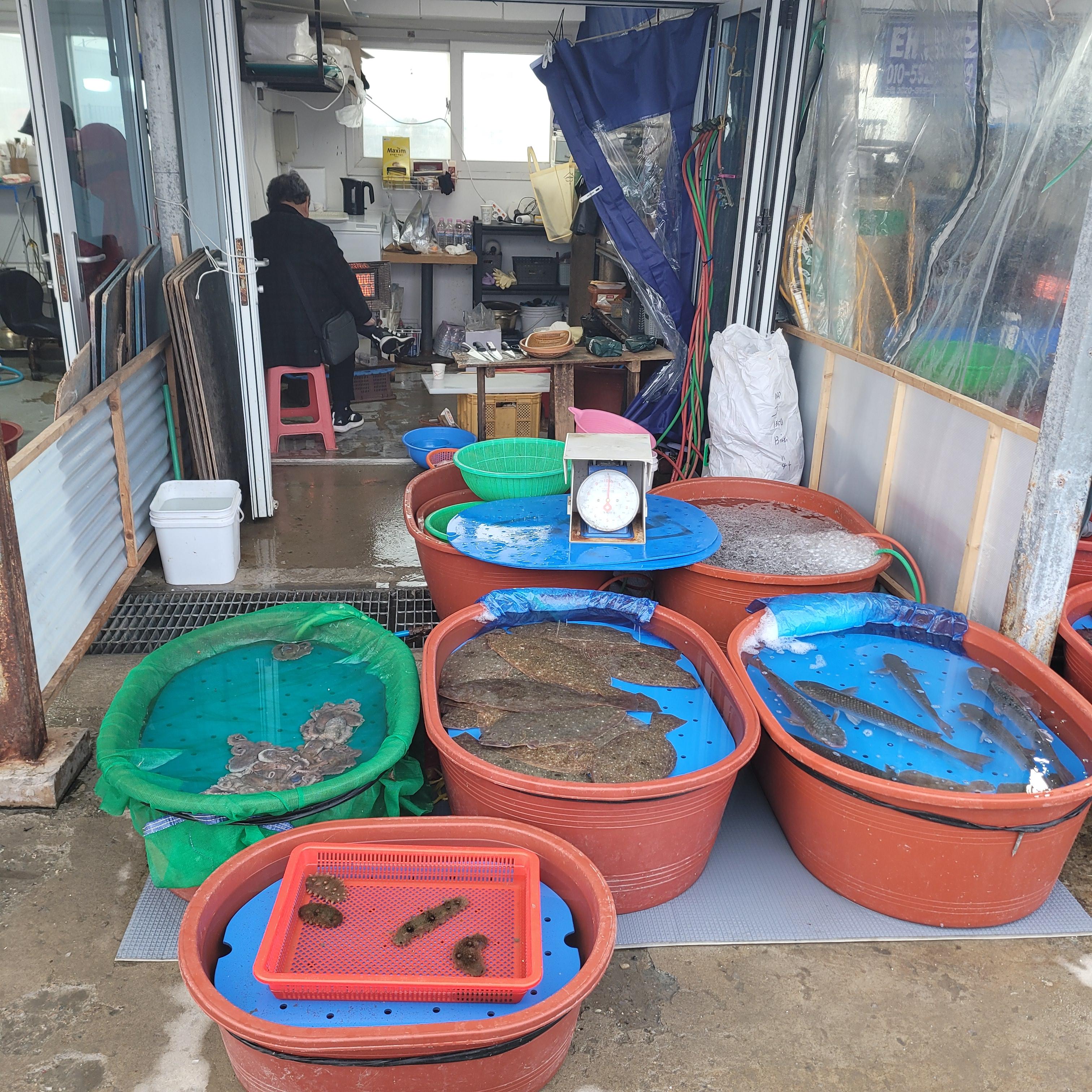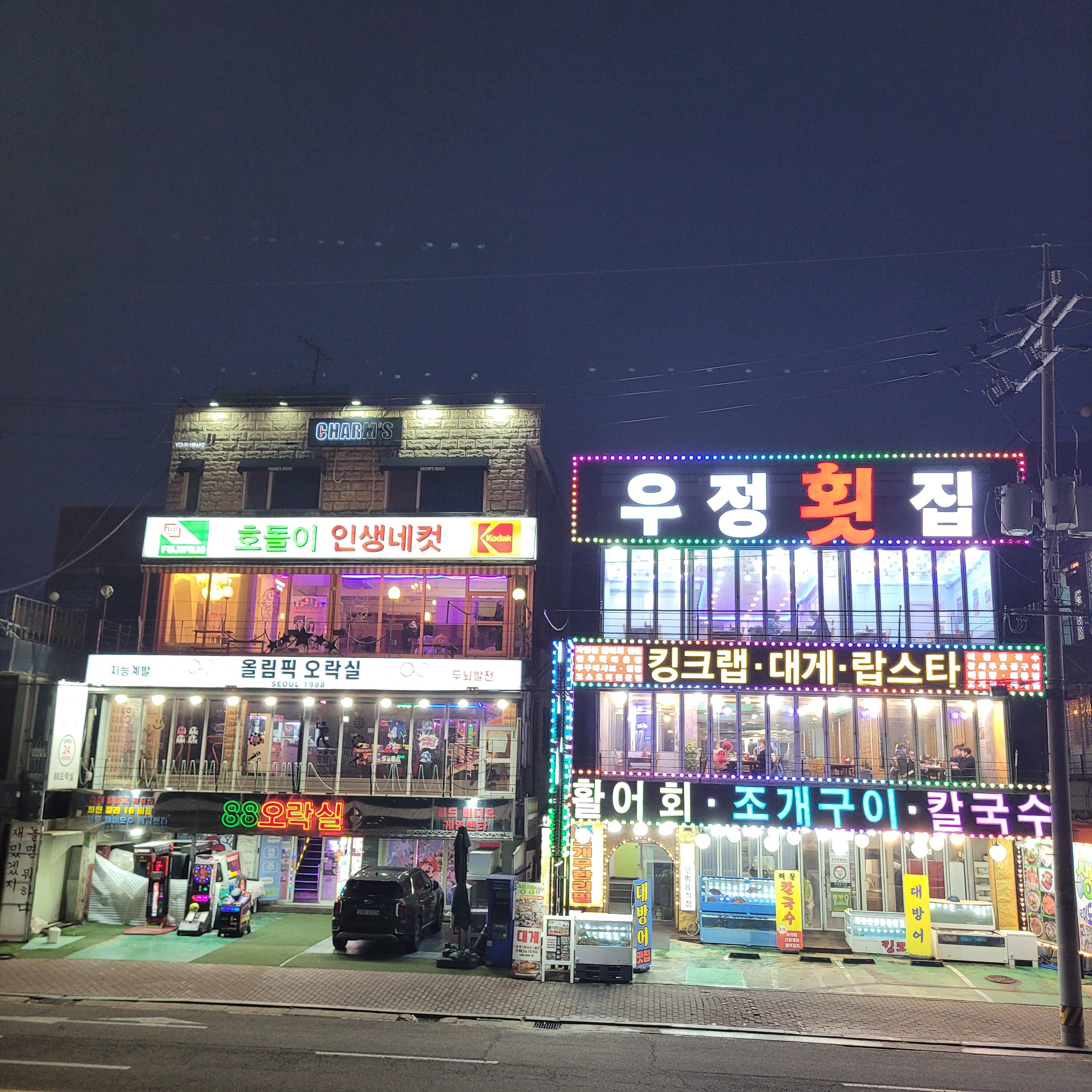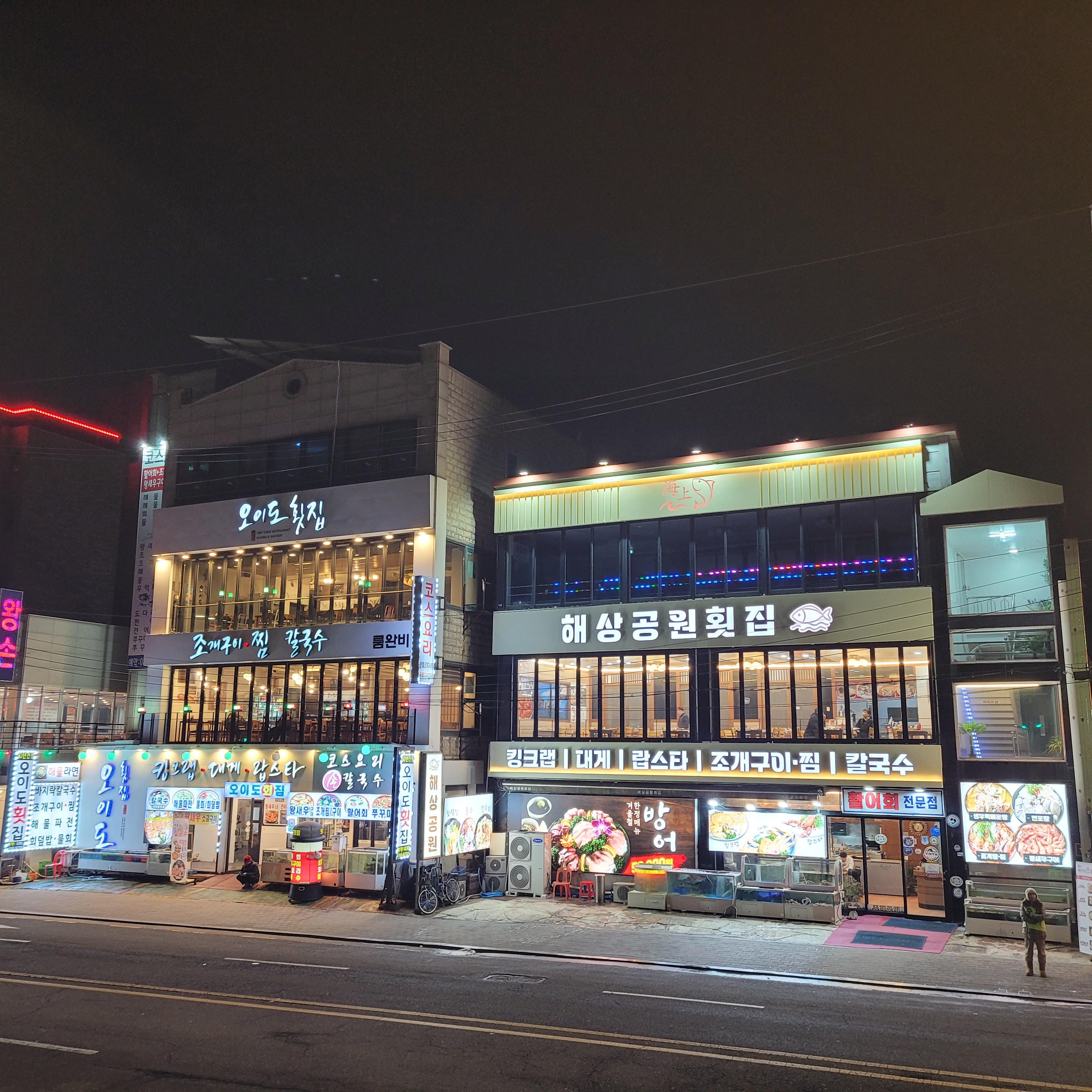 저녁에는 오이도 갈때마다 항상 들렀던 우정횟집에서 바지락칼국수와 새우튀김