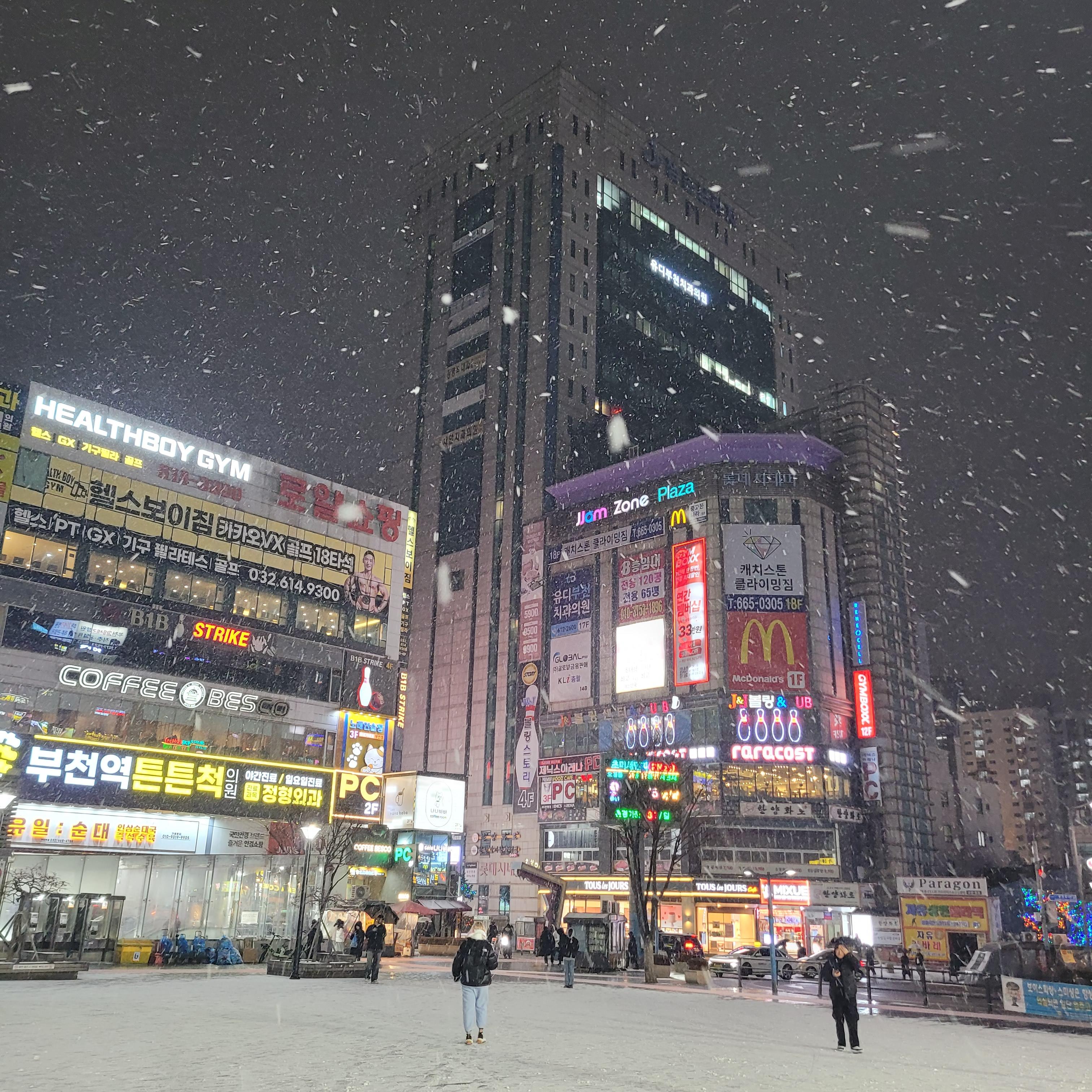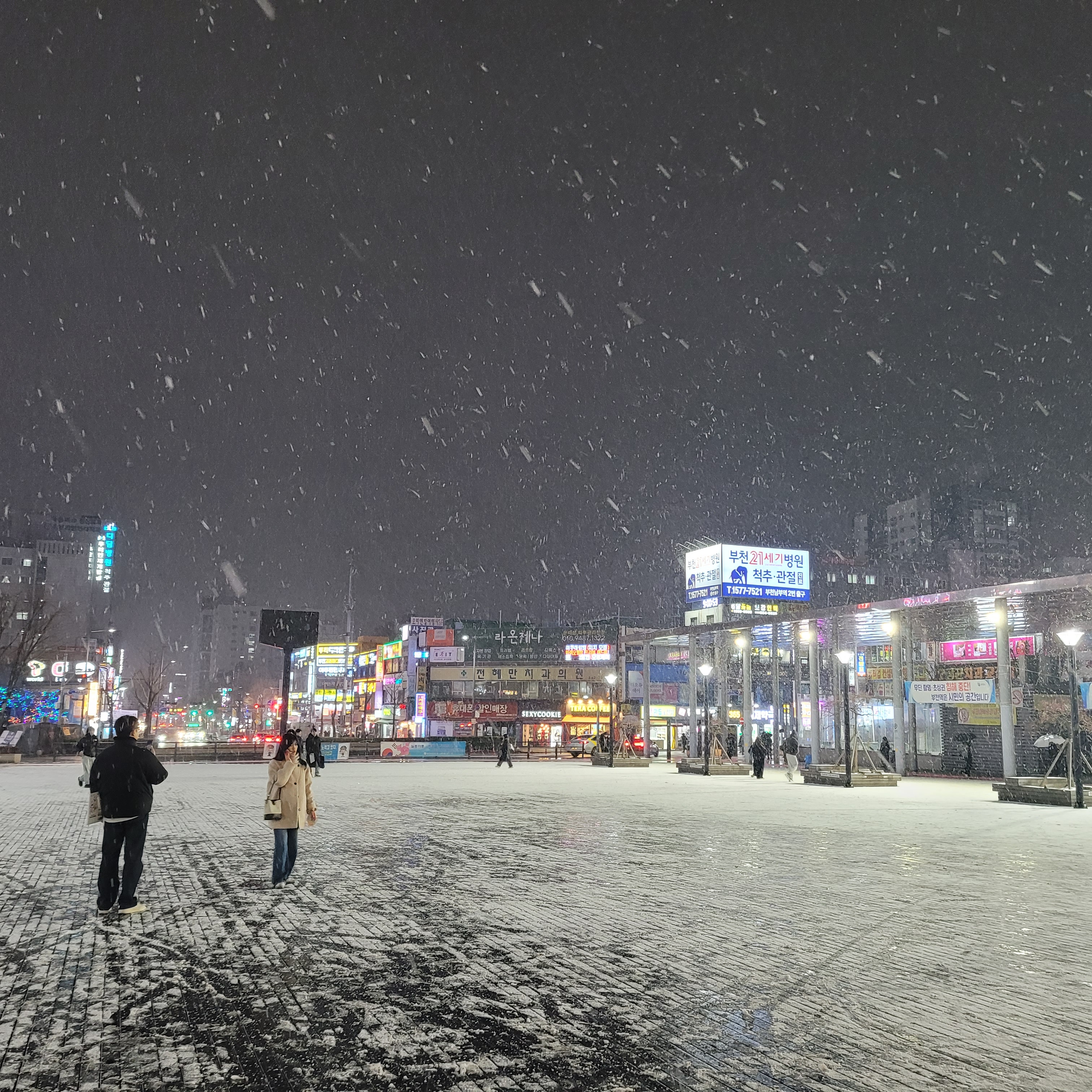 부천역 남부광장과 부천북부역 마루광장 일대도 눈이 점점