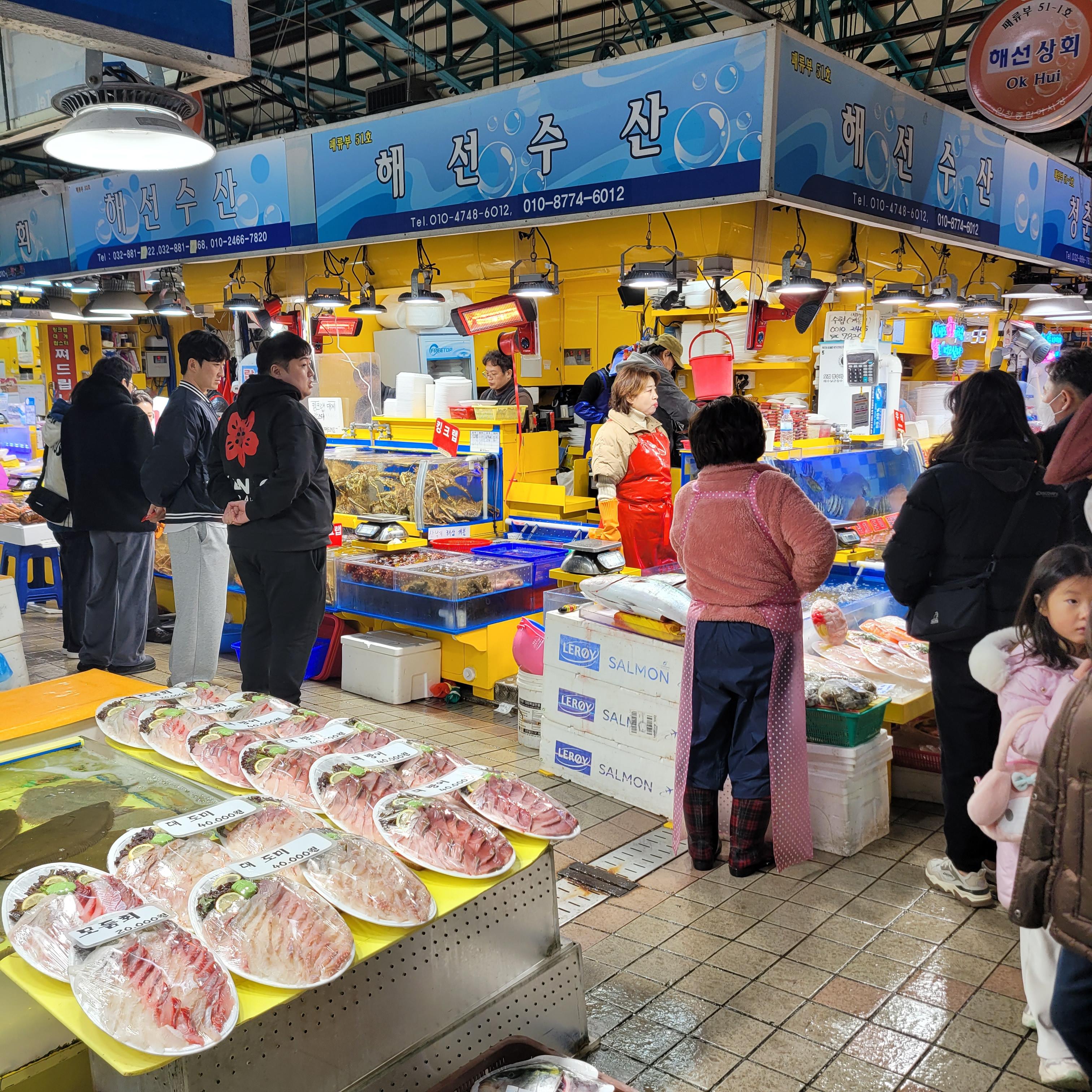 저도 인천종합어시장 곳곳 구경들도 하고 어시장 뒷편에서 파는 녹차호떡도 하나 사먹는 등