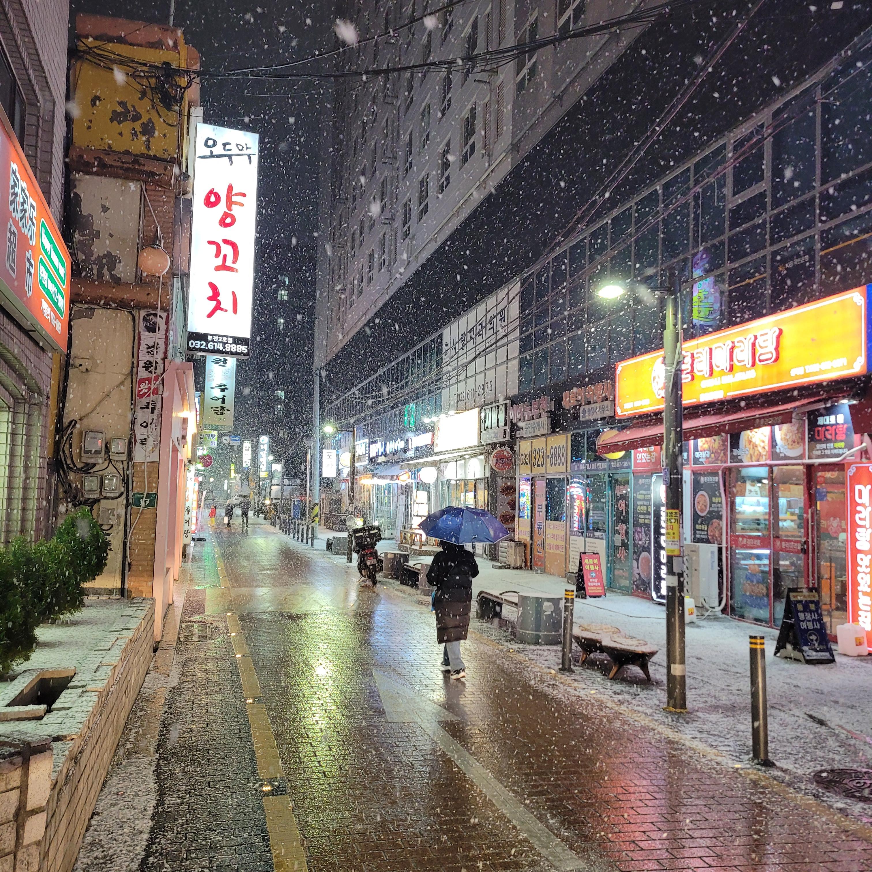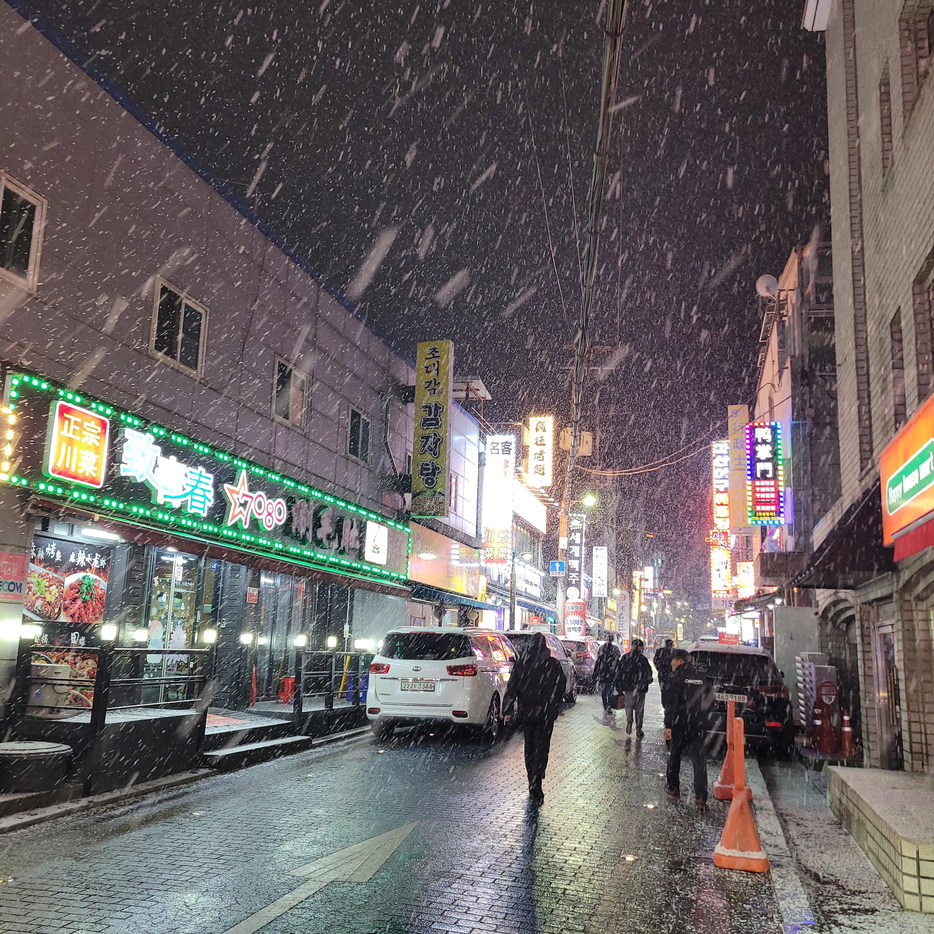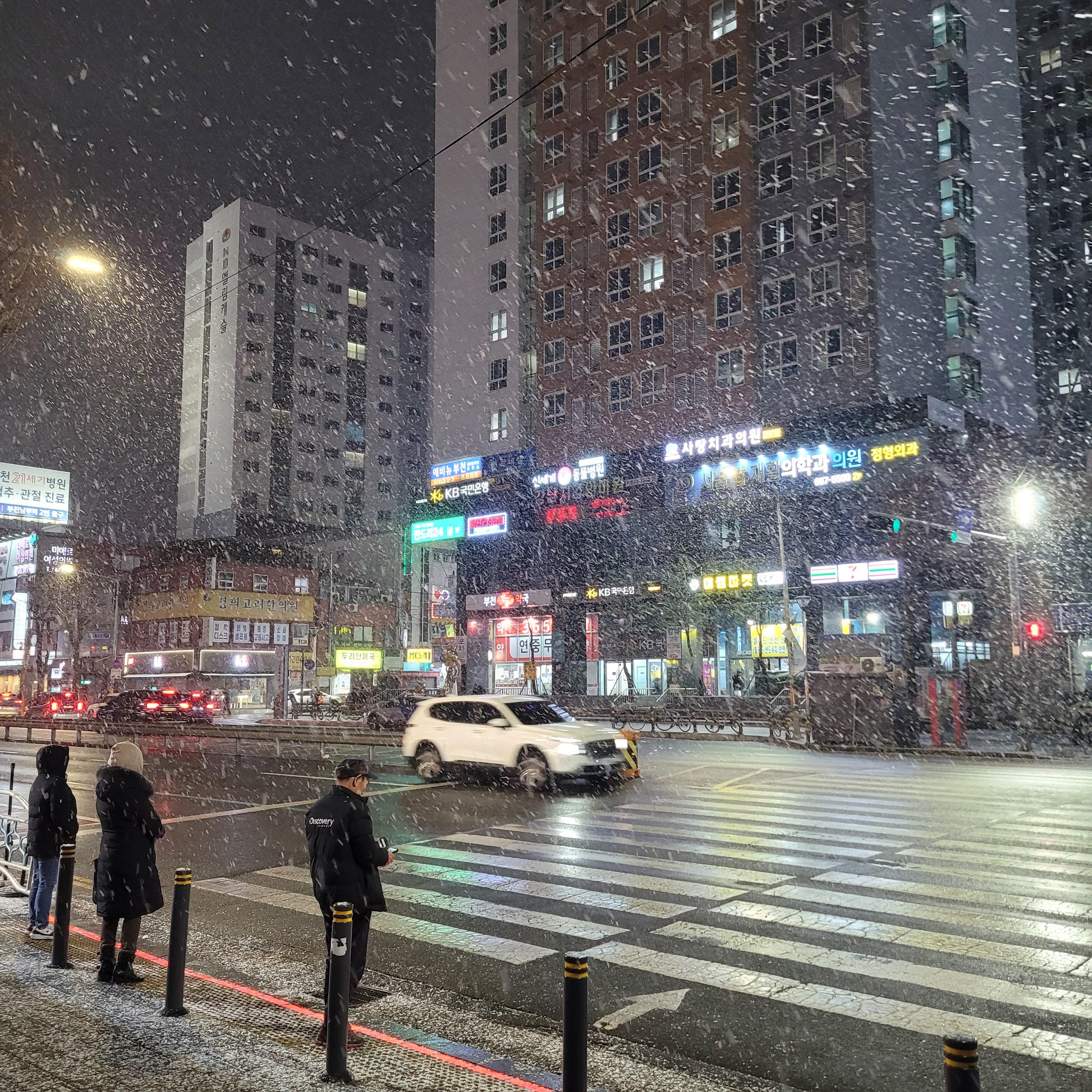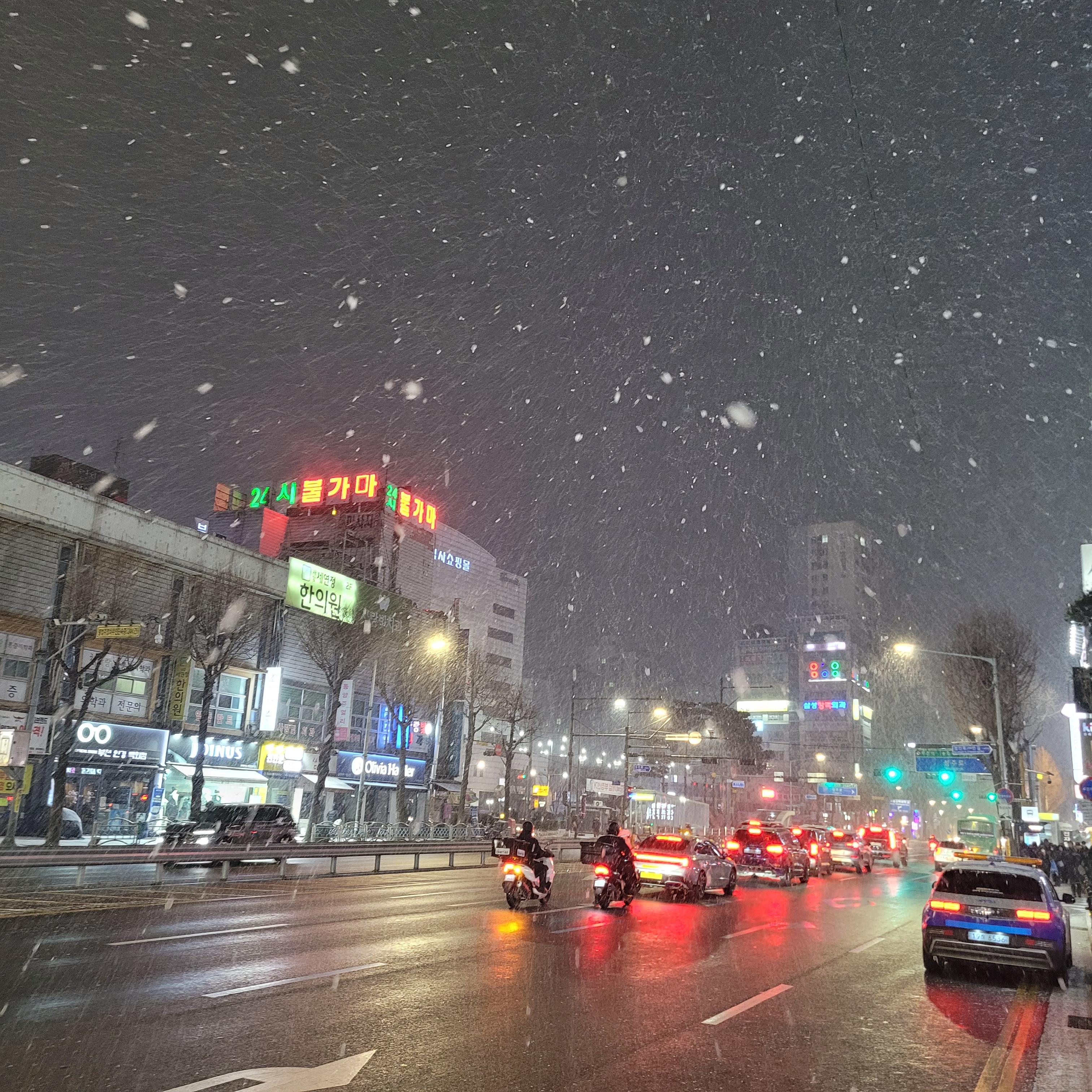 오늘 일 끝나고 난 뒤에 밖을 보니 눈이 아주 펑펑 쏟아지고 난리도 아니었네요.