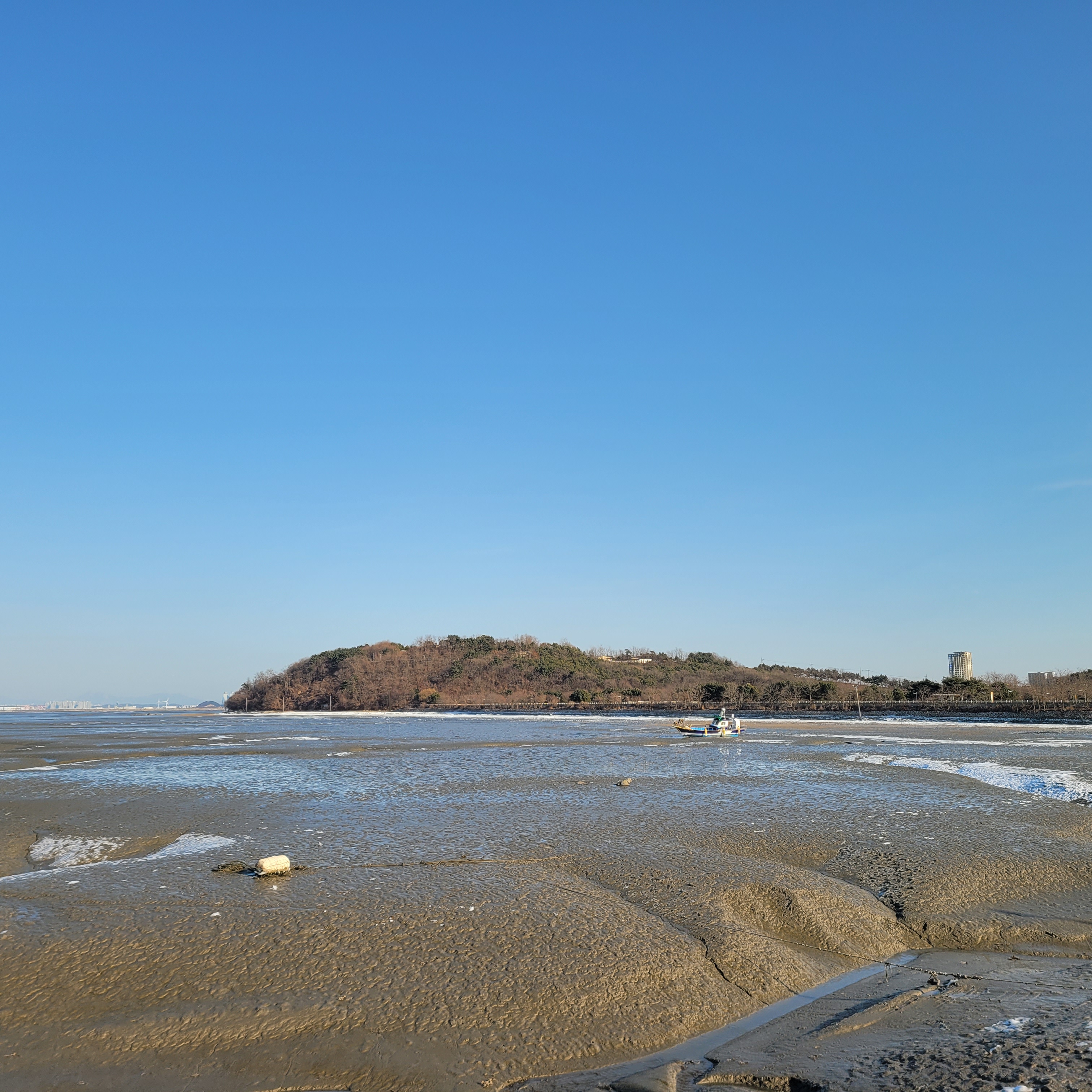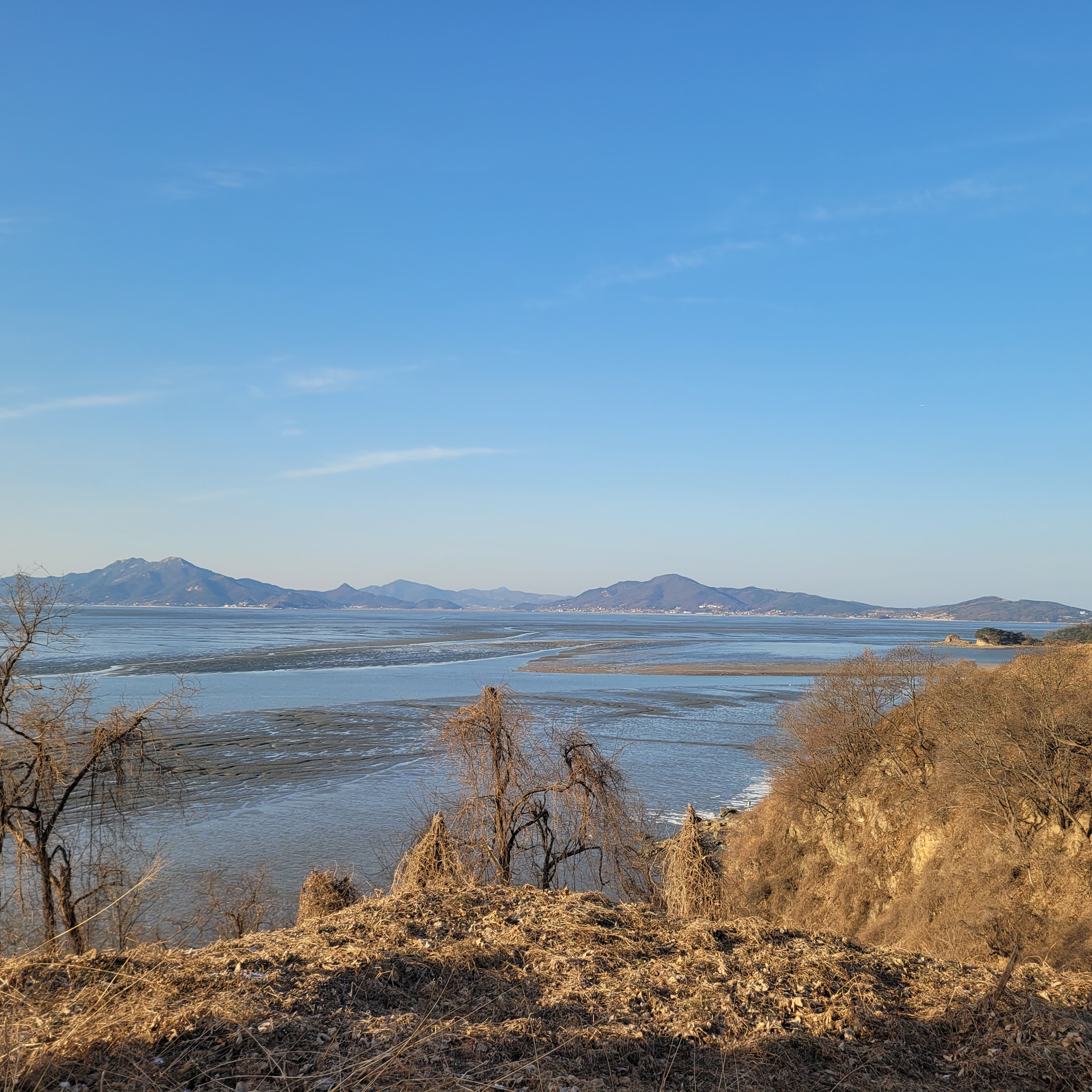 화창해서 강화도를 포함해서 건너편 멀리 있는 섬들과 마을까지