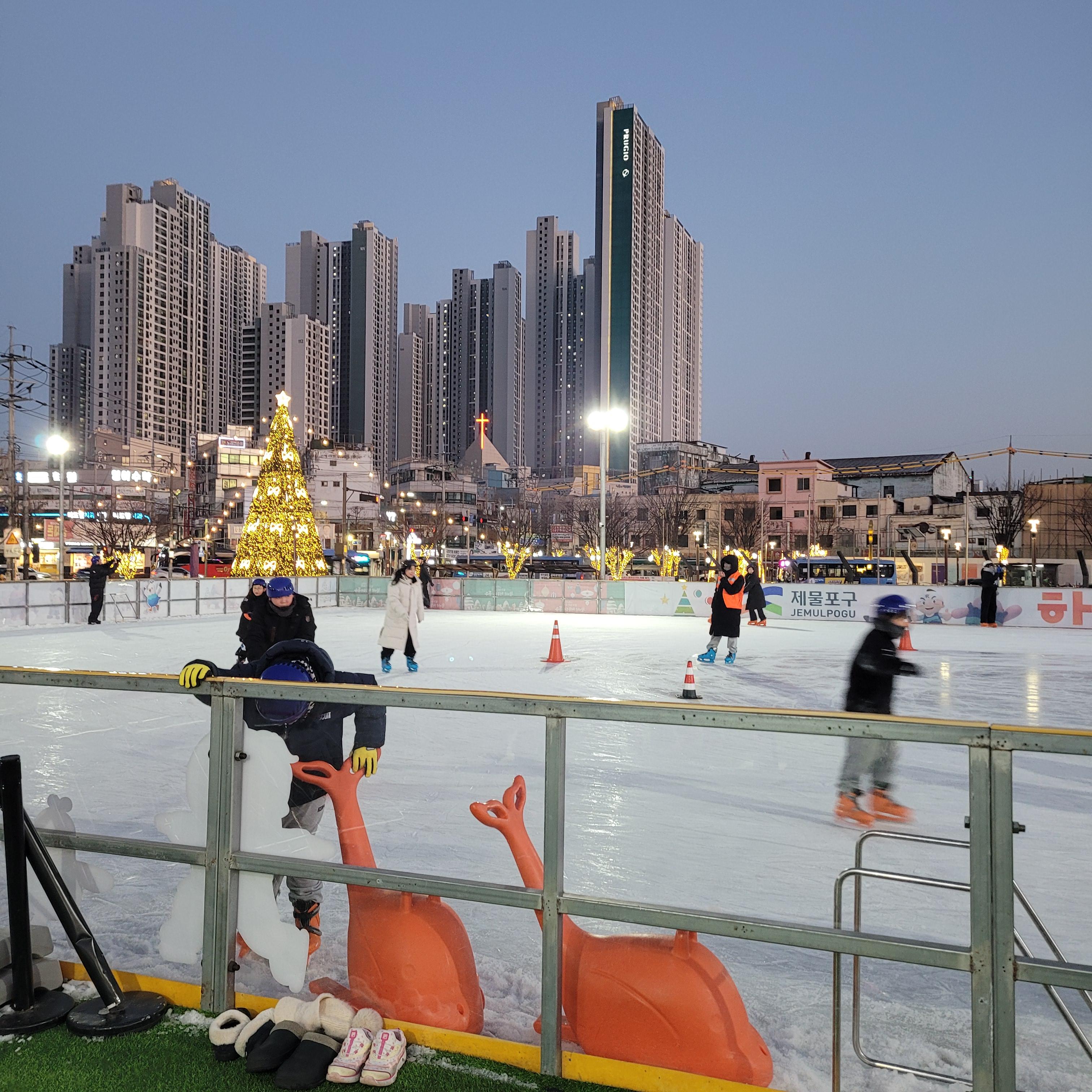 올해 겨울철에도 동인천역 북광장에 인천 동구 화도진 스케이트장과 썰매장이 개장을 해서