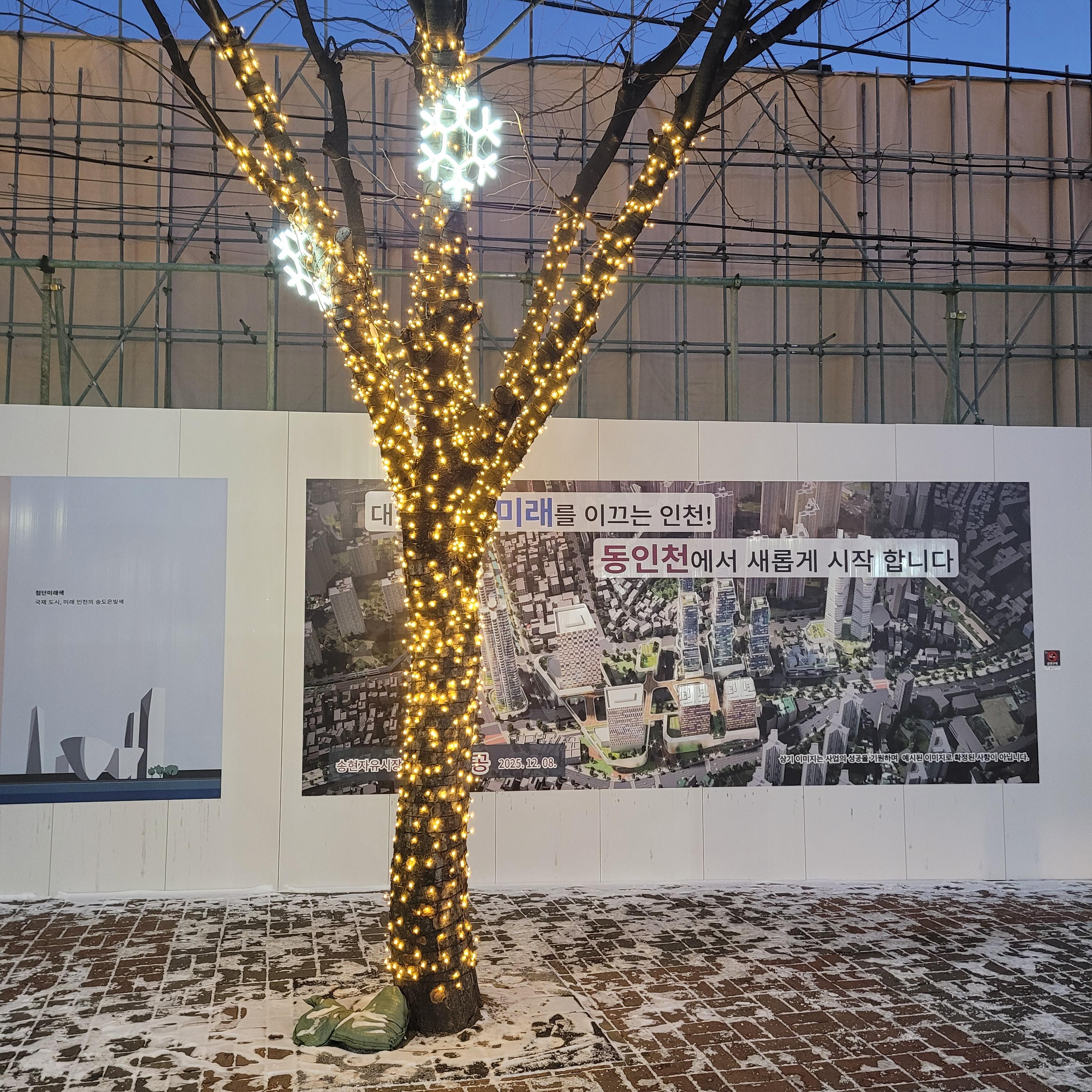 인천 동구 화도진 스케이트장과 주변에 조성된 크리스마스 불빛풍경 사진들입니다.