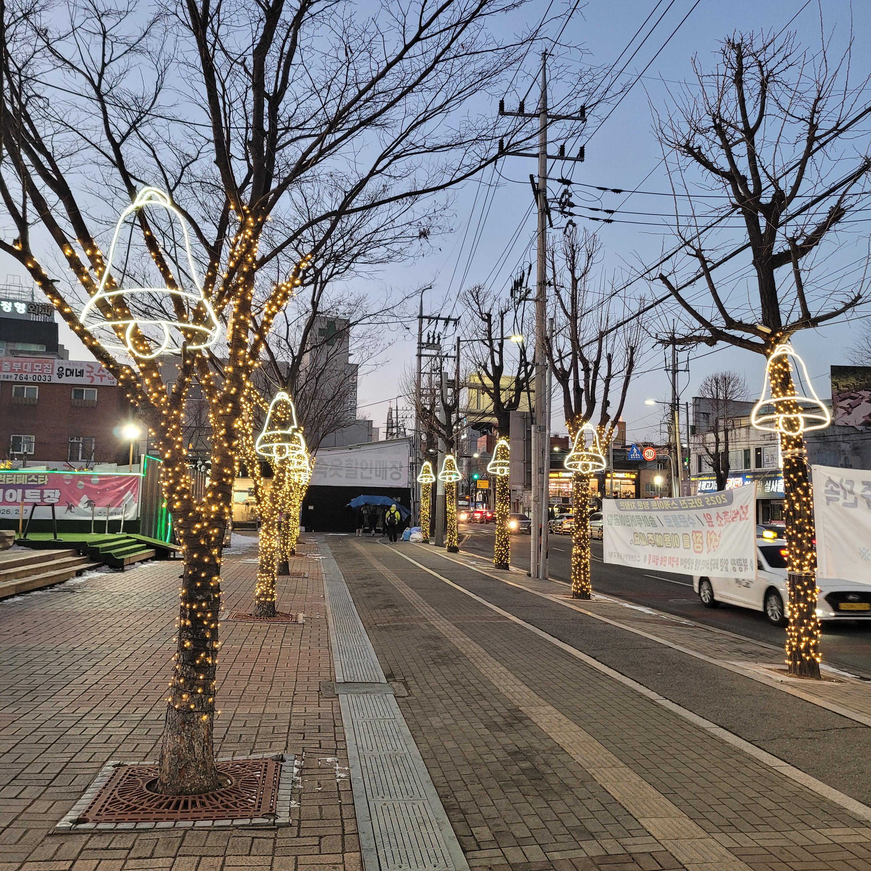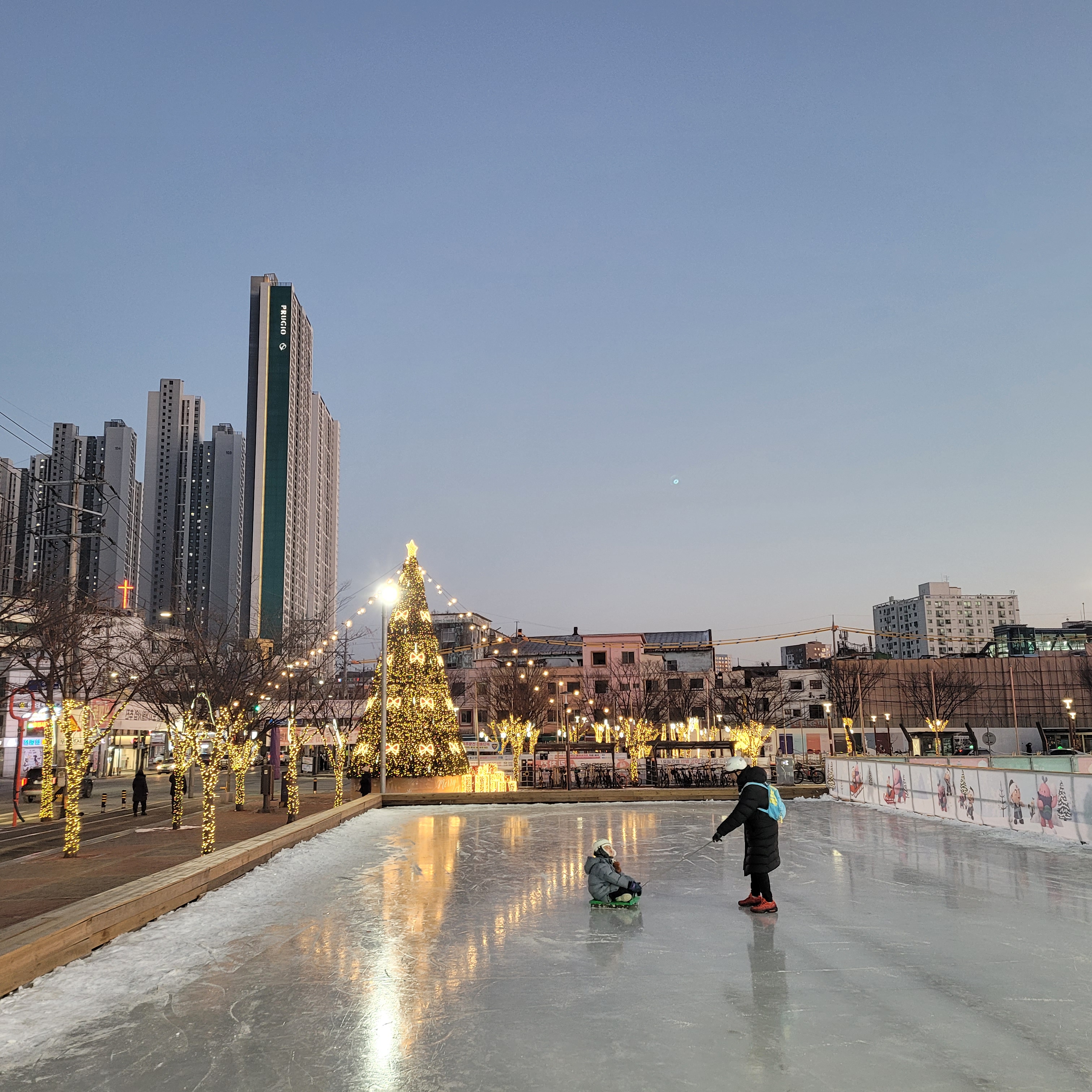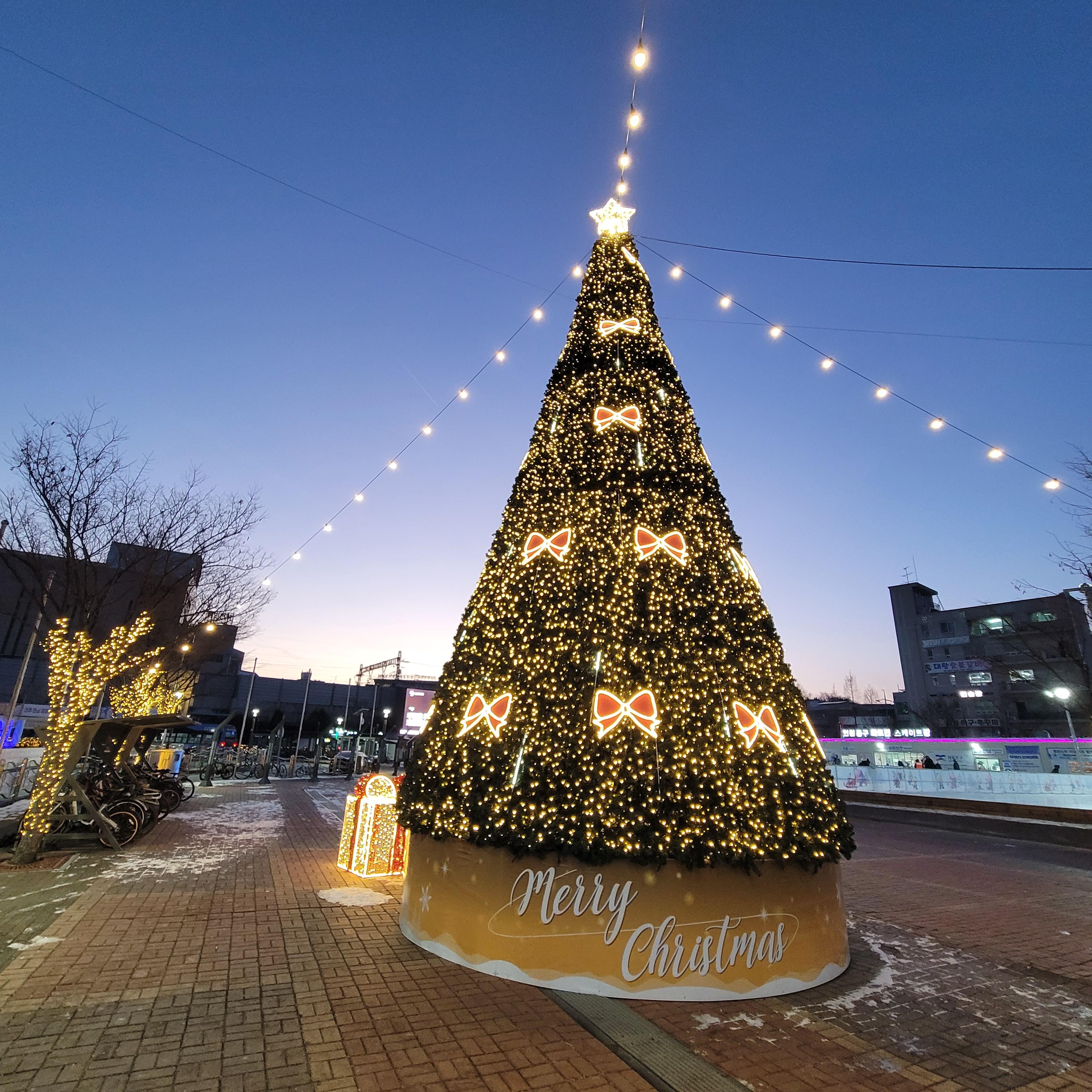 스케이트장 맞은편에는 크리스마스 트리와 불빛 장식 풍경들이 아름답게 자리잡고 있었고요.