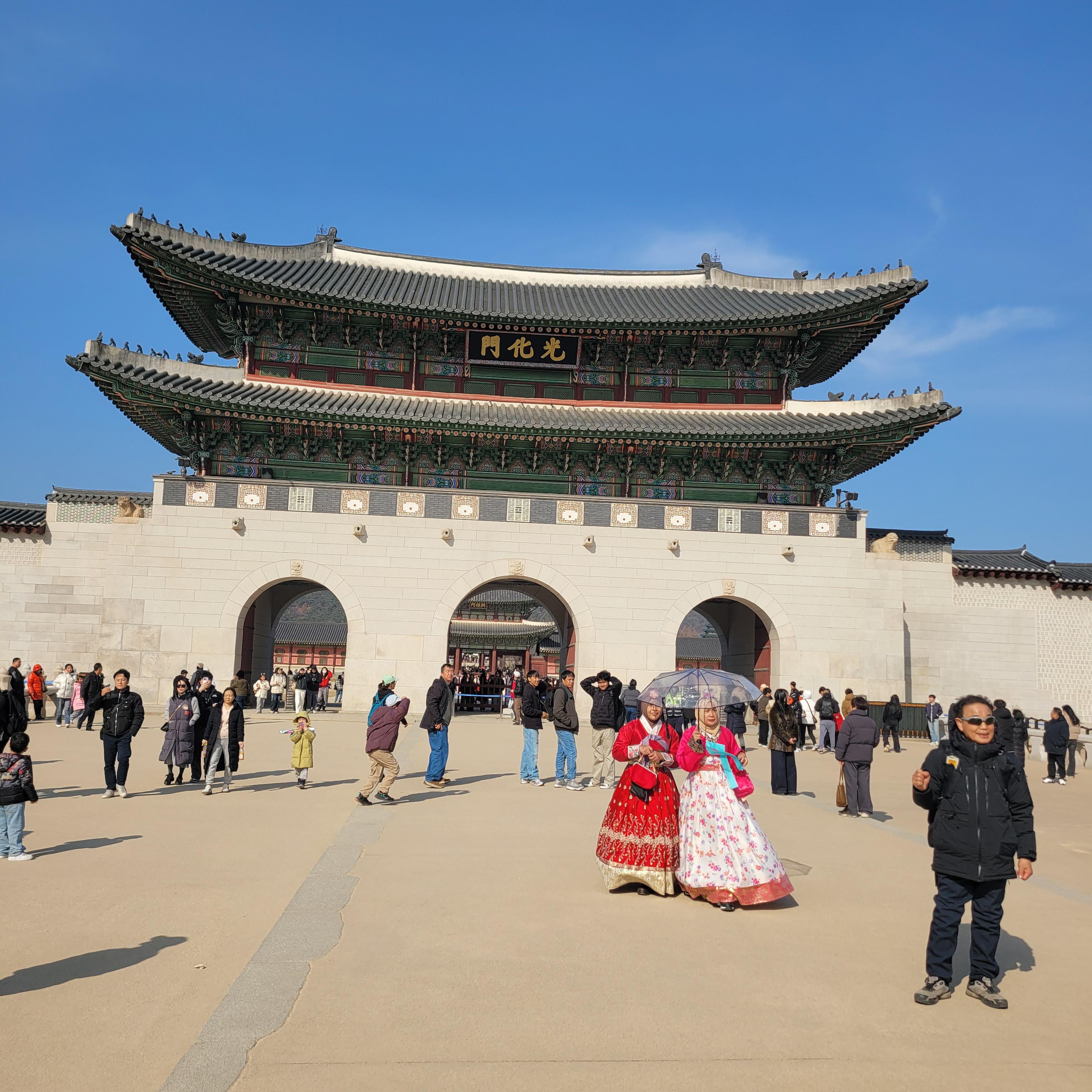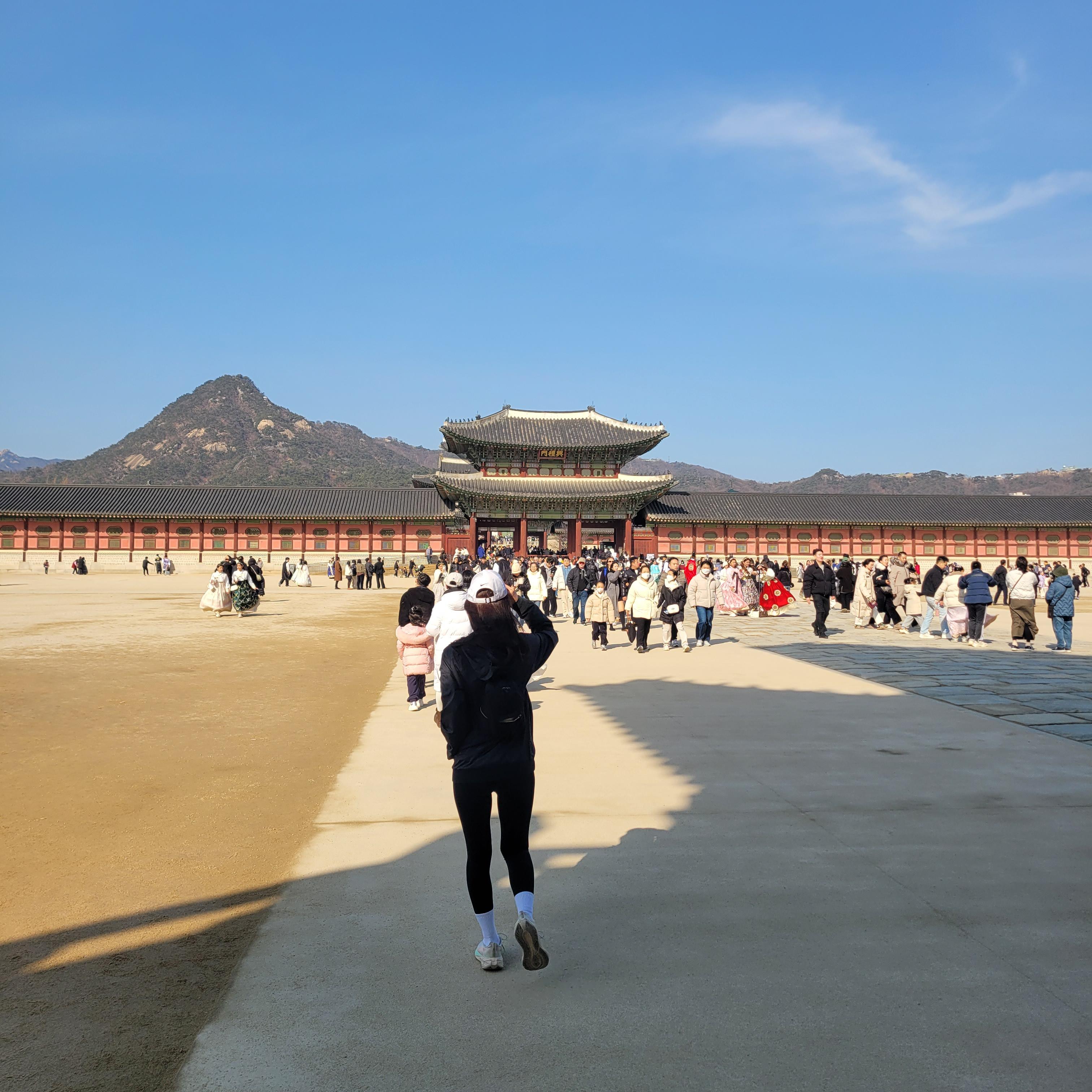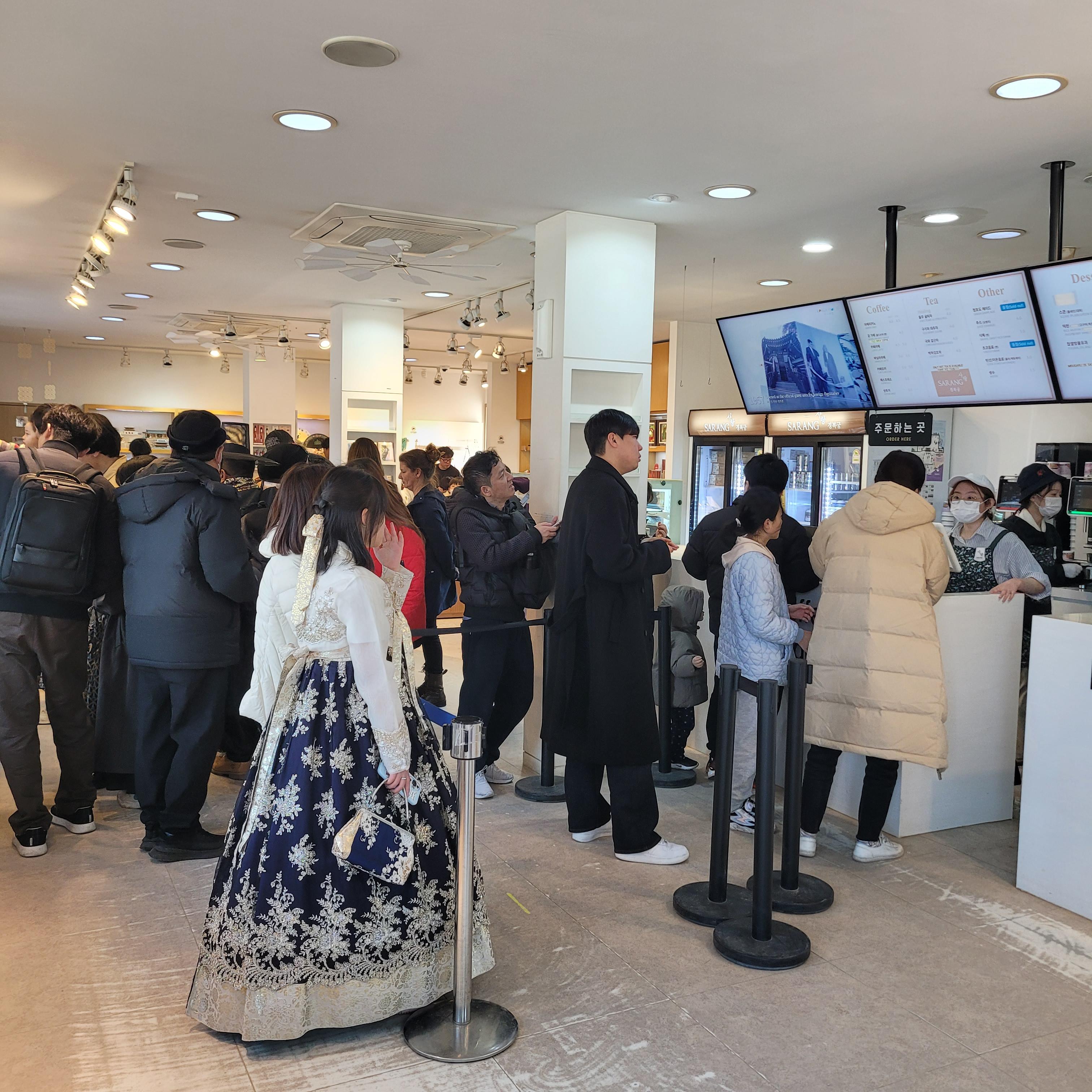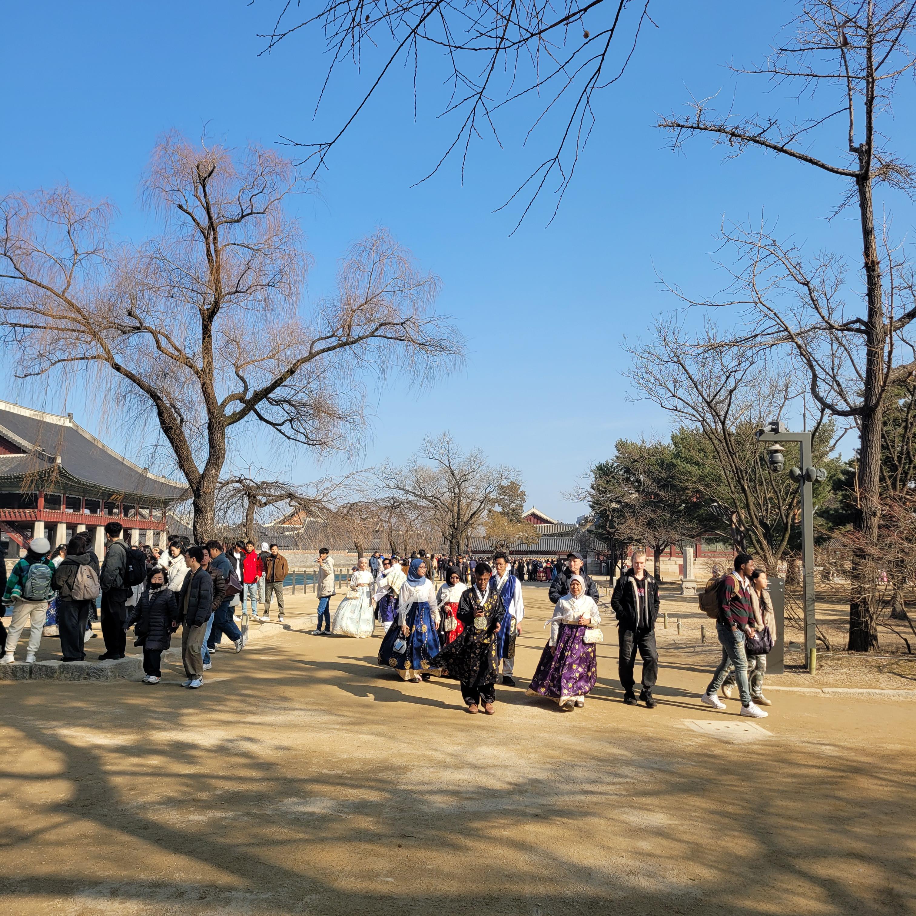 인산인해 그 자체였네요. 특히 한복을 입은 사람들과 외국인 관광객들이