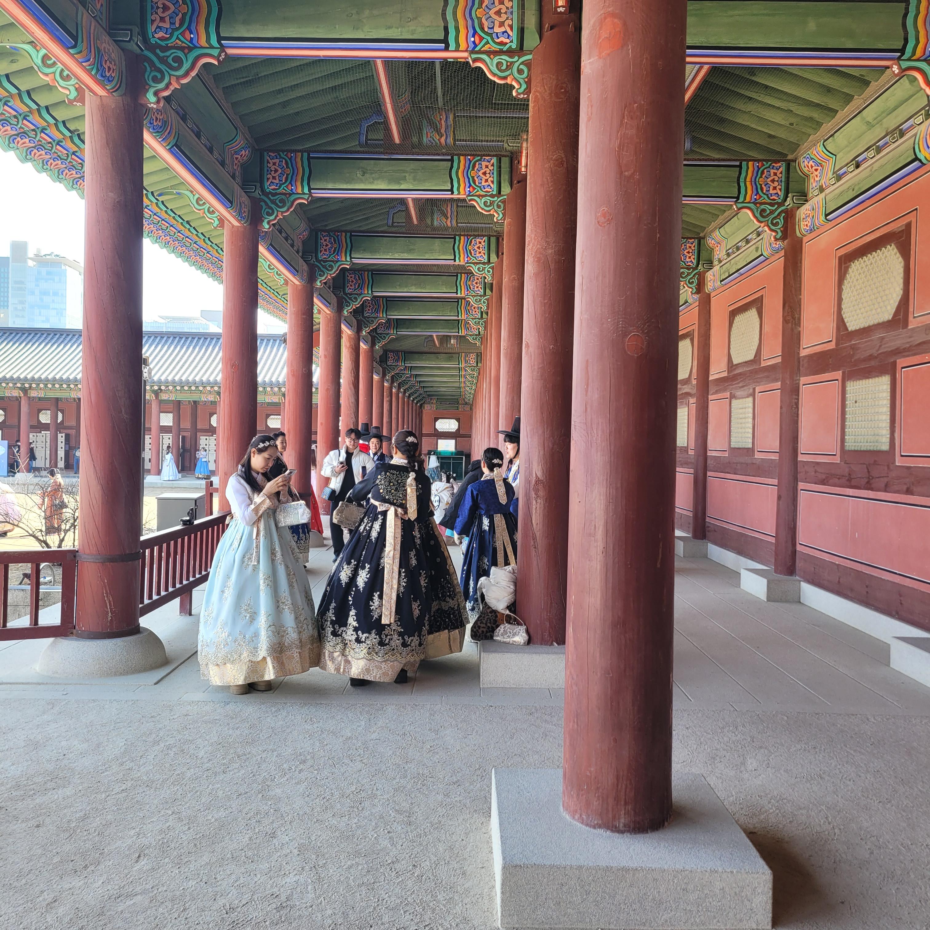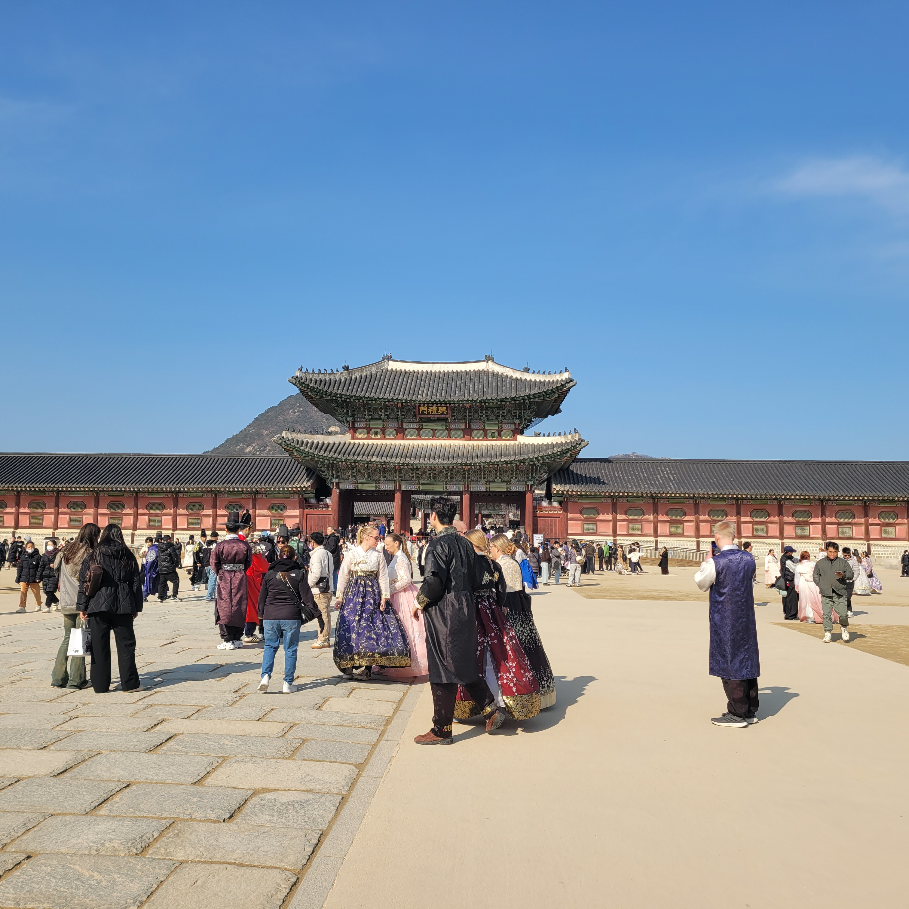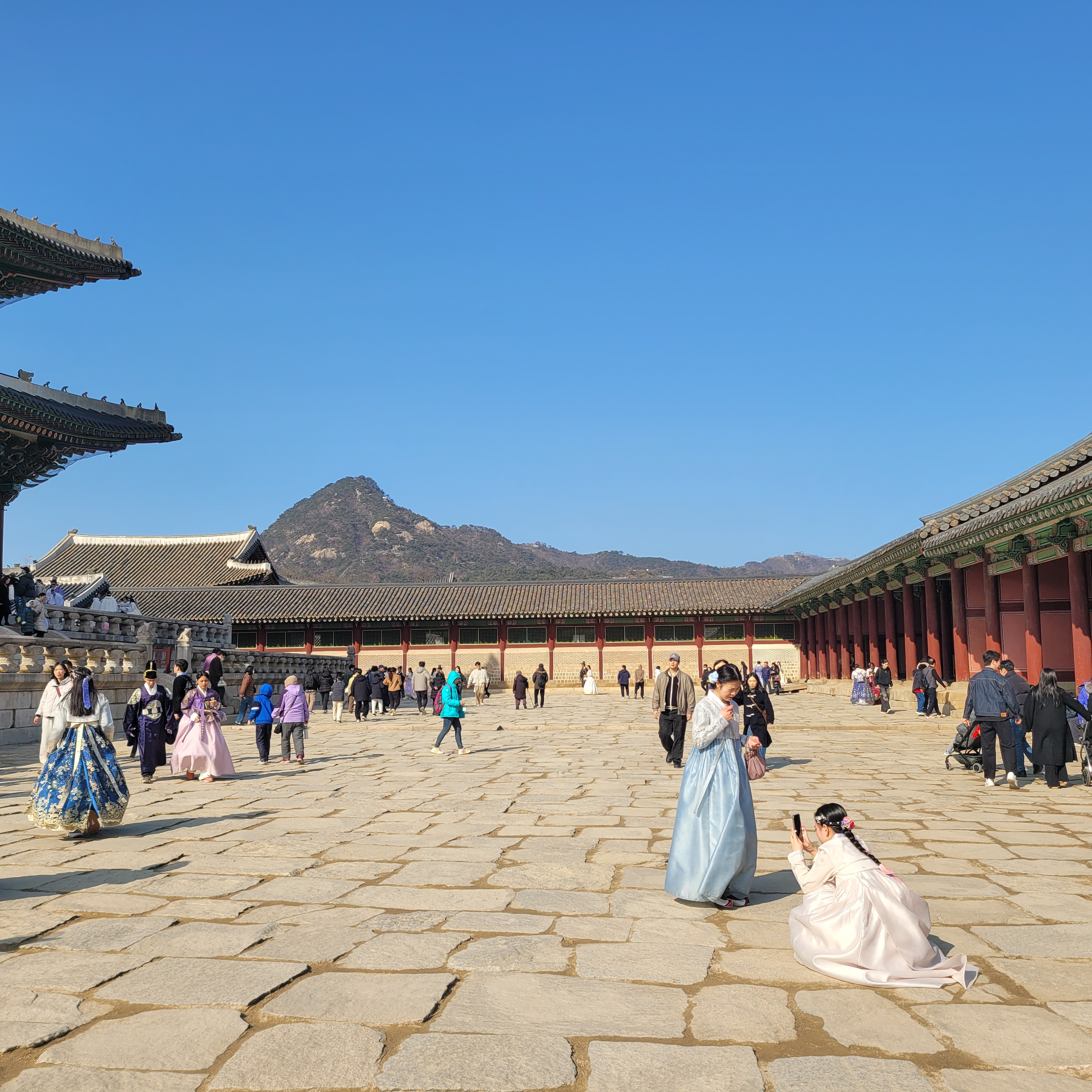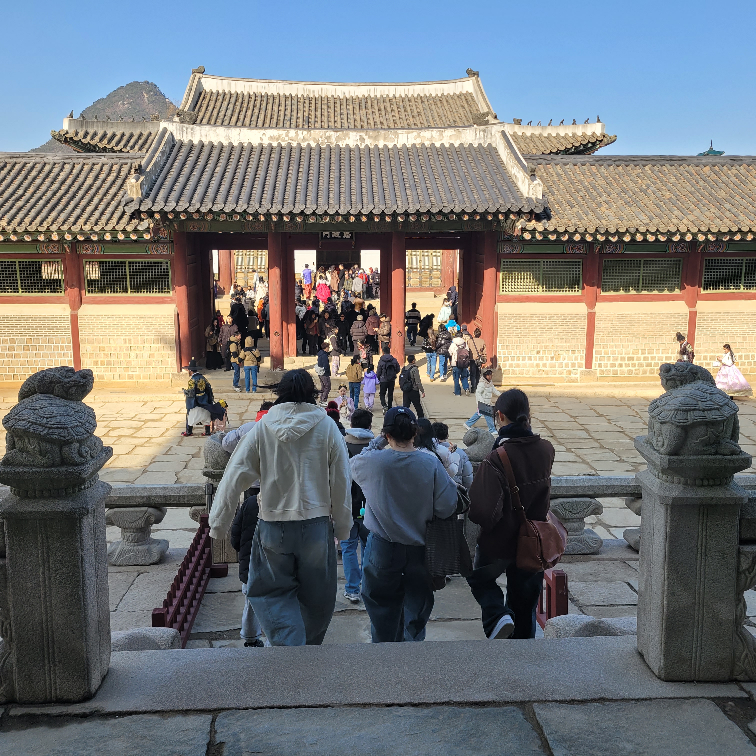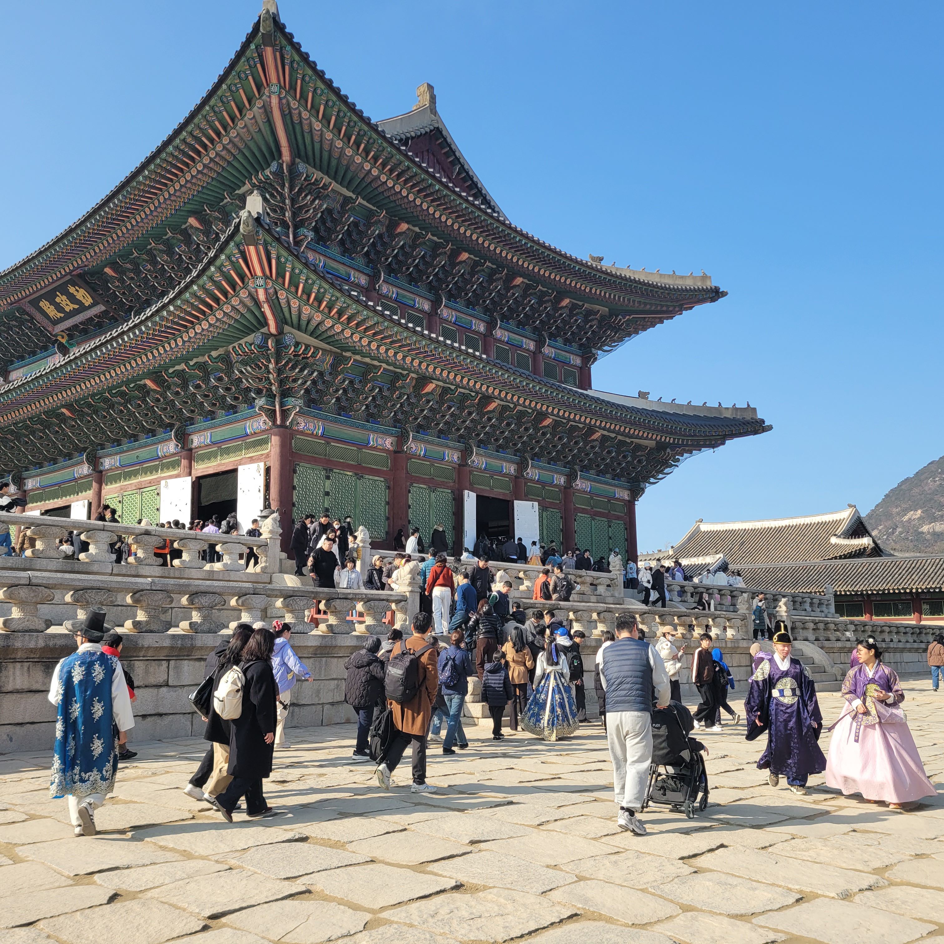 인산인해 그 자체였네요. 특히 한복을 입은 사람들과 외국인 관광객들이