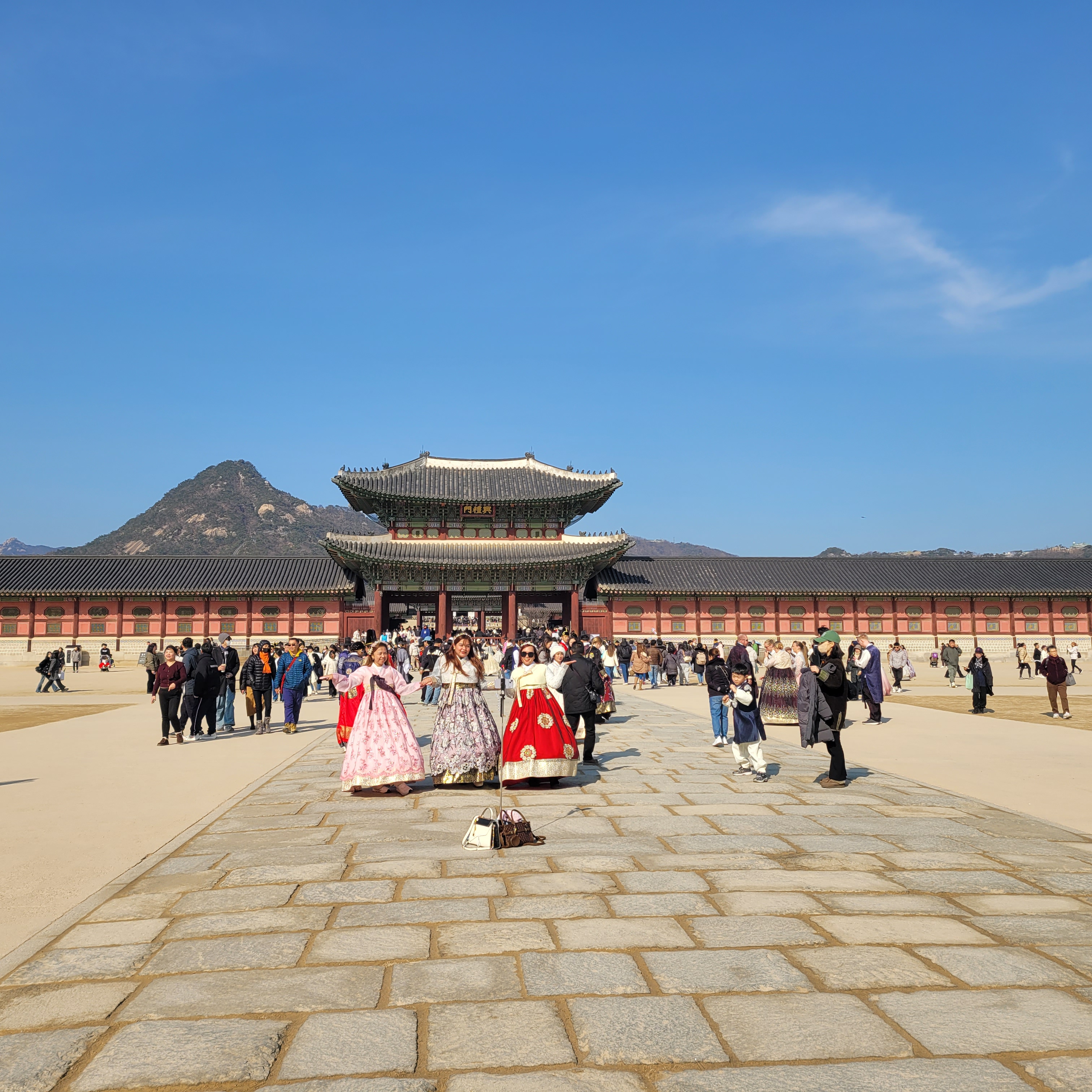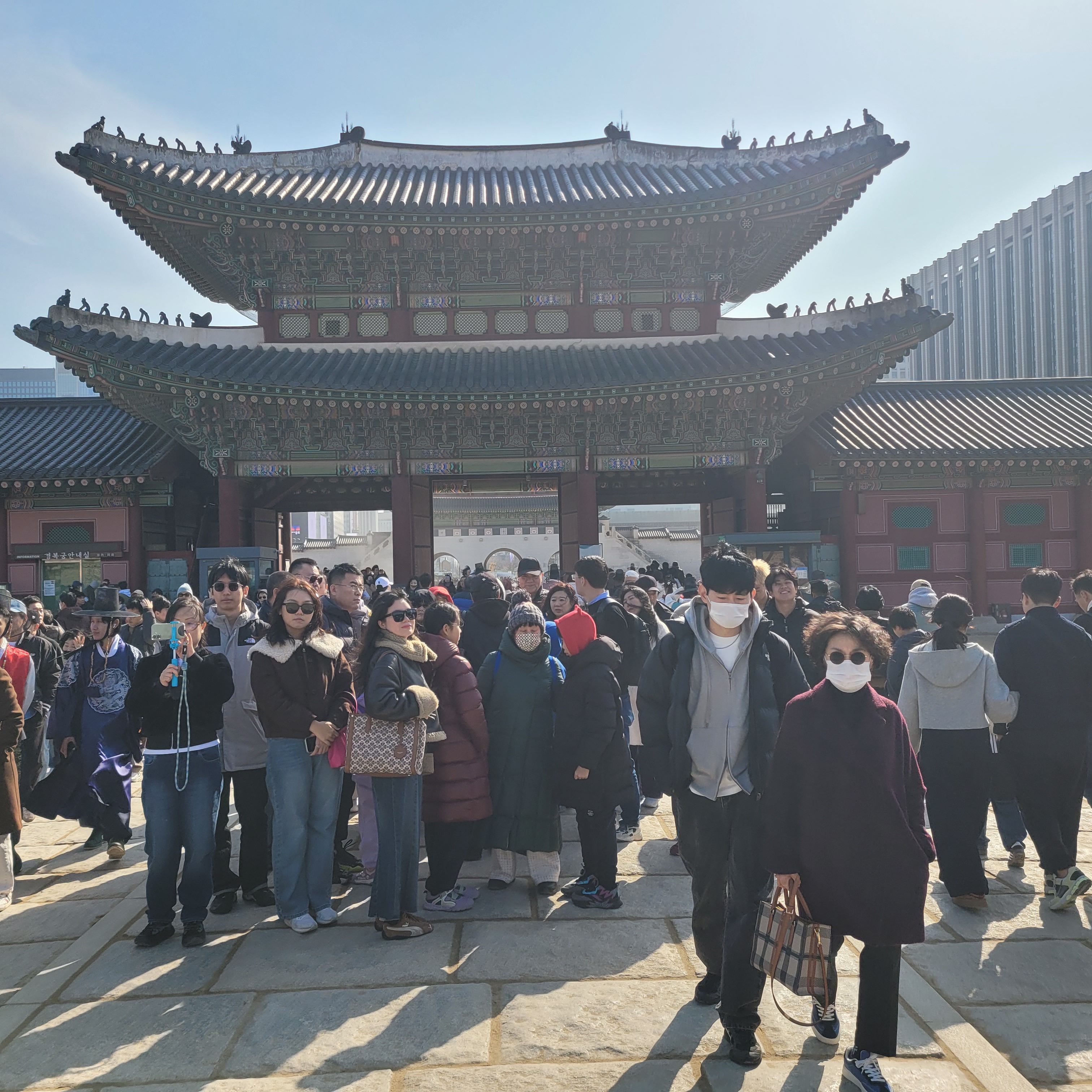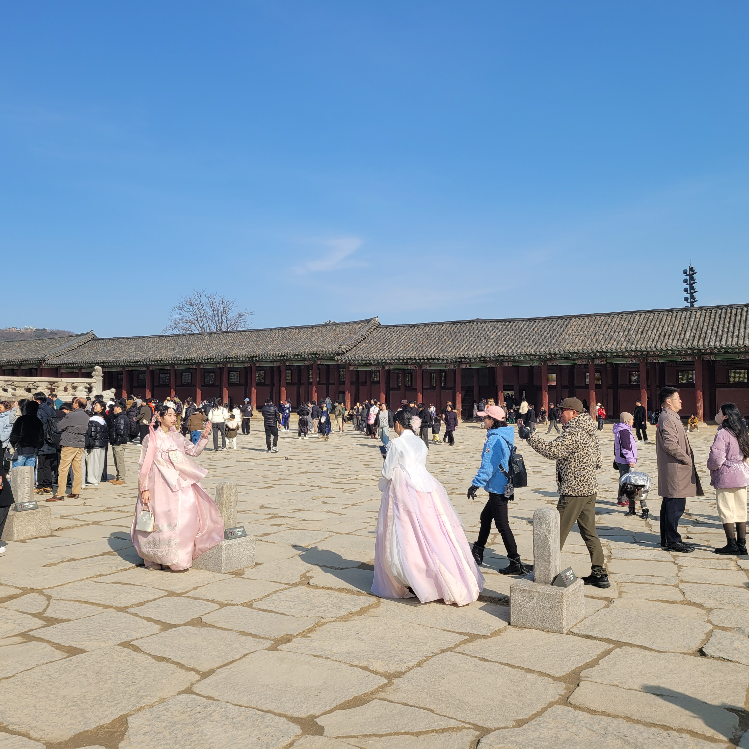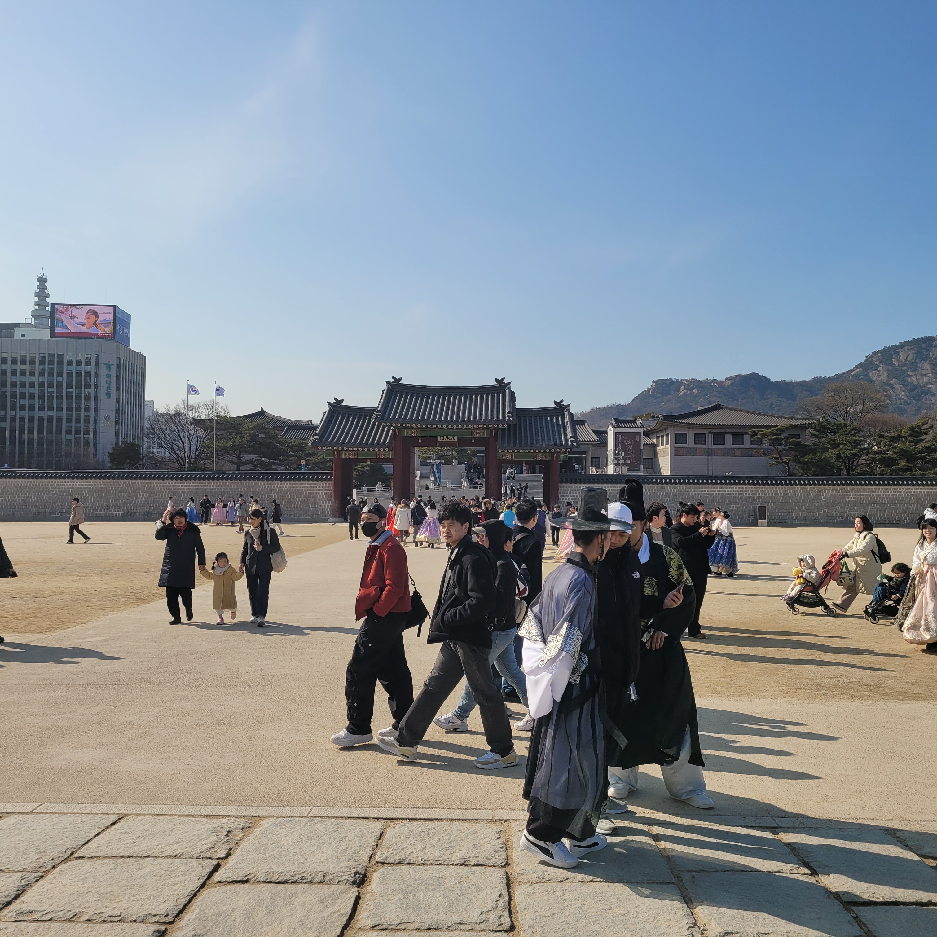 인산인해 그 자체였네요. 특히 한복을 입은 사람들과 외국인 관광객들이