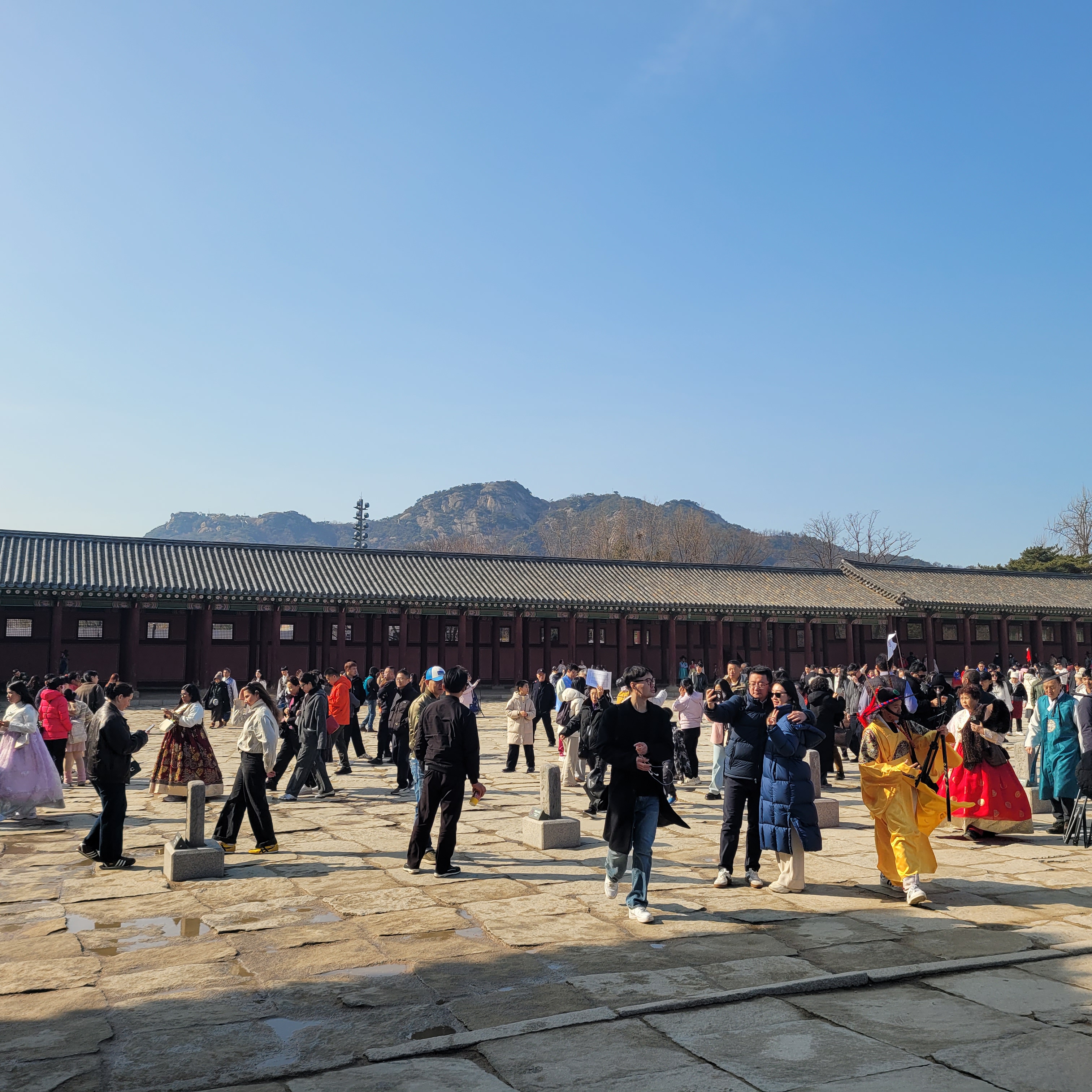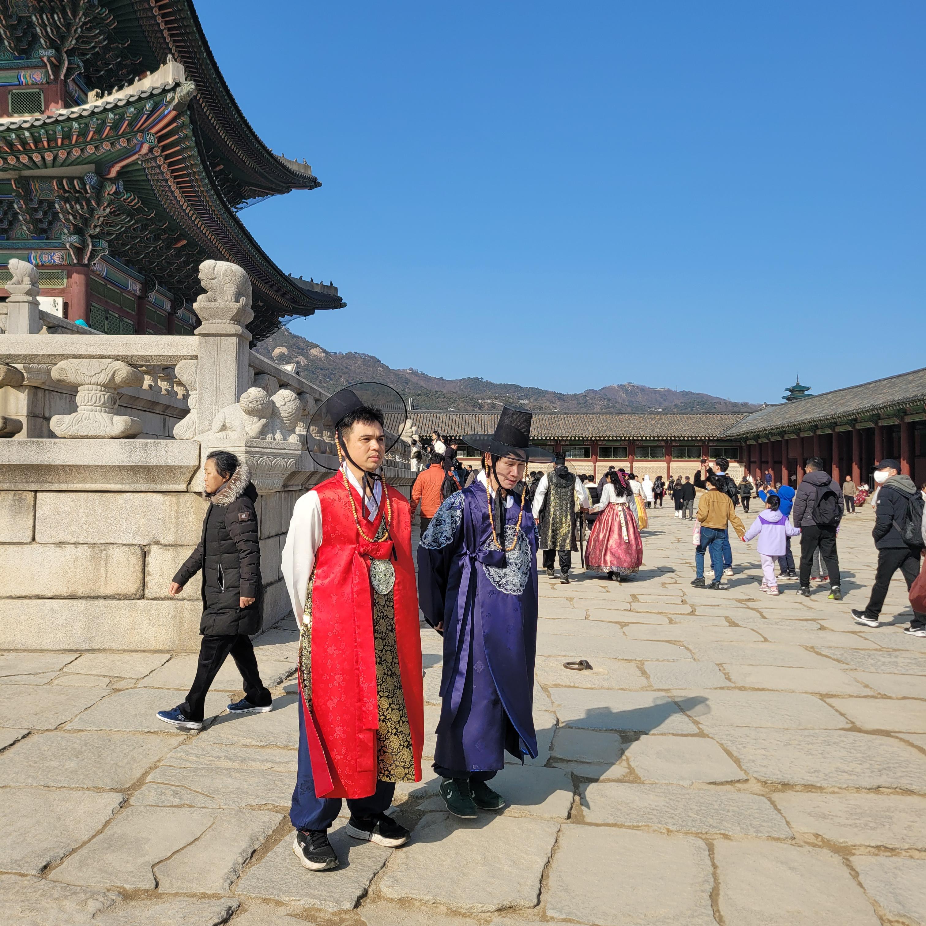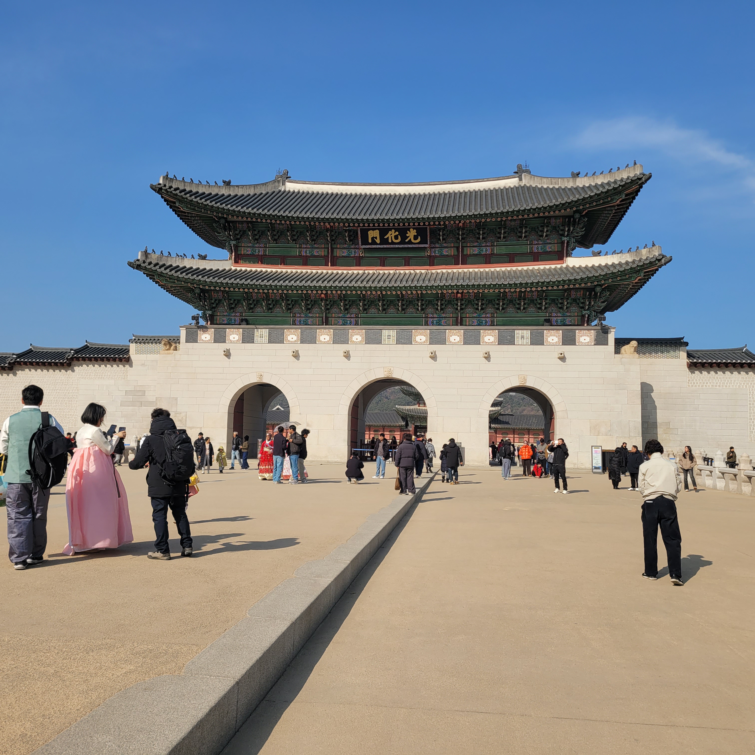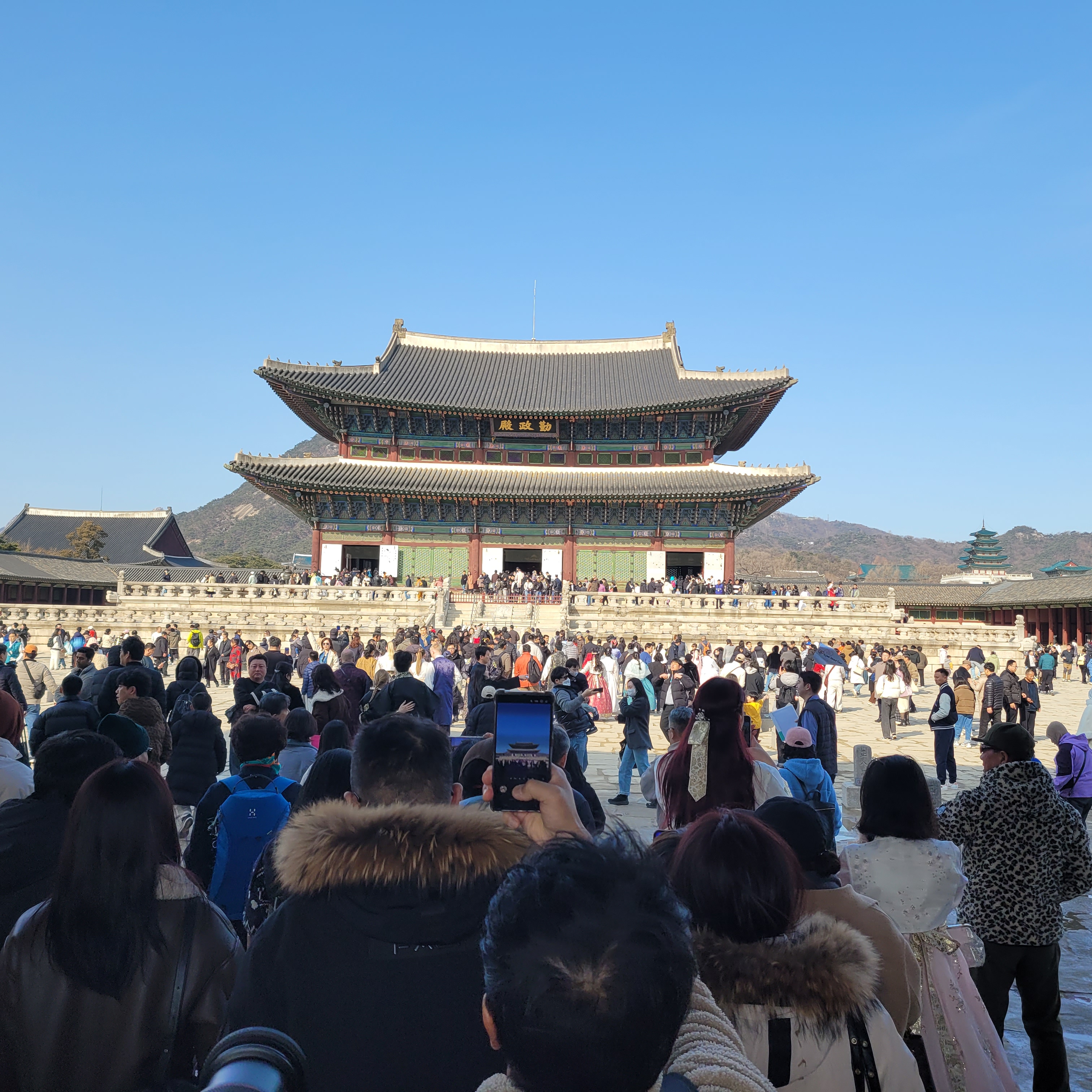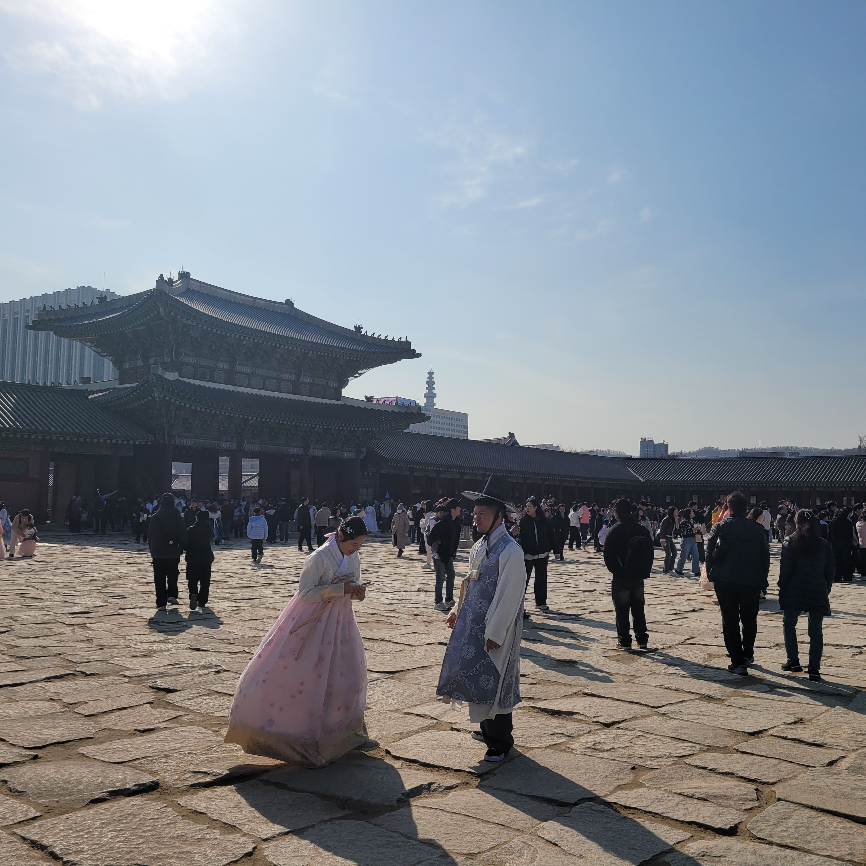 인산인해 그 자체였네요. 특히 한복을 입은 사람들과 외국인 관광객들이