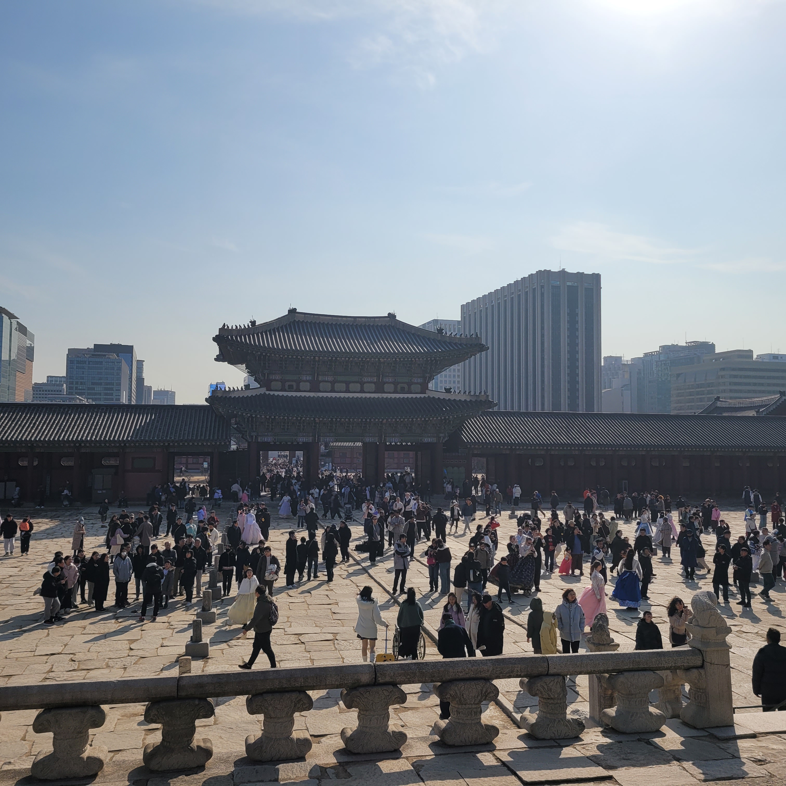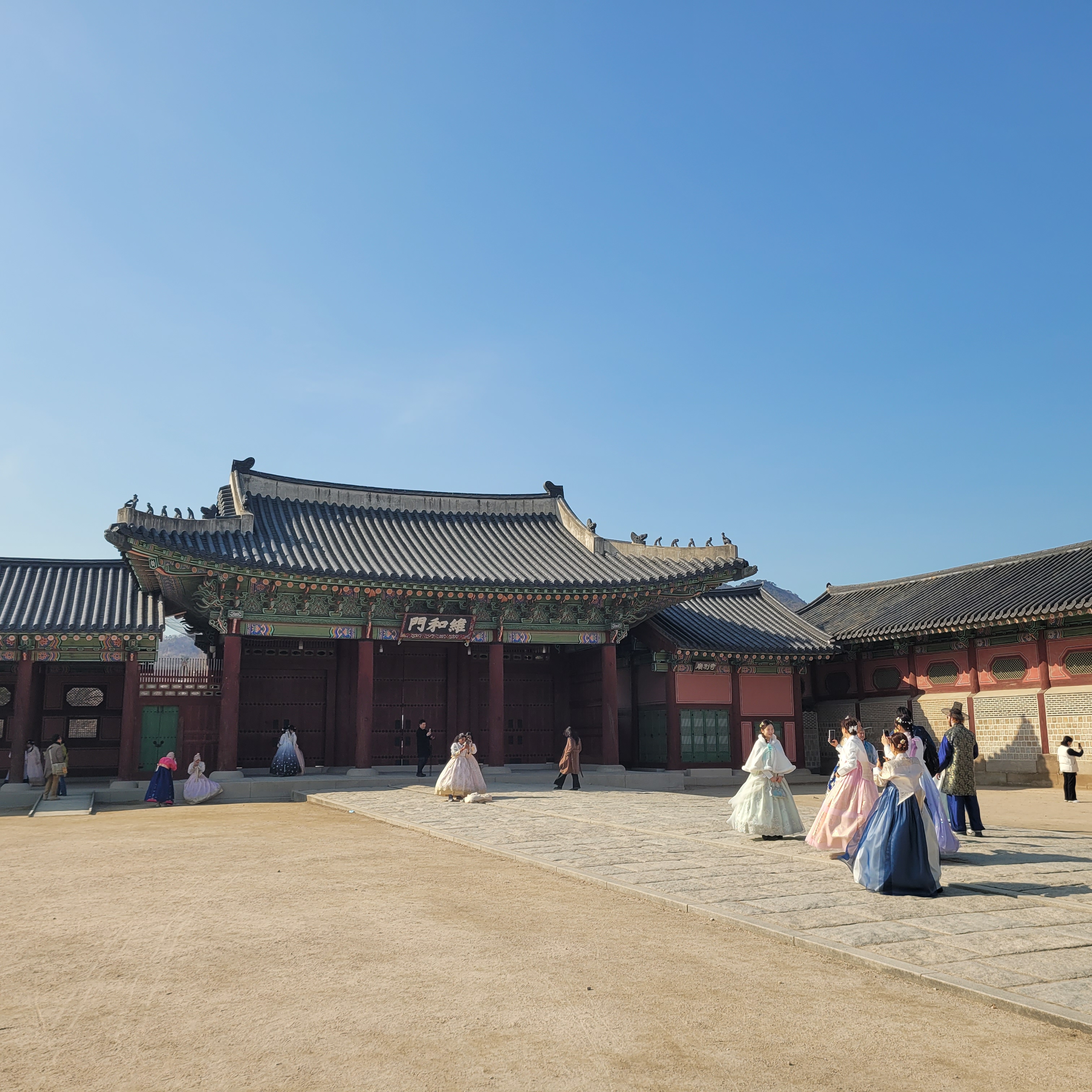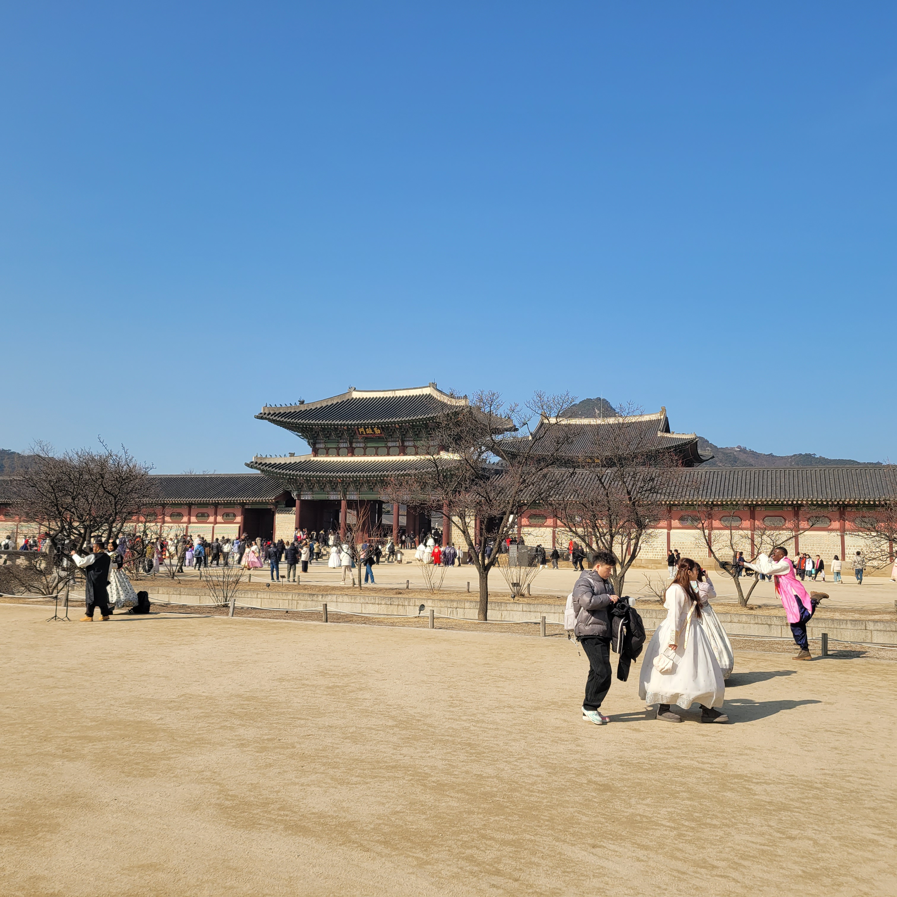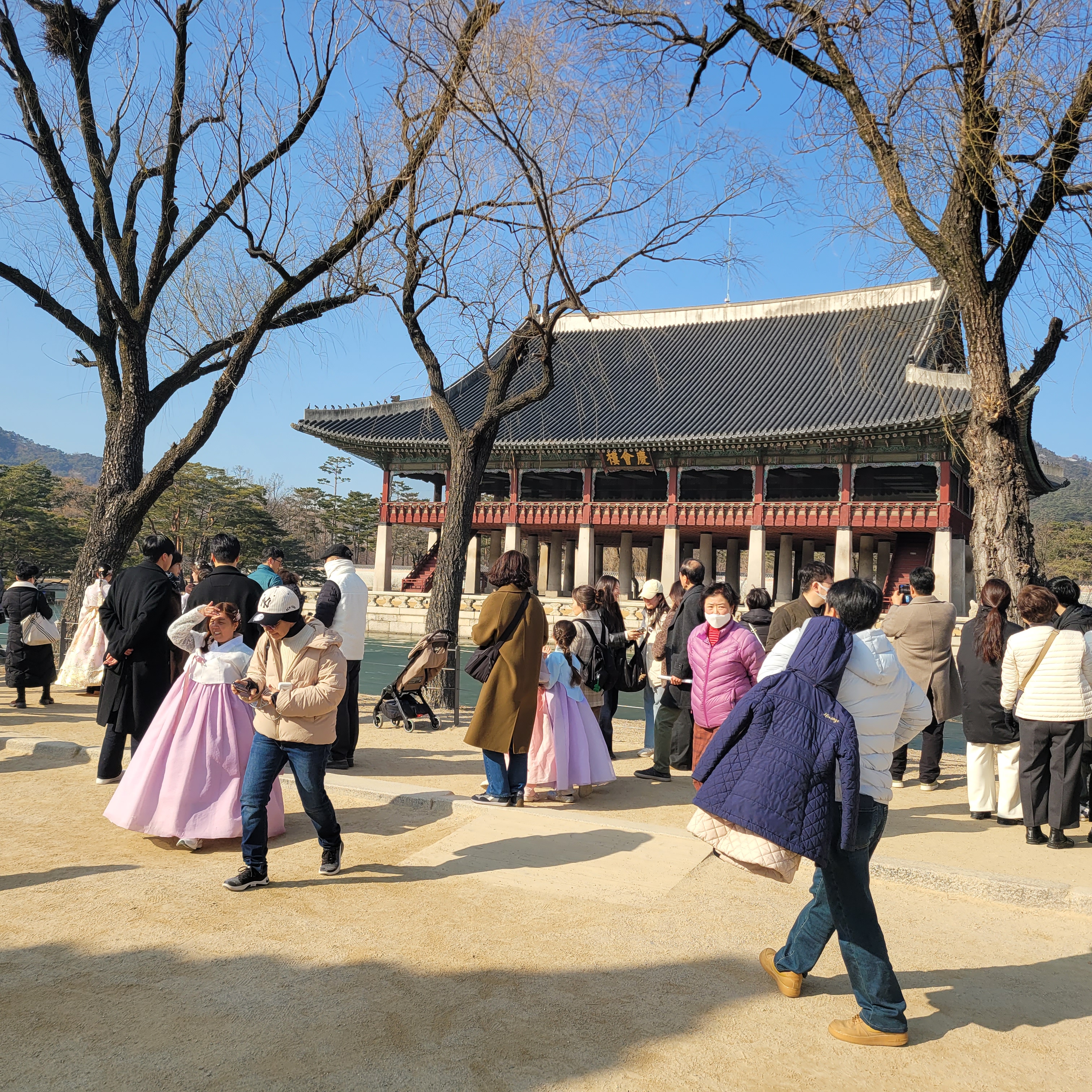 인산인해 그 자체였네요. 특히 한복을 입은 사람들과 외국인 관광객들이