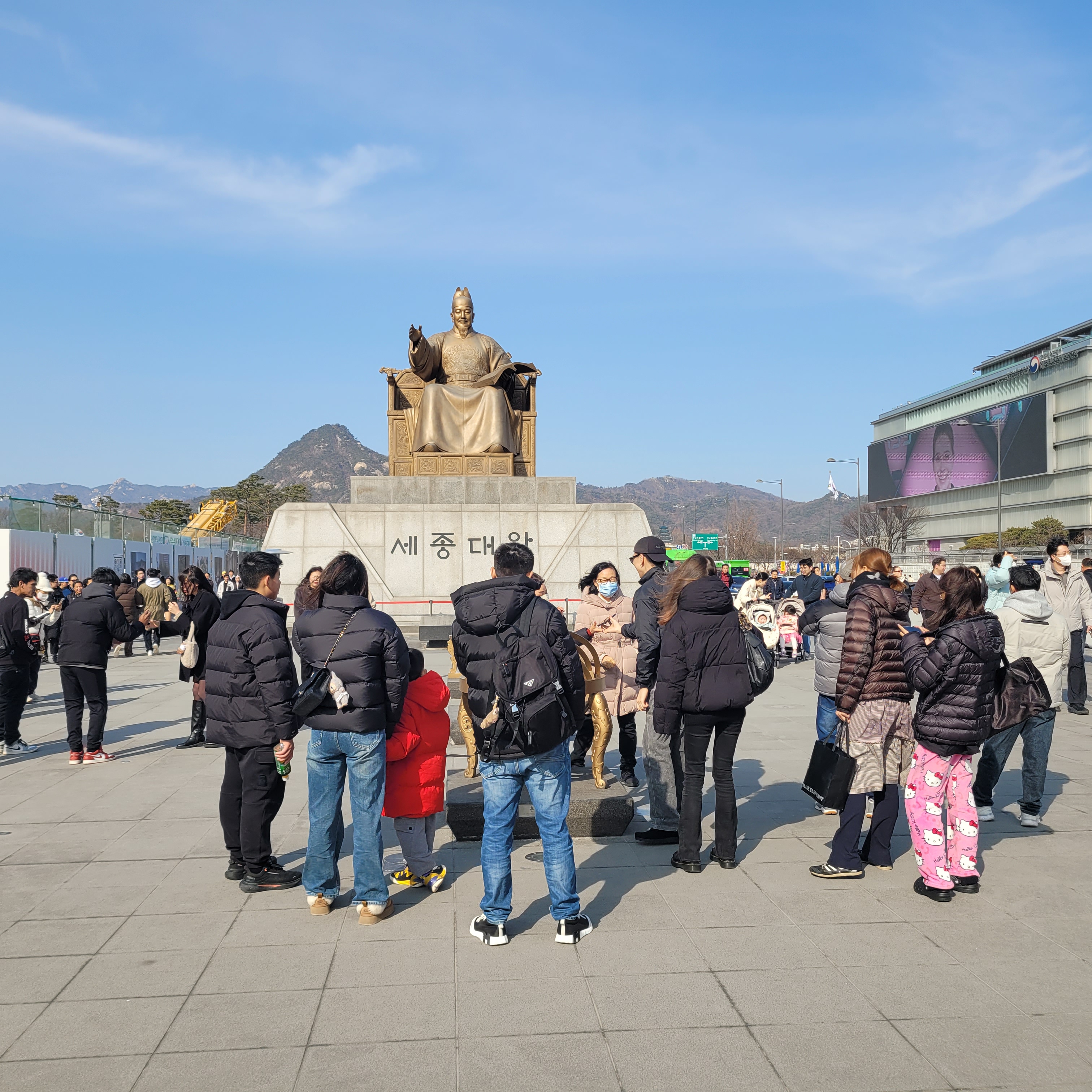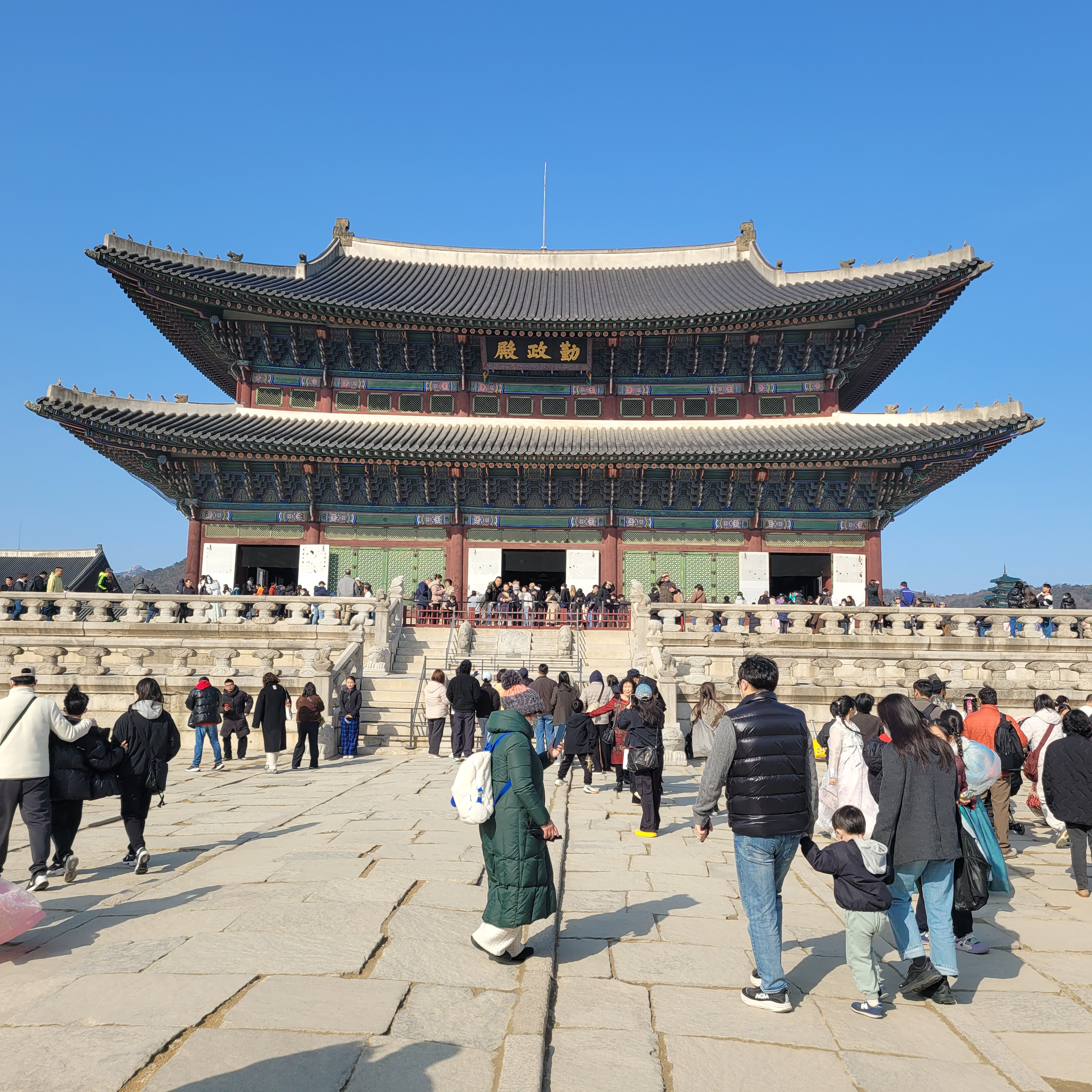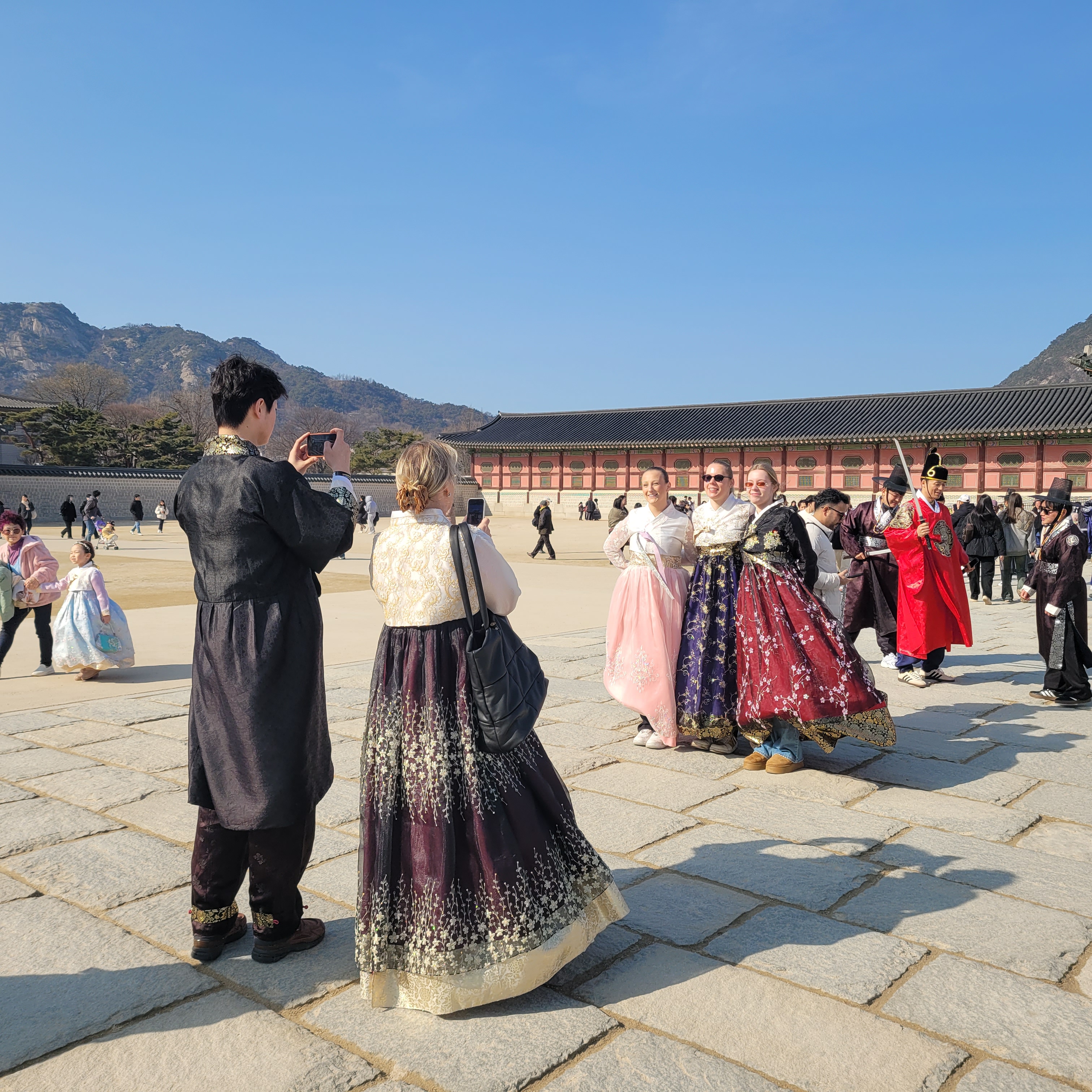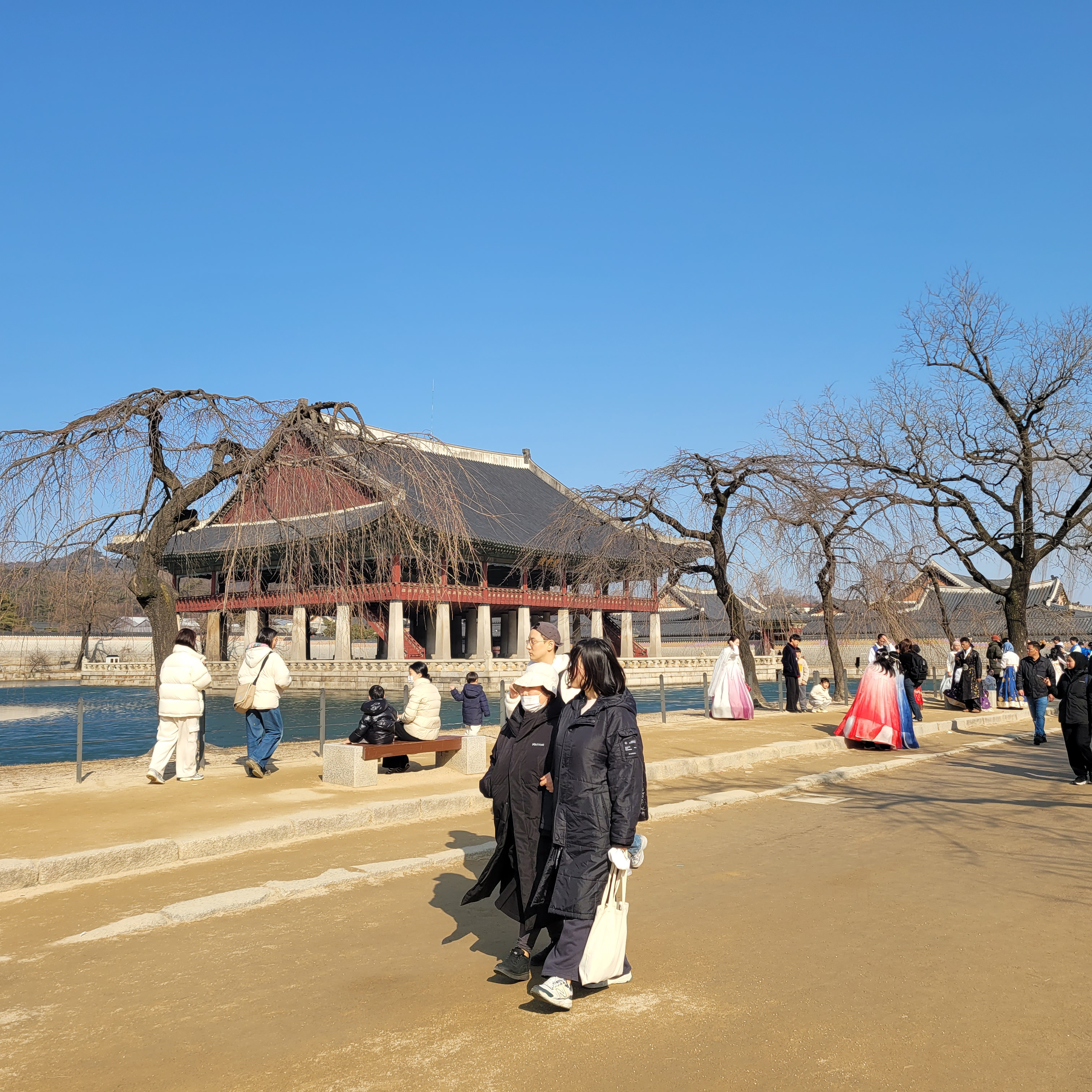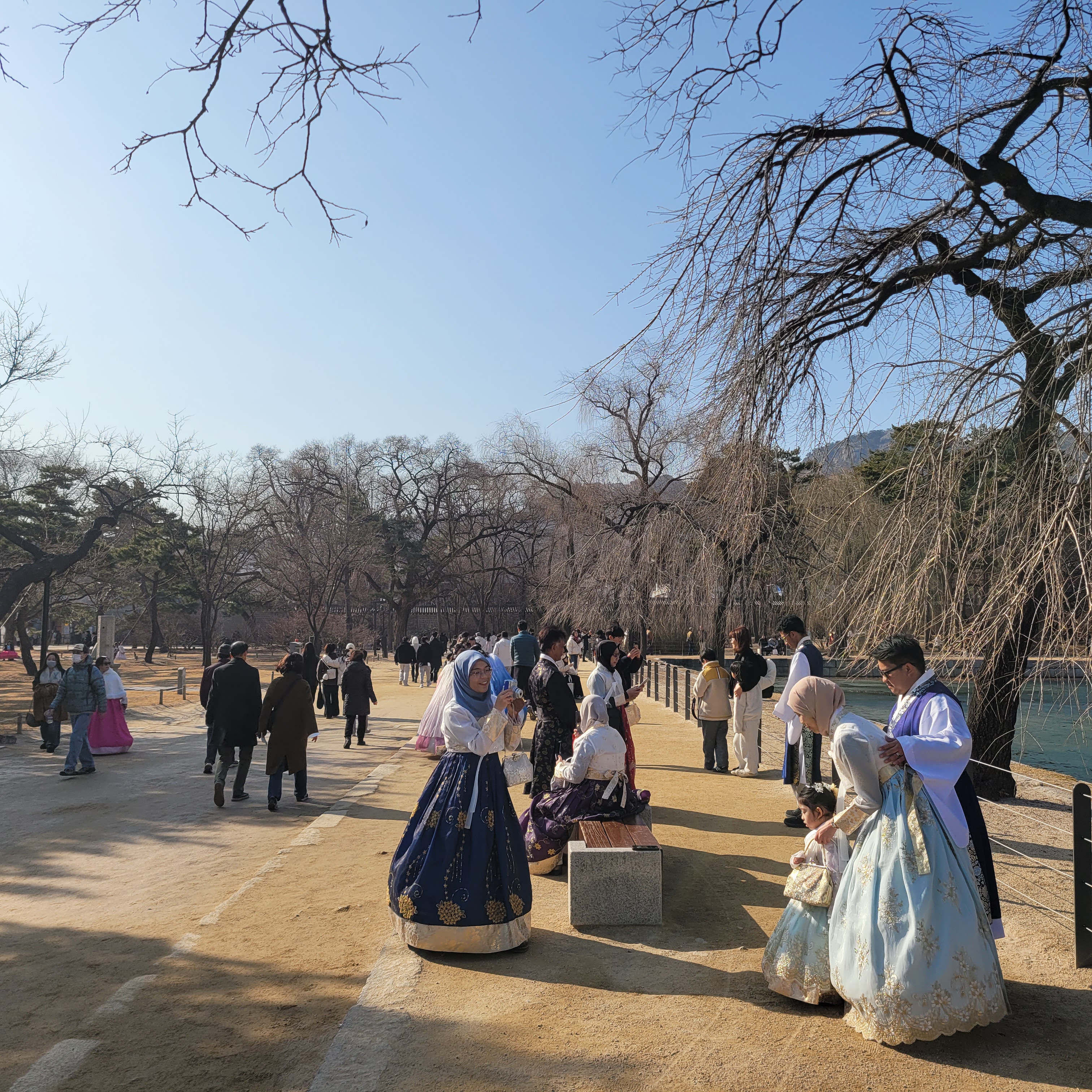인산인해 그 자체였네요. 특히 한복을 입은 사람들과 외국인 관광객들이