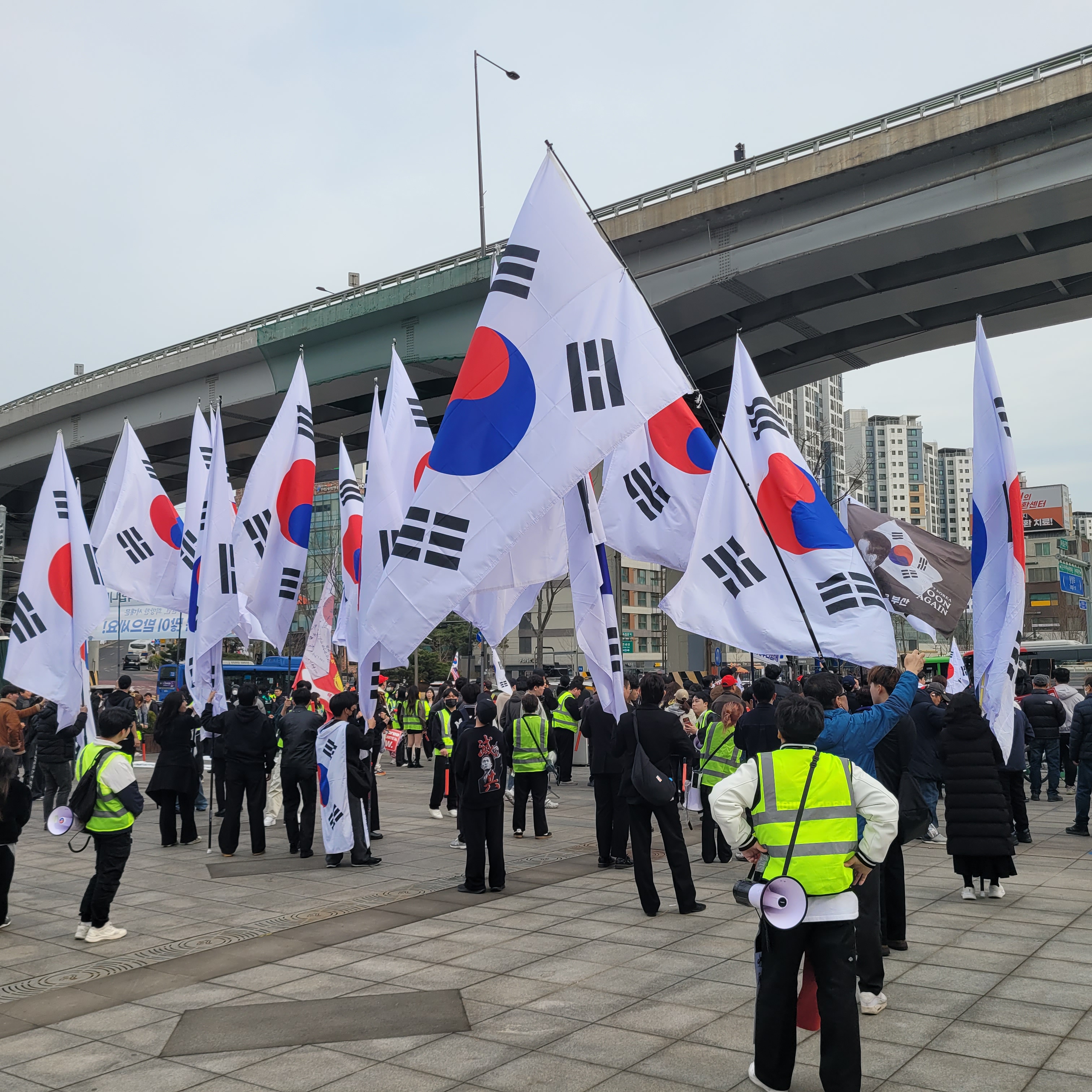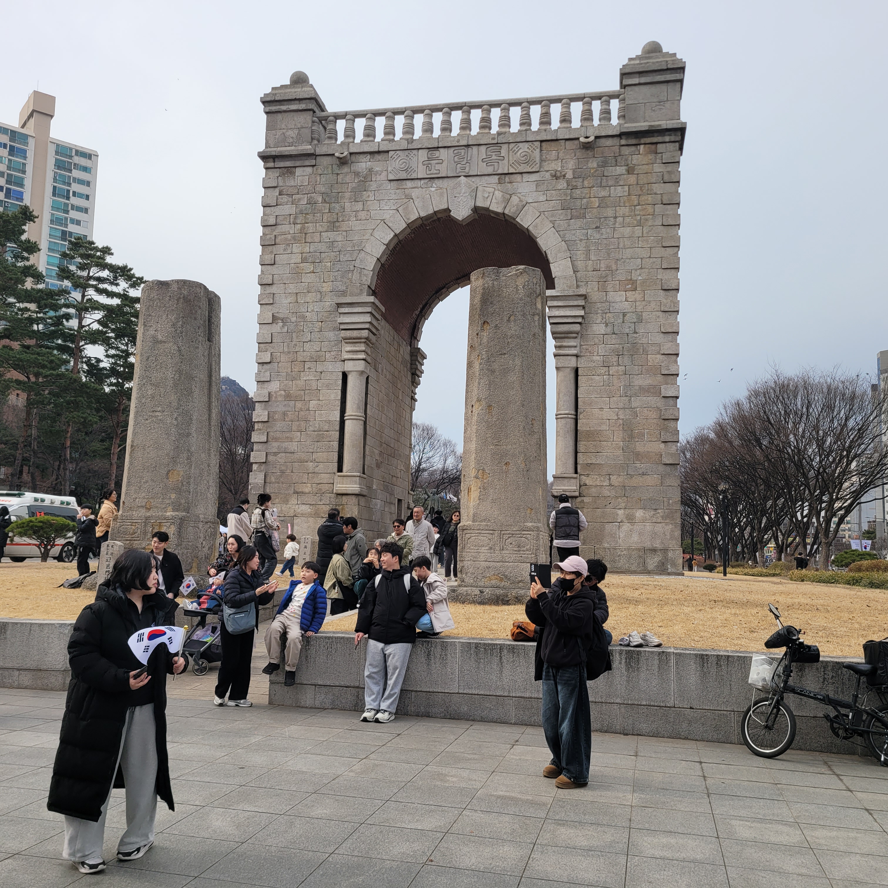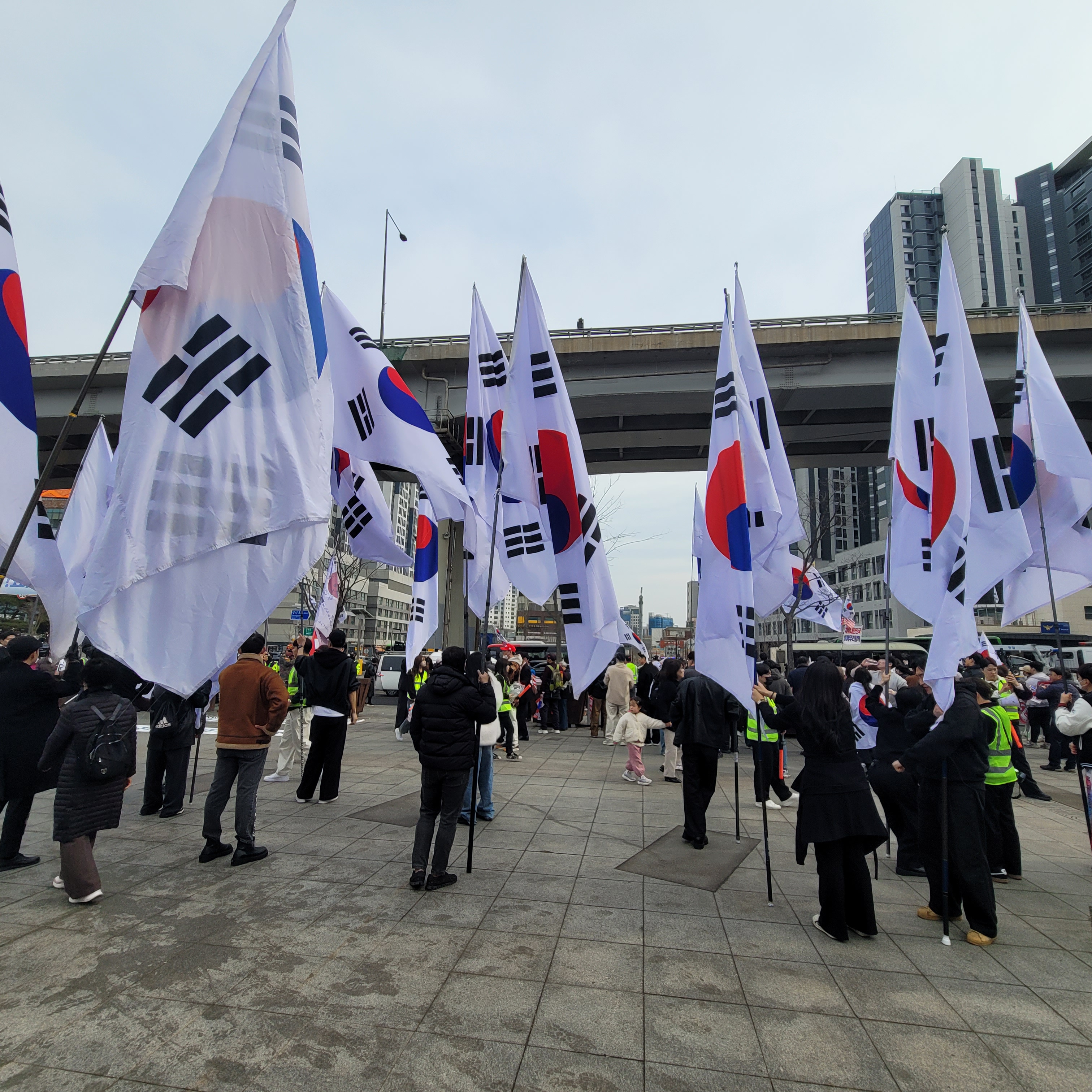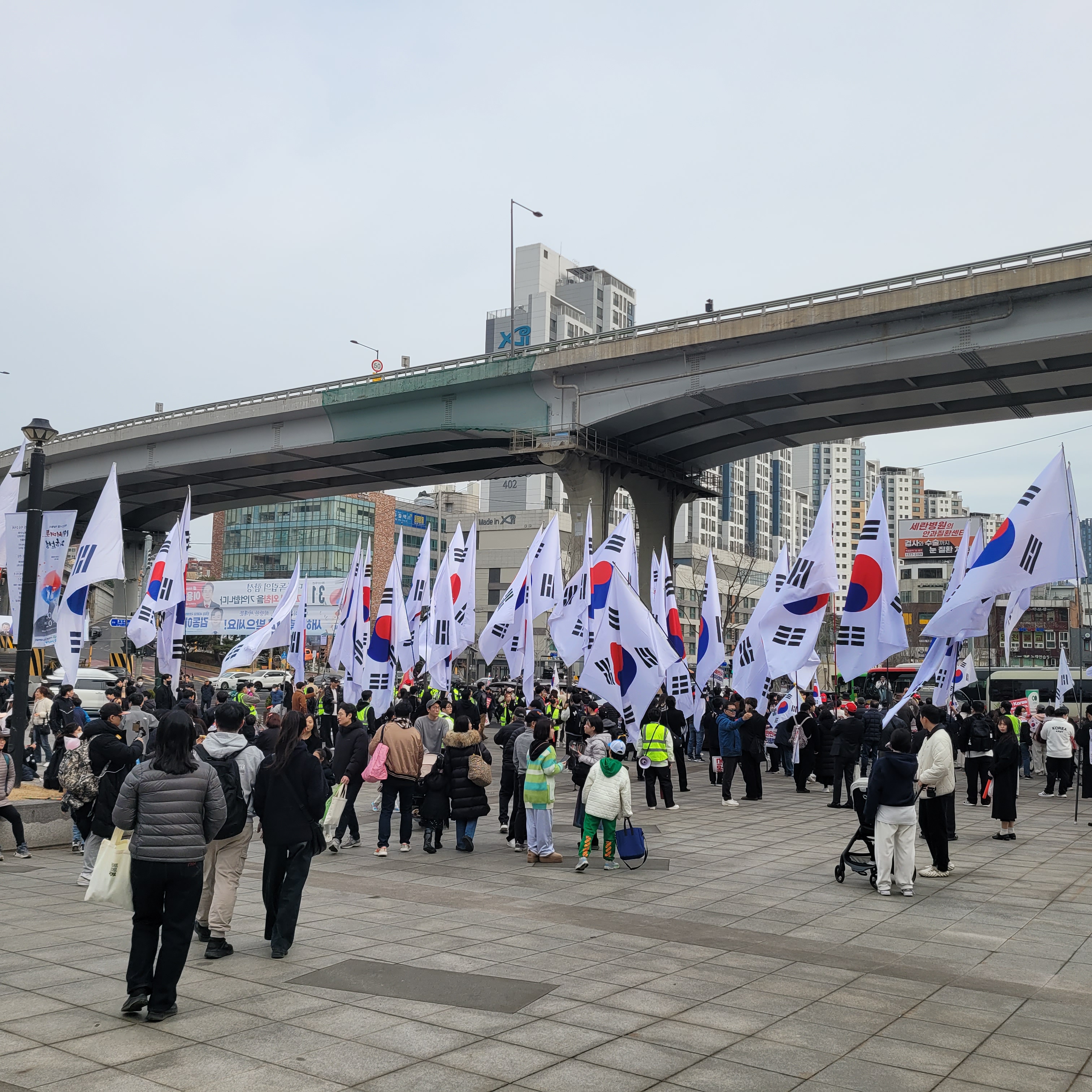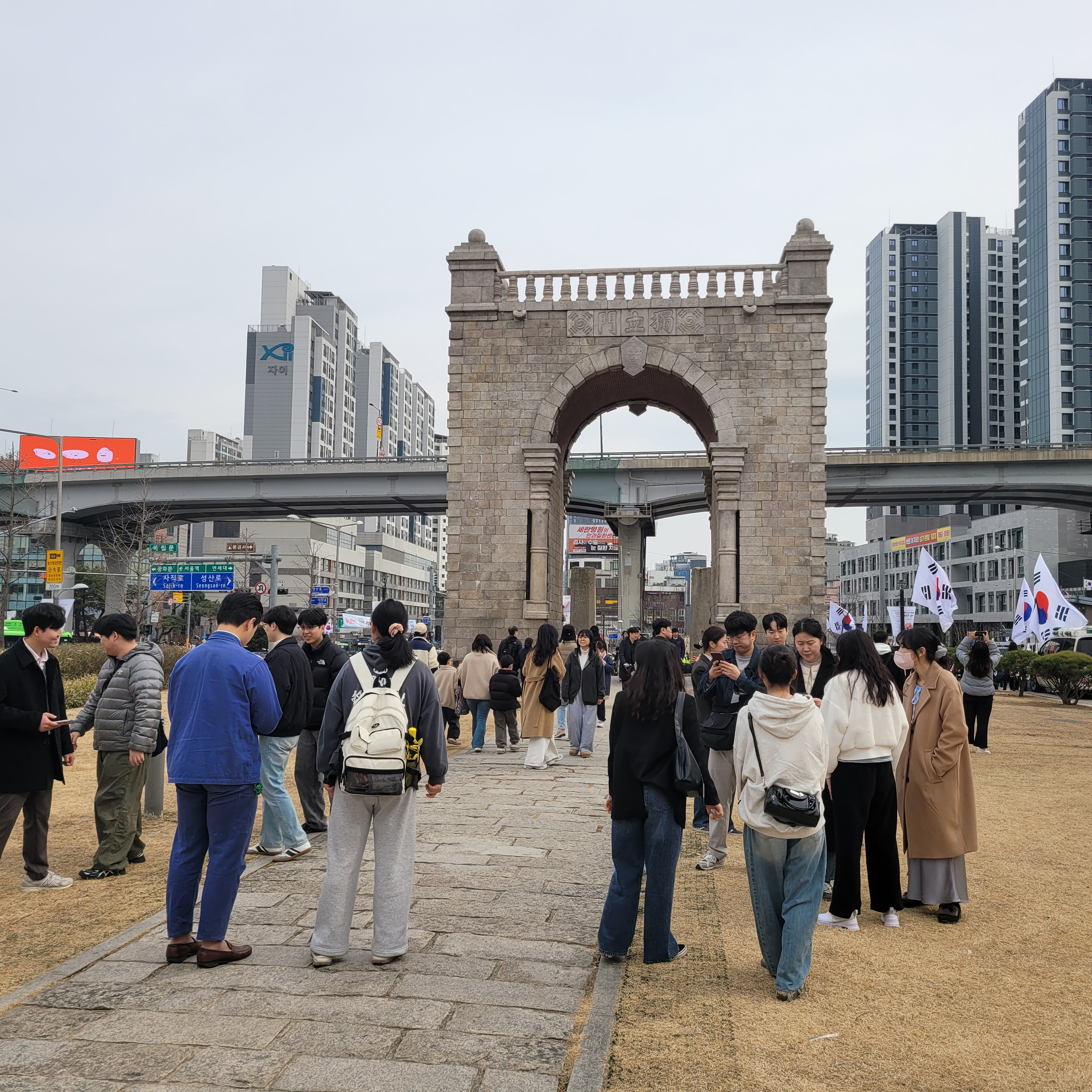 헌데 서대문독립공원 앞쪽에 태극기 들고 집회하는 사람들이 꽤 있었는데 자세히 보니까