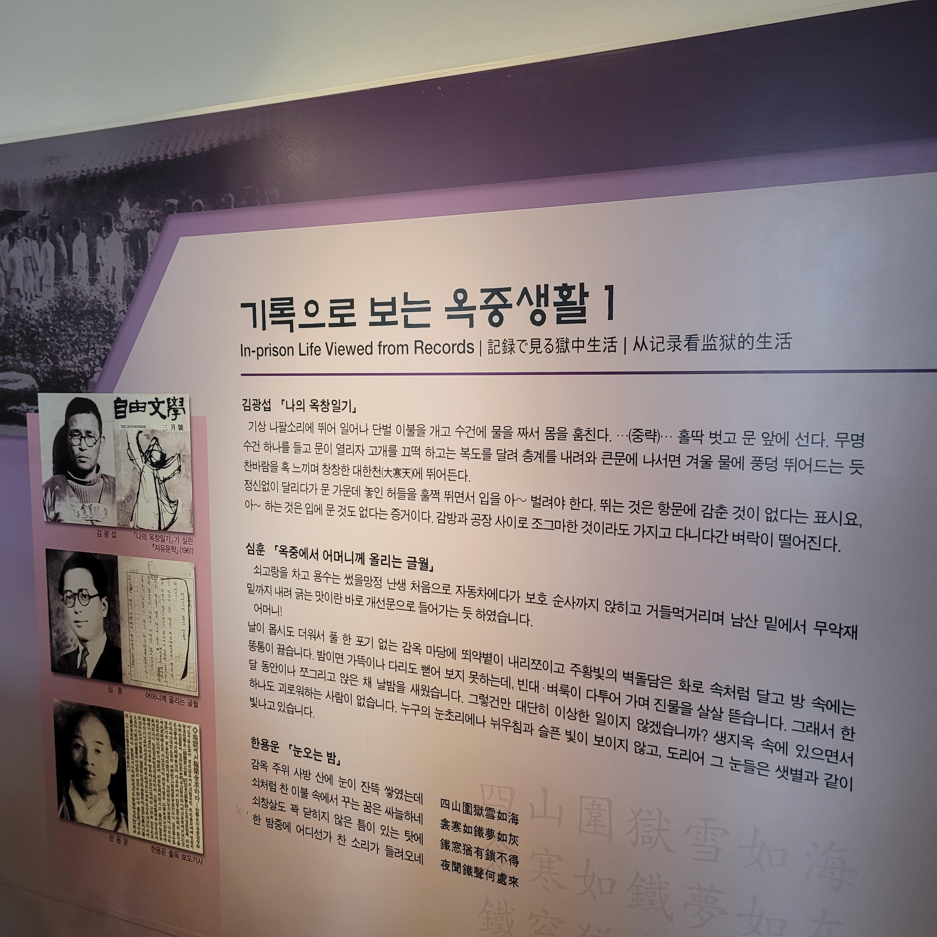 많았더라고요. 형무소 내부 사진과 역사관련 전시물들이 곳곳에 설치되어서 정말 볼거리가