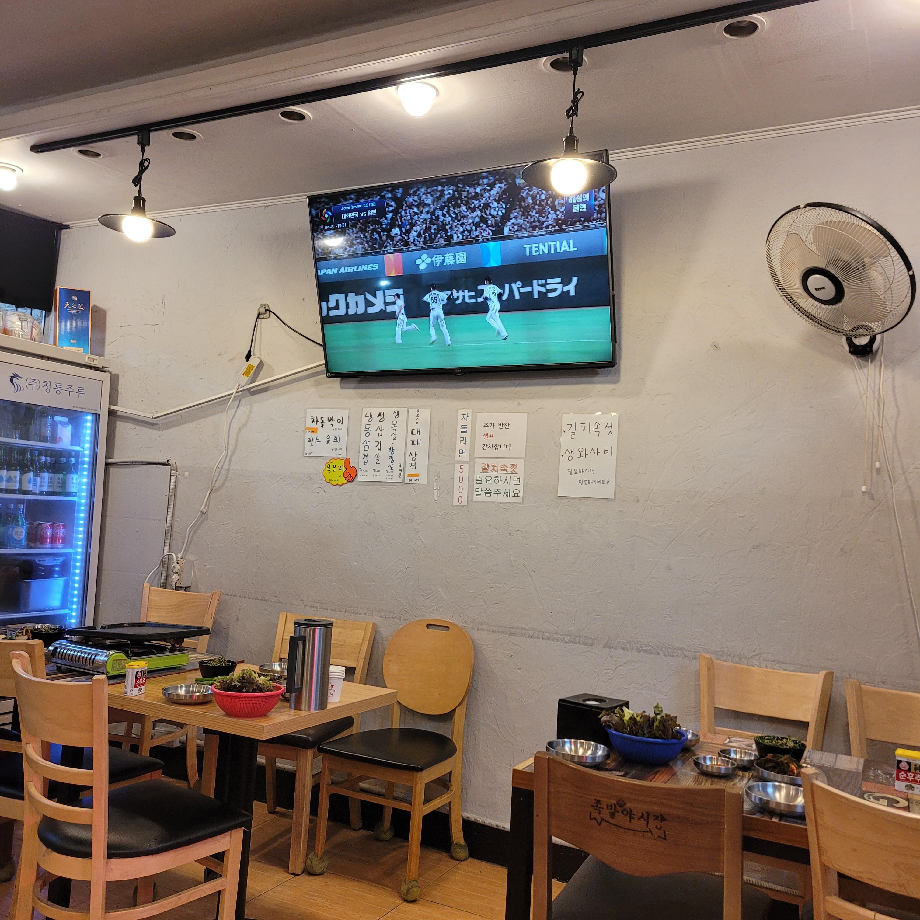 마침 가게 안 TV에서 2026 WBC 한일전이 열리고 있었네요. 비록 6:8로
