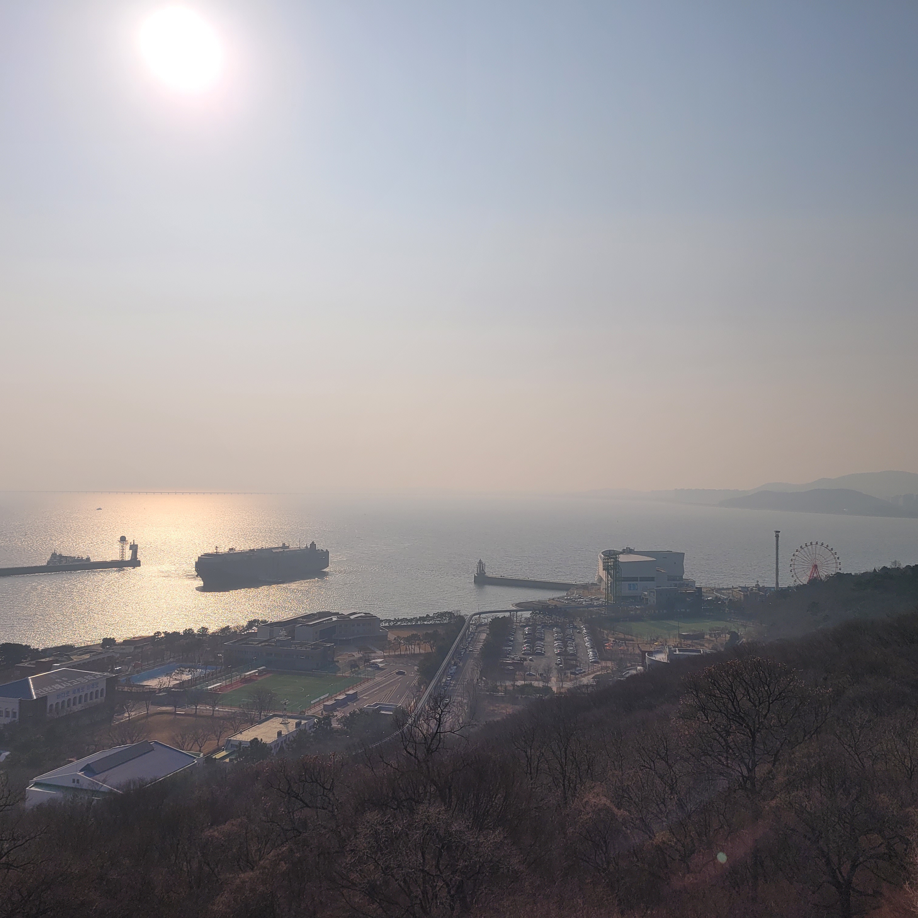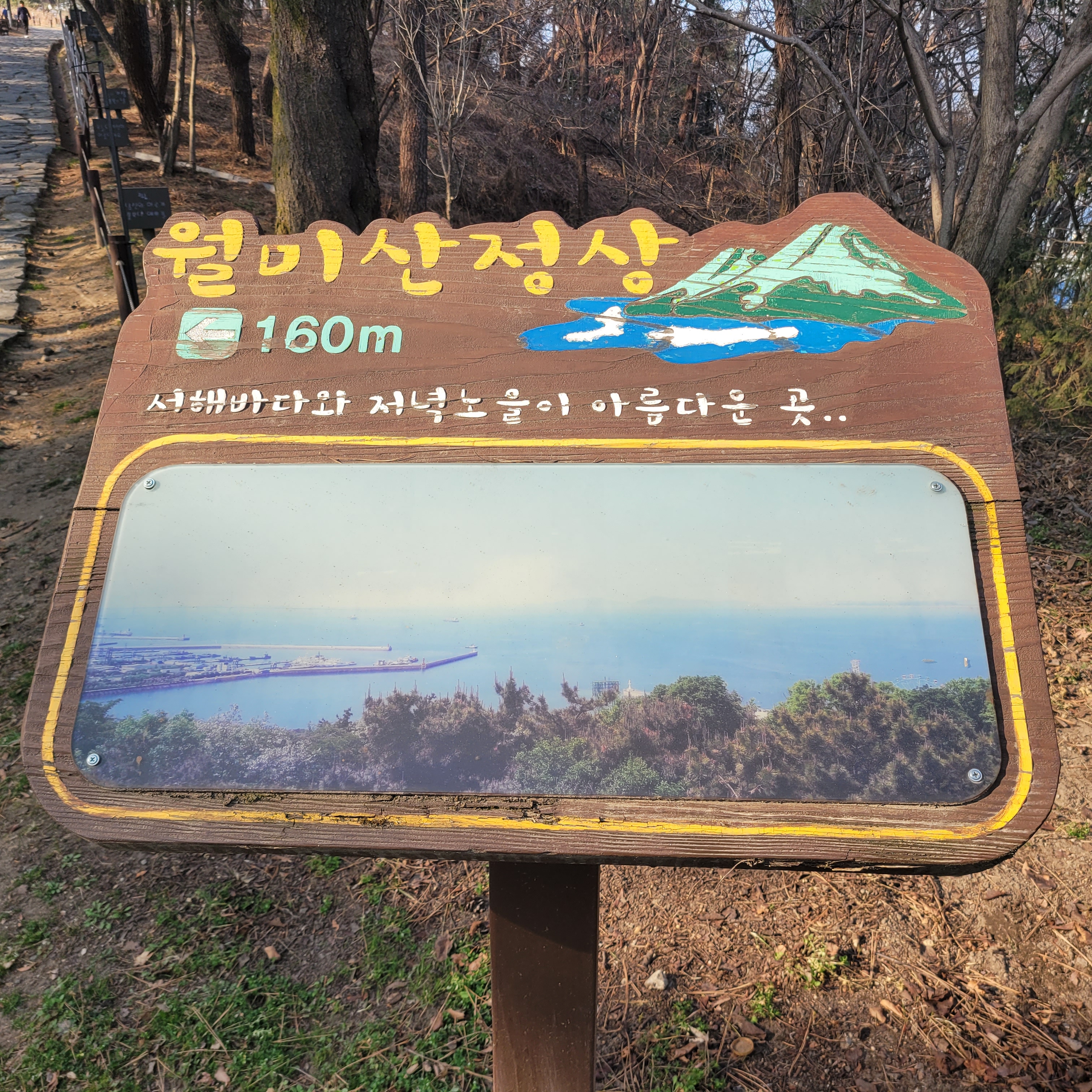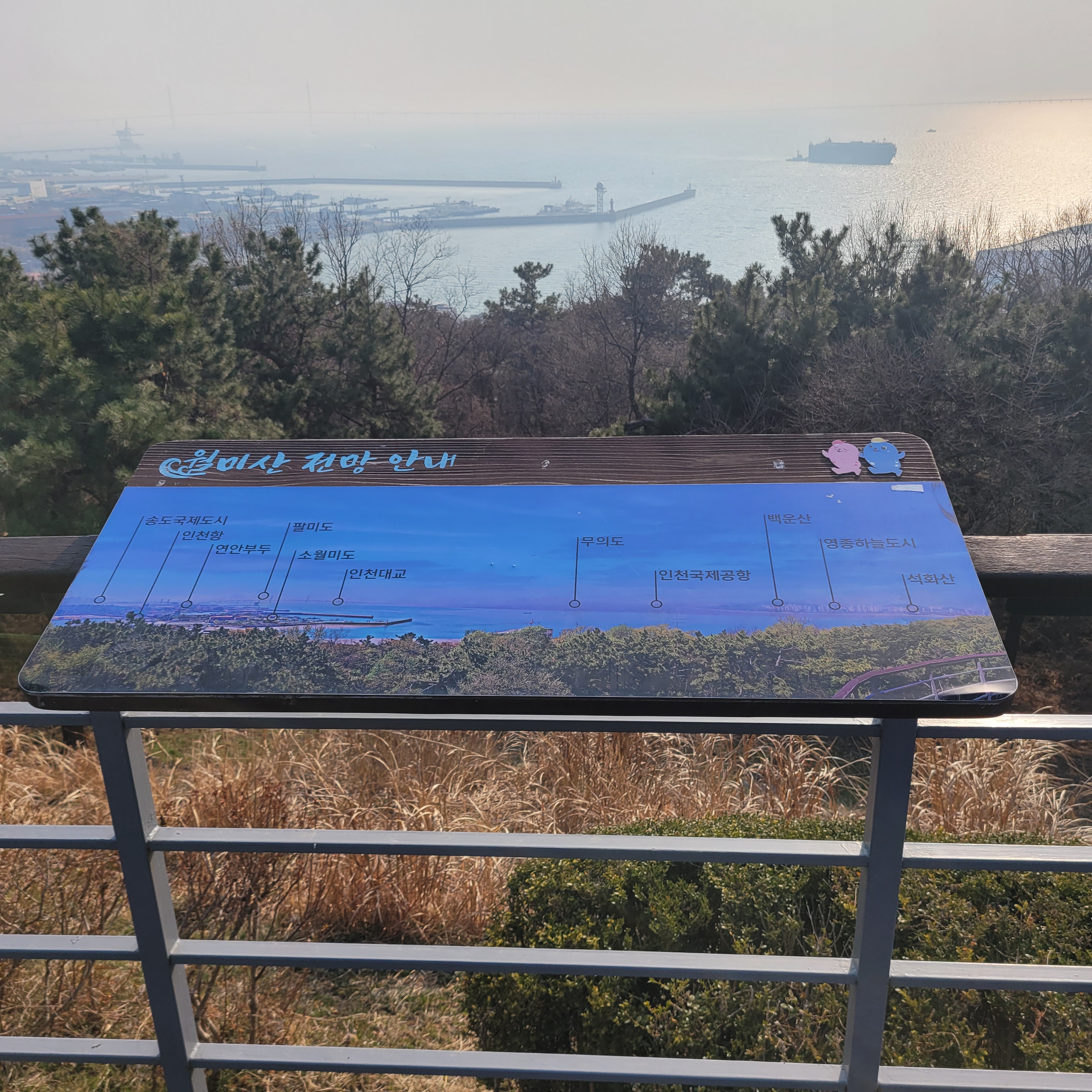 월미산 정상에 도착하니 인천 시내와 멀리 섬지역까지 훤히 보였는데 중국발 미세먼지만 아니었으면