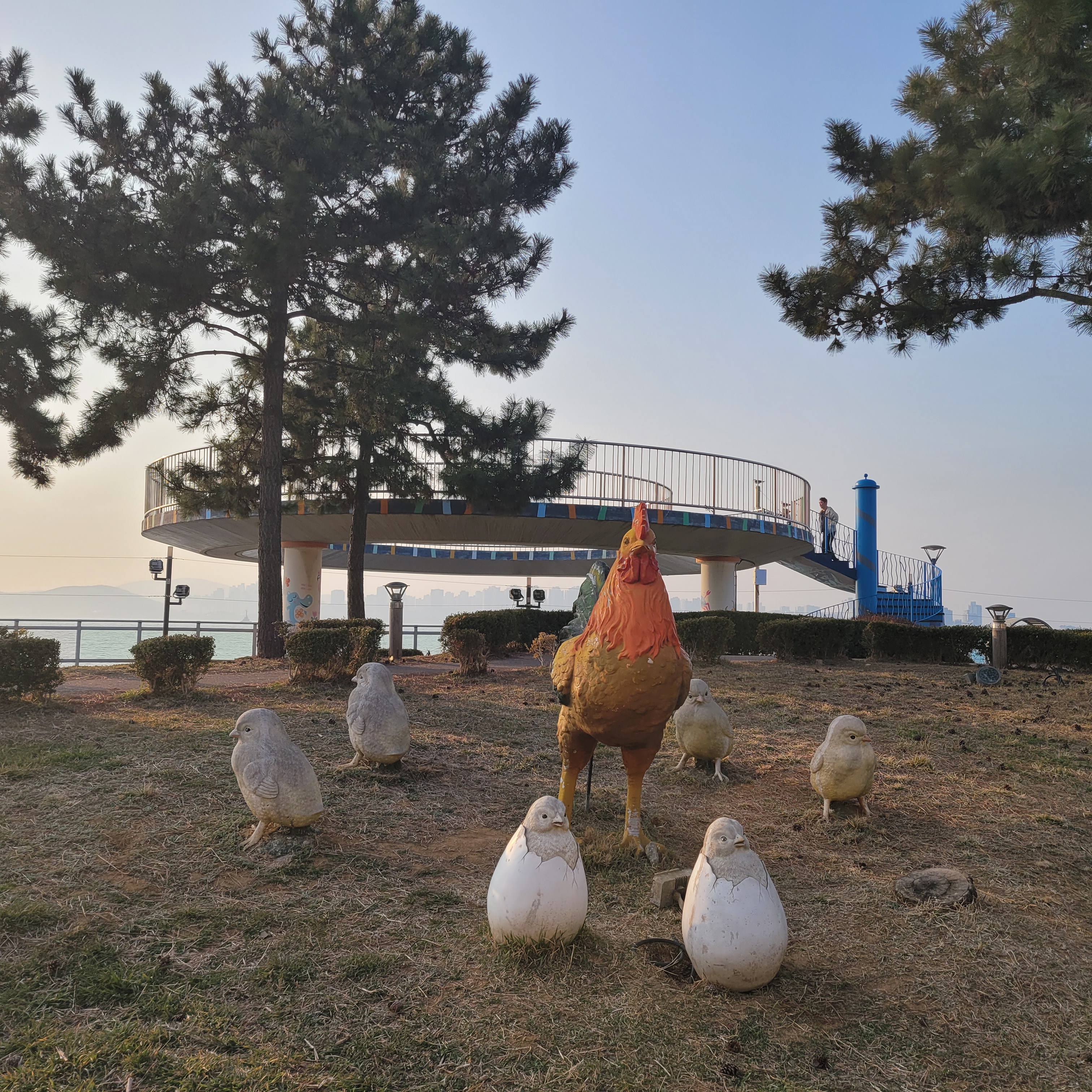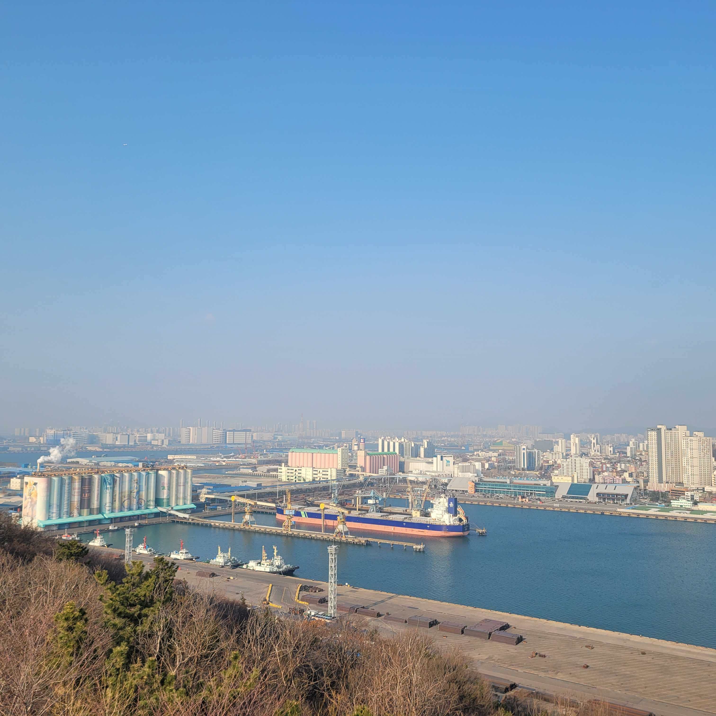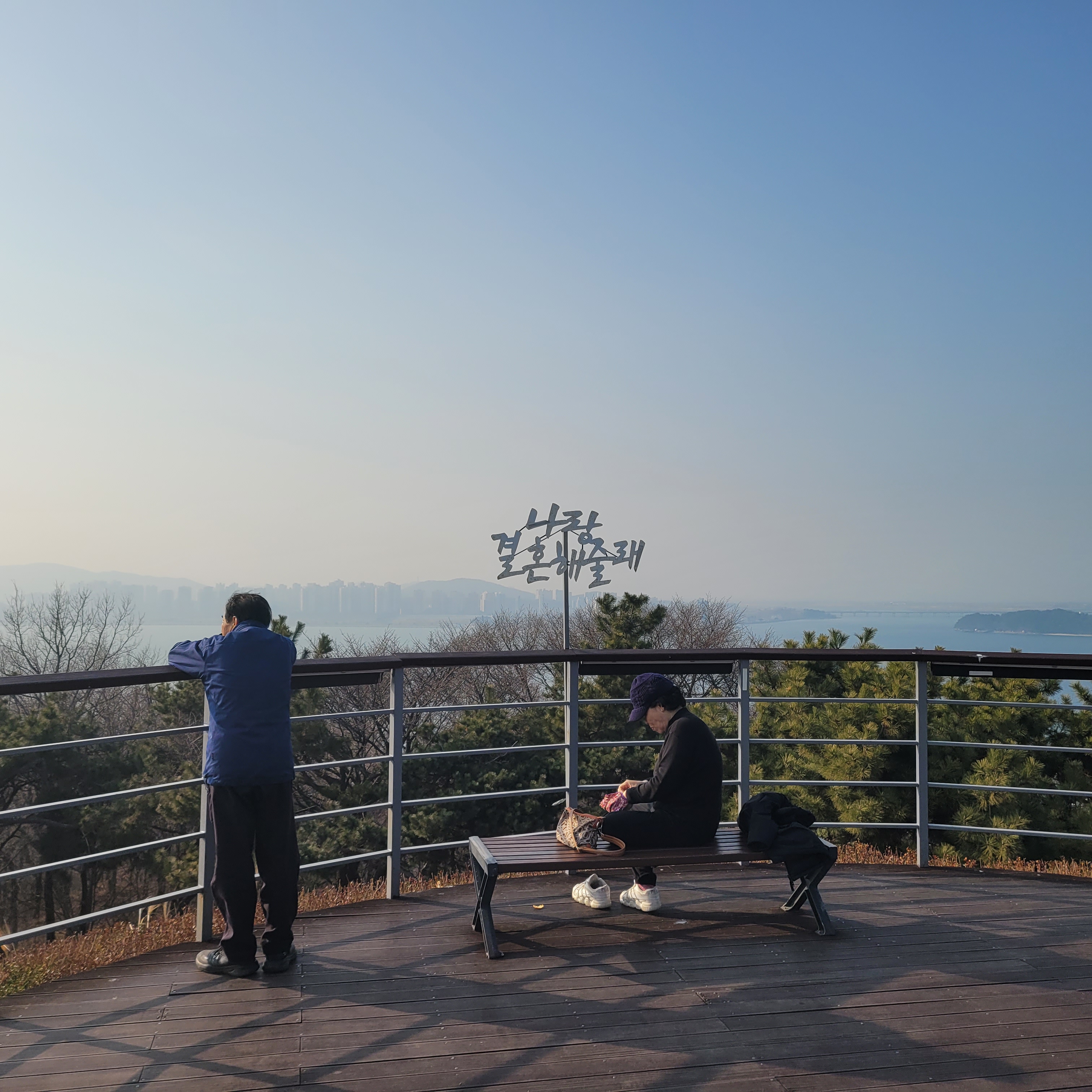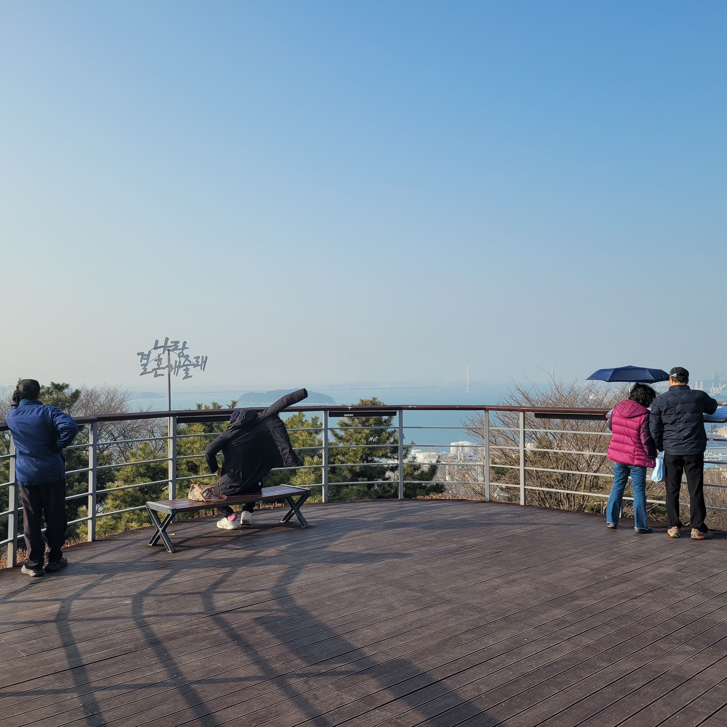 월미산 정상에 도착하니 인천 시내와 멀리 섬지역까지 훤히 보였는데 중국발 미세먼지만 아니었으면