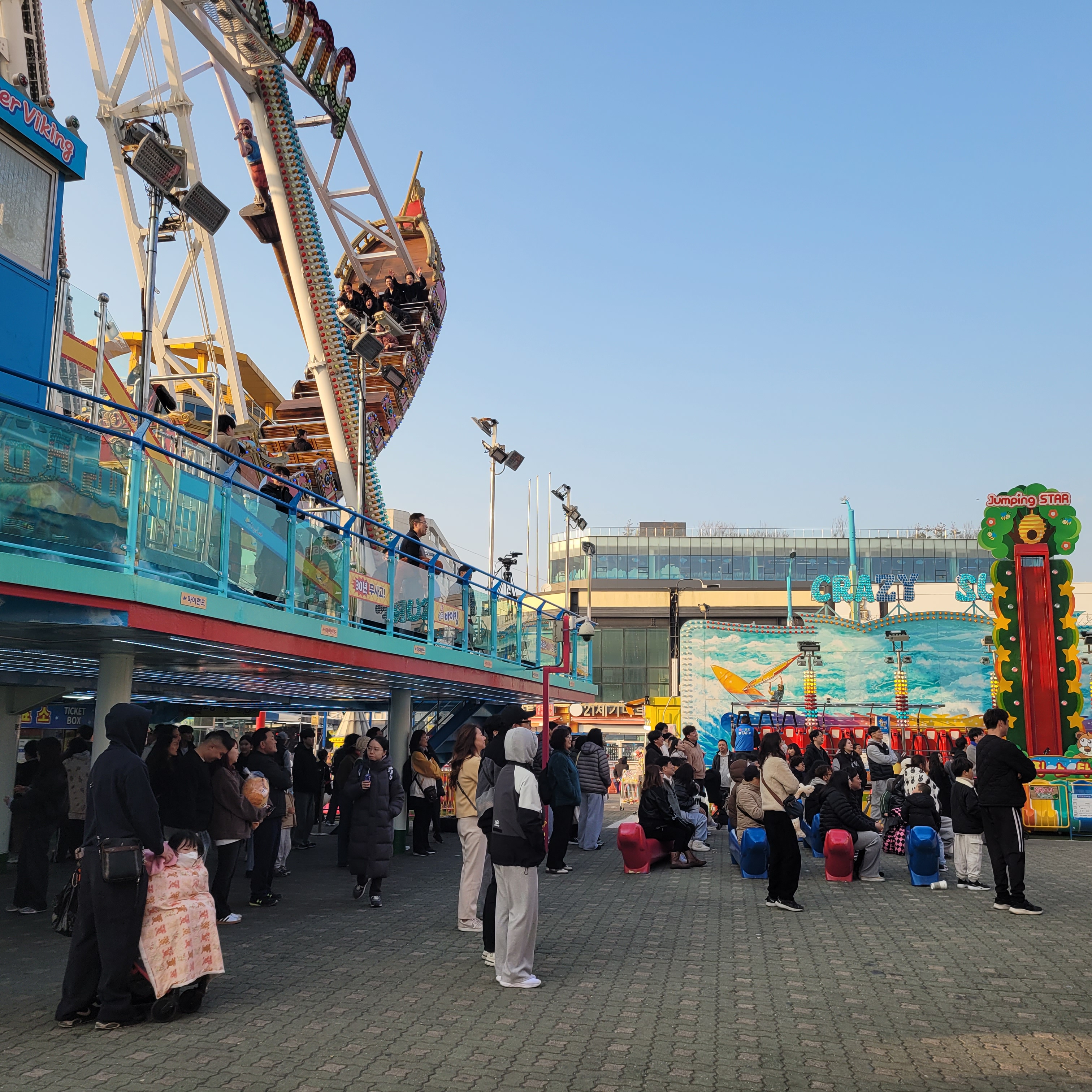물론 월미도의 명물인 디스코팡팡을 비롯한 각종 놀이기구 타는 사람들도 많이들 있었고요.