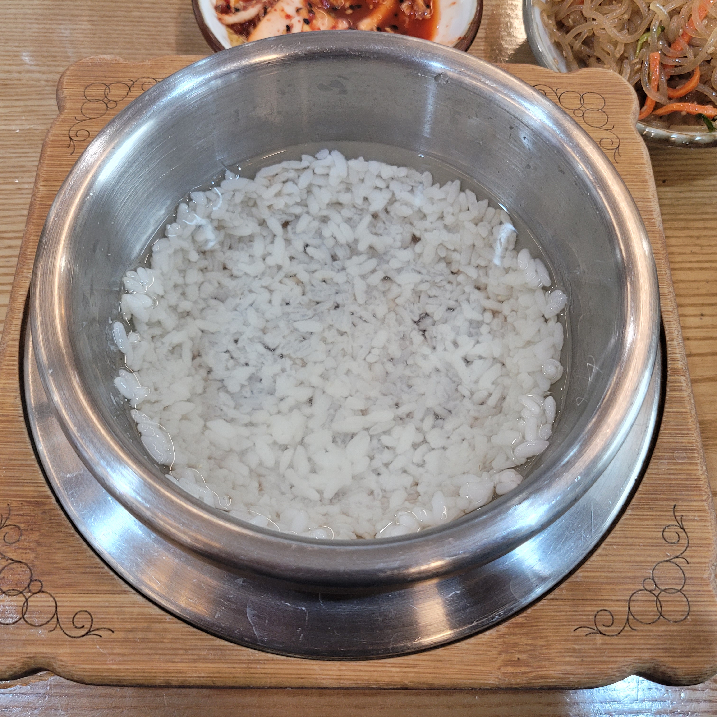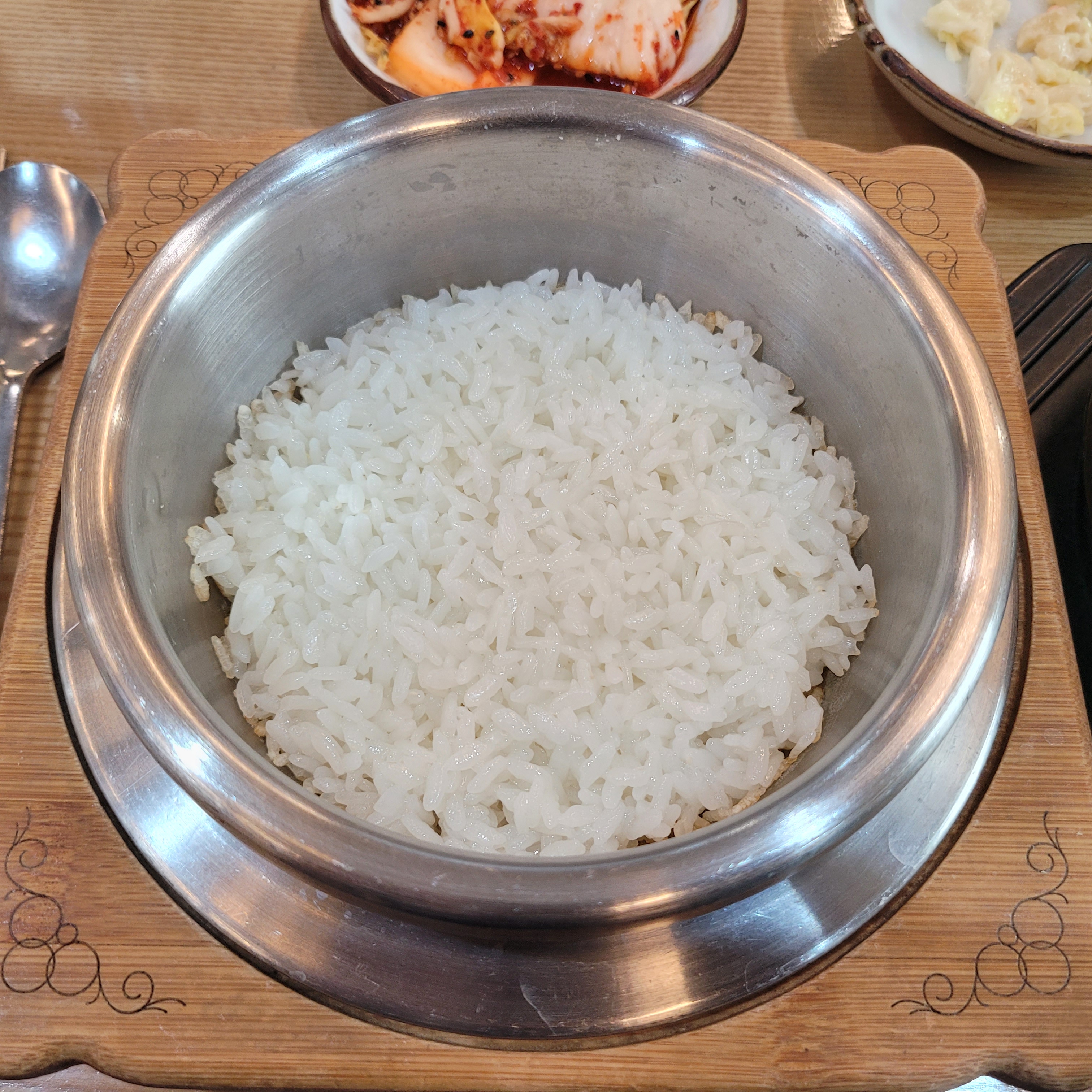 그리고 오늘 점심에는 가마솥밥에 된장찌개를 먹었는데 맛은 있었지만 된장찌개가