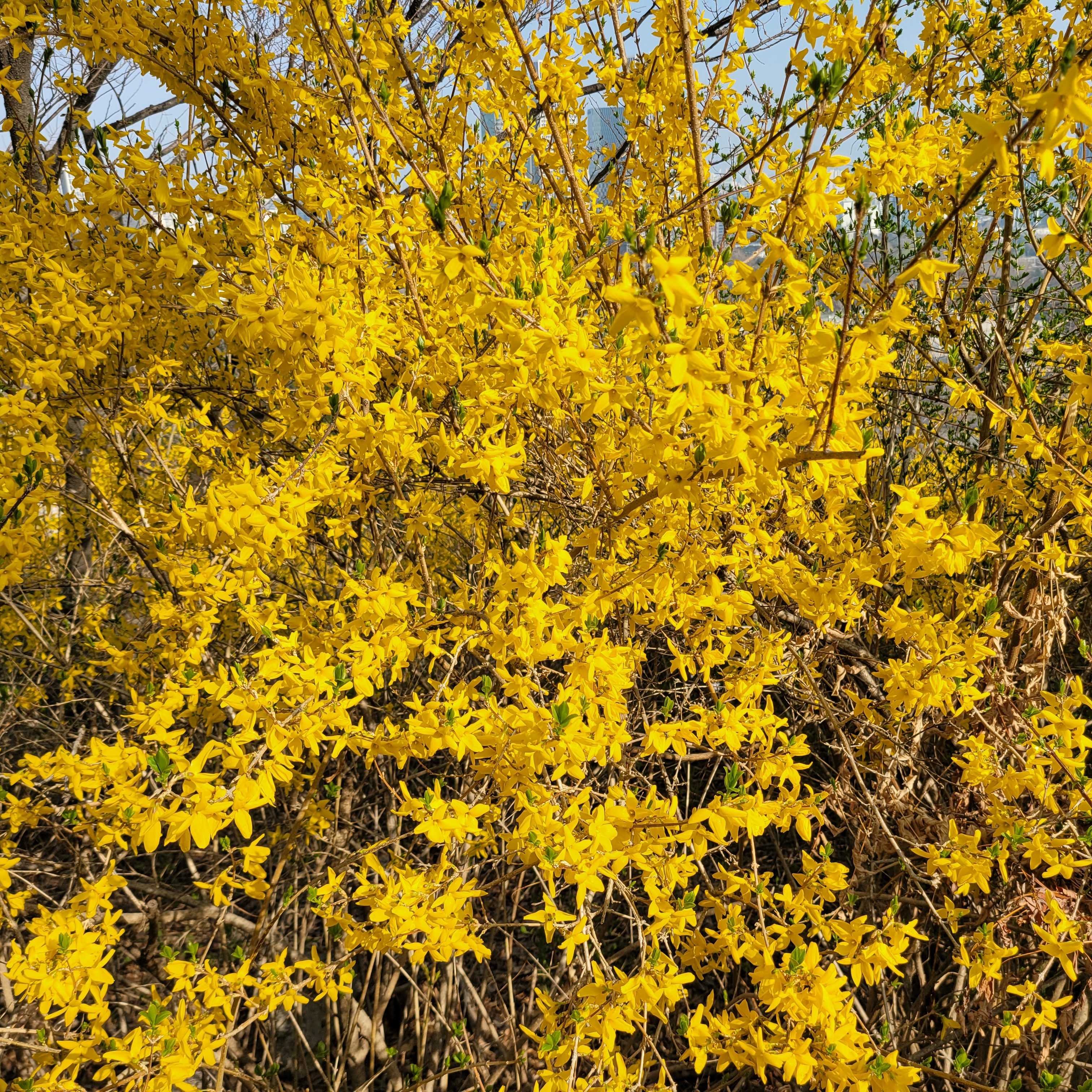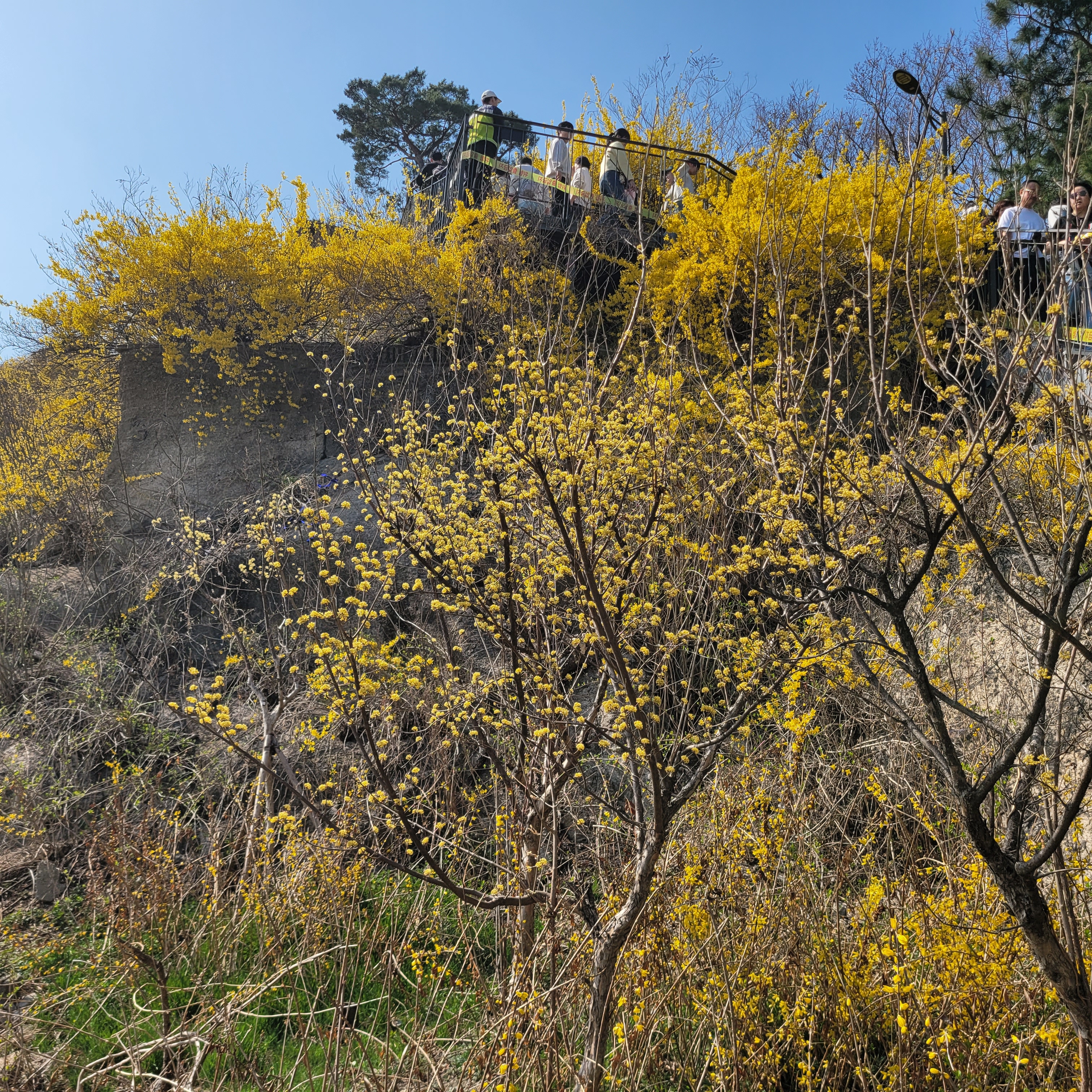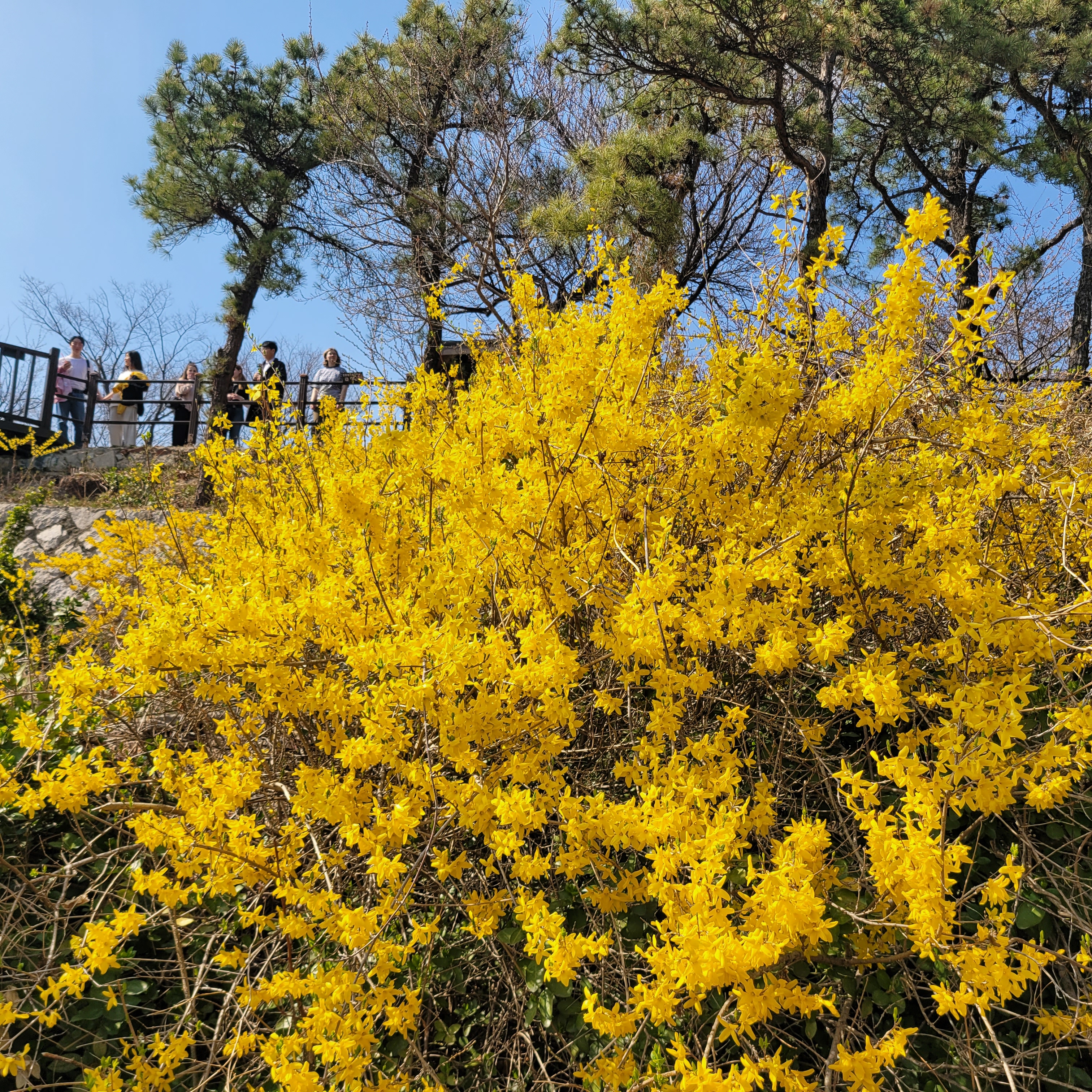 응봉산 개나리축제 현장에 가보니 개나리가 아주 만발했더라고요.