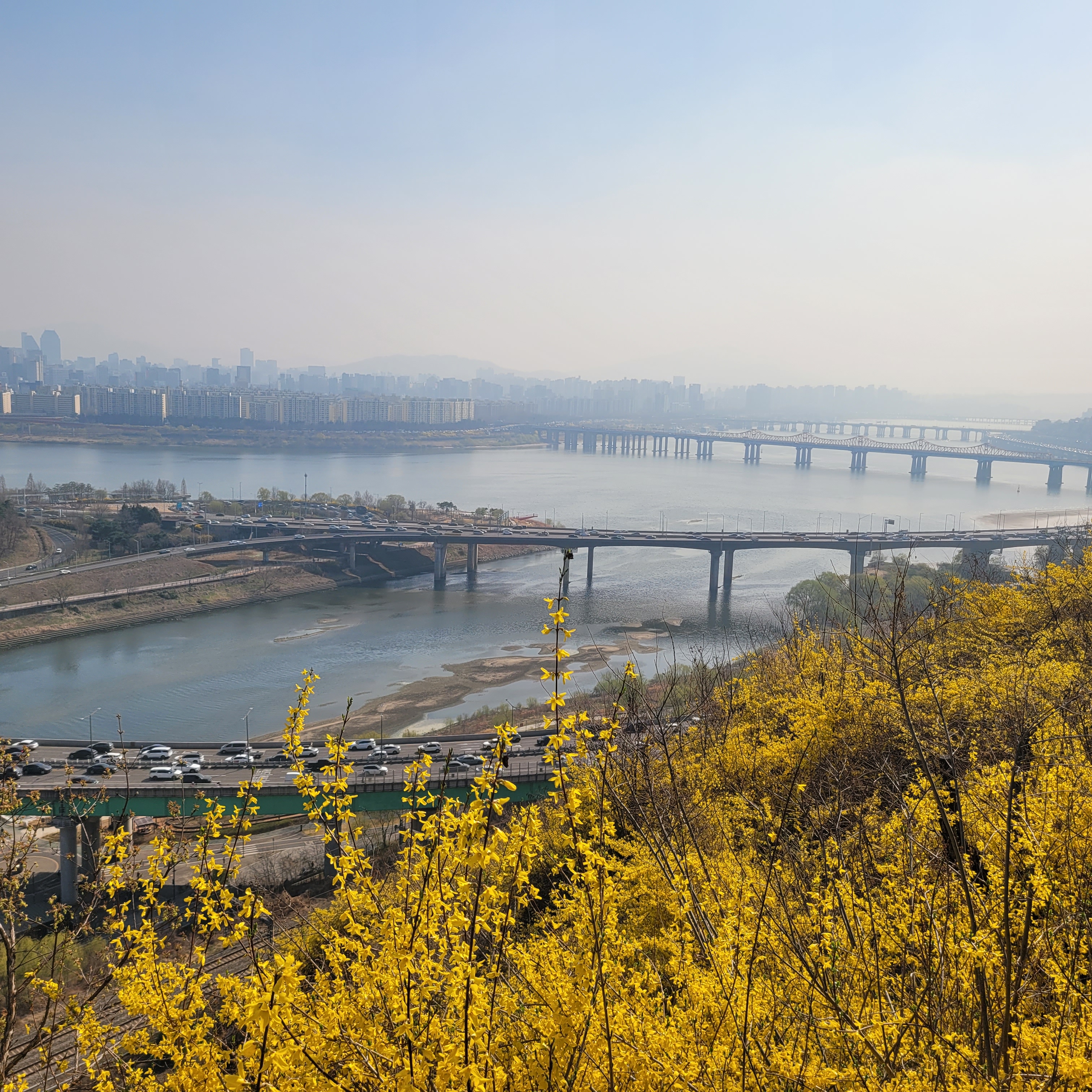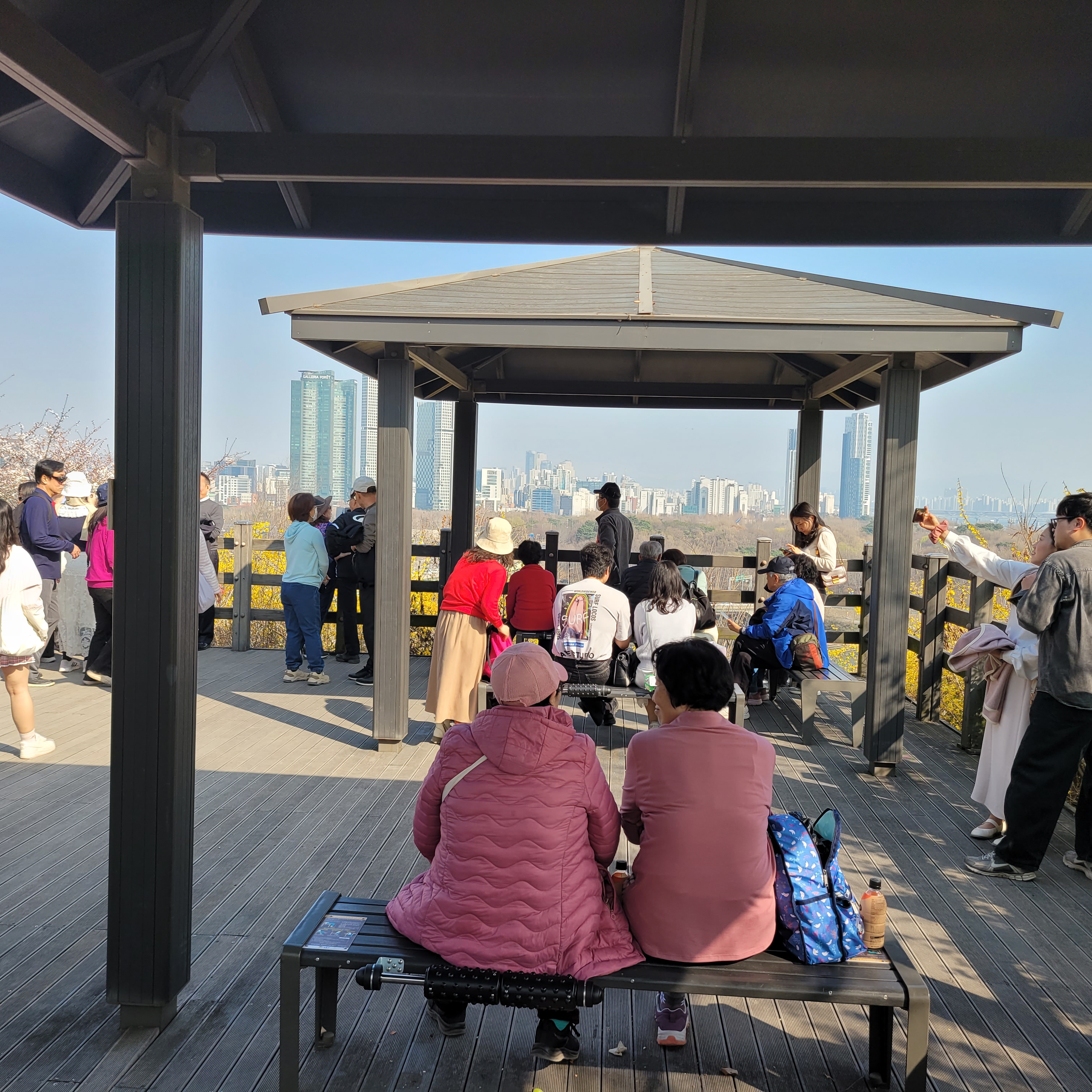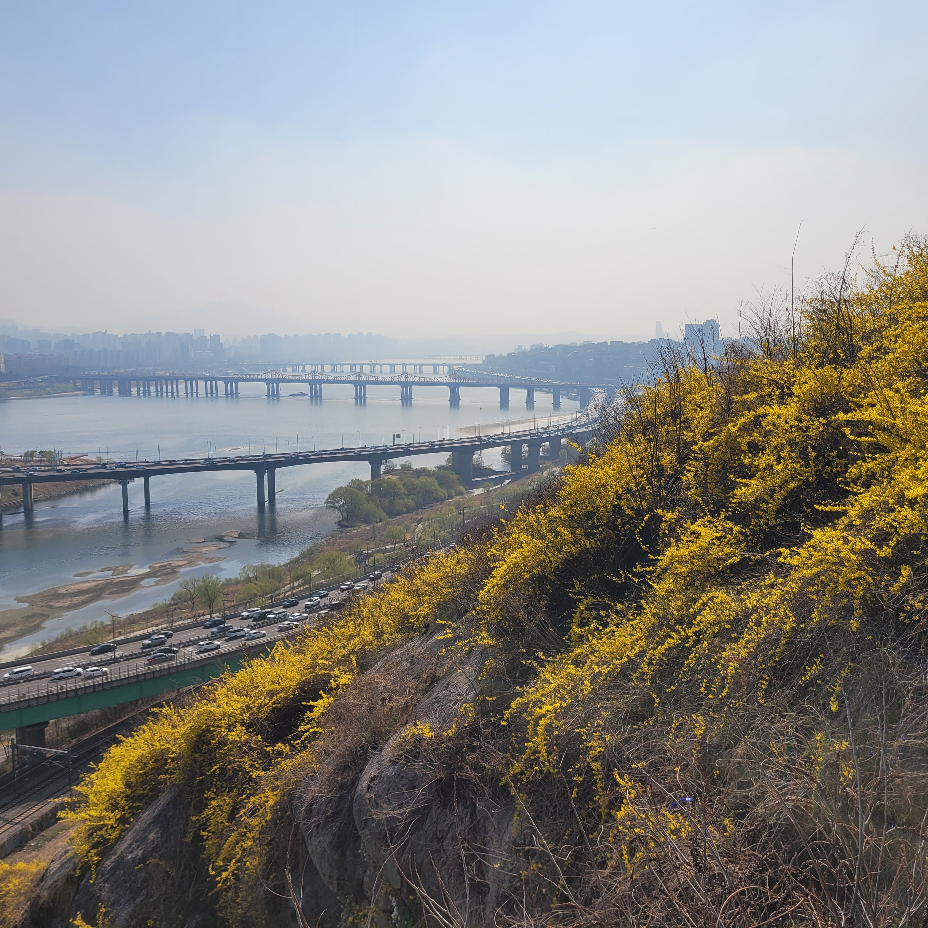 저도 응봉산 곳곳 개나리꽃 벚꽃 구경도 하고 응봉산 정상 팔각정에 도착해서