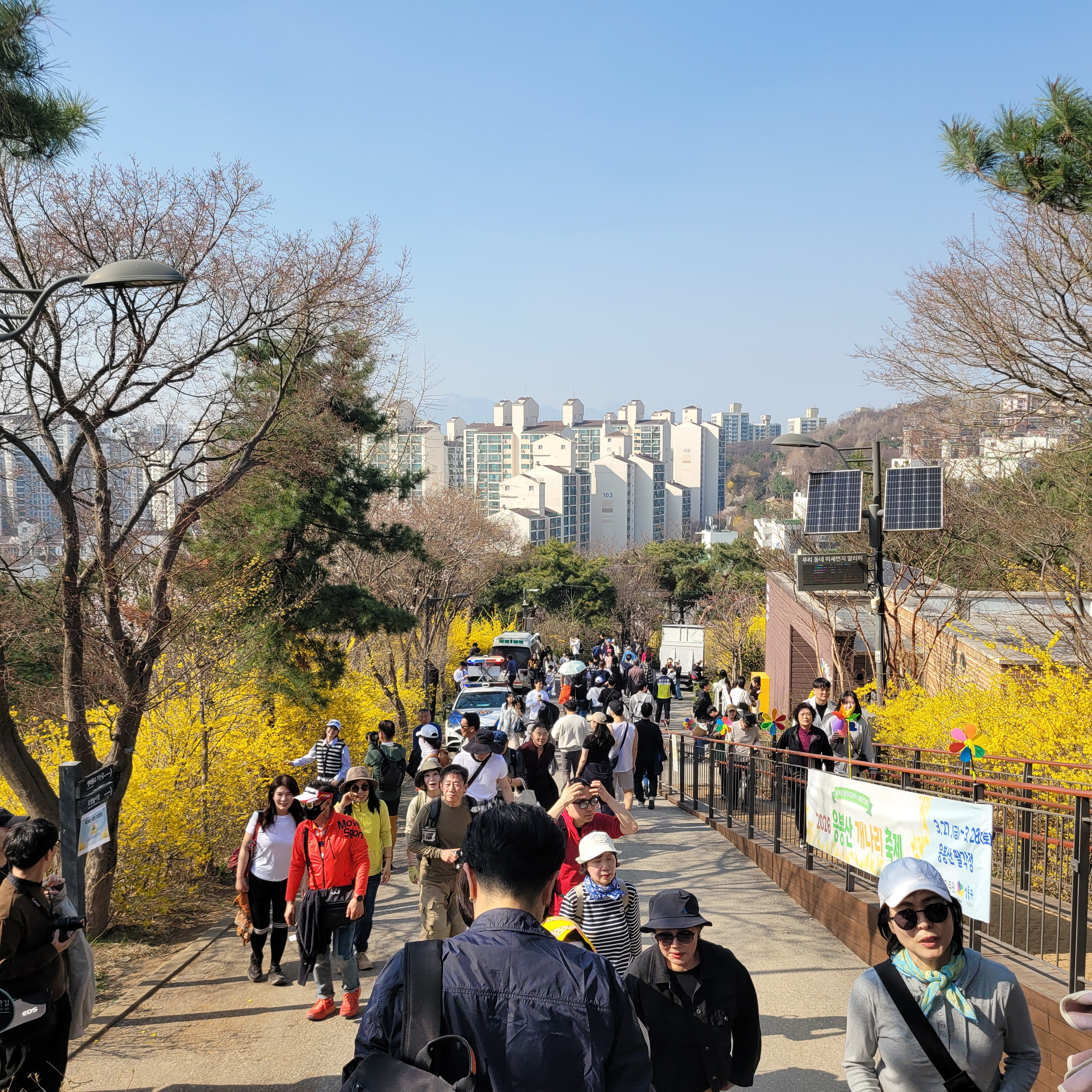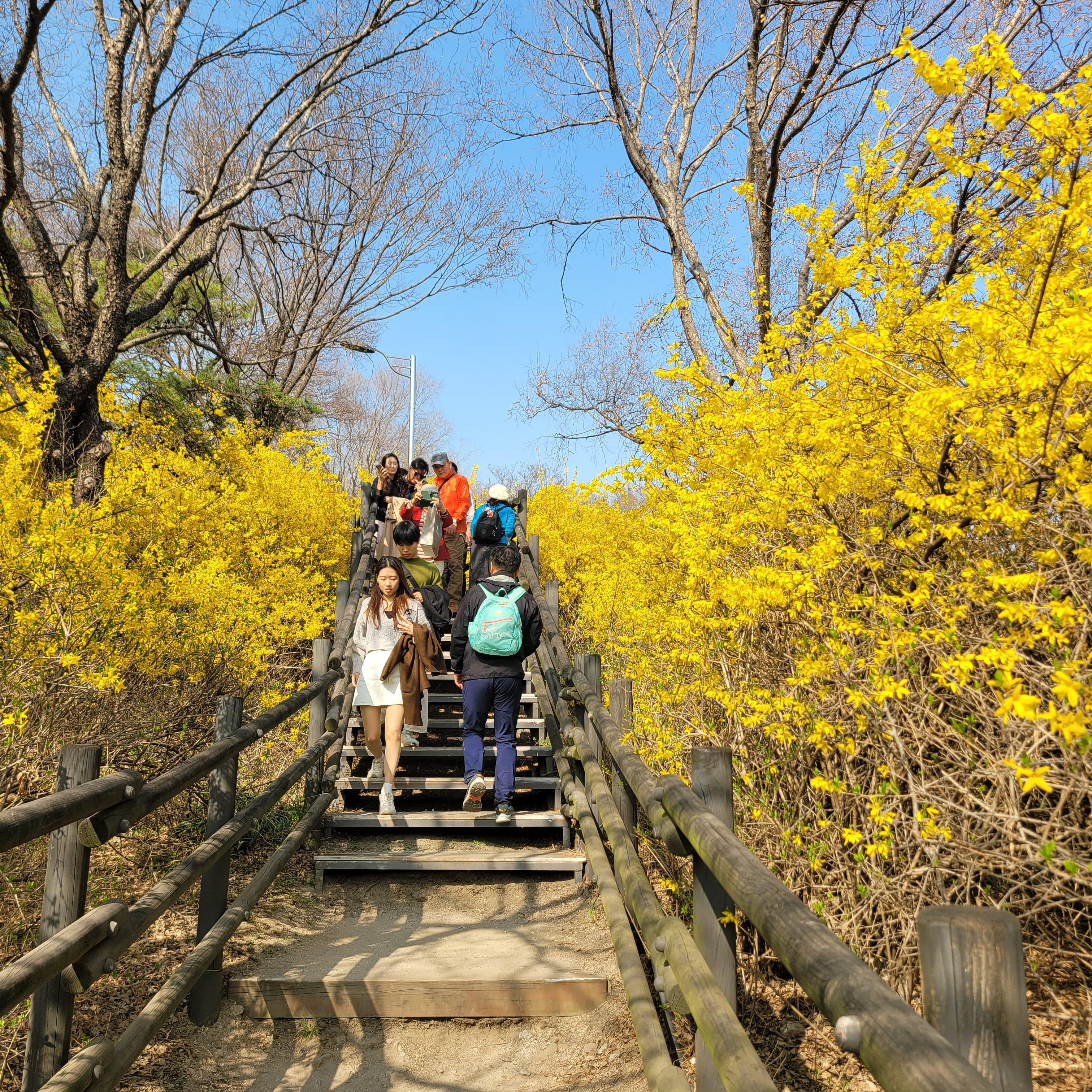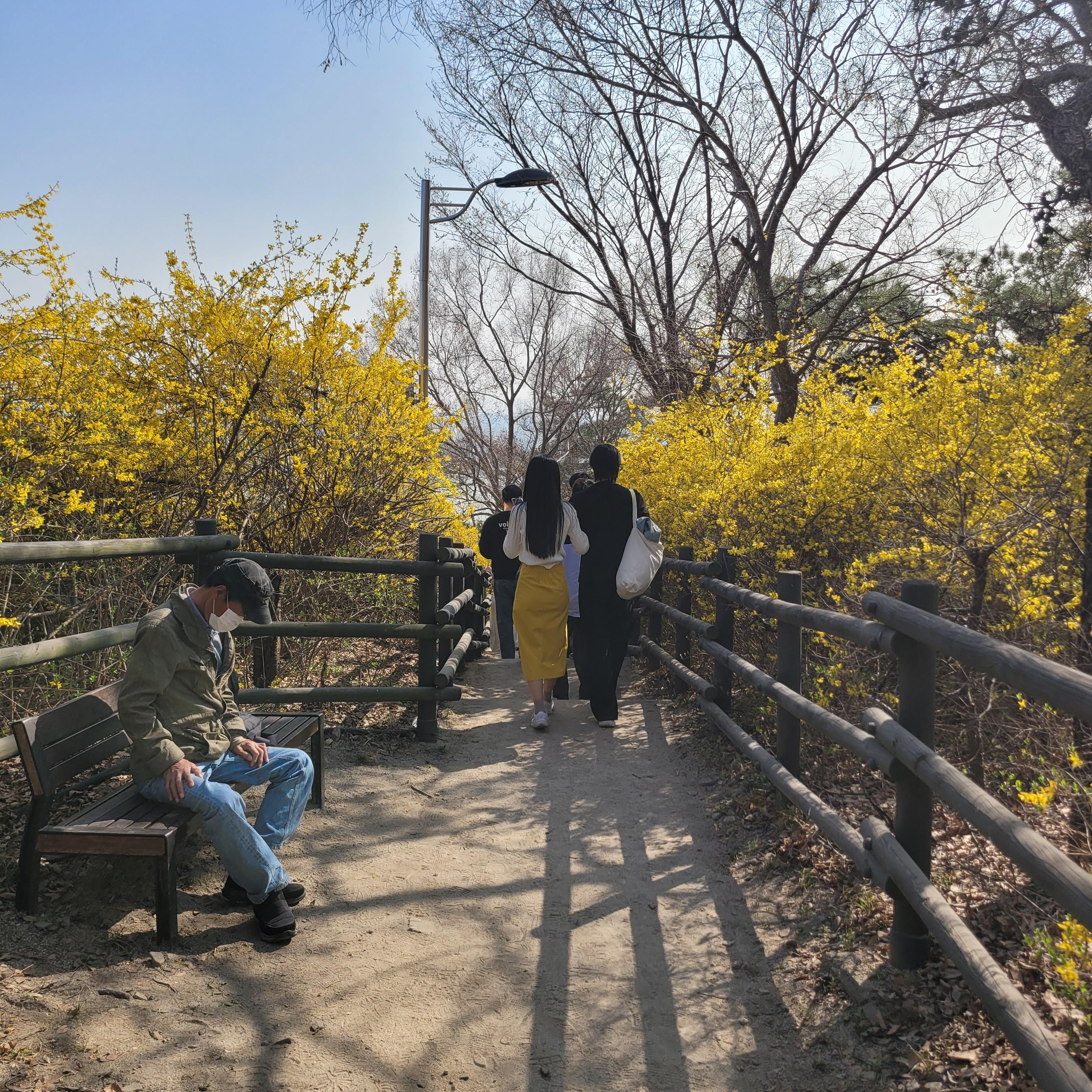 날씨도 따뜻해서 나들이 오기 딱 좋은 날씨라서인지 응봉산 가는길마다