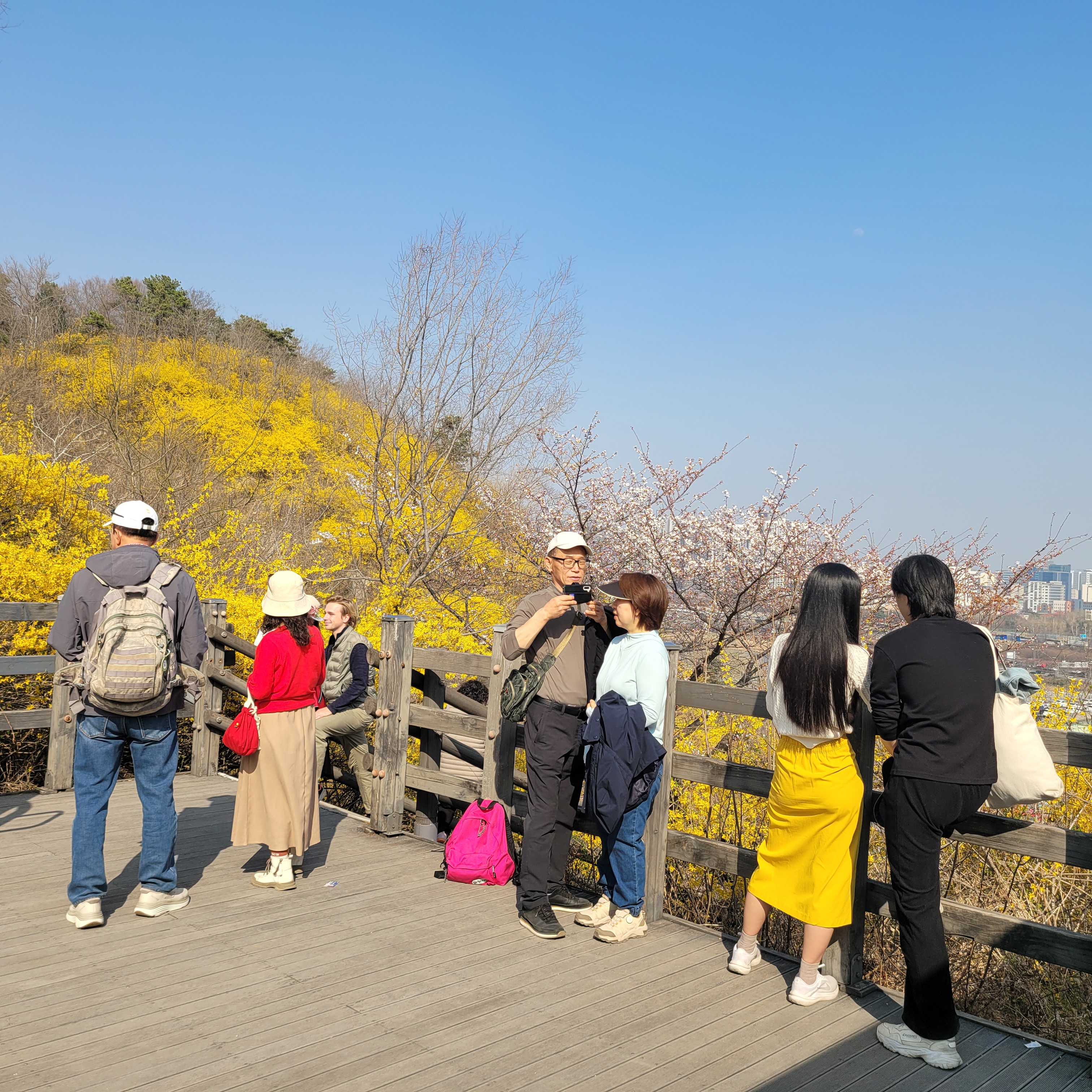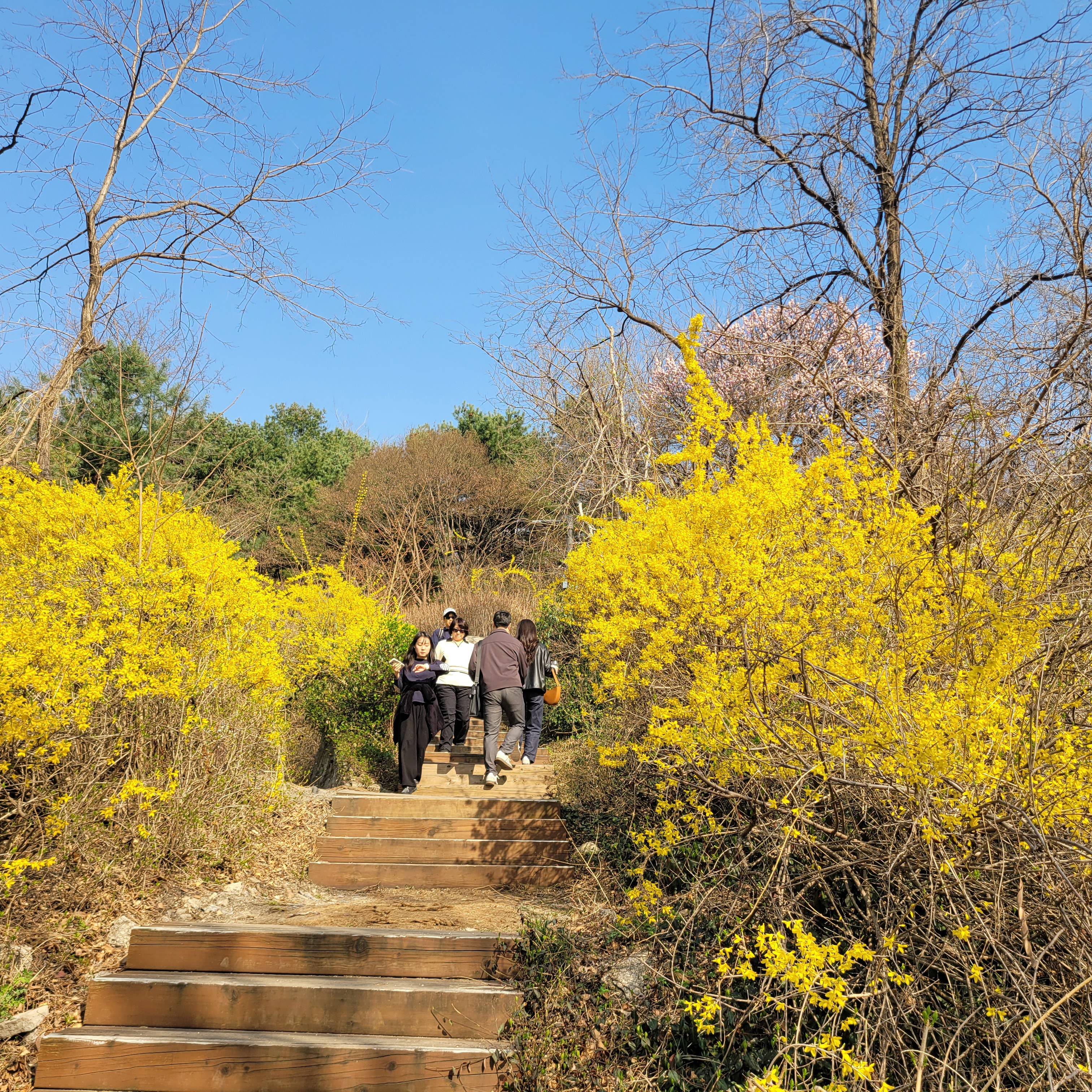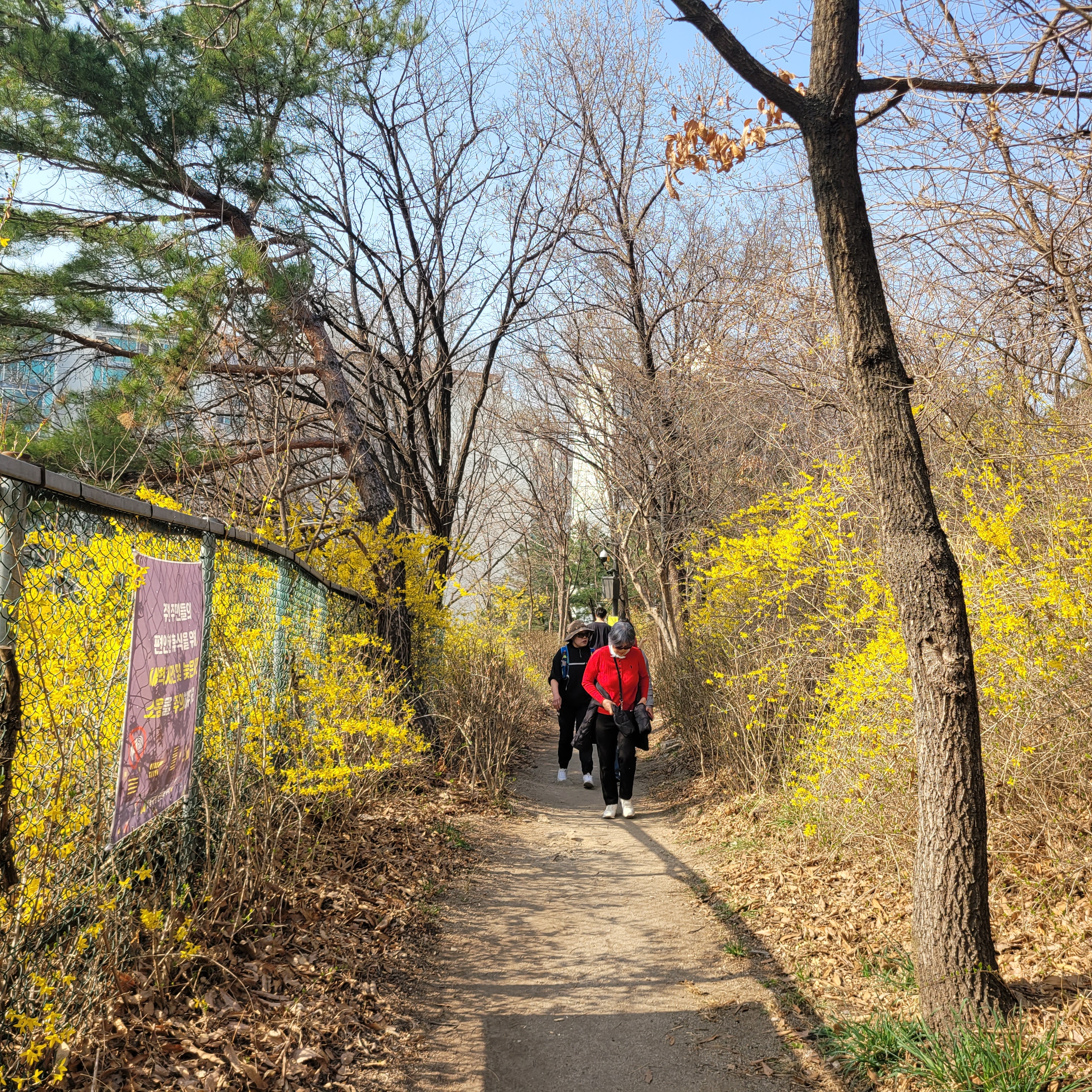 날씨도 따뜻해서 나들이 오기 딱 좋은 날씨라서인지 응봉산 가는길마다