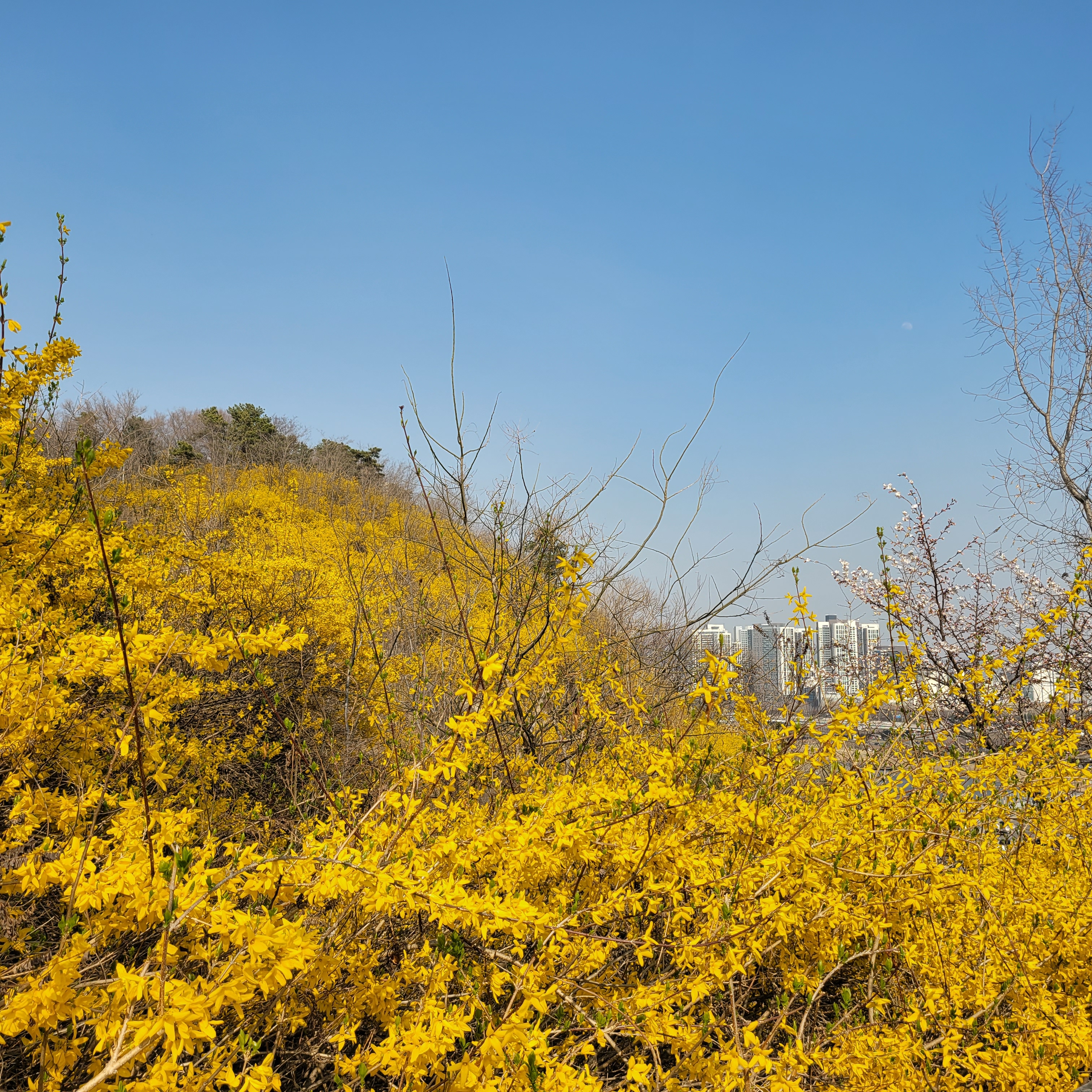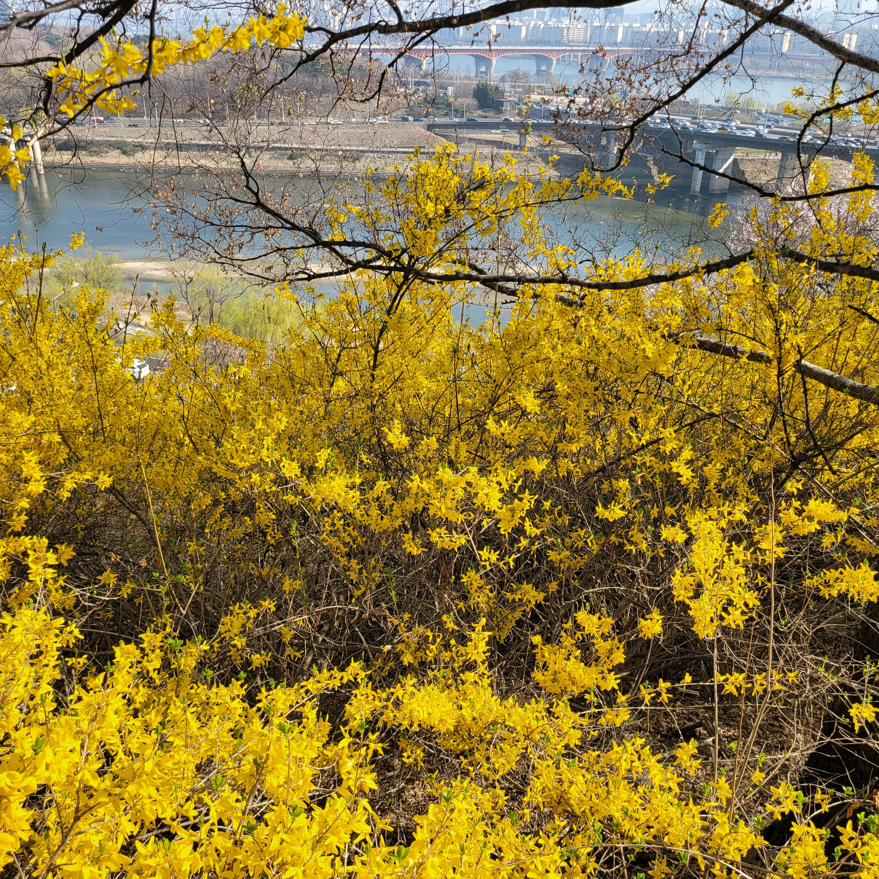 일대에서는 해마다 이맘때쯤에 개나리꽃이 만발해서 개나리 축제가